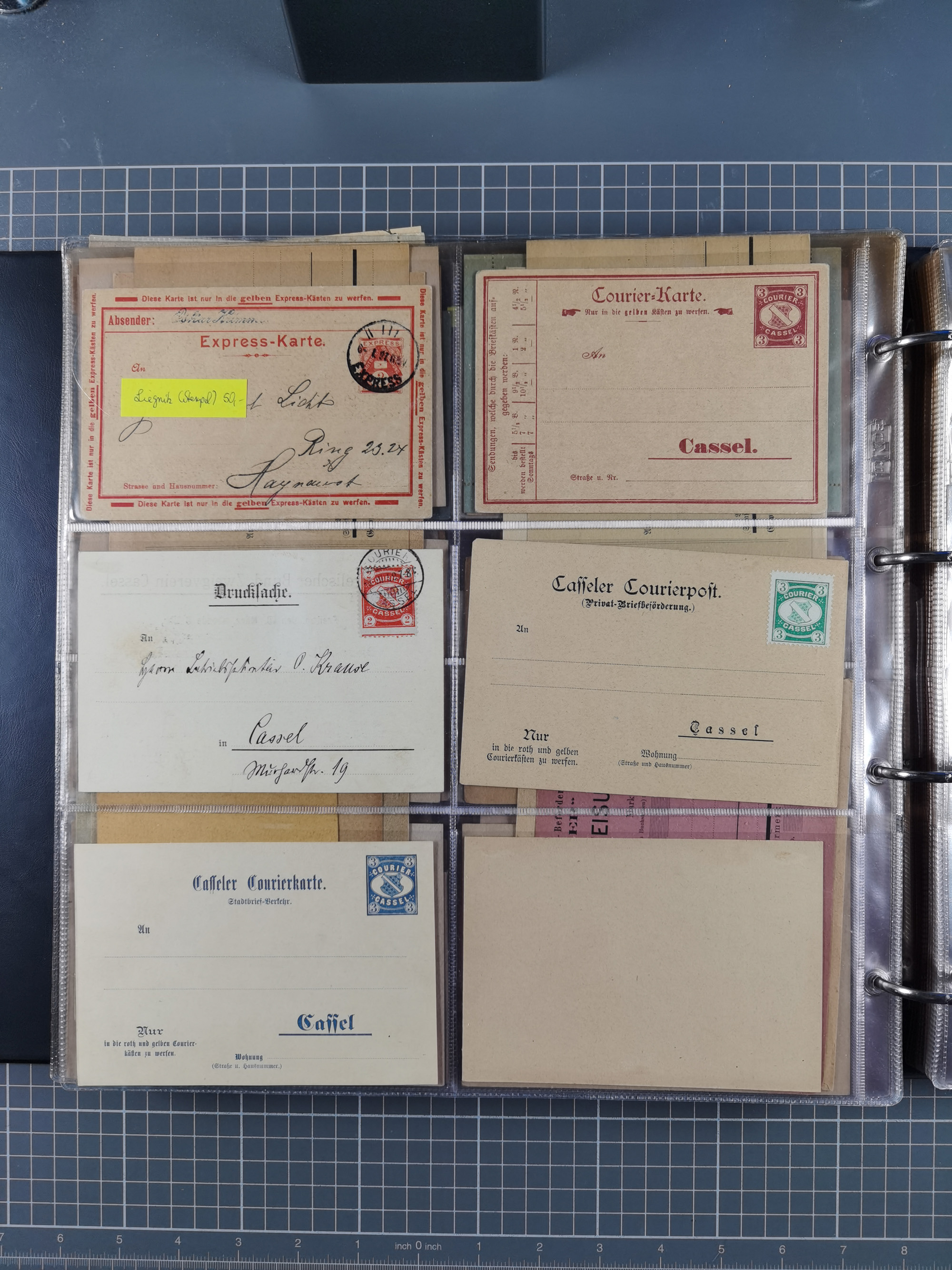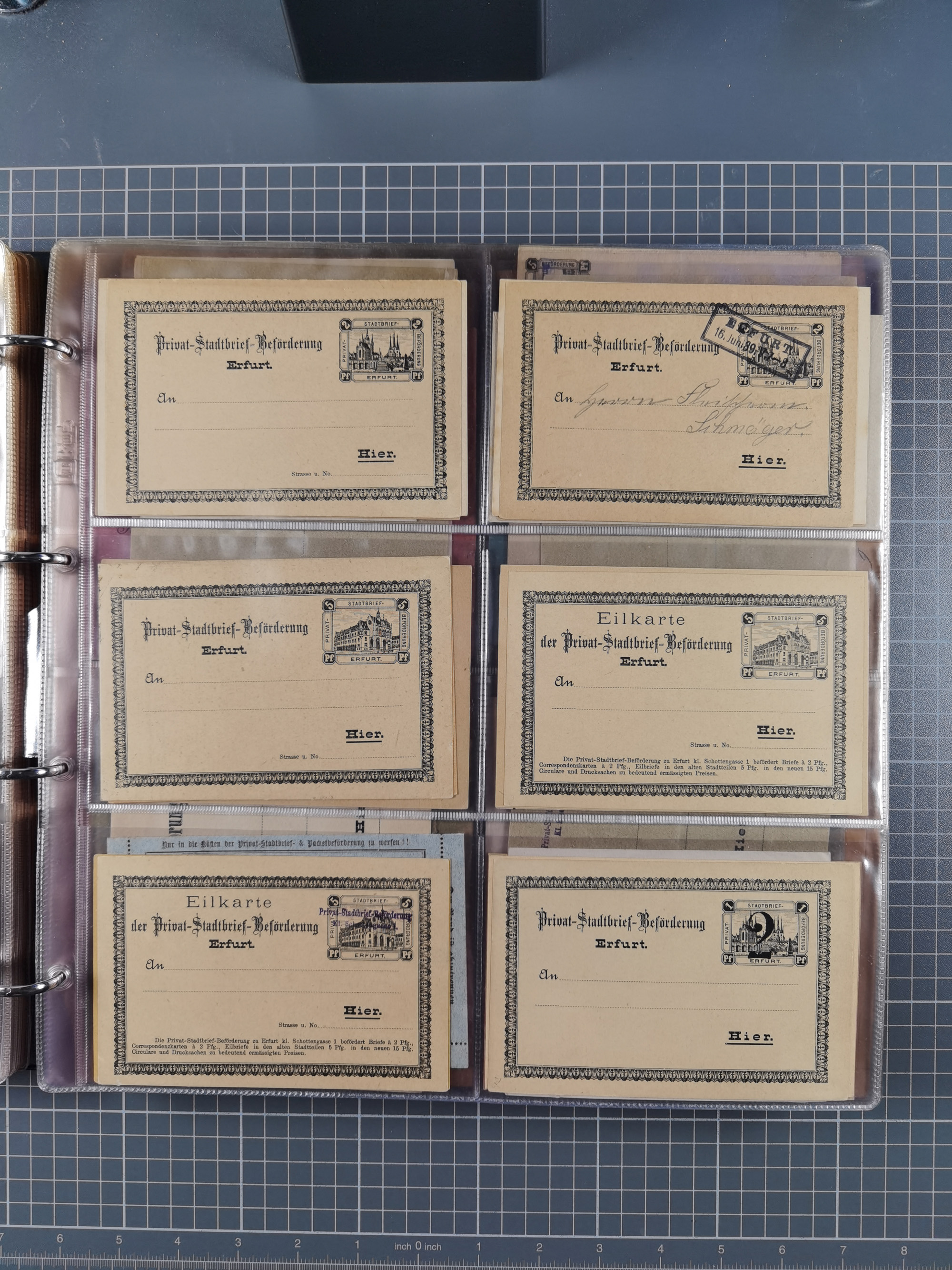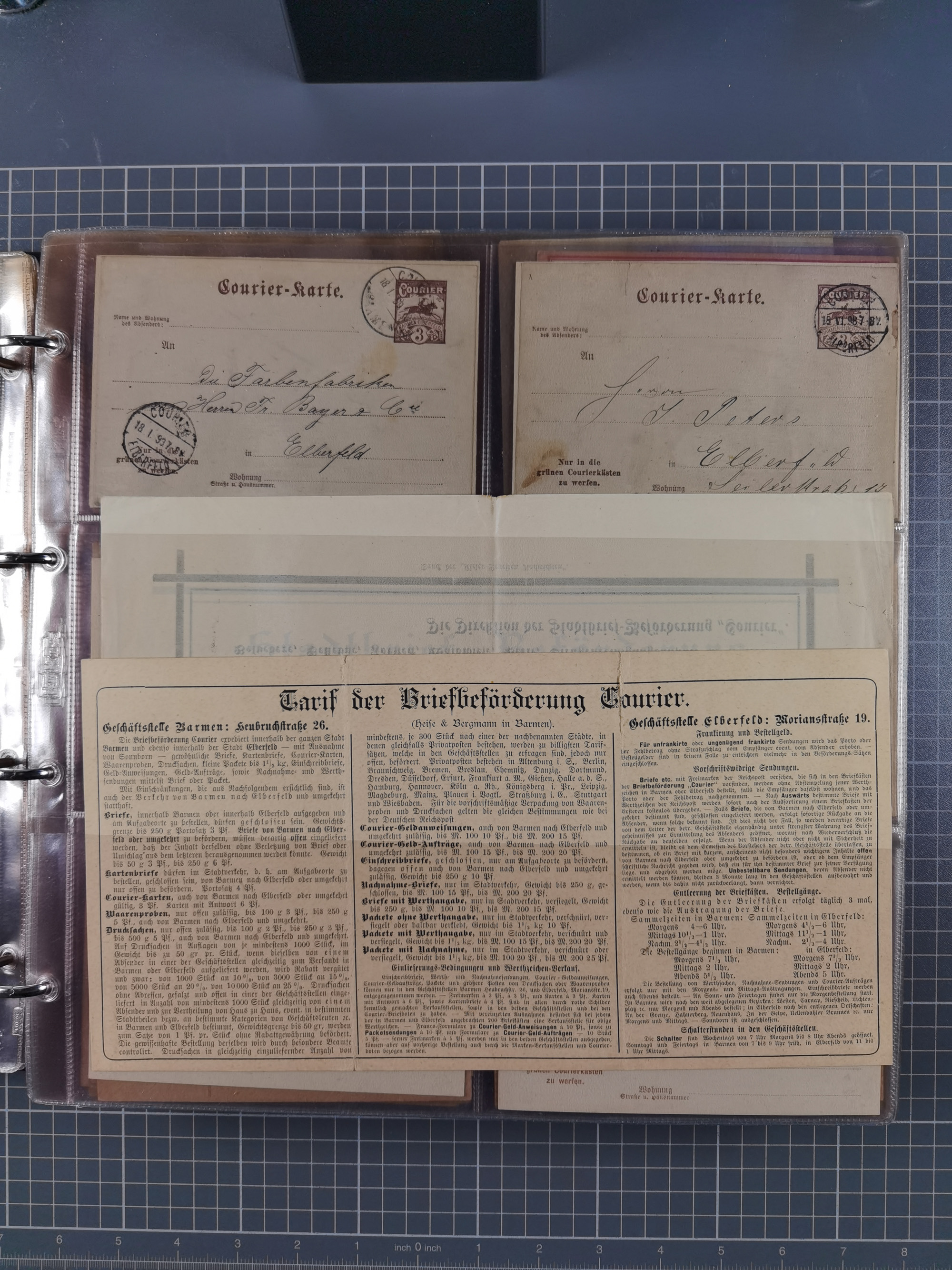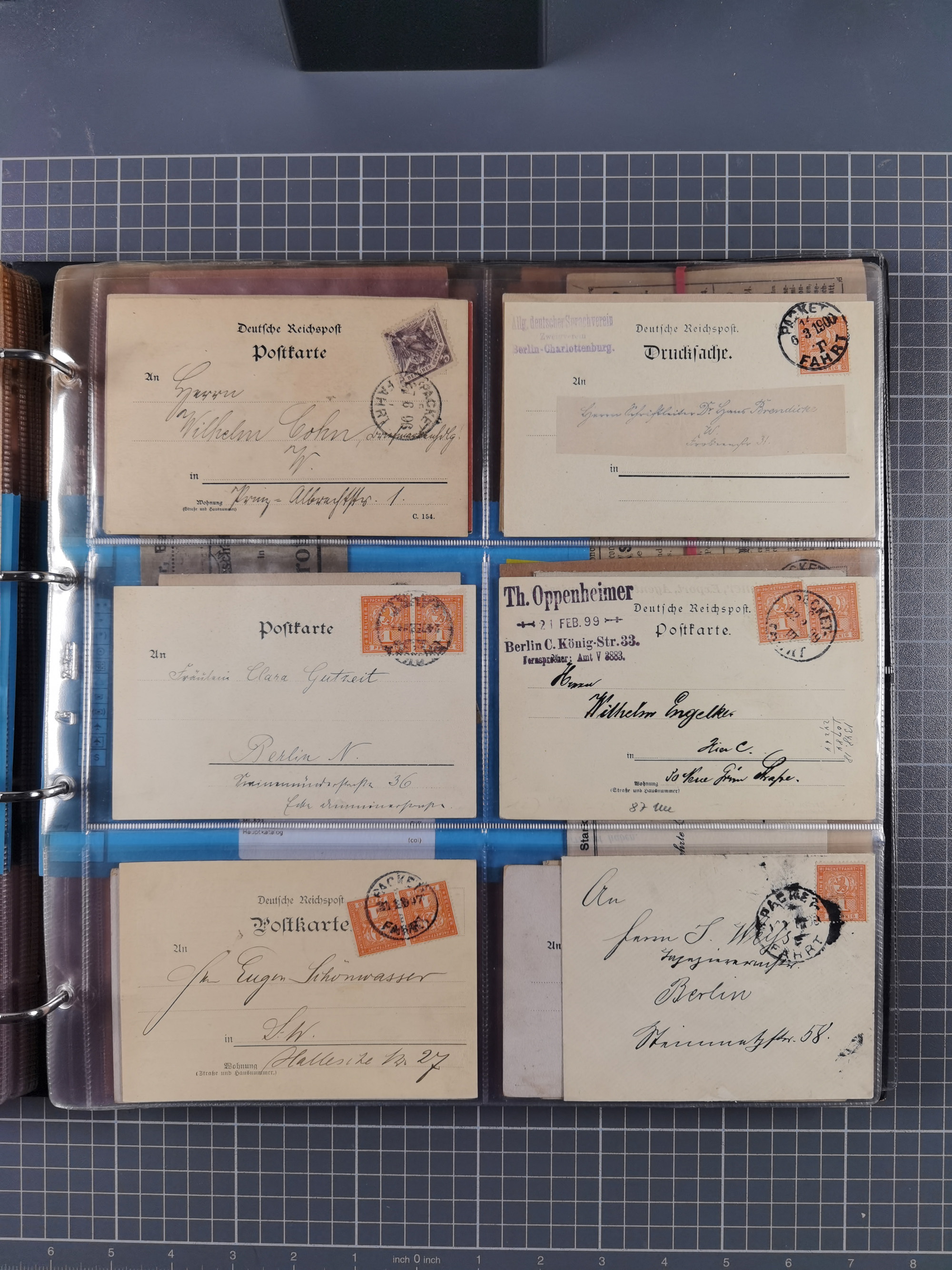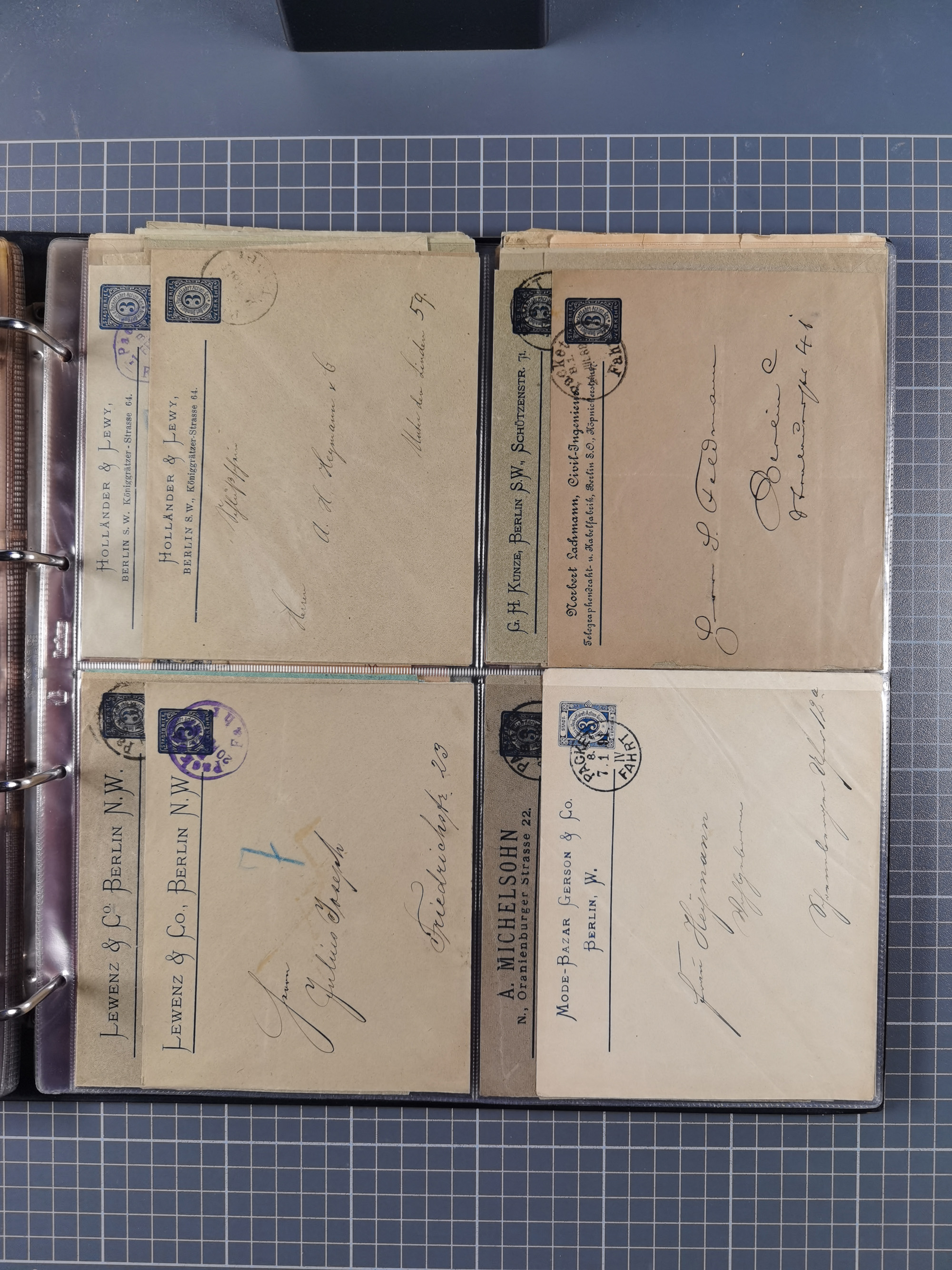 Auerbach bis Zittau: 1886/1900, umfangreiche Sammlung mit über 550 Briefen, Karten sowie ungebrauchten und gebrauchten Ganzsachen und einigen Formularen. Dabei u.a. Augsburg mit K3 gebraucht, Bamberg mit Mi.-Nr. 4 auf drei Briefen/Postkarten, Bonn mit Ganzsachen mit Firmen-Absendern, Dortmund mit P1 gebraucht (kleine Randfehler), Duisburg mit etwas fehlerhafter P2 gebraucht, Kassel Mi.-Nr. 14 auf Postkarte, Krefeld-Express-Beförderung Mi.-Nr. 5 auf Briefvorderseite, Mönchengladbach Courier Mi.-Nr. 4 auf Brief, Offenbach Privat-Post-Verkehr P1 gebraucht, Rostock K1 gebraucht, Worms K1 als Vorderseite gebraucht und Zittau P3 gebraucht mit Text. Die Erhaltung ist zum Teil leicht fehlerhaft, meist aber einwandfrei