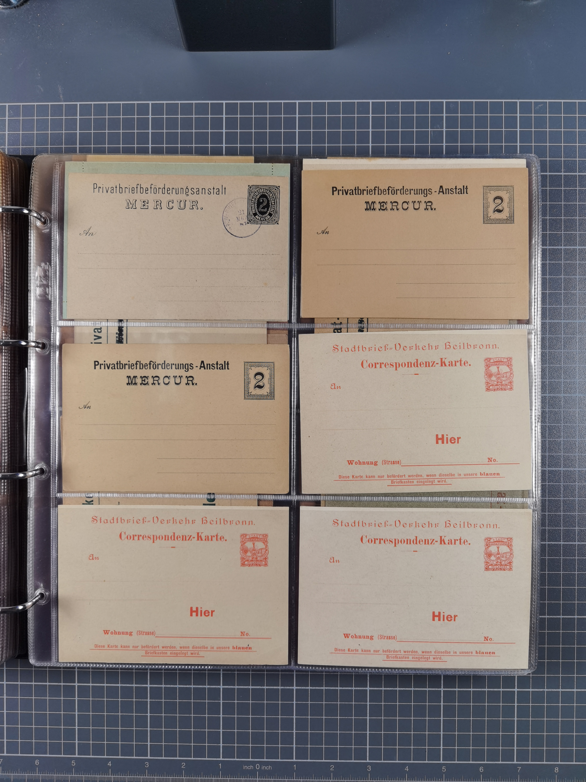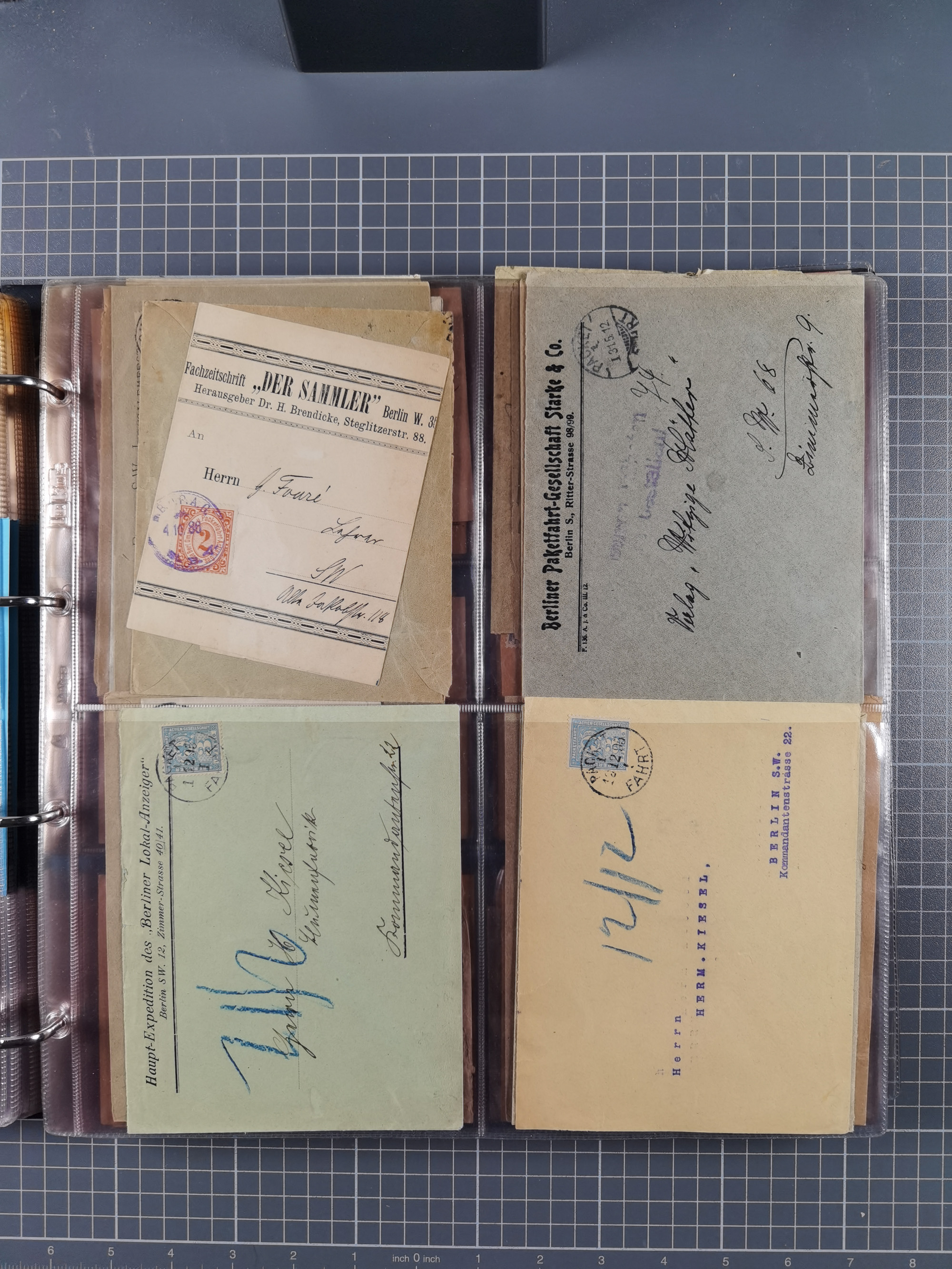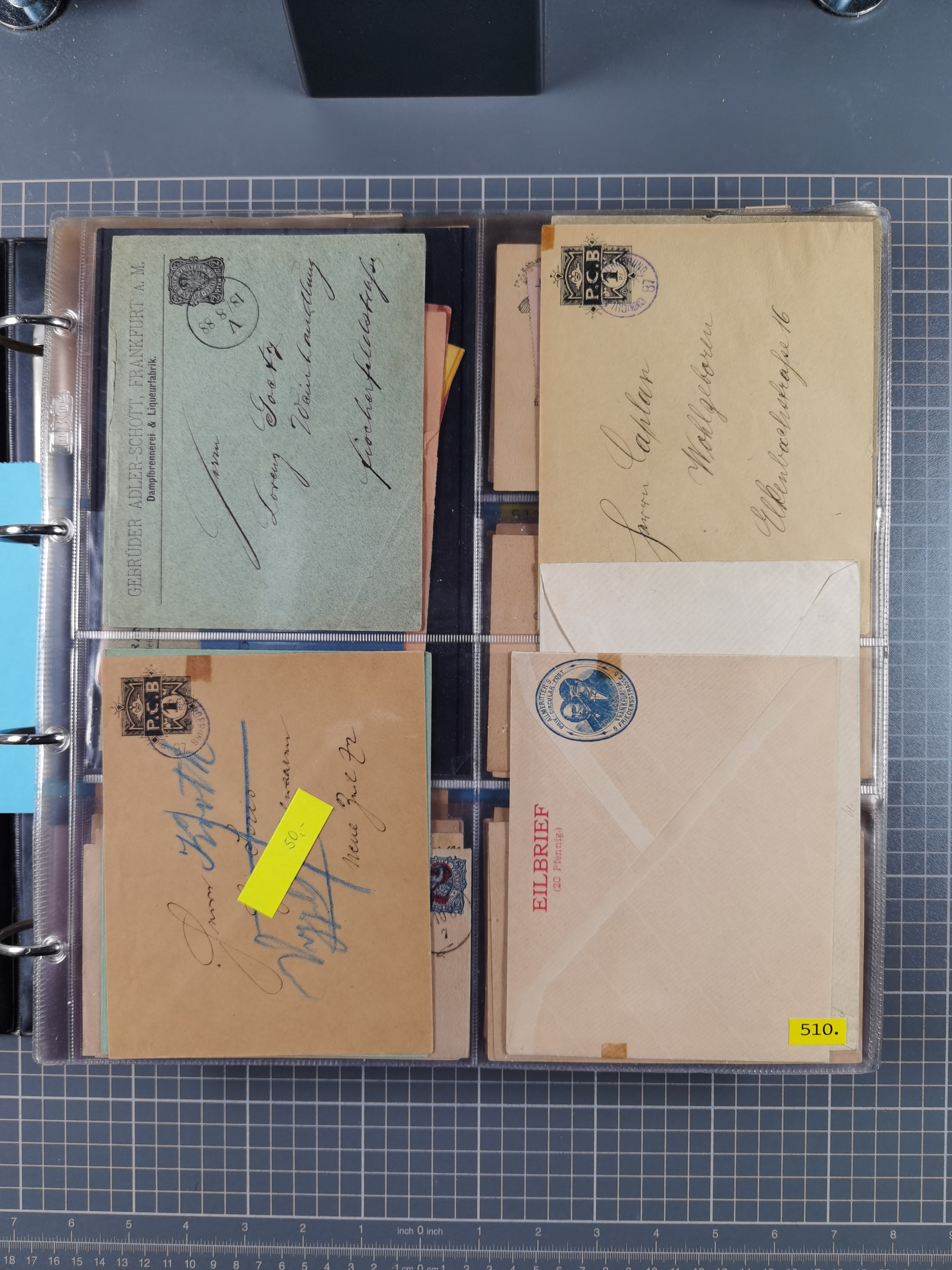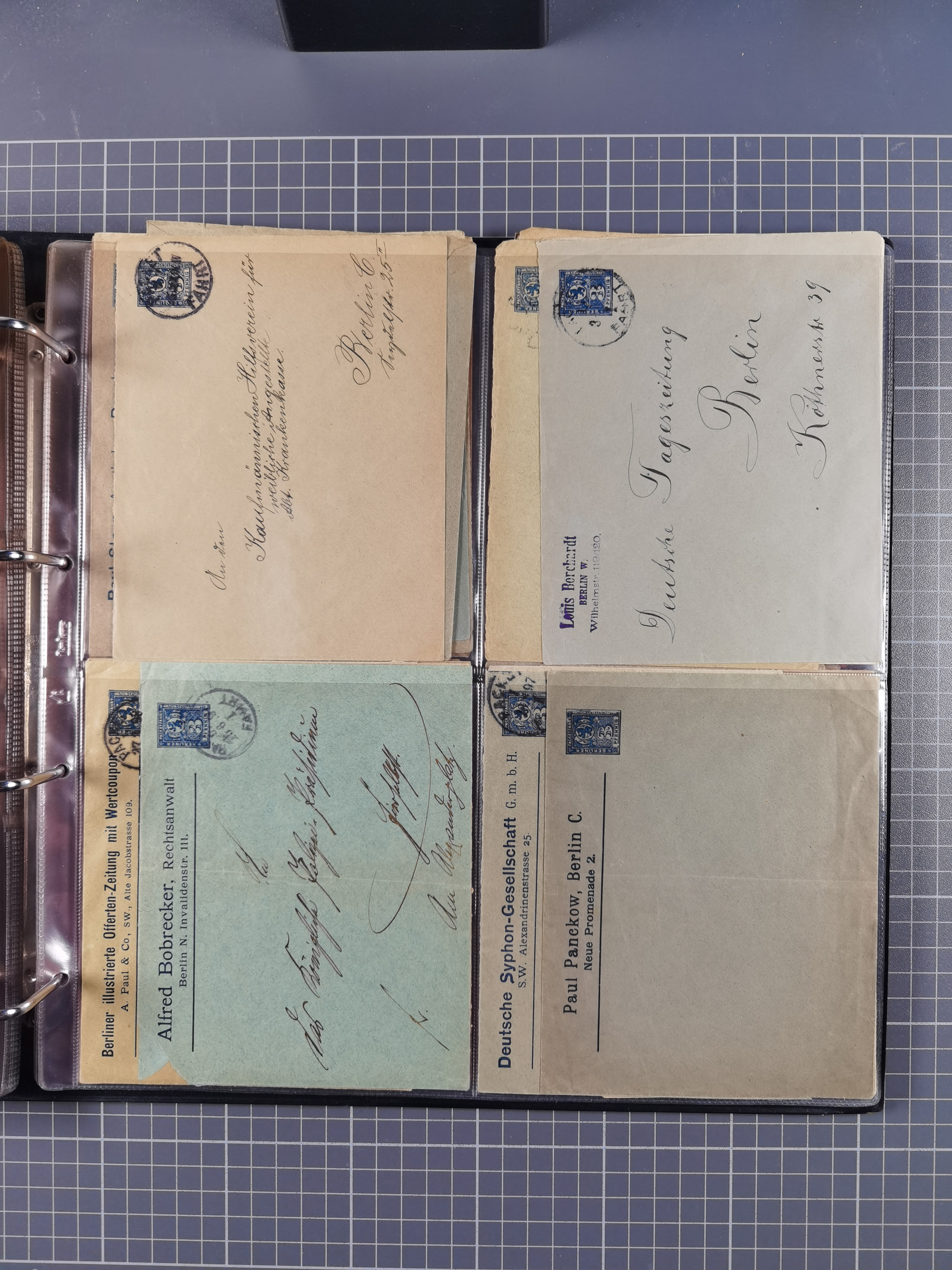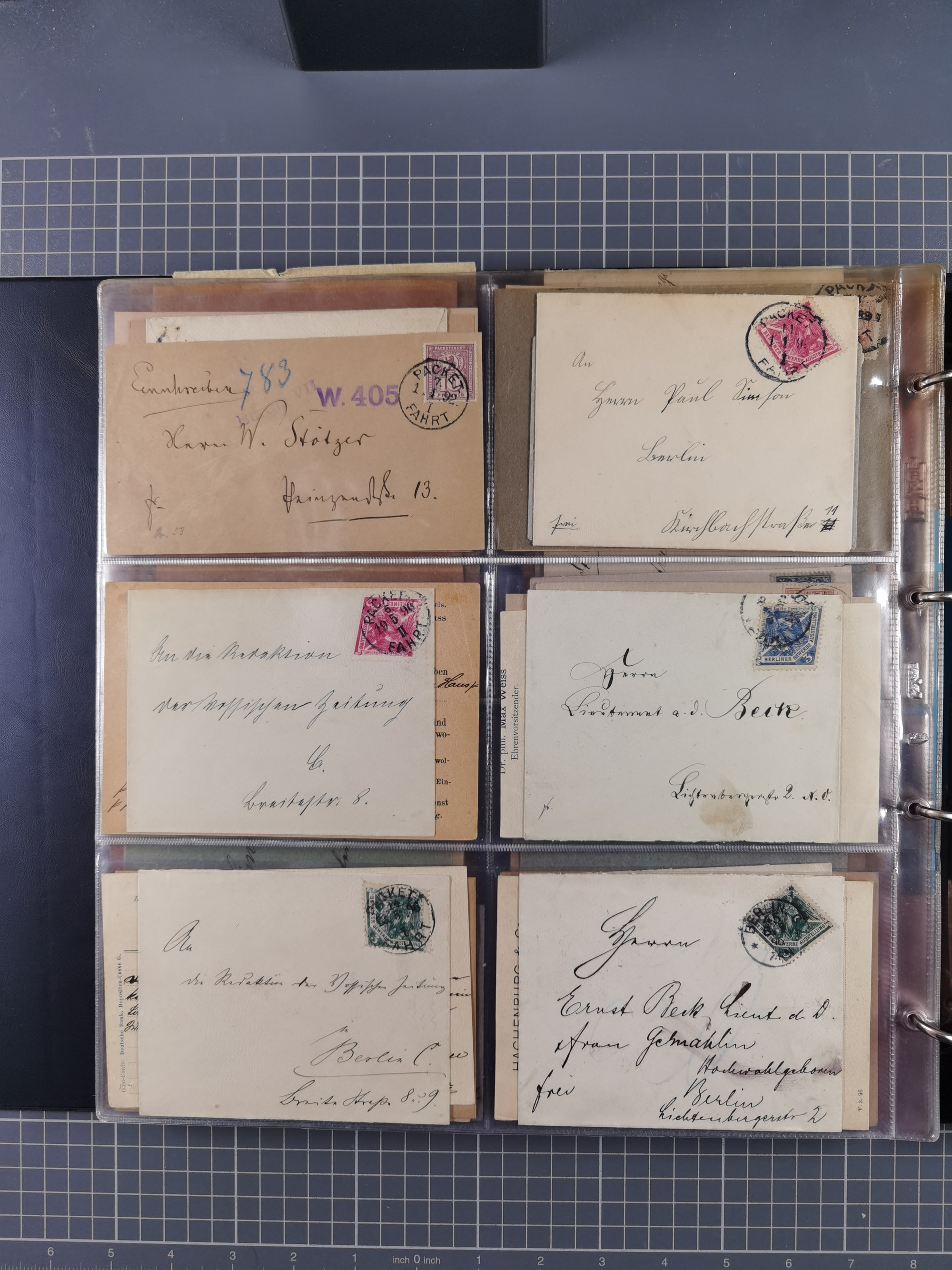 Auerbach bis Zittau: 1886/1900, umfangreiche Sammlung mit über 550 Briefen, Karten sowie ungebrauchten und gebrauchten Ganzsachen und einigen Formularen. Dabei u.a. Augsburg mit K3 gebraucht, Bamberg mit Mi.-Nr. 4 auf drei Briefen/Postkarten, Bonn mit Ganzsachen mit Firmen-Absendern, Dortmund mit P1 gebraucht (kleine Randfehler), Duisburg mit etwas fehlerhafter P2 gebraucht, Kassel Mi.-Nr. 14 auf Postkarte, Krefeld-Express-Beförderung Mi.-Nr. 5 auf Briefvorderseite, Mönchengladbach Courier Mi.-Nr. 4 auf Brief, Offenbach Privat-Post-Verkehr P1 gebraucht, Rostock K1 gebraucht, Worms K1 als Vorderseite gebraucht und Zittau P3 gebraucht mit Text. Die Erhaltung ist zum Teil leicht fehlerhaft, meist aber einwandfrei
