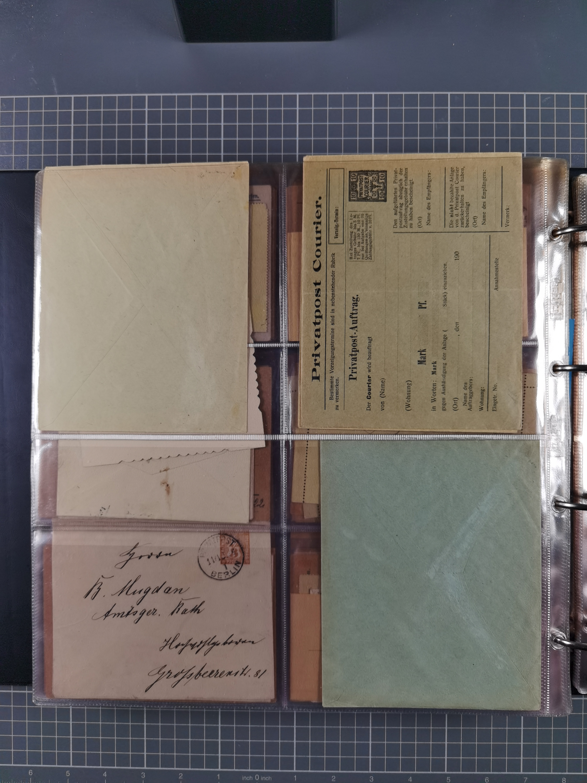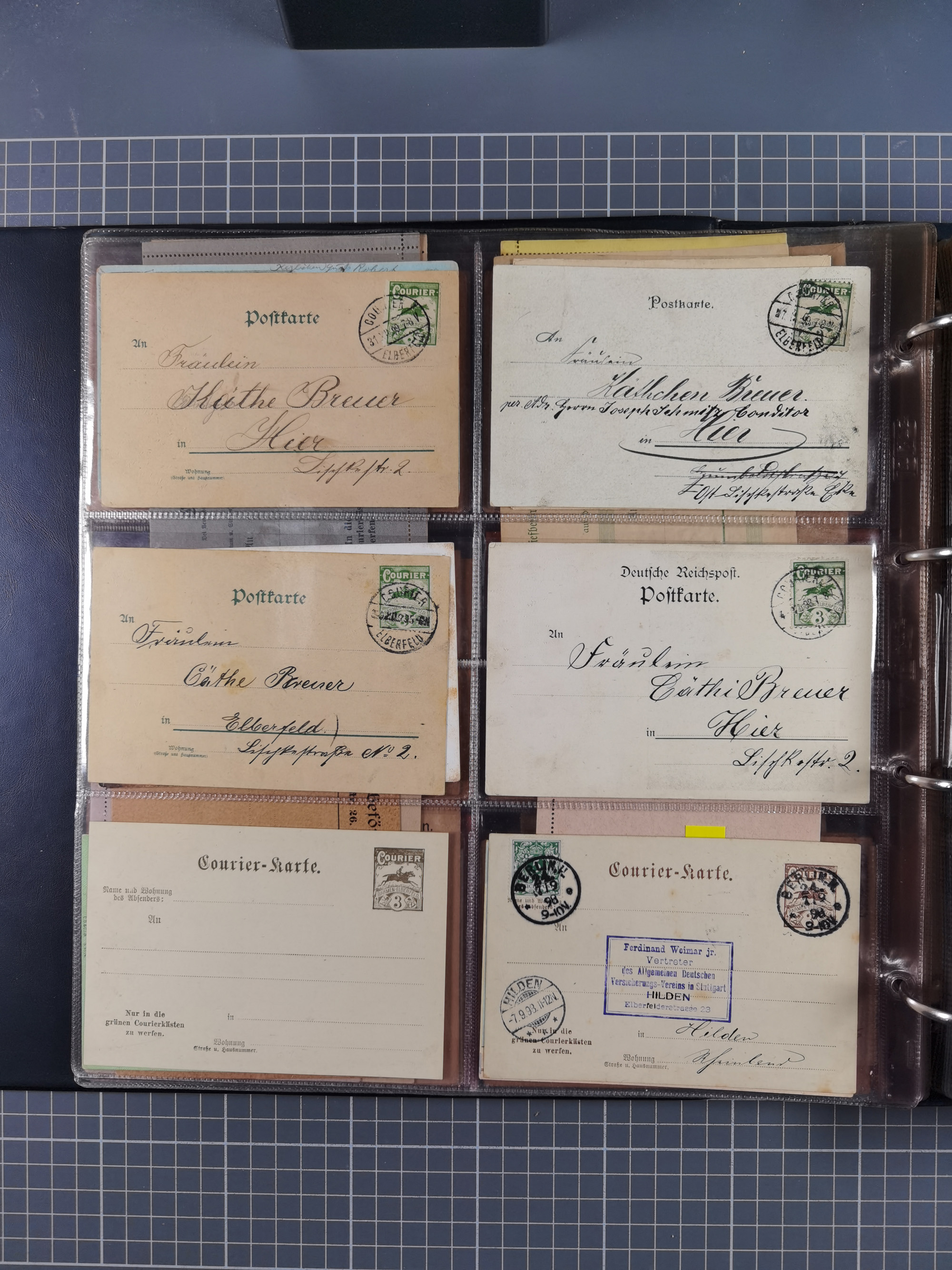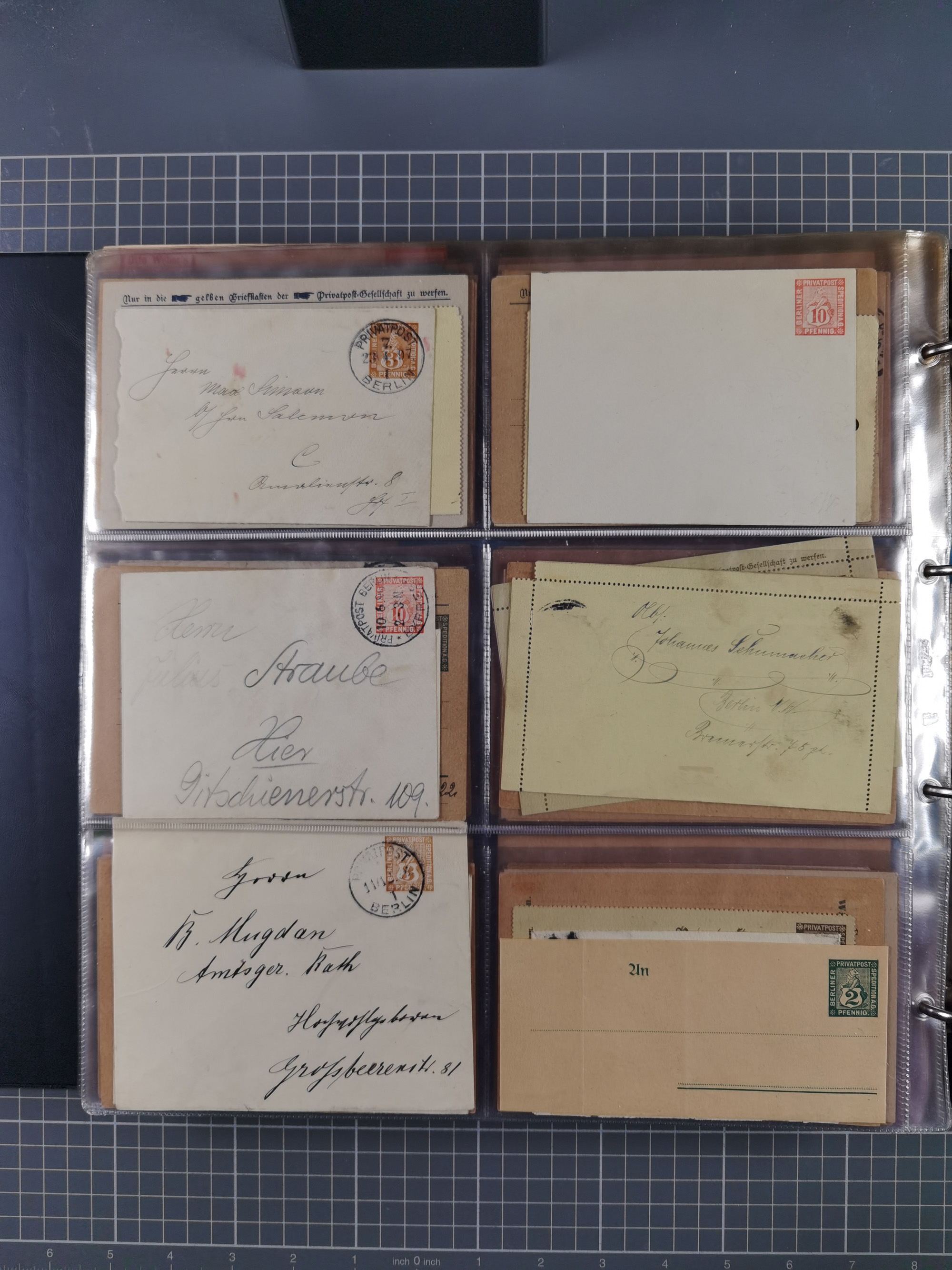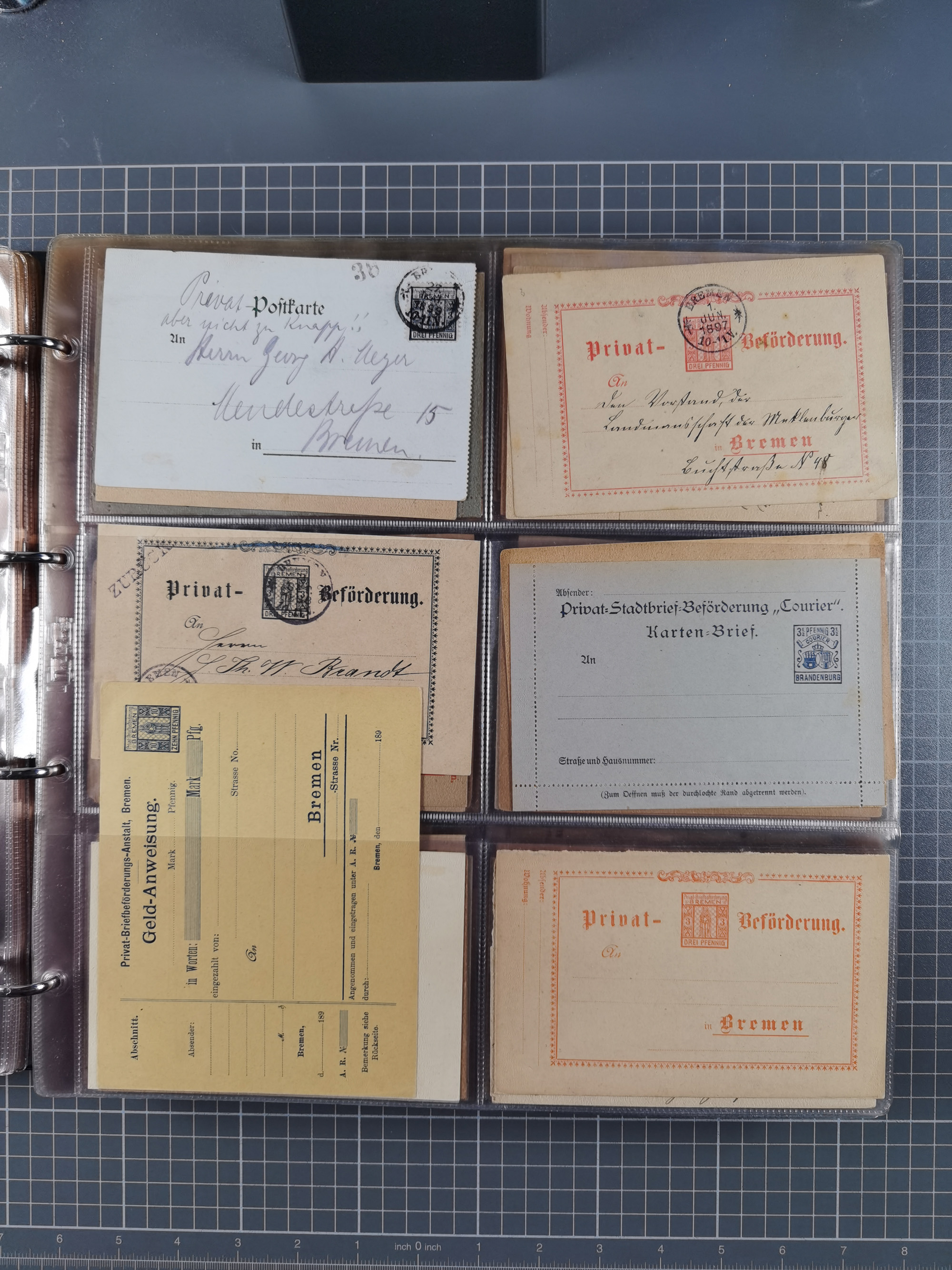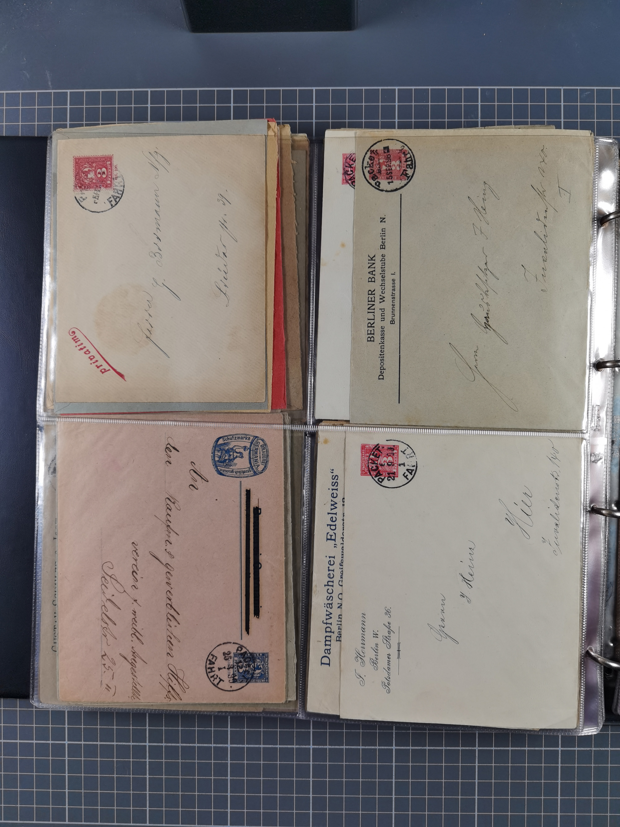 Auerbach bis Zittau: 1886/1900, umfangreiche Sammlung mit über 550 Briefen, Karten sowie ungebrauchten und gebrauchten Ganzsachen und einigen Formularen. Dabei u.a. Augsburg mit K3 gebraucht, Bamberg mit Mi.-Nr. 4 auf drei Briefen/Postkarten, Bonn mit Ganzsachen mit Firmen-Absendern, Dortmund mit P1 gebraucht (kleine Randfehler), Duisburg mit etwas fehlerhafter P2 gebraucht, Kassel Mi.-Nr. 14 auf Postkarte, Krefeld-Express-Beförderung Mi.-Nr. 5 auf Briefvorderseite, Mönchengladbach Courier Mi.-Nr. 4 auf Brief, Offenbach Privat-Post-Verkehr P1 gebraucht, Rostock K1 gebraucht, Worms K1 als Vorderseite gebraucht und Zittau P3 gebraucht mit Text. Die Erhaltung ist zum Teil leicht fehlerhaft, meist aber einwandfrei