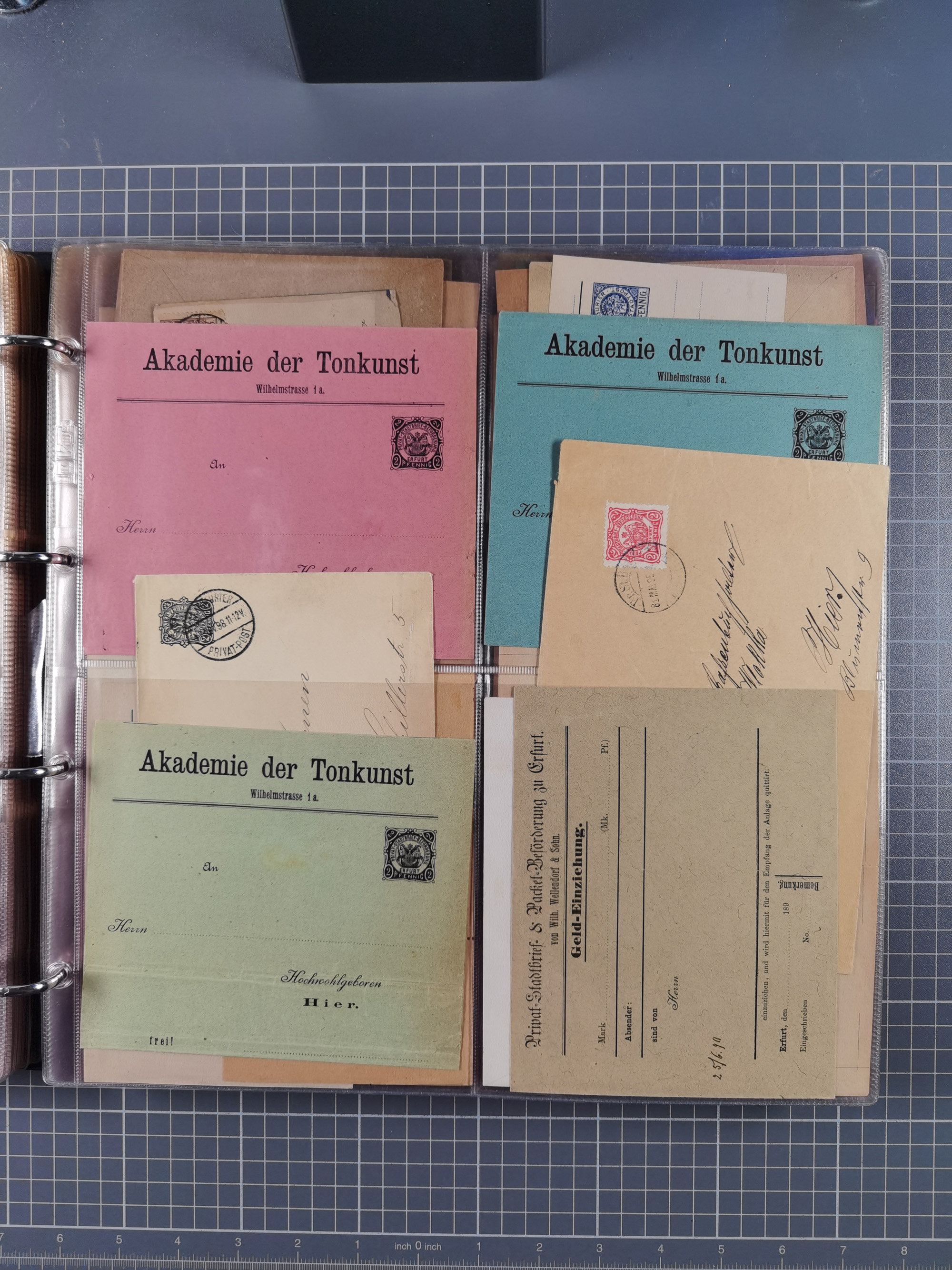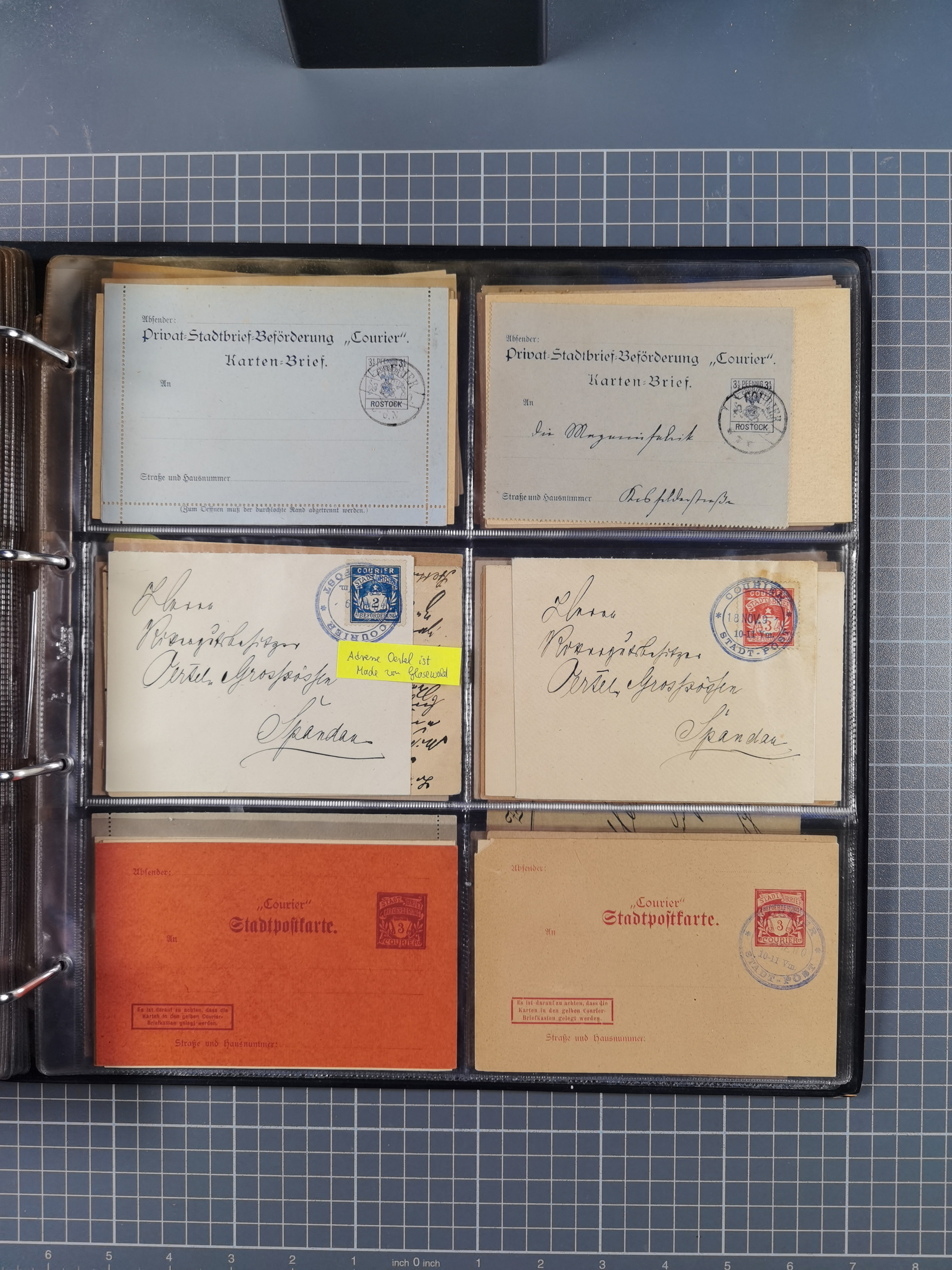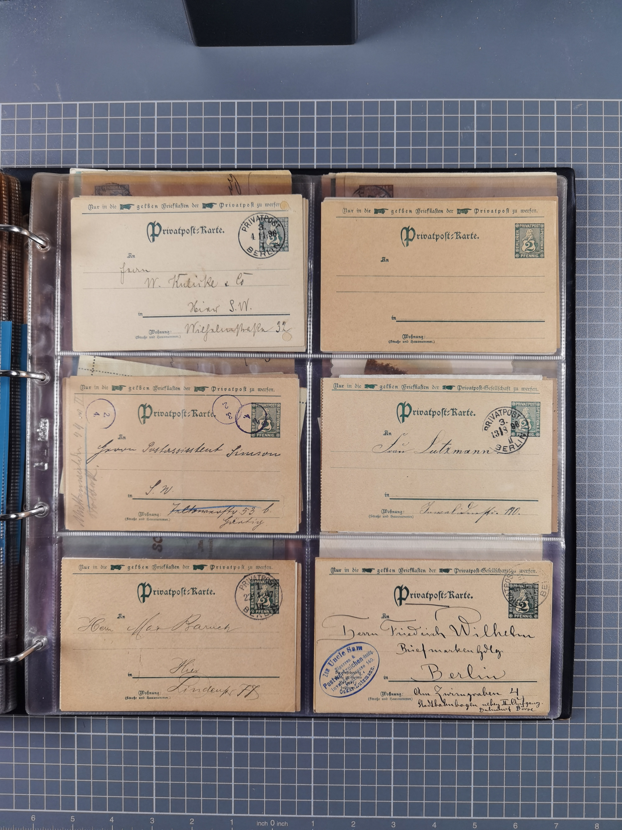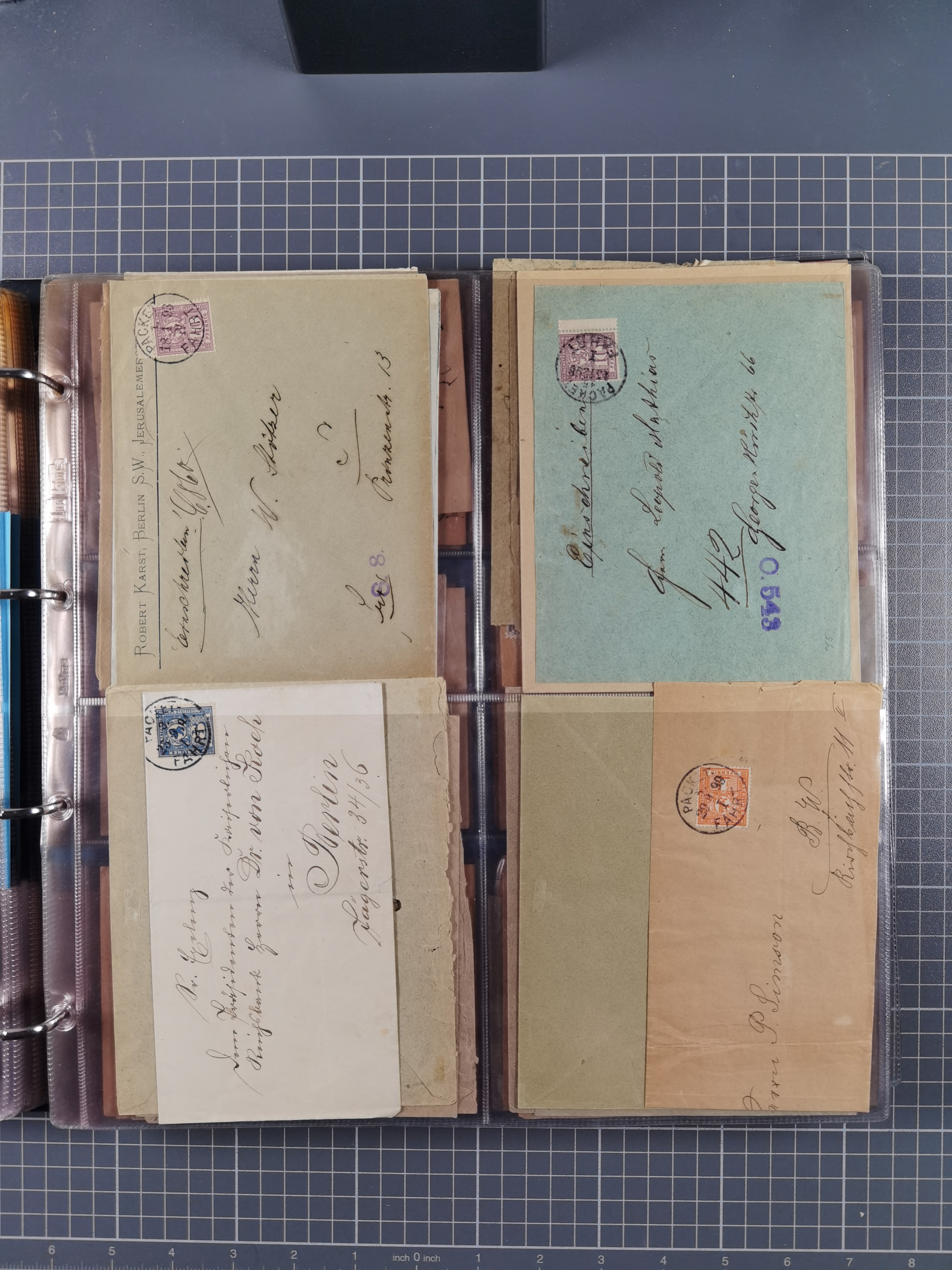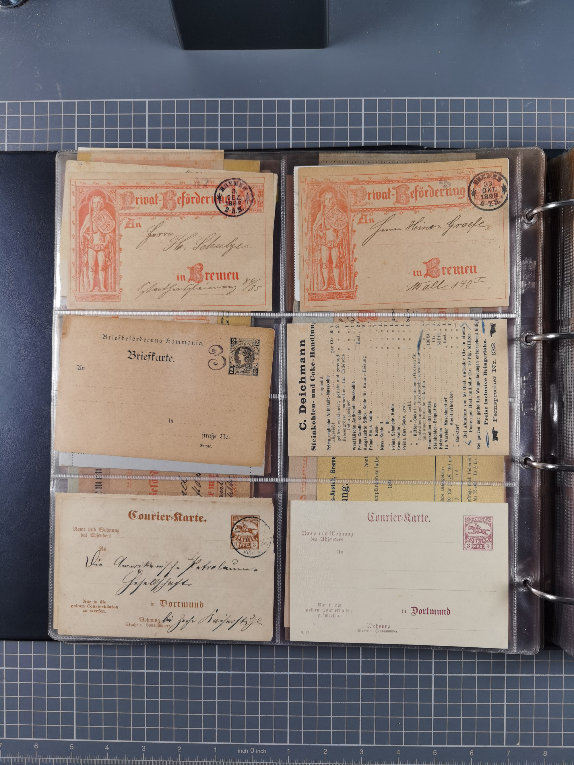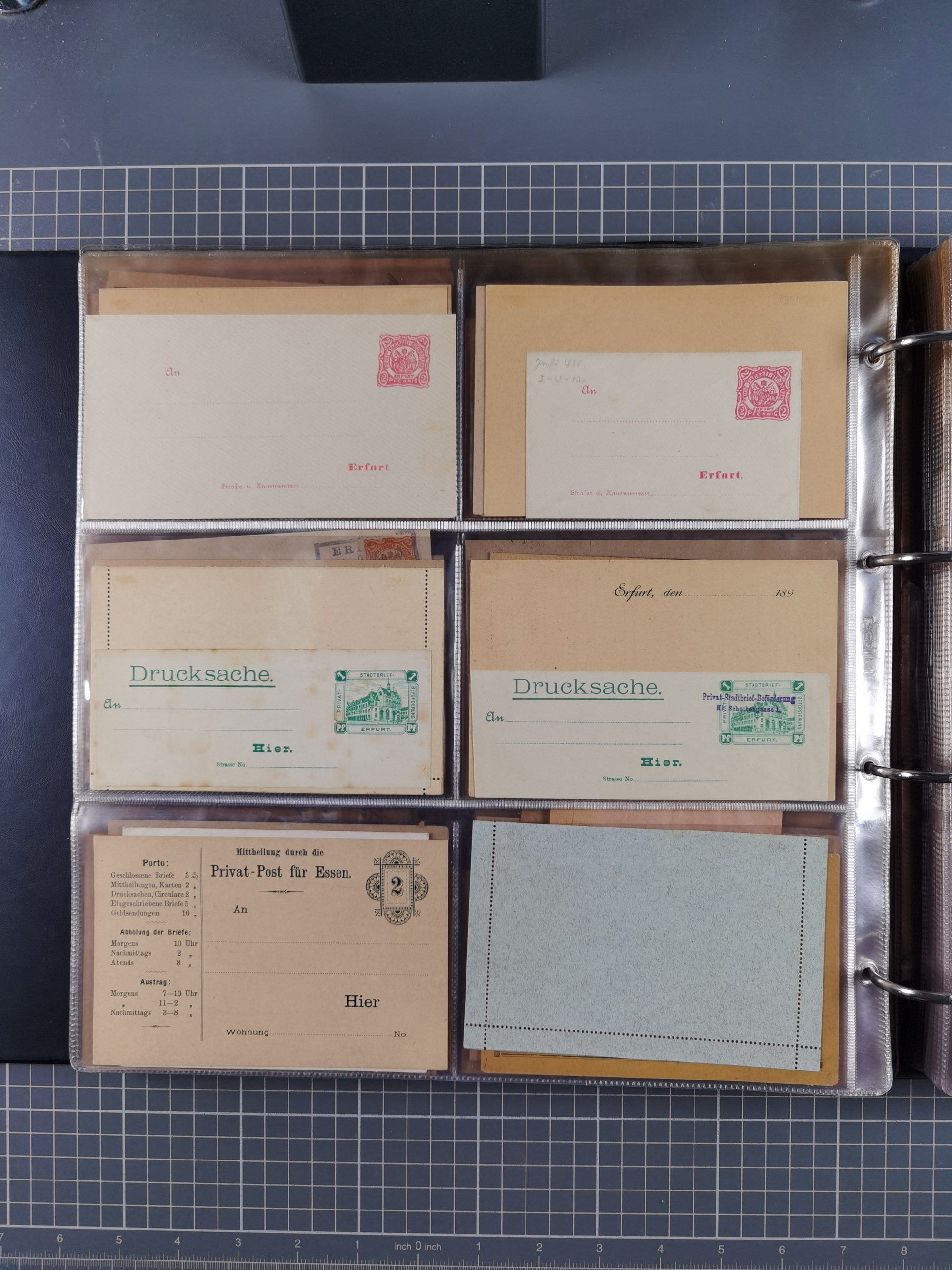 Auerbach bis Zittau: 1886/1900, umfangreiche Sammlung mit über 550 Briefen, Karten sowie ungebrauchten und gebrauchten Ganzsachen und einigen Formularen. Dabei u.a. Augsburg mit K3 gebraucht, Bamberg mit Mi.-Nr. 4 auf drei Briefen/Postkarten, Bonn mit Ganzsachen mit Firmen-Absendern, Dortmund mit P1 gebraucht (kleine Randfehler), Duisburg mit etwas fehlerhafter P2 gebraucht, Kassel Mi.-Nr. 14 auf Postkarte, Krefeld-Express-Beförderung Mi.-Nr. 5 auf Briefvorderseite, Mönchengladbach Courier Mi.-Nr. 4 auf Brief, Offenbach Privat-Post-Verkehr P1 gebraucht, Rostock K1 gebraucht, Worms K1 als Vorderseite gebraucht und Zittau P3 gebraucht mit Text. Die Erhaltung ist zum Teil leicht fehlerhaft, meist aber einwandfrei