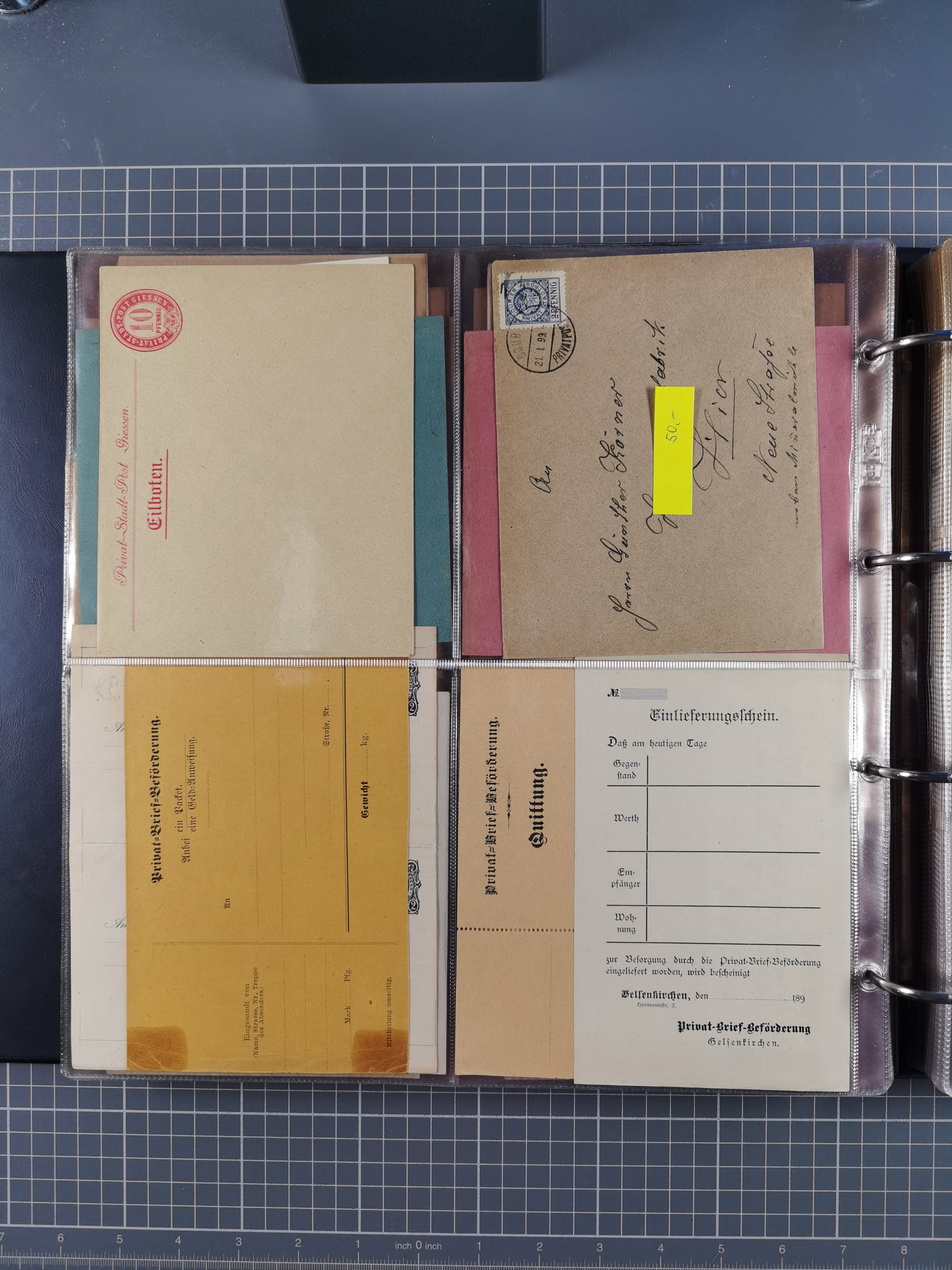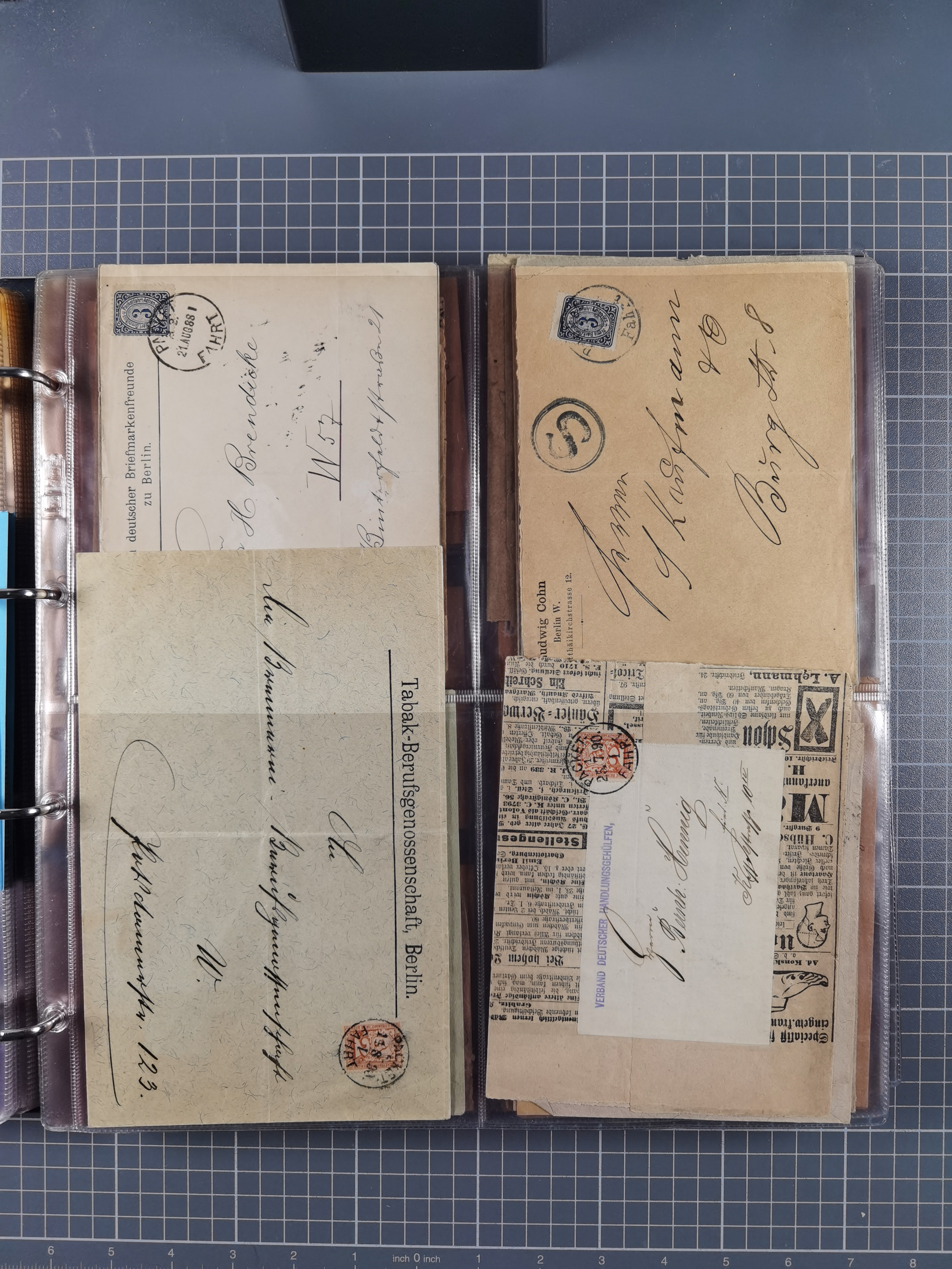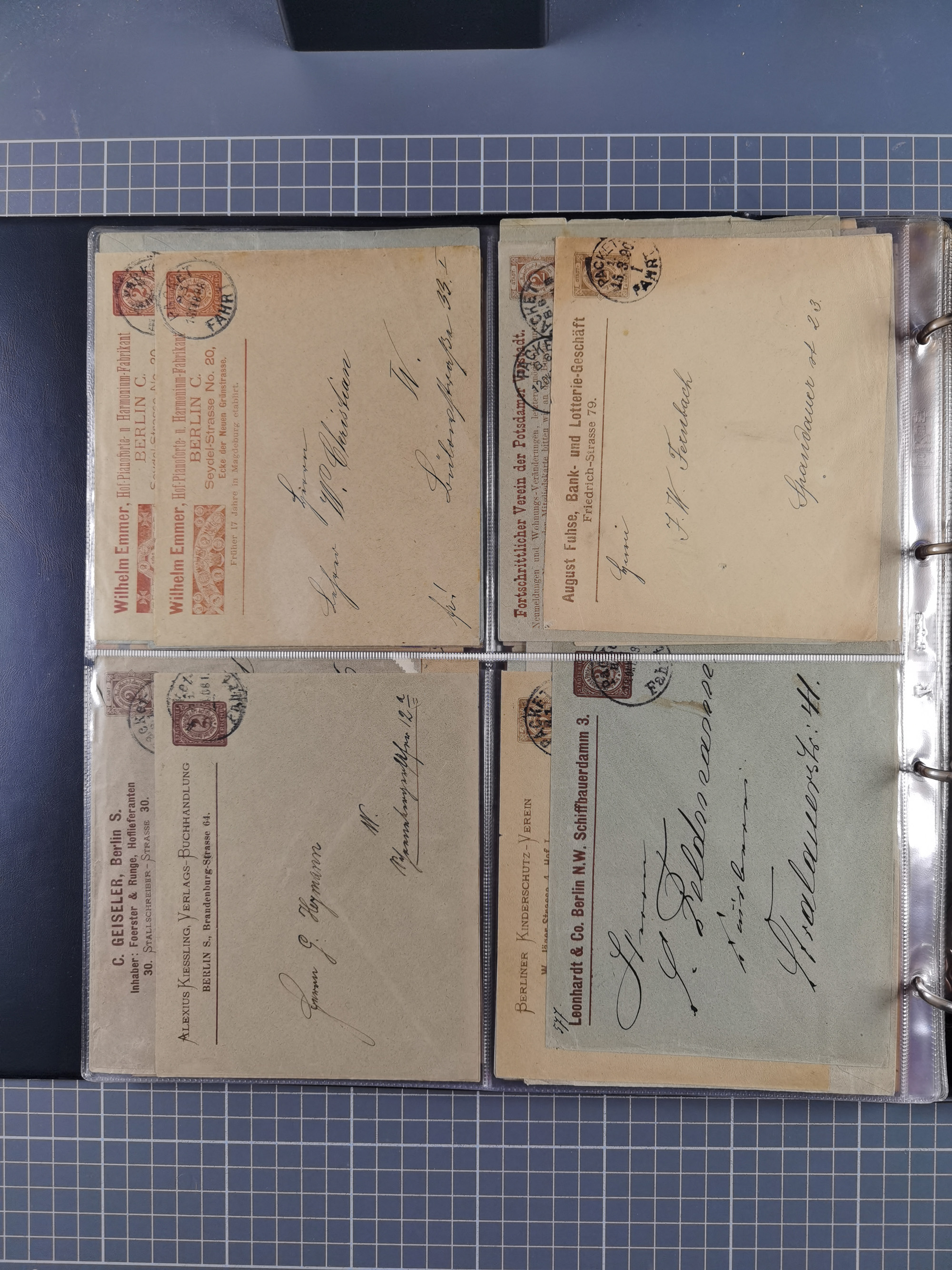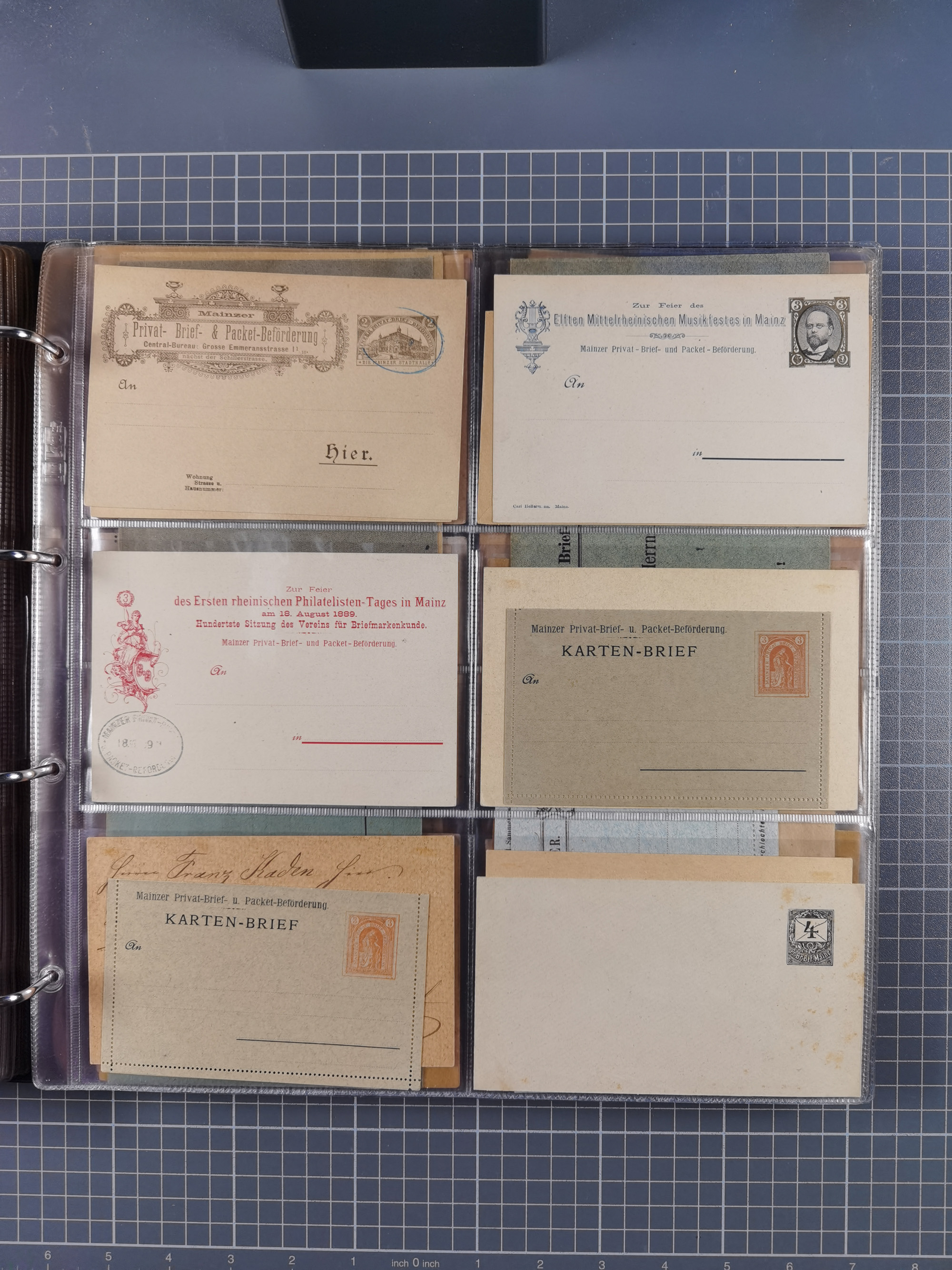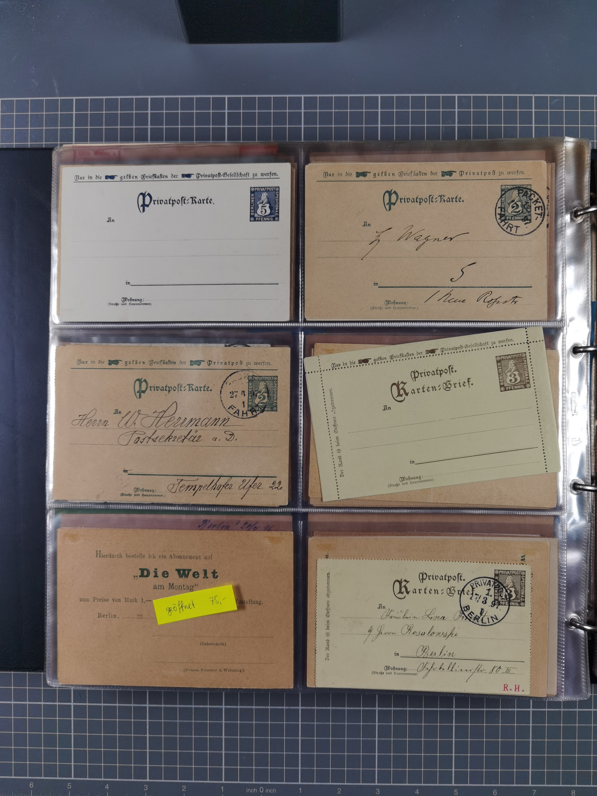 Auerbach bis Zittau: 1886/1900, umfangreiche Sammlung mit über 550 Briefen, Karten sowie ungebrauchten und gebrauchten Ganzsachen und einigen Formularen. Dabei u.a. Augsburg mit K3 gebraucht, Bamberg mit Mi.-Nr. 4 auf drei Briefen/Postkarten, Bonn mit Ganzsachen mit Firmen-Absendern, Dortmund mit P1 gebraucht (kleine Randfehler), Duisburg mit etwas fehlerhafter P2 gebraucht, Kassel Mi.-Nr. 14 auf Postkarte, Krefeld-Express-Beförderung Mi.-Nr. 5 auf Briefvorderseite, Mönchengladbach Courier Mi.-Nr. 4 auf Brief, Offenbach Privat-Post-Verkehr P1 gebraucht, Rostock K1 gebraucht, Worms K1 als Vorderseite gebraucht und Zittau P3 gebraucht mit Text. Die Erhaltung ist zum Teil leicht fehlerhaft, meist aber einwandfrei