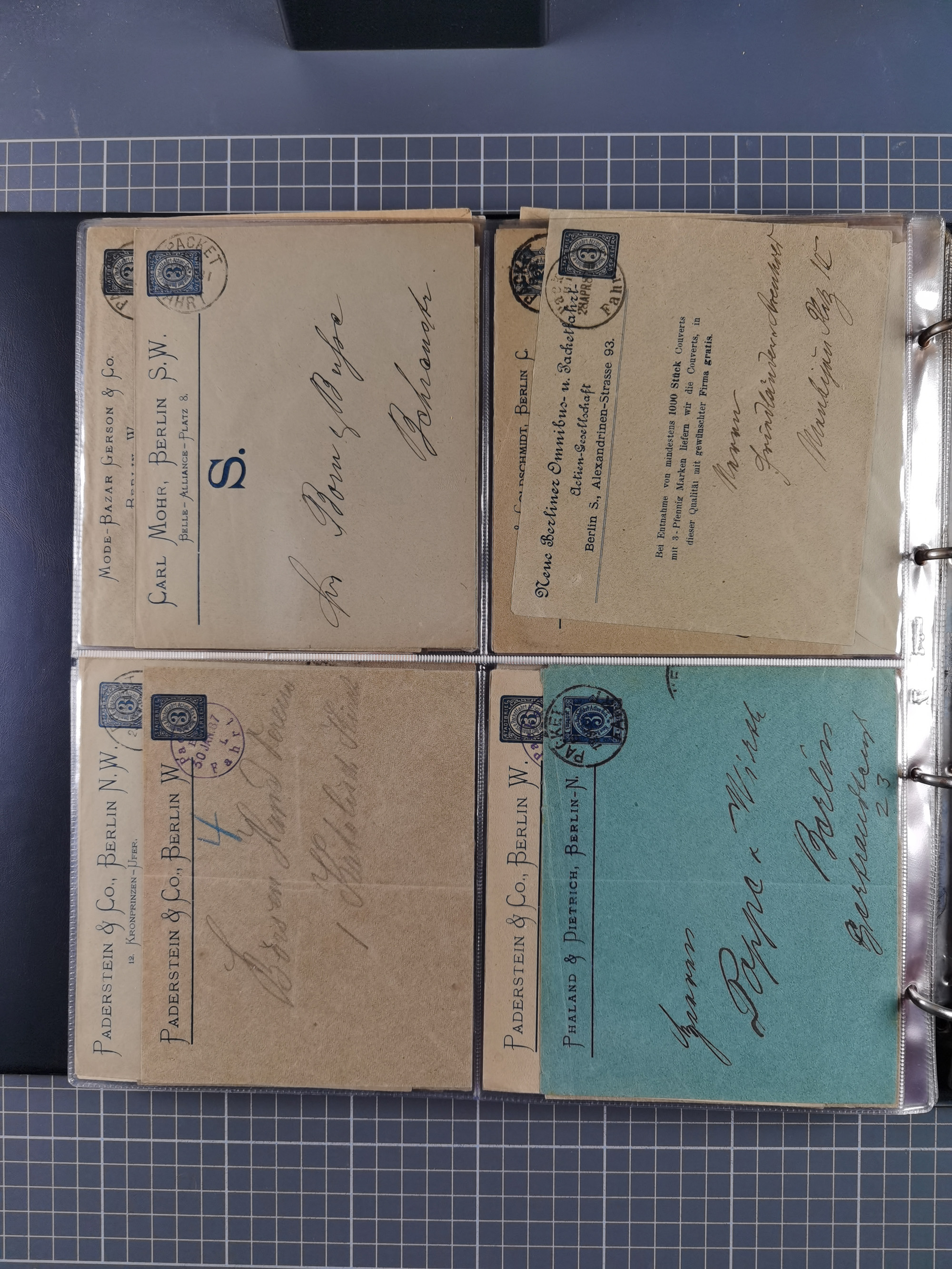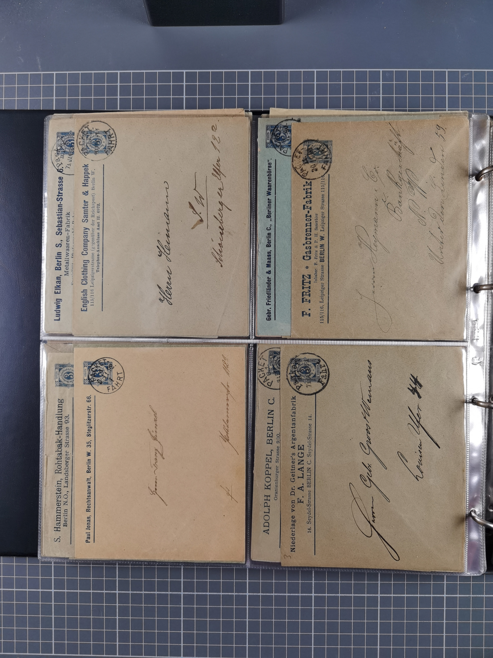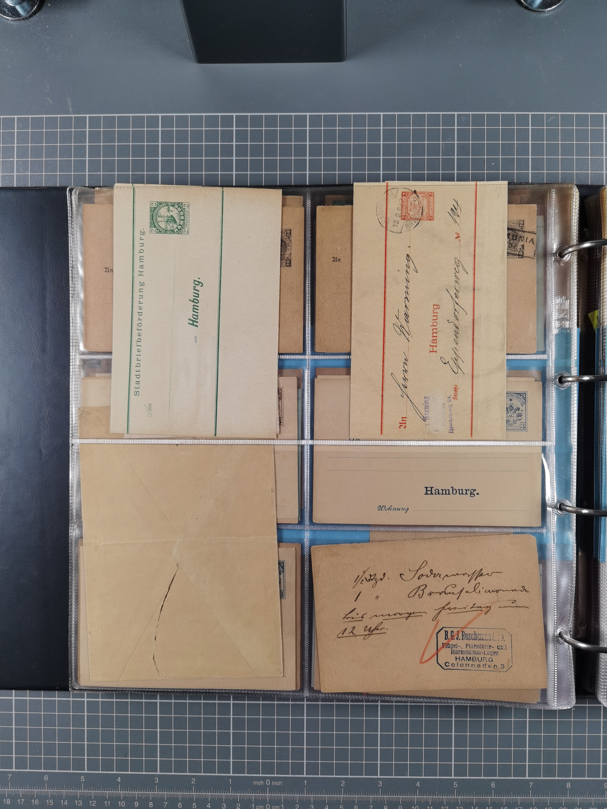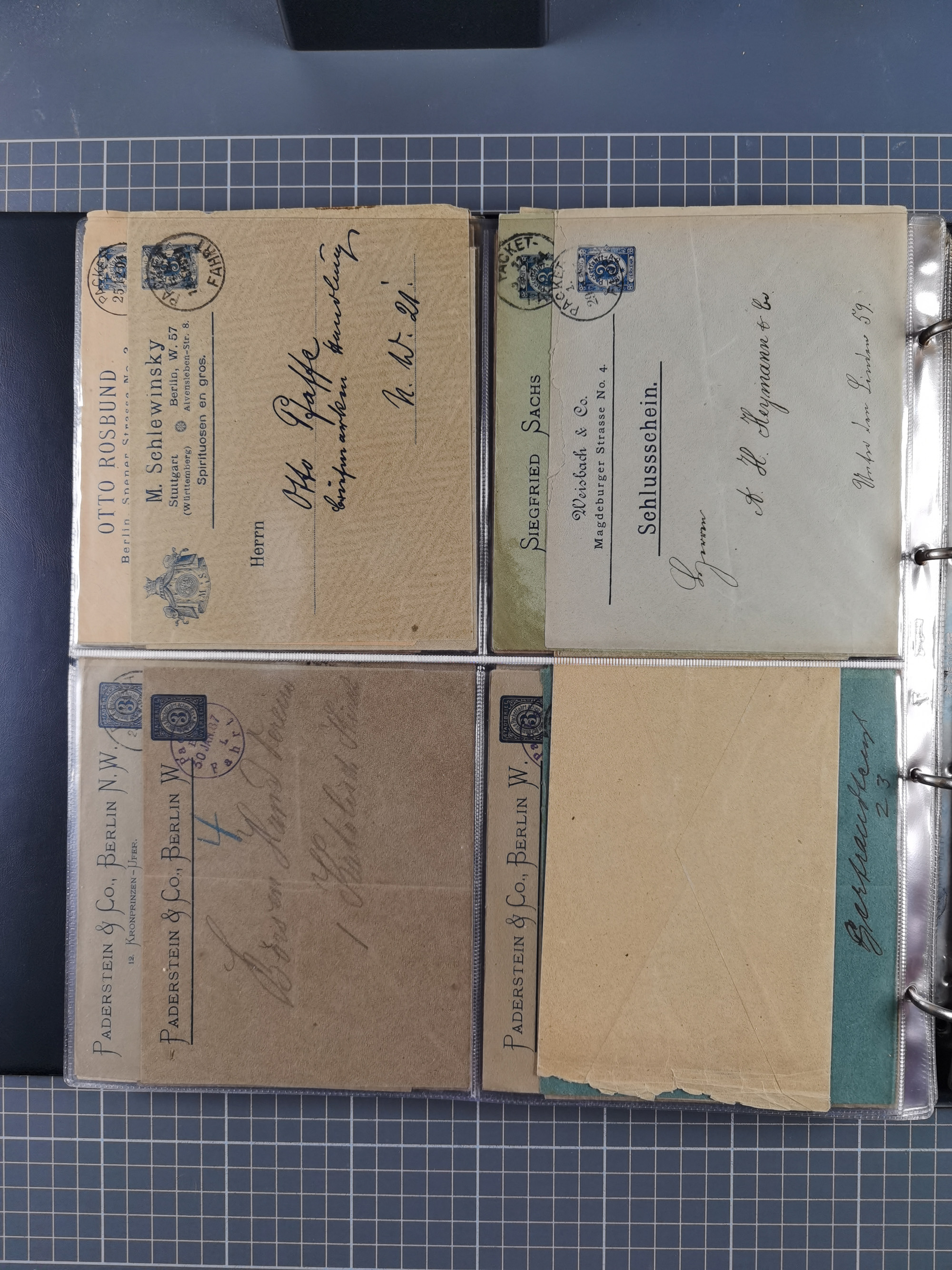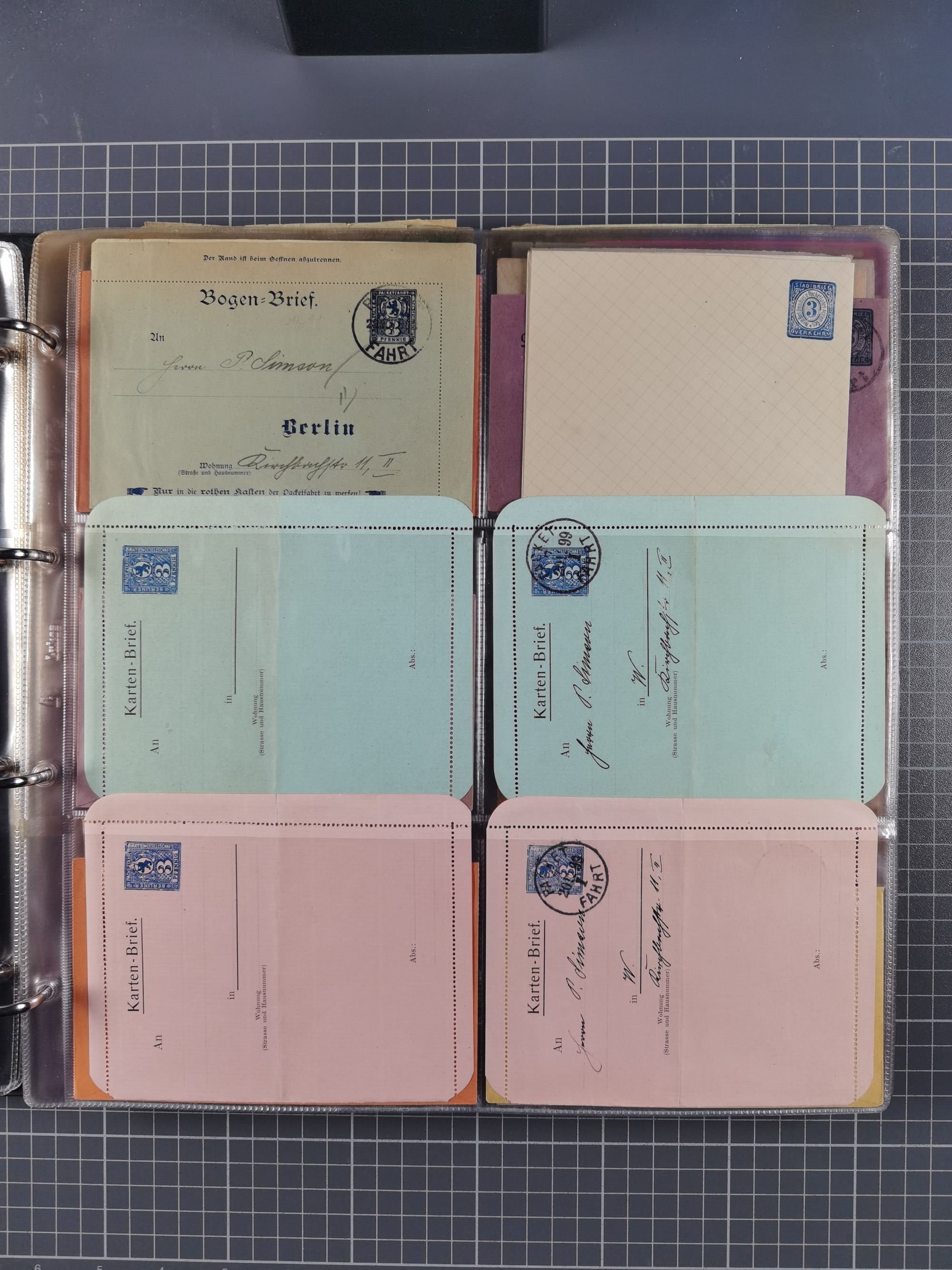 Auerbach bis Zittau: 1886/1900, umfangreiche Sammlung mit über 550 Briefen, Karten sowie ungebrauchten und gebrauchten Ganzsachen und einigen Formularen. Dabei u.a. Augsburg mit K3 gebraucht, Bamberg mit Mi.-Nr. 4 auf drei Briefen/Postkarten, Bonn mit Ganzsachen mit Firmen-Absendern, Dortmund mit P1 gebraucht (kleine Randfehler), Duisburg mit etwas fehlerhafter P2 gebraucht, Kassel Mi.-Nr. 14 auf Postkarte, Krefeld-Express-Beförderung Mi.-Nr. 5 auf Briefvorderseite, Mönchengladbach Courier Mi.-Nr. 4 auf Brief, Offenbach Privat-Post-Verkehr P1 gebraucht, Rostock K1 gebraucht, Worms K1 als Vorderseite gebraucht und Zittau P3 gebraucht mit Text. Die Erhaltung ist zum Teil leicht fehlerhaft, meist aber einwandfrei