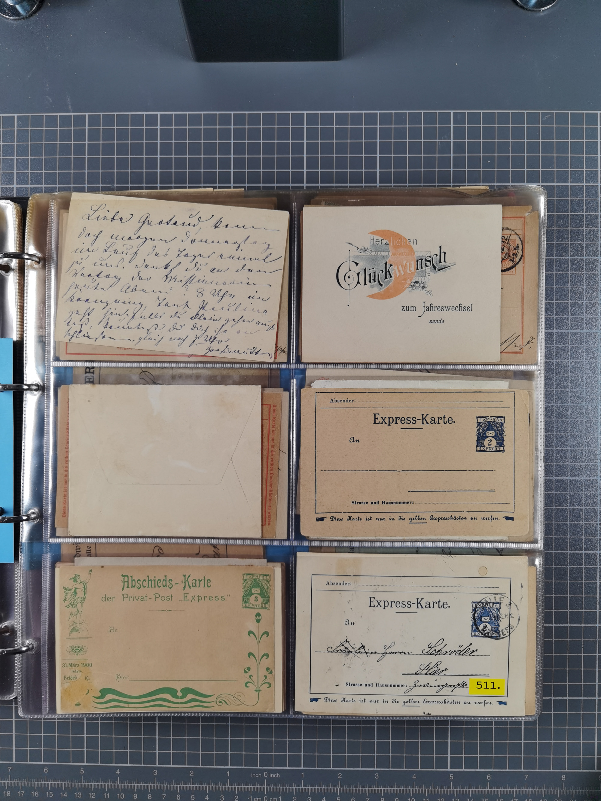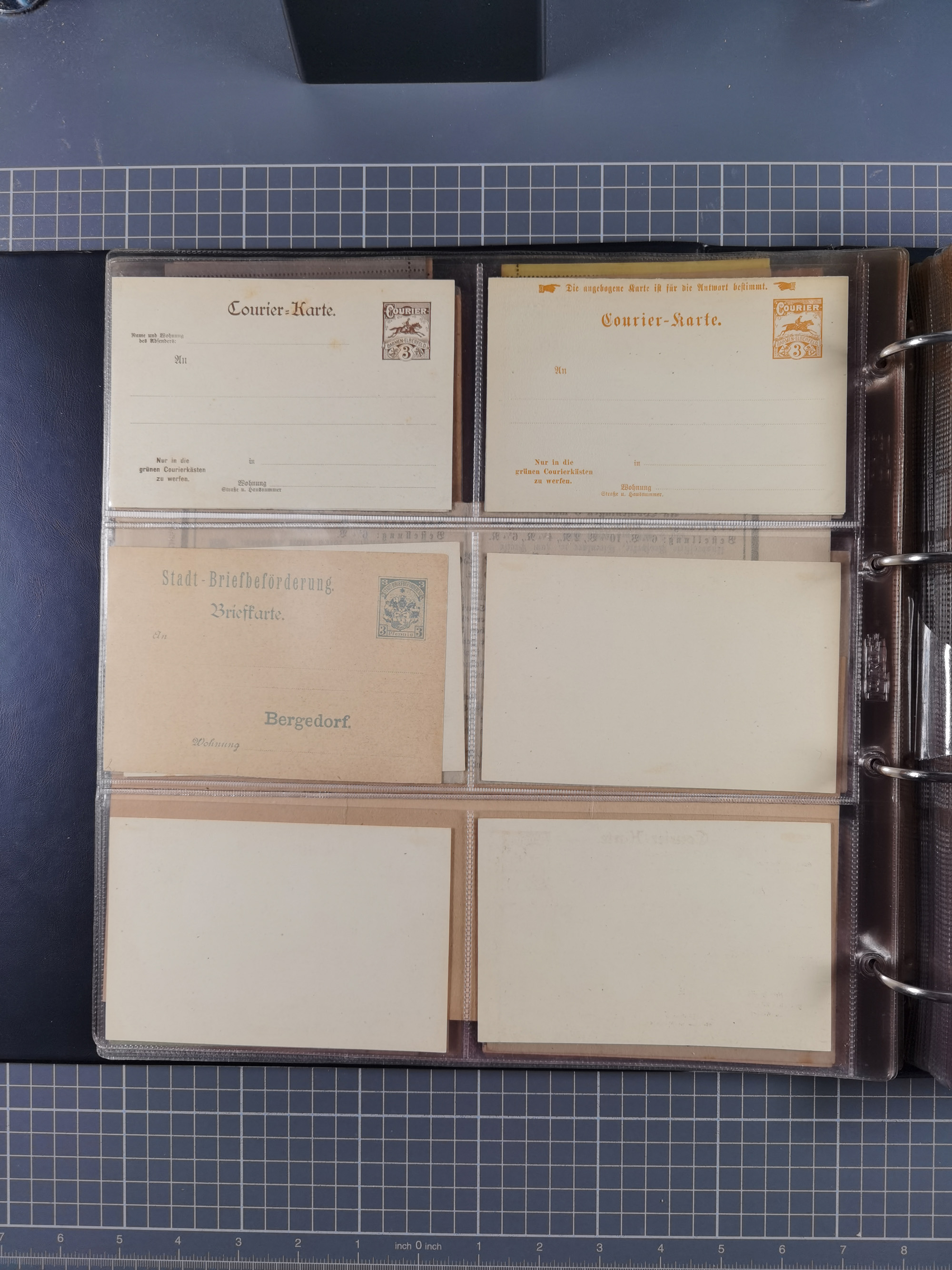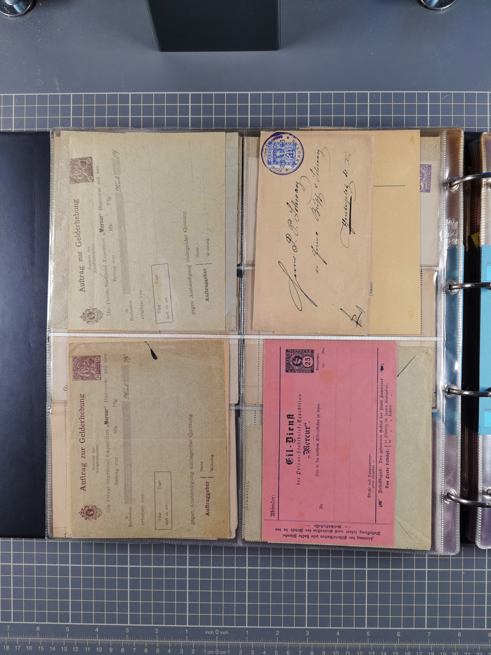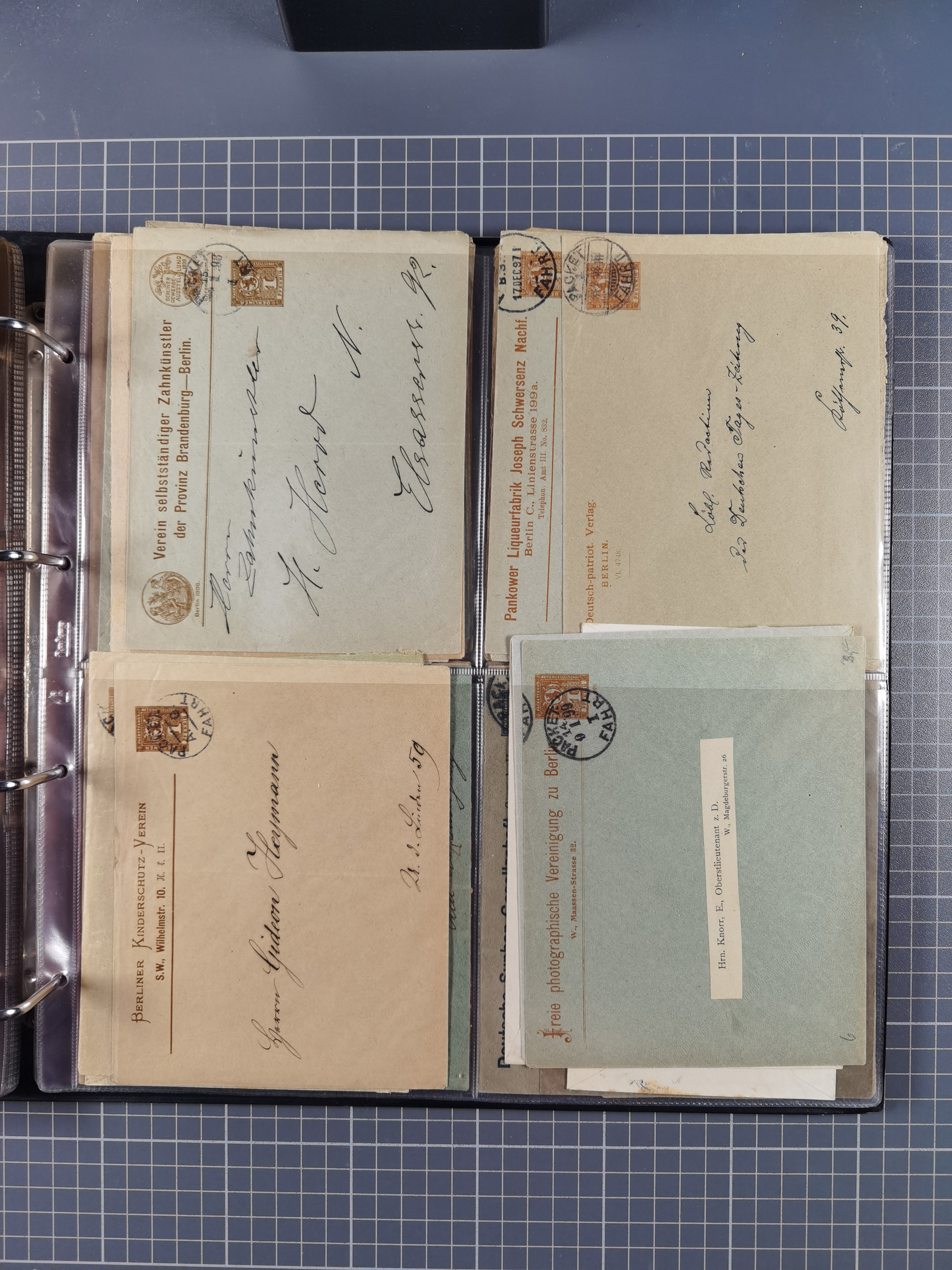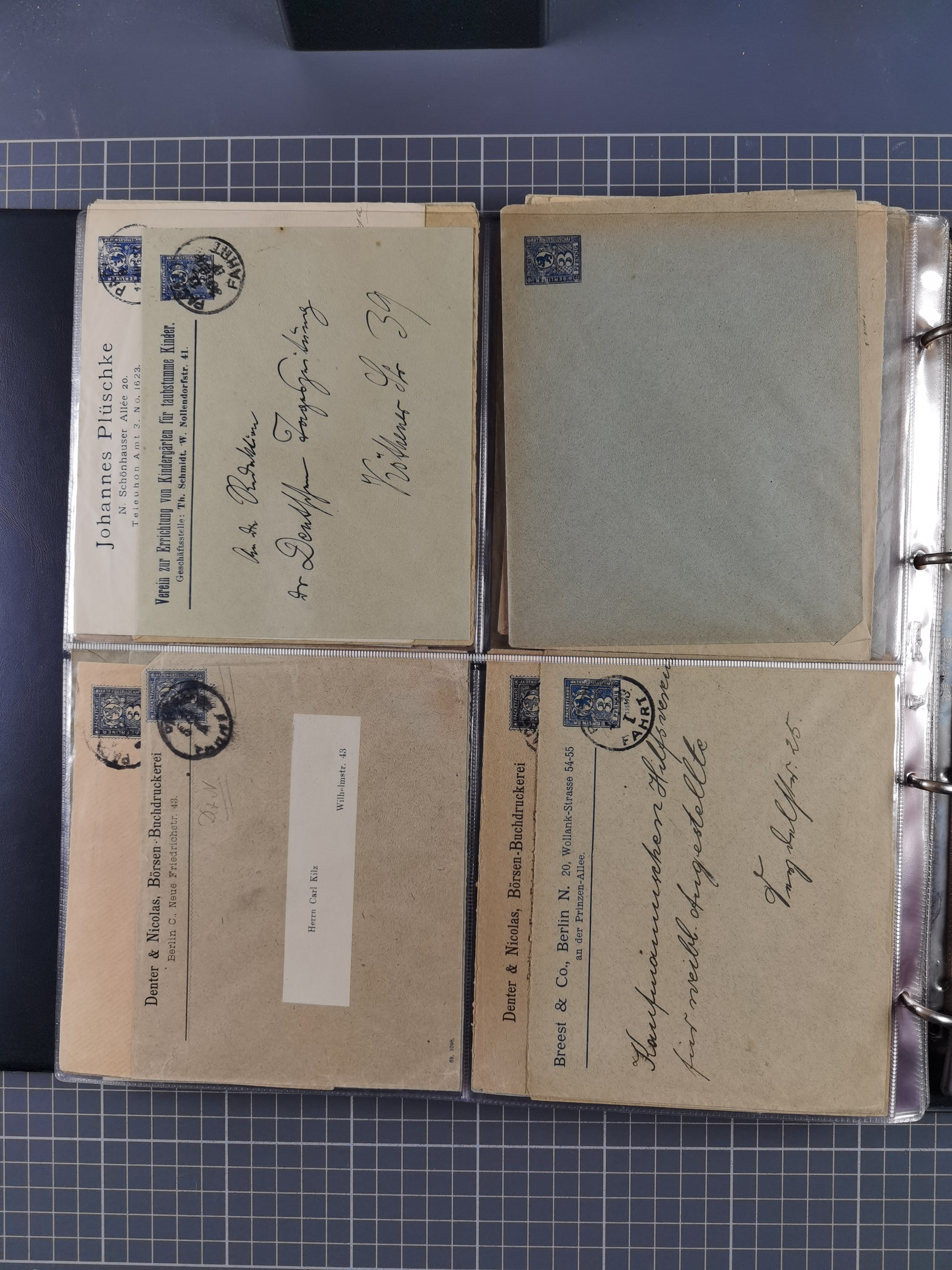 Auerbach bis Zittau: 1886/1900, umfangreiche Sammlung mit über 550 Briefen, Karten sowie ungebrauchten und gebrauchten Ganzsachen und einigen Formularen. Dabei u.a. Augsburg mit K3 gebraucht, Bamberg mit Mi.-Nr. 4 auf drei Briefen/Postkarten, Bonn mit Ganzsachen mit Firmen-Absendern, Dortmund mit P1 gebraucht (kleine Randfehler), Duisburg mit etwas fehlerhafter P2 gebraucht, Kassel Mi.-Nr. 14 auf Postkarte, Krefeld-Express-Beförderung Mi.-Nr. 5 auf Briefvorderseite, Mönchengladbach Courier Mi.-Nr. 4 auf Brief, Offenbach Privat-Post-Verkehr P1 gebraucht, Rostock K1 gebraucht, Worms K1 als Vorderseite gebraucht und Zittau P3 gebraucht mit Text. Die Erhaltung ist zum Teil leicht fehlerhaft, meist aber einwandfrei