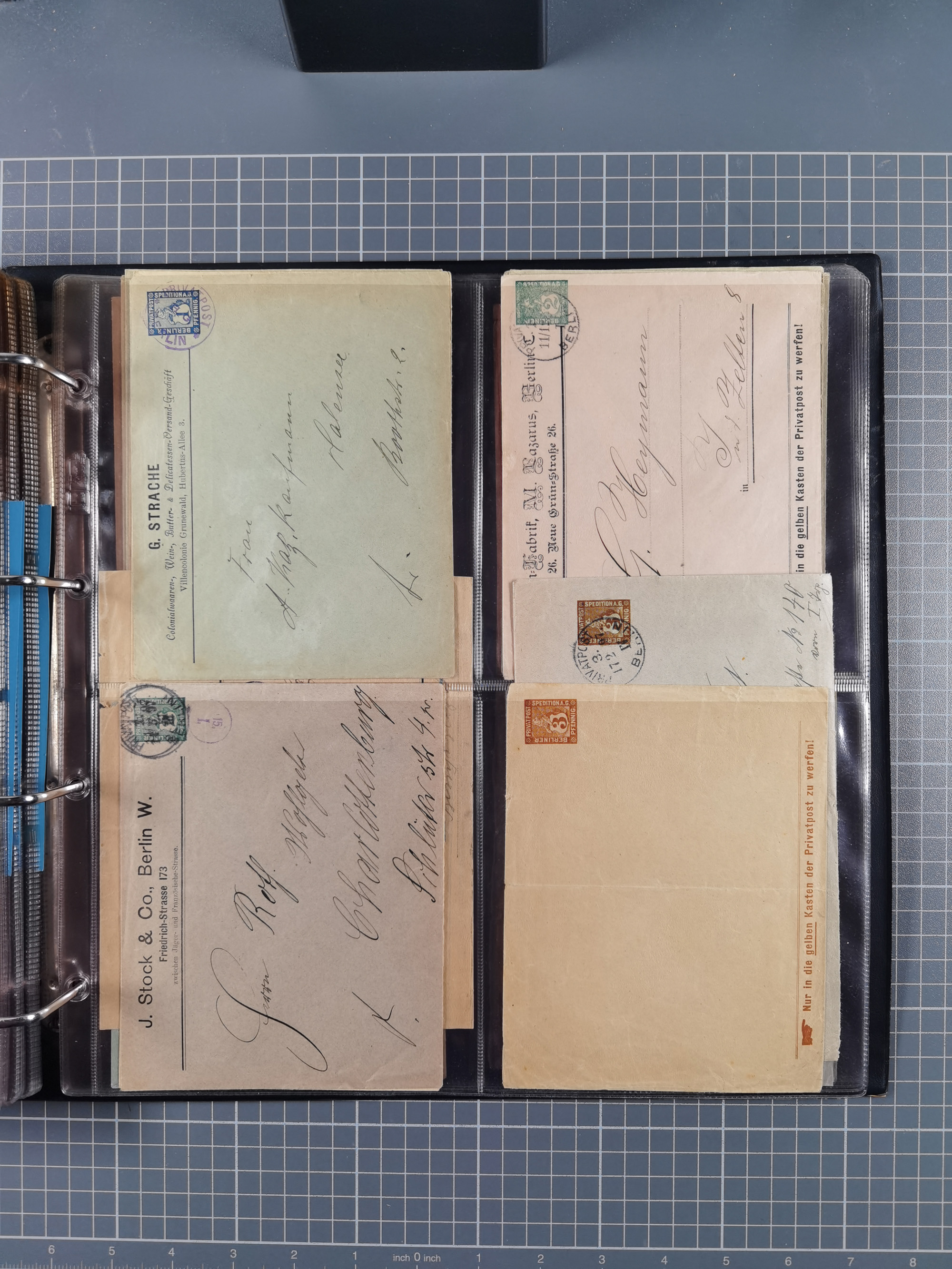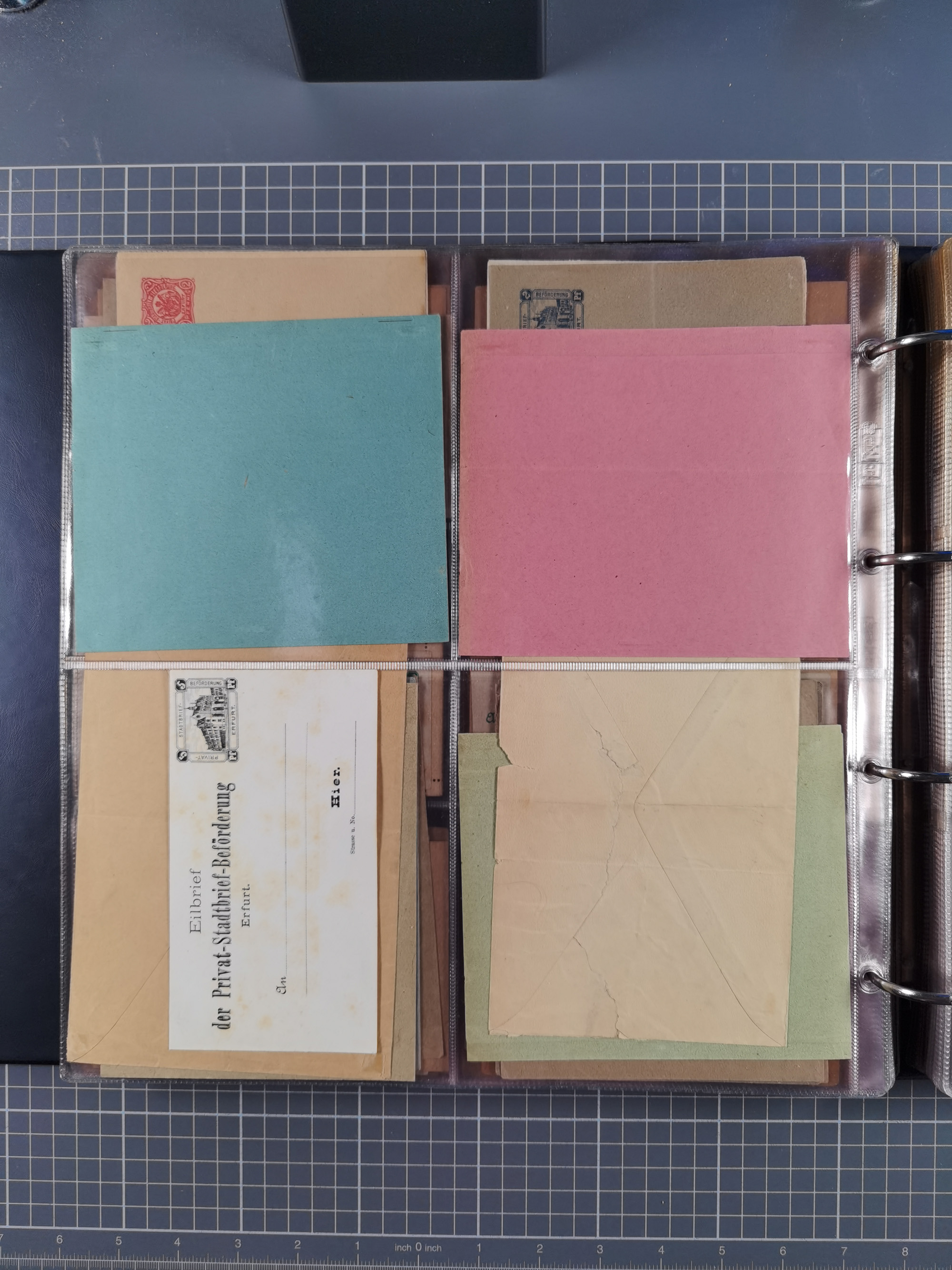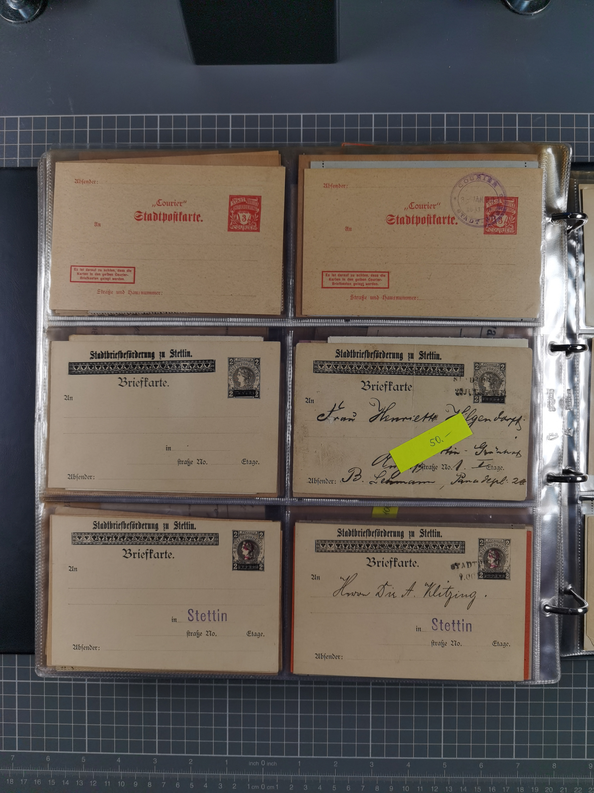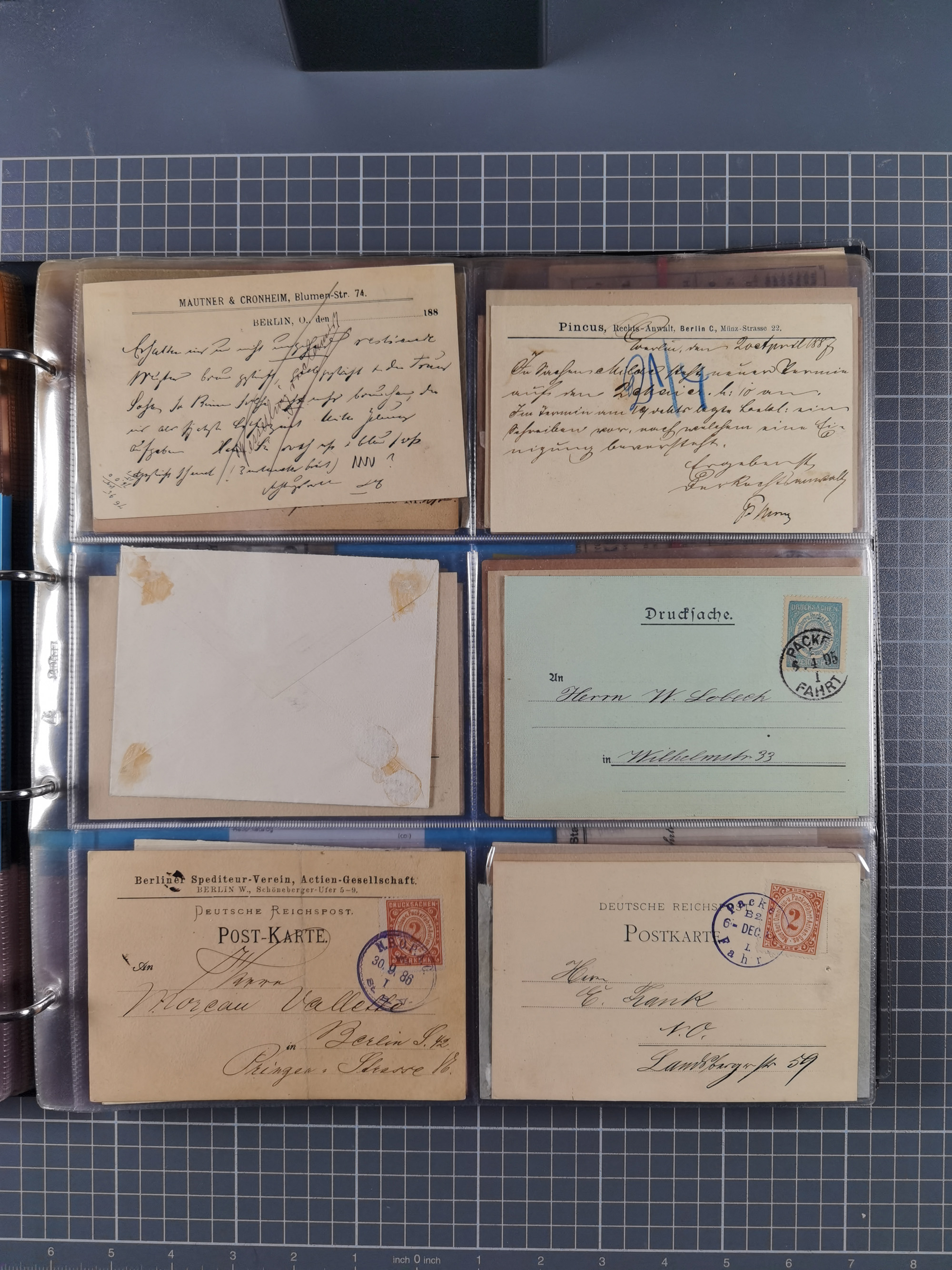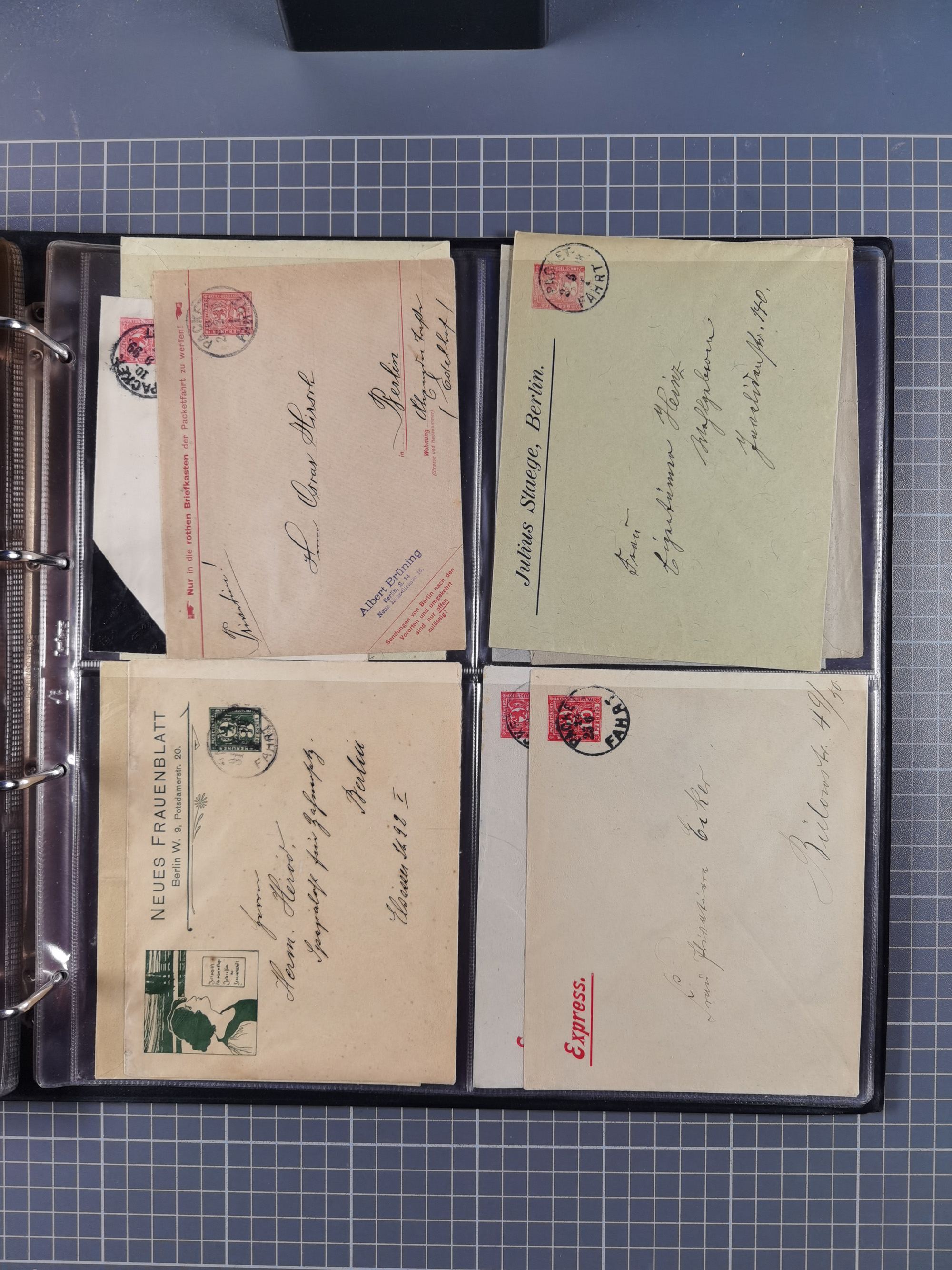 Auerbach bis Zittau: 1886/1900, umfangreiche Sammlung mit über 550 Briefen, Karten sowie ungebrauchten und gebrauchten Ganzsachen und einigen Formularen. Dabei u.a. Augsburg mit K3 gebraucht, Bamberg mit Mi.-Nr. 4 auf drei Briefen/Postkarten, Bonn mit Ganzsachen mit Firmen-Absendern, Dortmund mit P1 gebraucht (kleine Randfehler), Duisburg mit etwas fehlerhafter P2 gebraucht, Kassel Mi.-Nr. 14 auf Postkarte, Krefeld-Express-Beförderung Mi.-Nr. 5 auf Briefvorderseite, Mönchengladbach Courier Mi.-Nr. 4 auf Brief, Offenbach Privat-Post-Verkehr P1 gebraucht, Rostock K1 gebraucht, Worms K1 als Vorderseite gebraucht und Zittau P3 gebraucht mit Text. Die Erhaltung ist zum Teil leicht fehlerhaft, meist aber einwandfrei