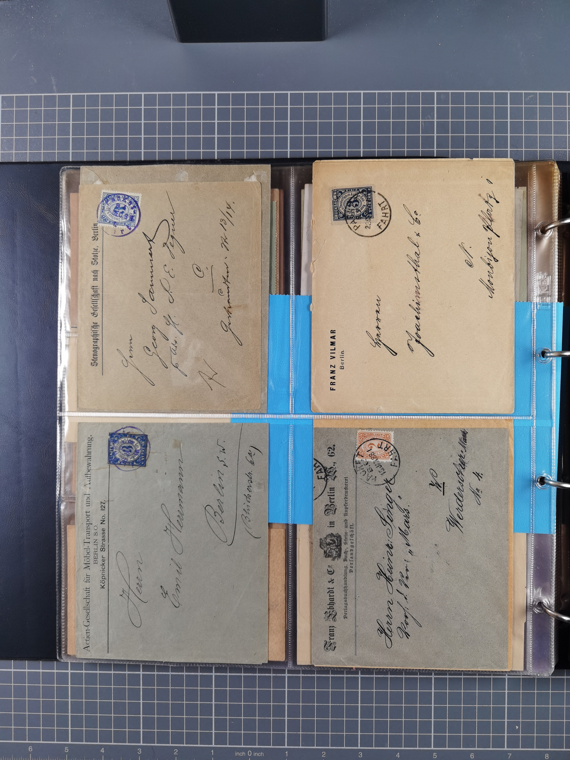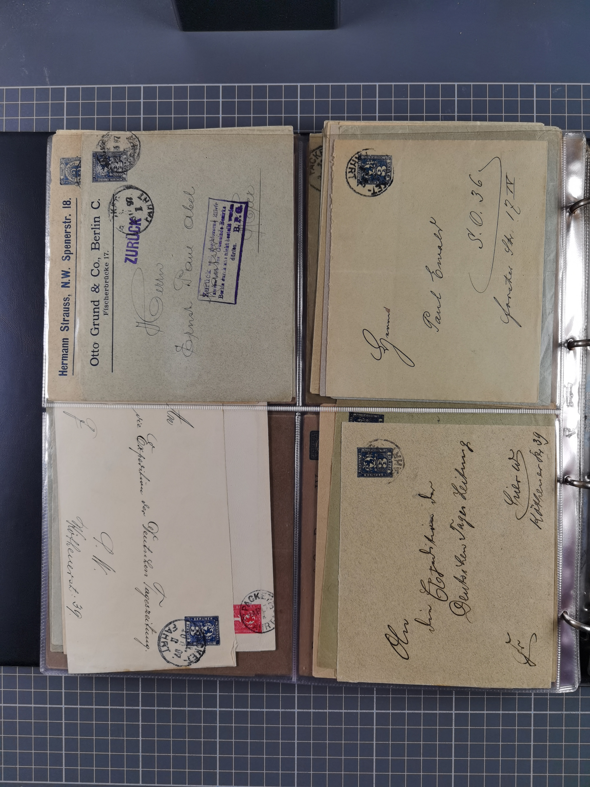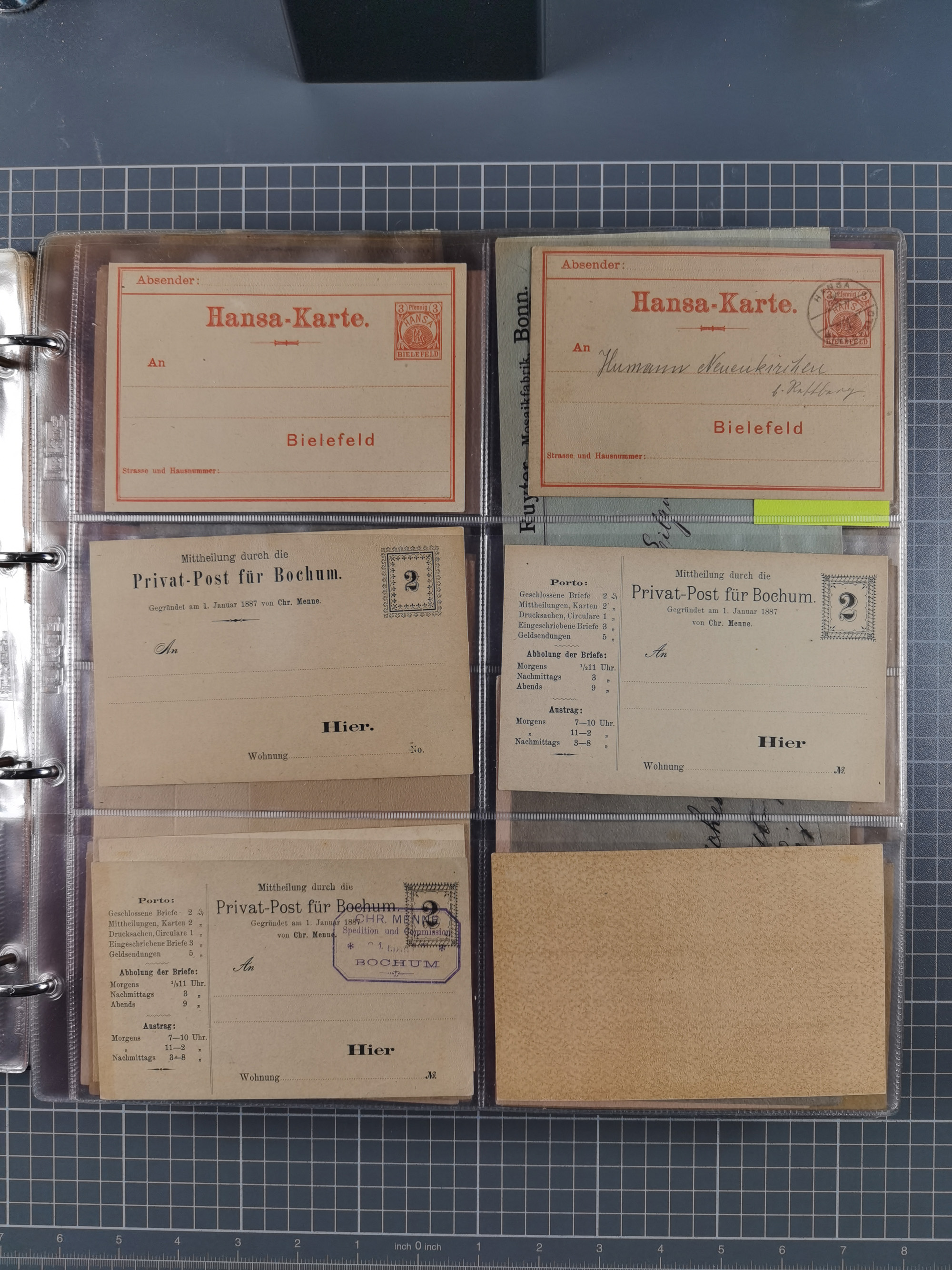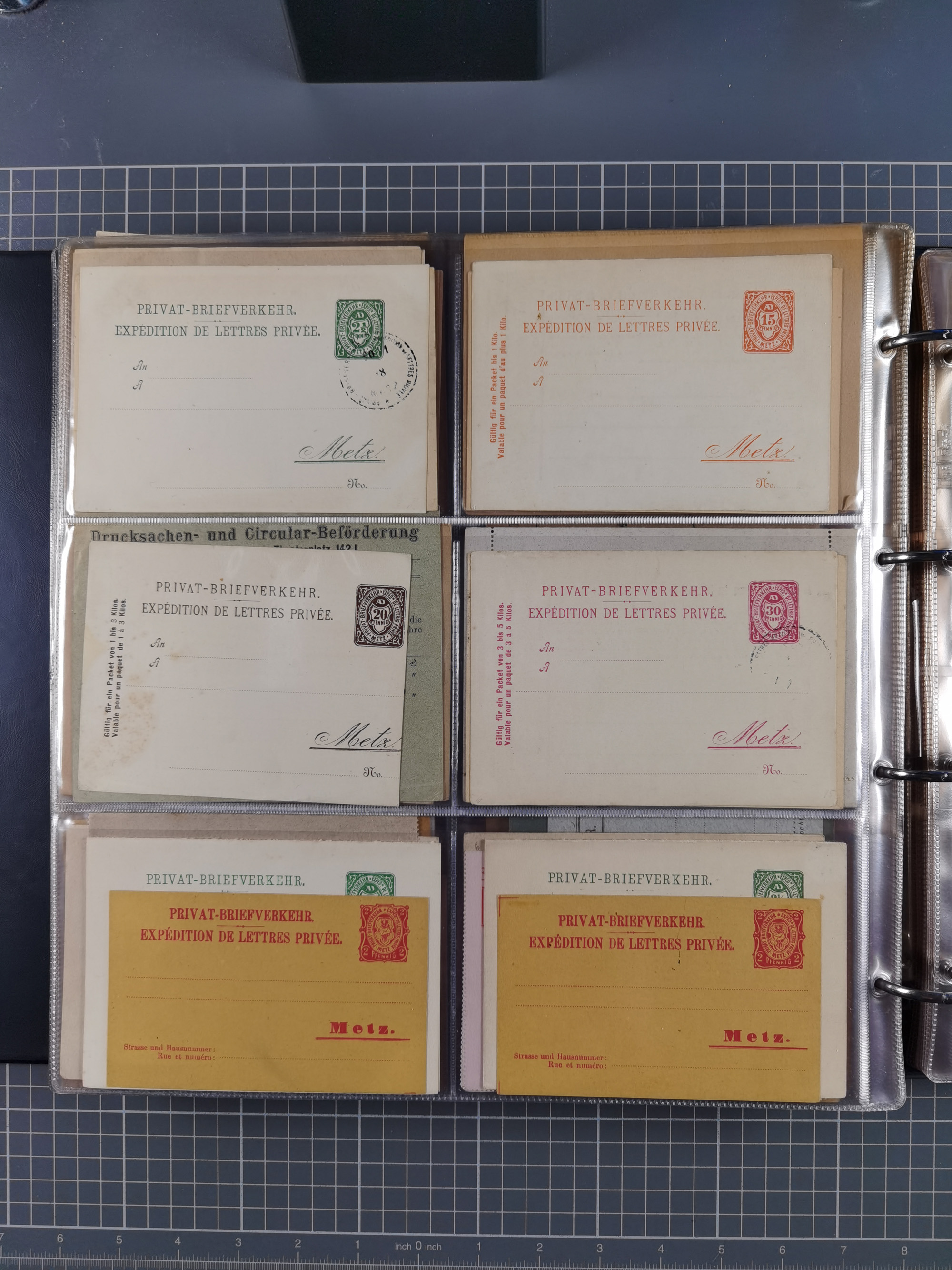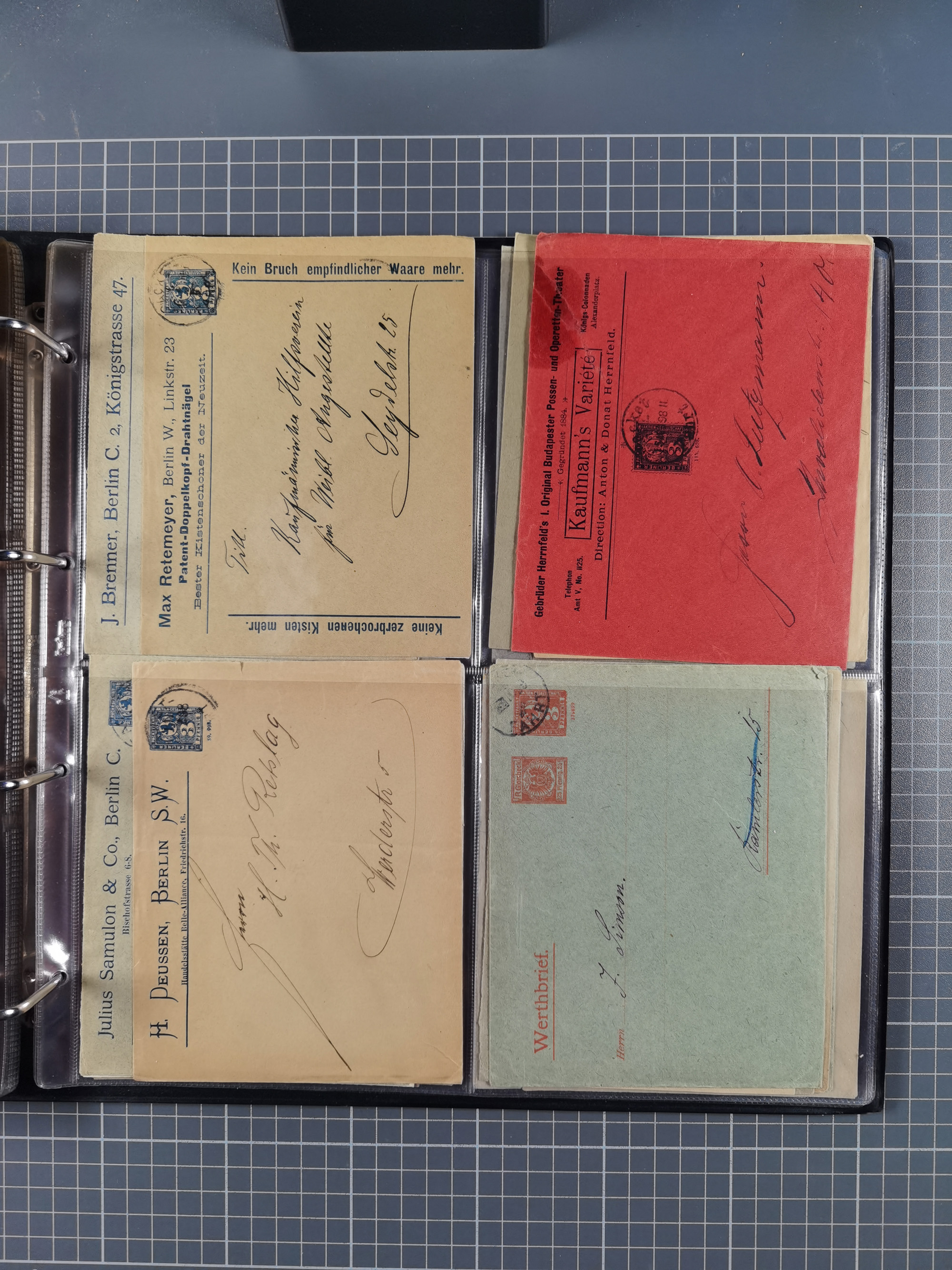 Auerbach bis Zittau: 1886/1900, umfangreiche Sammlung mit über 550 Briefen, Karten sowie ungebrauchten und gebrauchten Ganzsachen und einigen Formularen. Dabei u.a. Augsburg mit K3 gebraucht, Bamberg mit Mi.-Nr. 4 auf drei Briefen/Postkarten, Bonn mit Ganzsachen mit Firmen-Absendern, Dortmund mit P1 gebraucht (kleine Randfehler), Duisburg mit etwas fehlerhafter P2 gebraucht, Kassel Mi.-Nr. 14 auf Postkarte, Krefeld-Express-Beförderung Mi.-Nr. 5 auf Briefvorderseite, Mönchengladbach Courier Mi.-Nr. 4 auf Brief, Offenbach Privat-Post-Verkehr P1 gebraucht, Rostock K1 gebraucht, Worms K1 als Vorderseite gebraucht und Zittau P3 gebraucht mit Text. Die Erhaltung ist zum Teil leicht fehlerhaft, meist aber einwandfrei