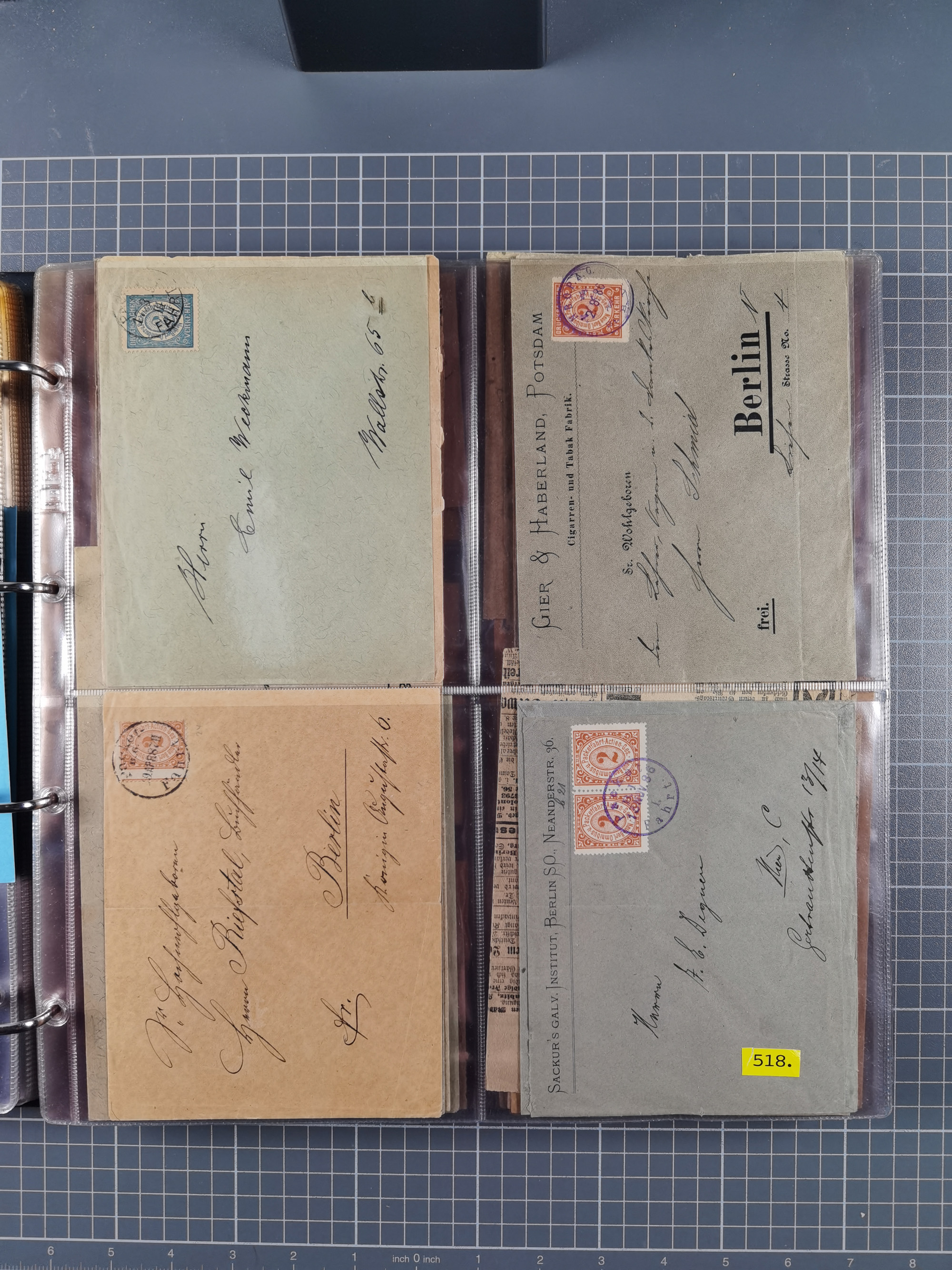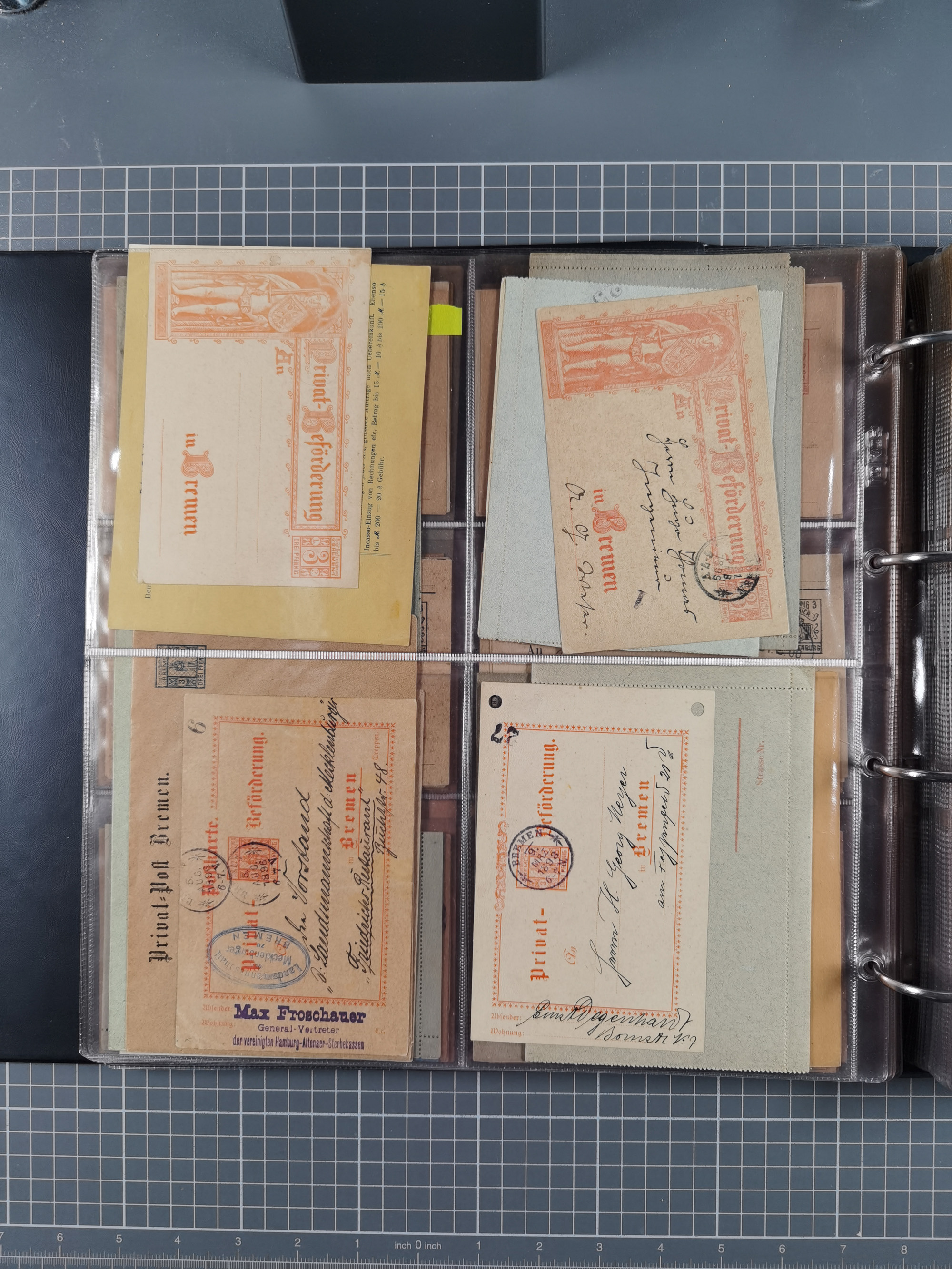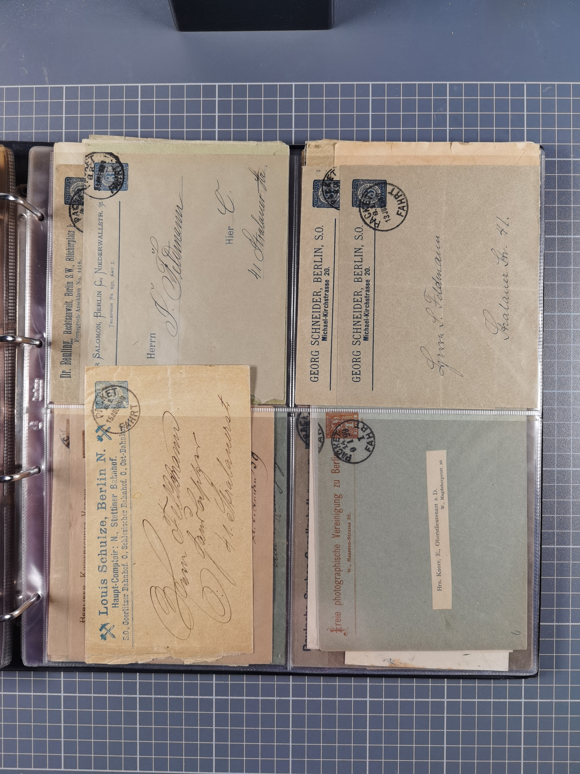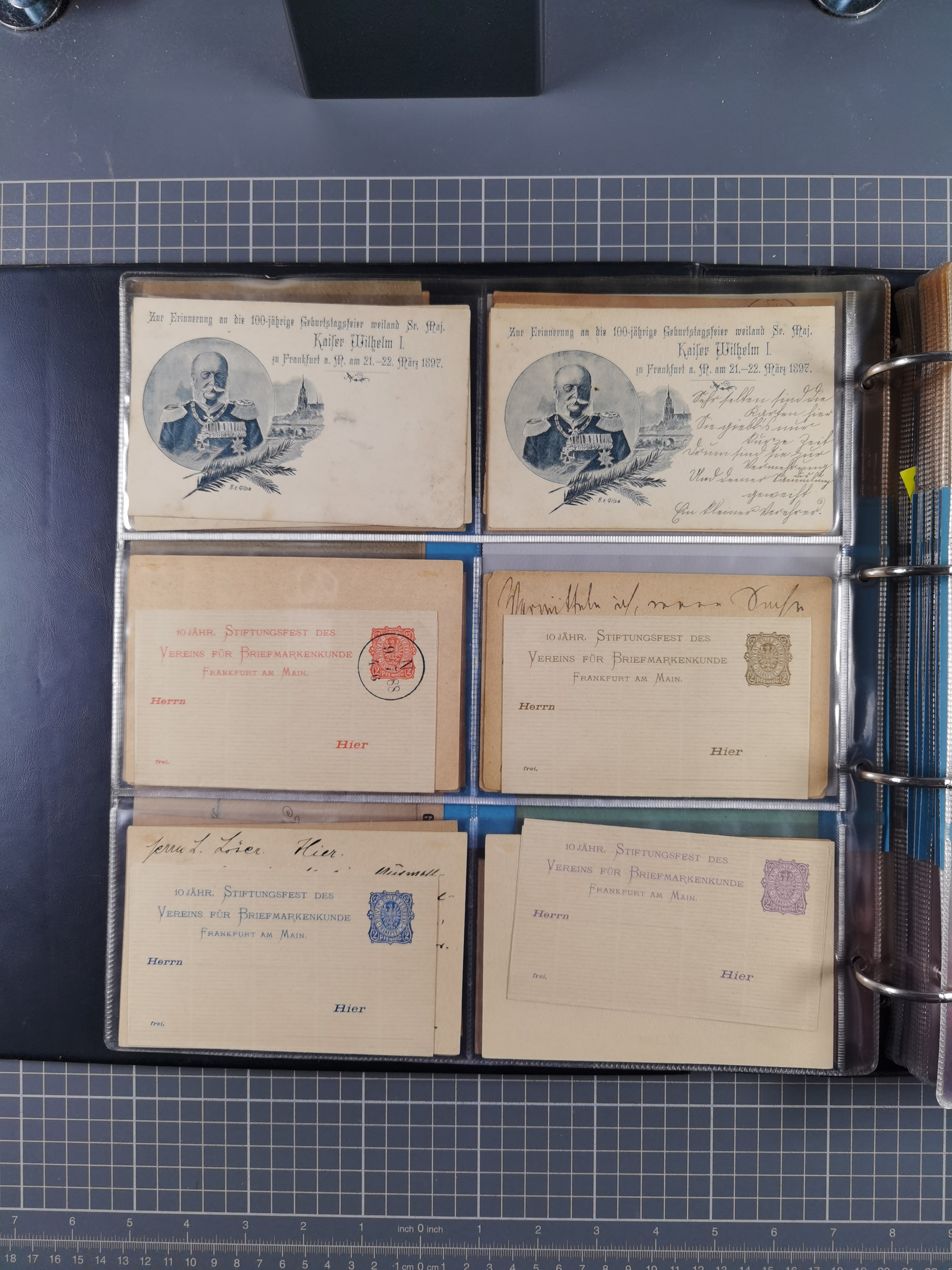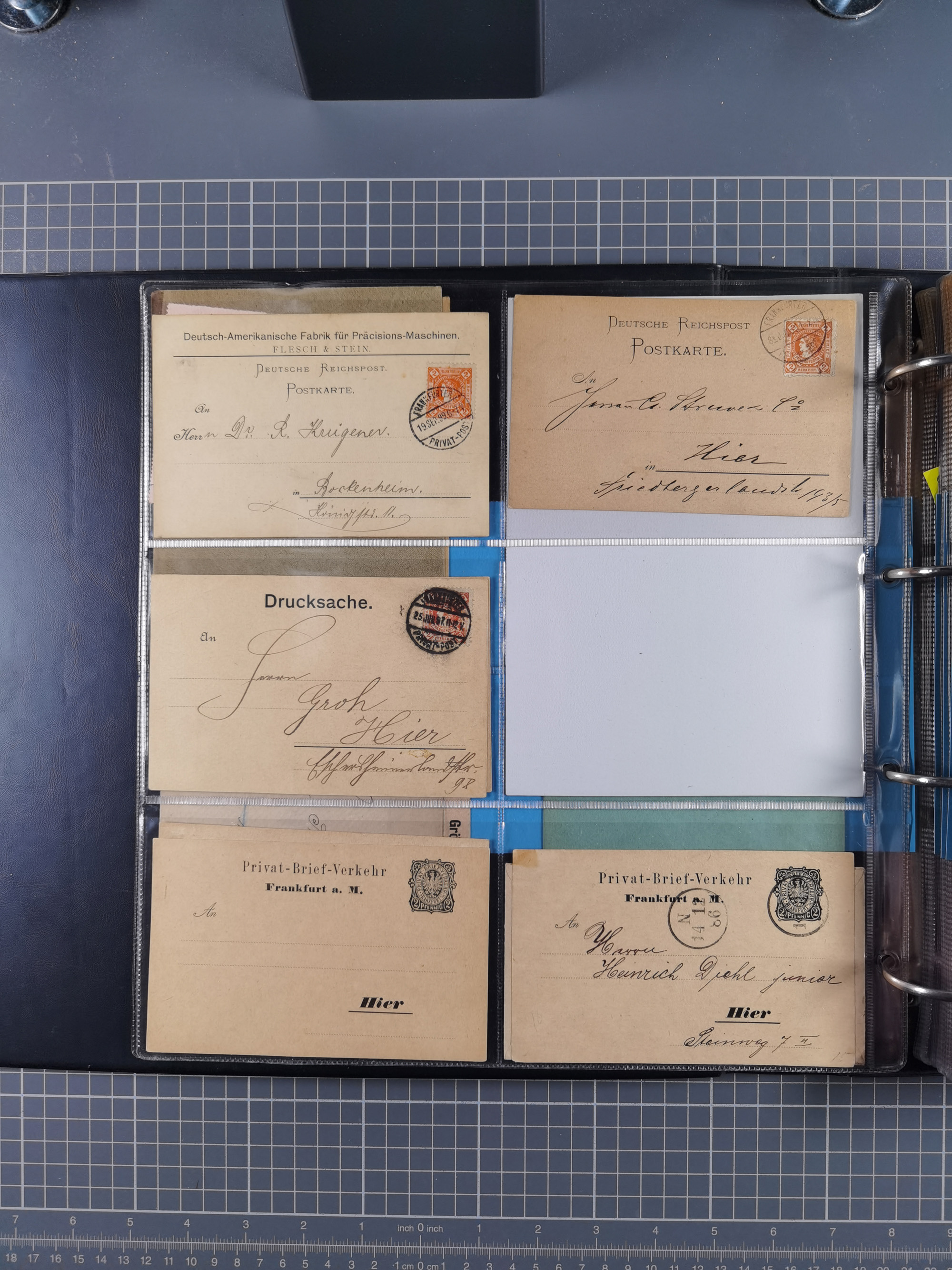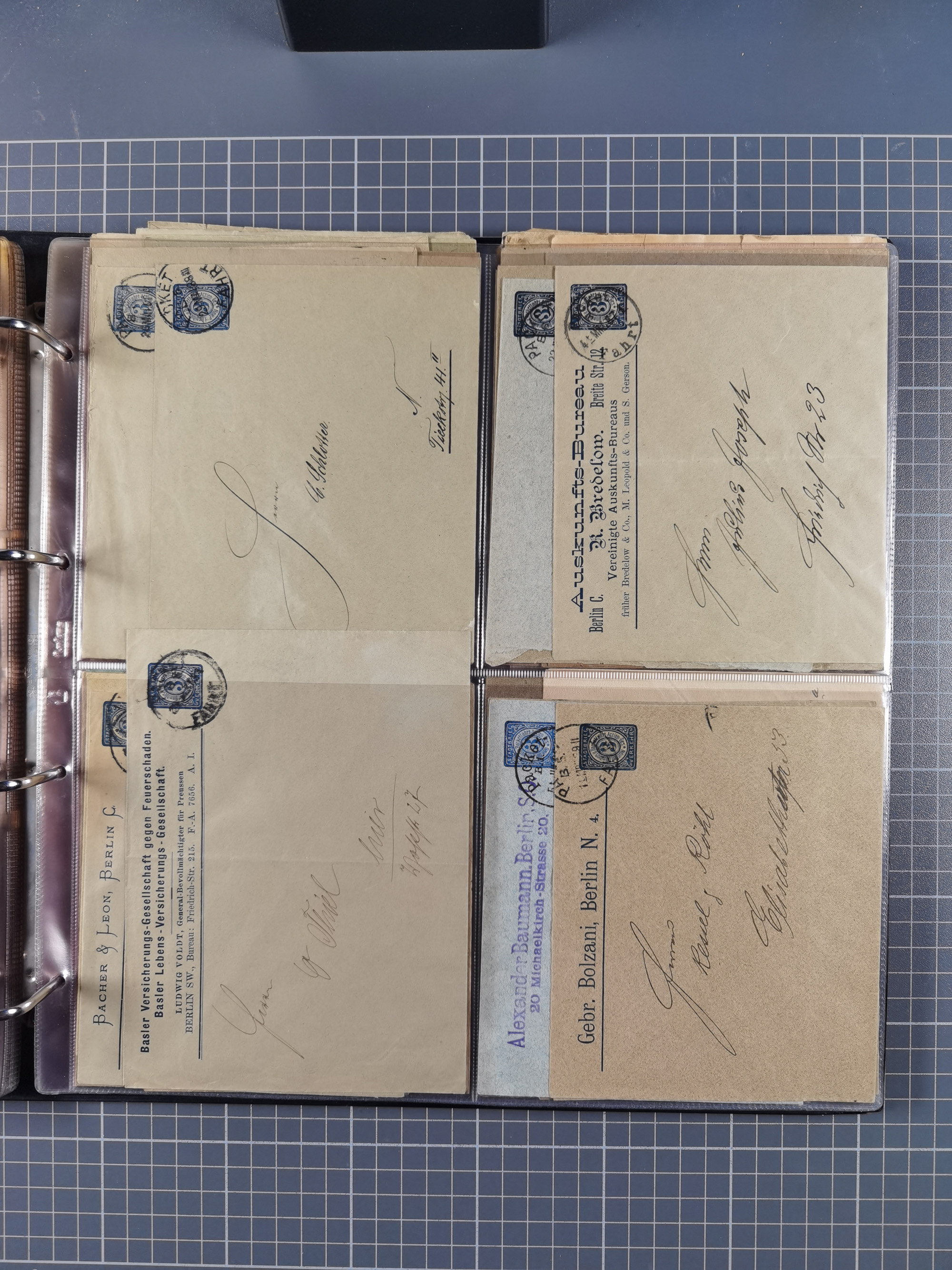 Auerbach bis Zittau: 1886/1900, umfangreiche Sammlung mit über 550 Briefen, Karten sowie ungebrauchten und gebrauchten Ganzsachen und einigen Formularen. Dabei u.a. Augsburg mit K3 gebraucht, Bamberg mit Mi.-Nr. 4 auf drei Briefen/Postkarten, Bonn mit Ganzsachen mit Firmen-Absendern, Dortmund mit P1 gebraucht (kleine Randfehler), Duisburg mit etwas fehlerhafter P2 gebraucht, Kassel Mi.-Nr. 14 auf Postkarte, Krefeld-Express-Beförderung Mi.-Nr. 5 auf Briefvorderseite, Mönchengladbach Courier Mi.-Nr. 4 auf Brief, Offenbach Privat-Post-Verkehr P1 gebraucht, Rostock K1 gebraucht, Worms K1 als Vorderseite gebraucht und Zittau P3 gebraucht mit Text. Die Erhaltung ist zum Teil leicht fehlerhaft, meist aber einwandfrei