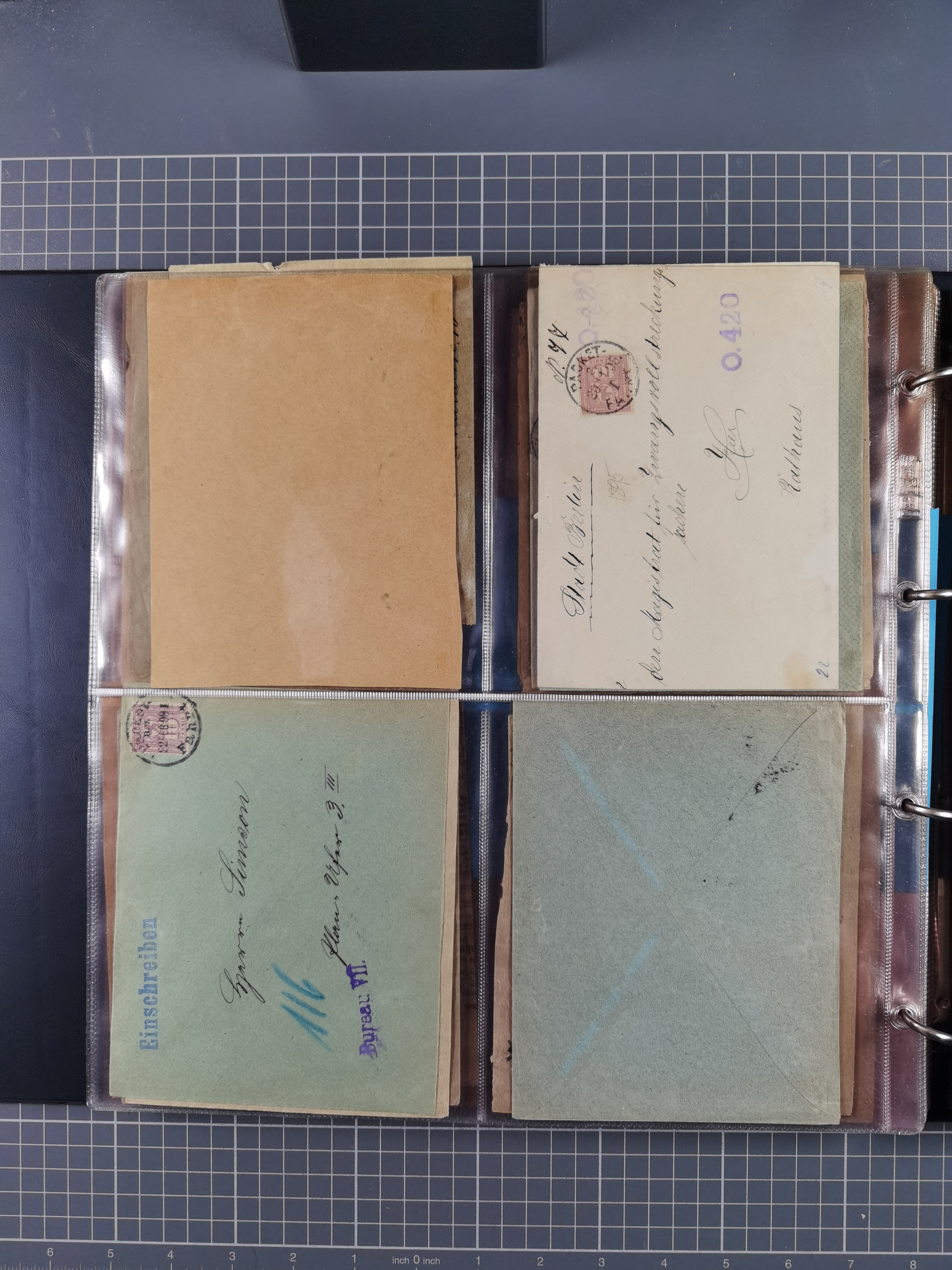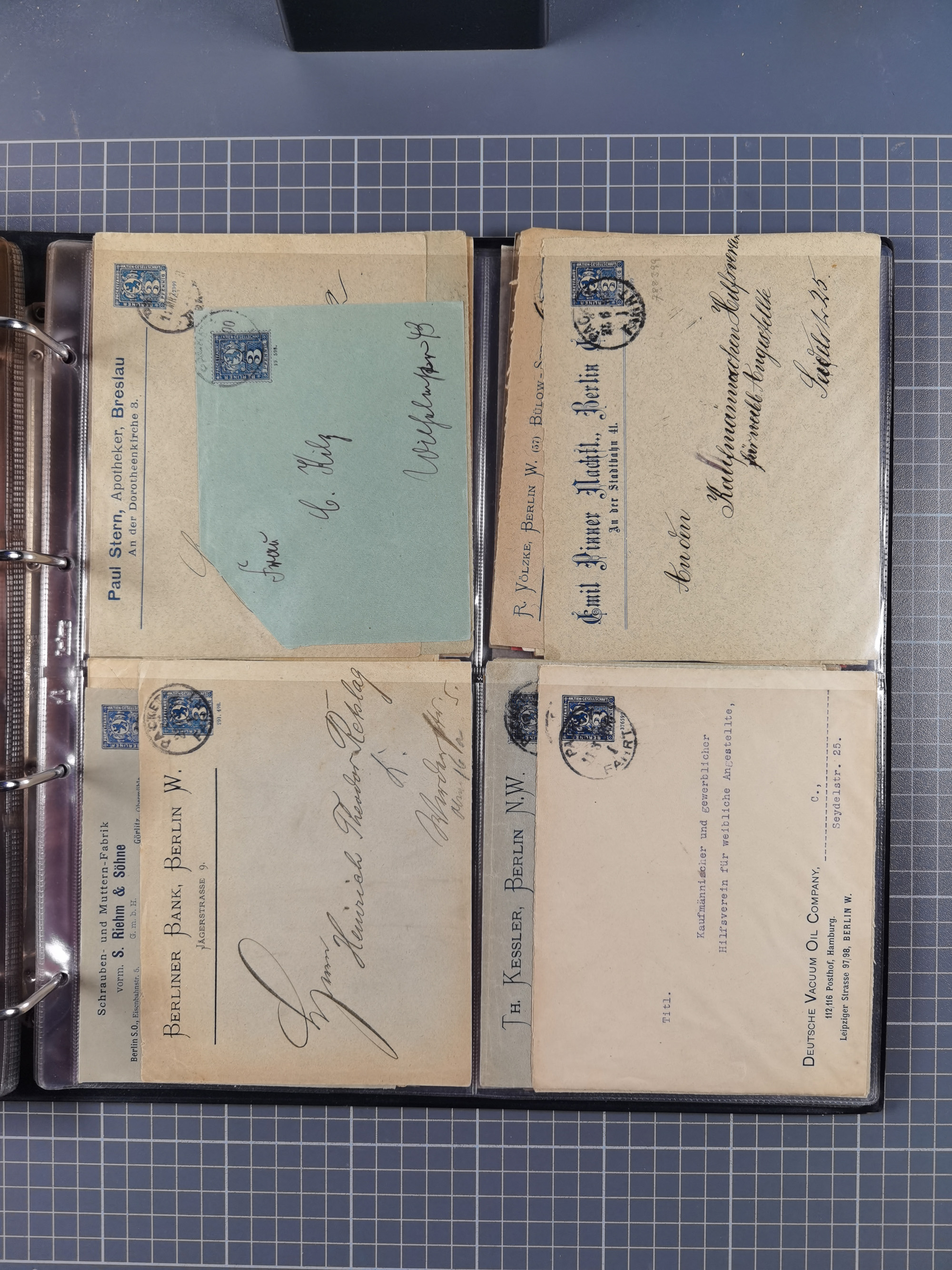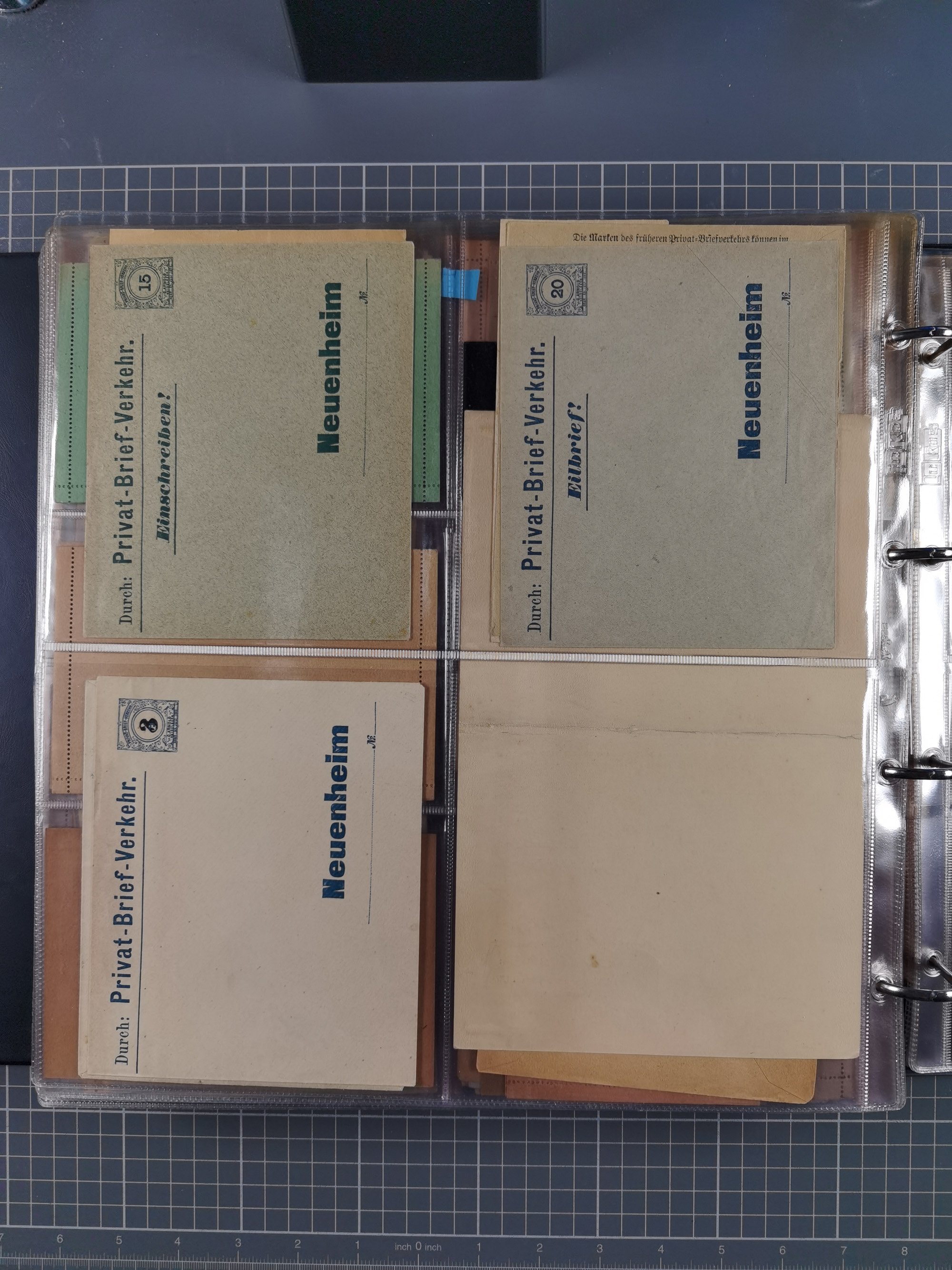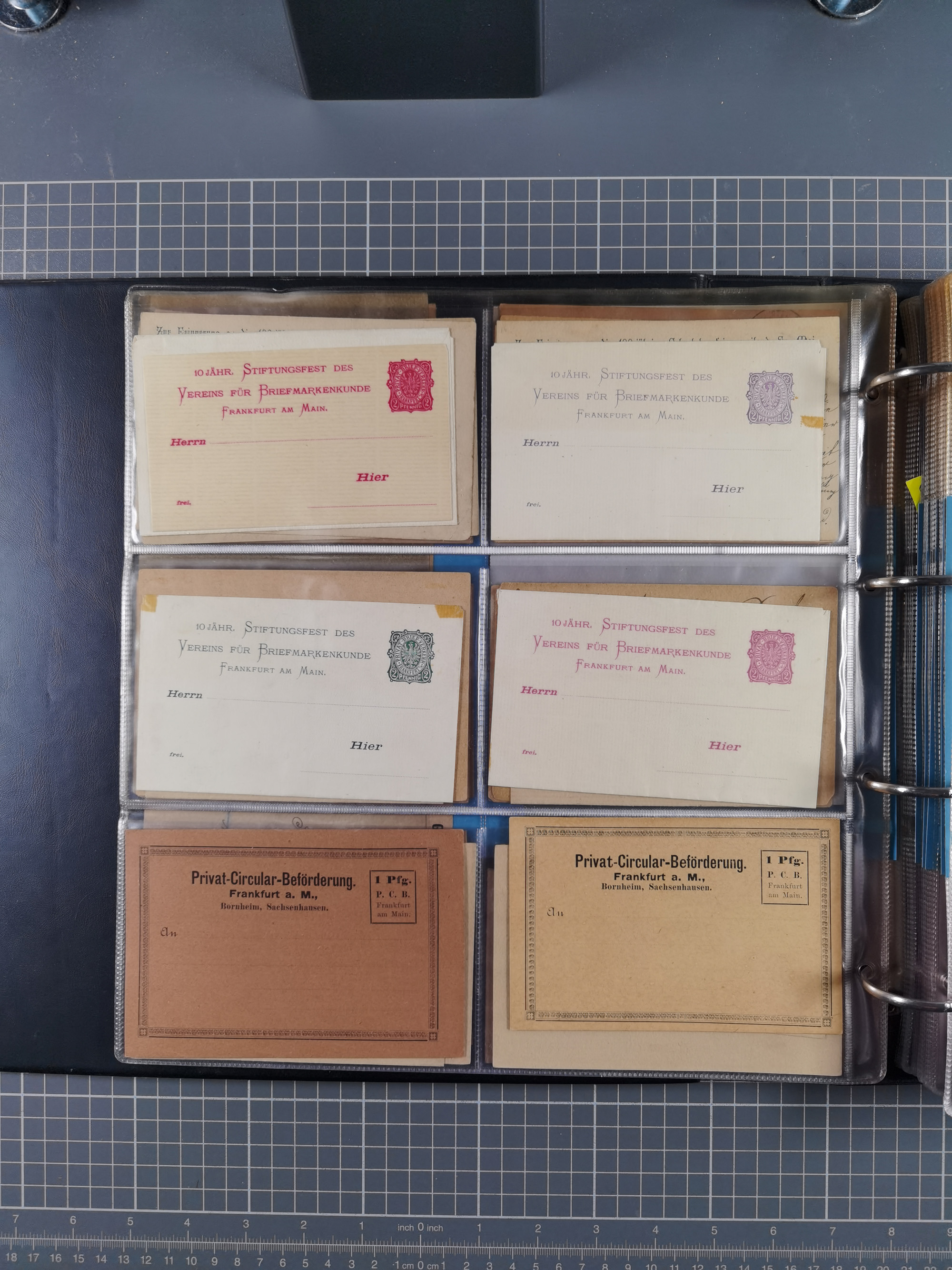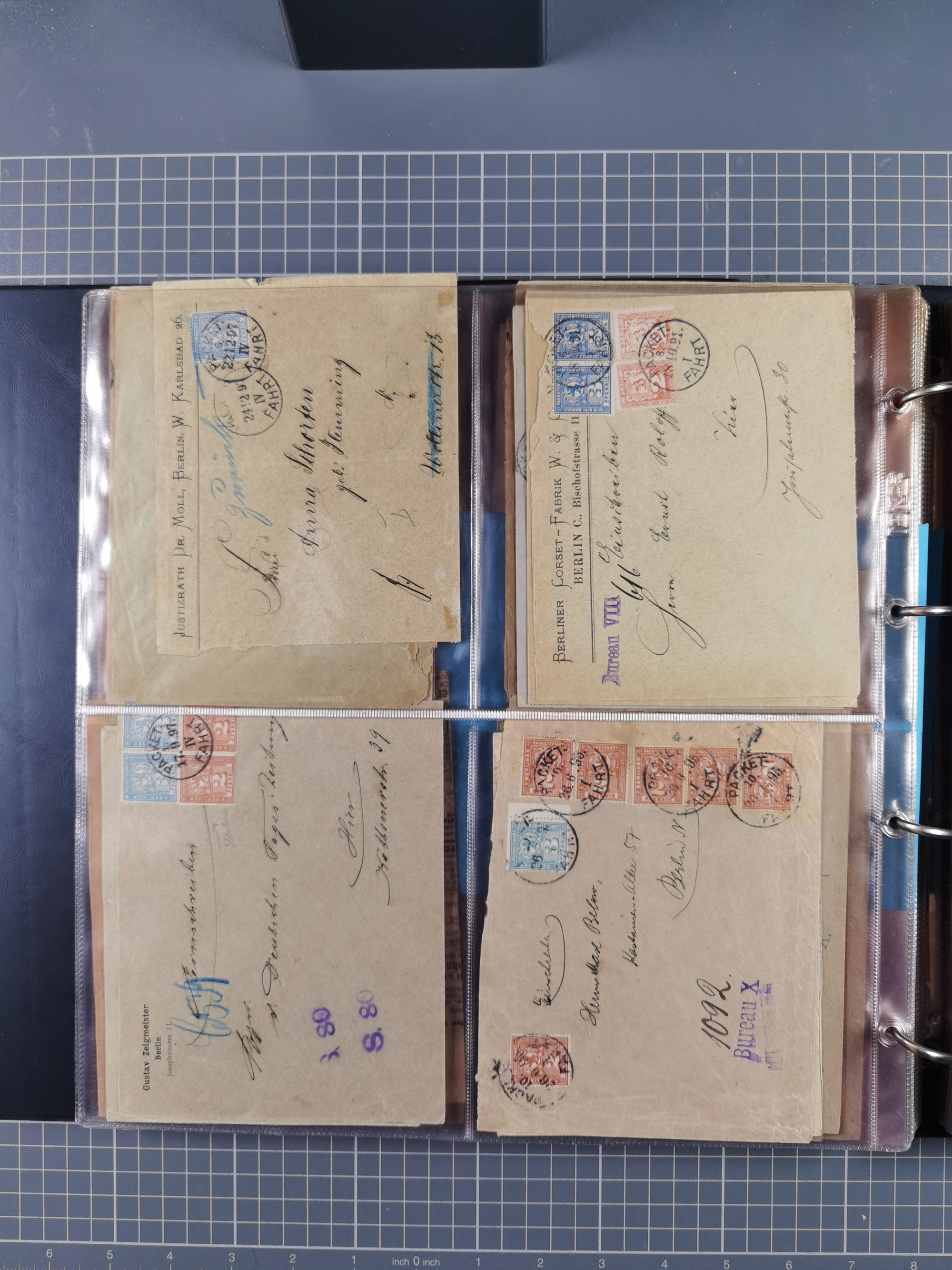 Auerbach bis Zittau: 1886/1900, umfangreiche Sammlung mit über 550 Briefen, Karten sowie ungebrauchten und gebrauchten Ganzsachen und einigen Formularen. Dabei u.a. Augsburg mit K3 gebraucht, Bamberg mit Mi.-Nr. 4 auf drei Briefen/Postkarten, Bonn mit Ganzsachen mit Firmen-Absendern, Dortmund mit P1 gebraucht (kleine Randfehler), Duisburg mit etwas fehlerhafter P2 gebraucht, Kassel Mi.-Nr. 14 auf Postkarte, Krefeld-Express-Beförderung Mi.-Nr. 5 auf Briefvorderseite, Mönchengladbach Courier Mi.-Nr. 4 auf Brief, Offenbach Privat-Post-Verkehr P1 gebraucht, Rostock K1 gebraucht, Worms K1 als Vorderseite gebraucht und Zittau P3 gebraucht mit Text. Die Erhaltung ist zum Teil leicht fehlerhaft, meist aber einwandfrei