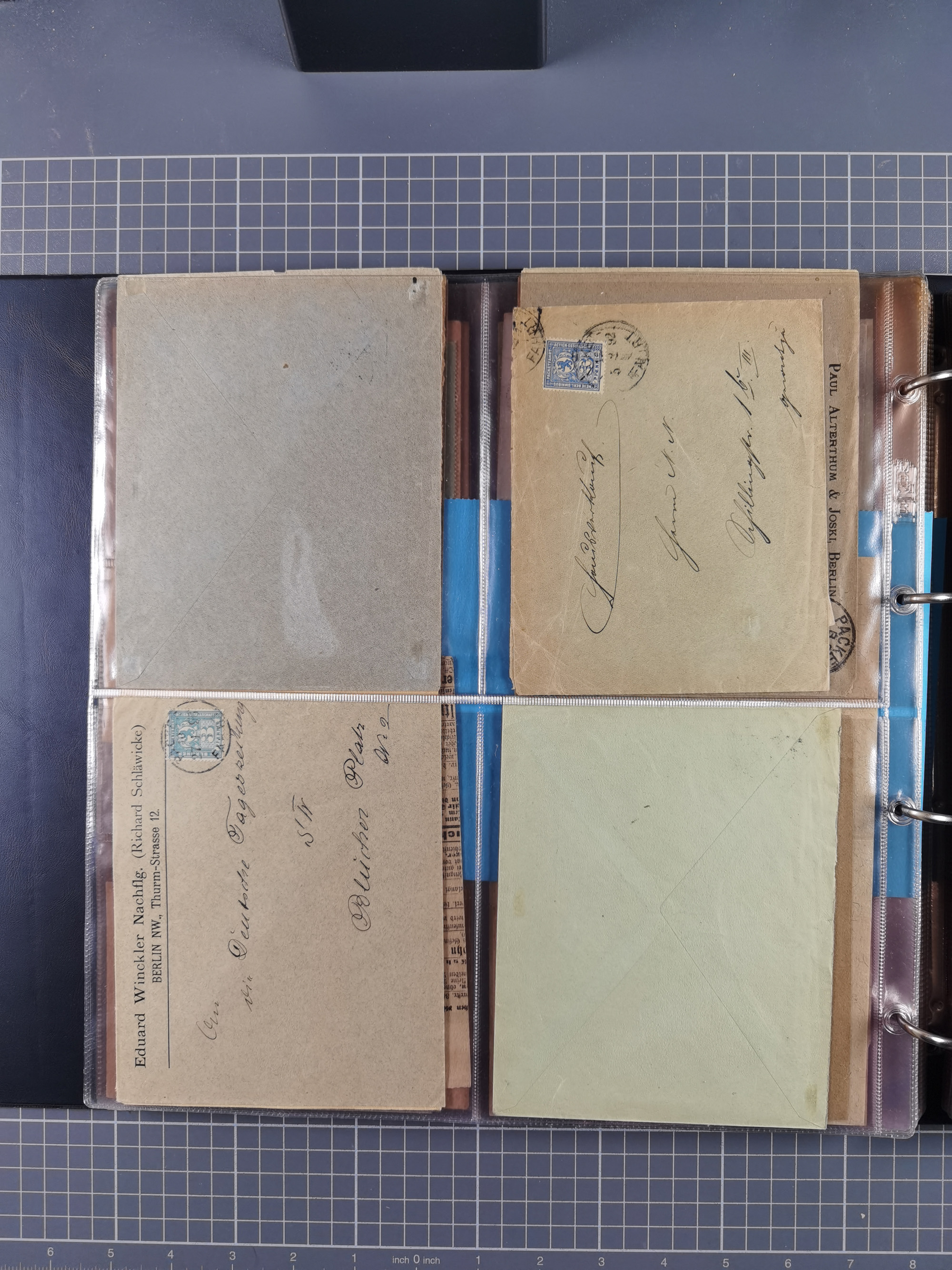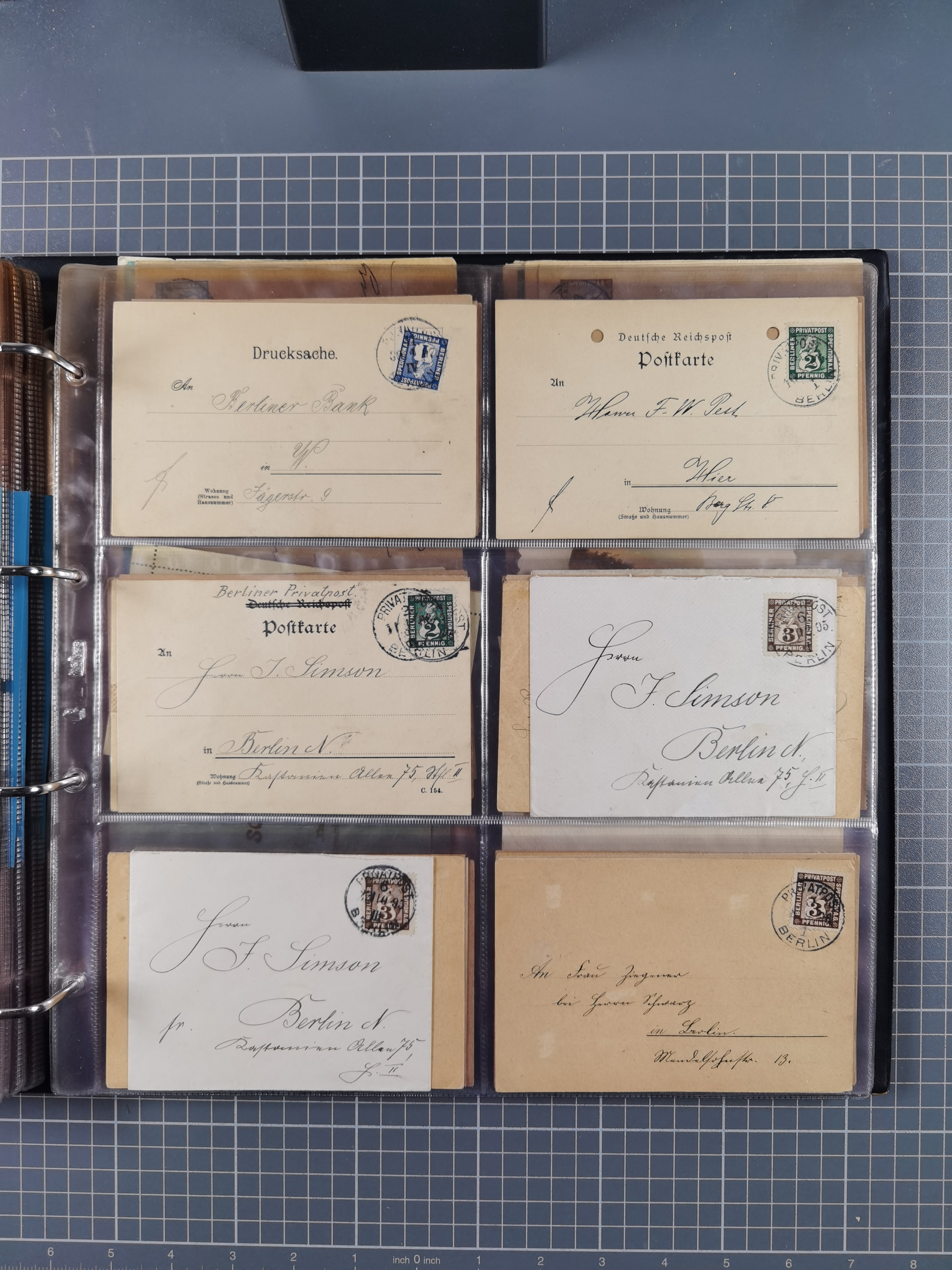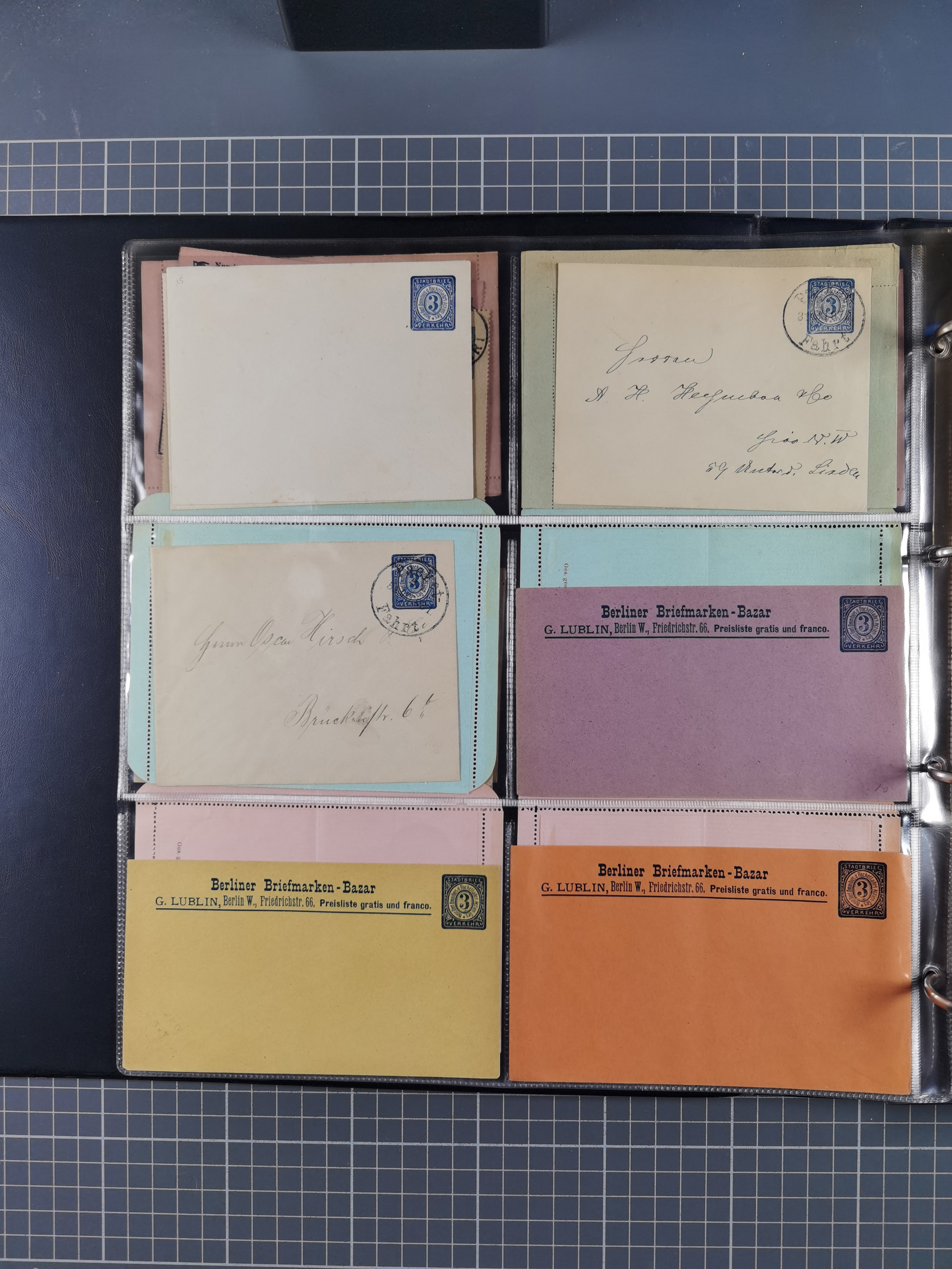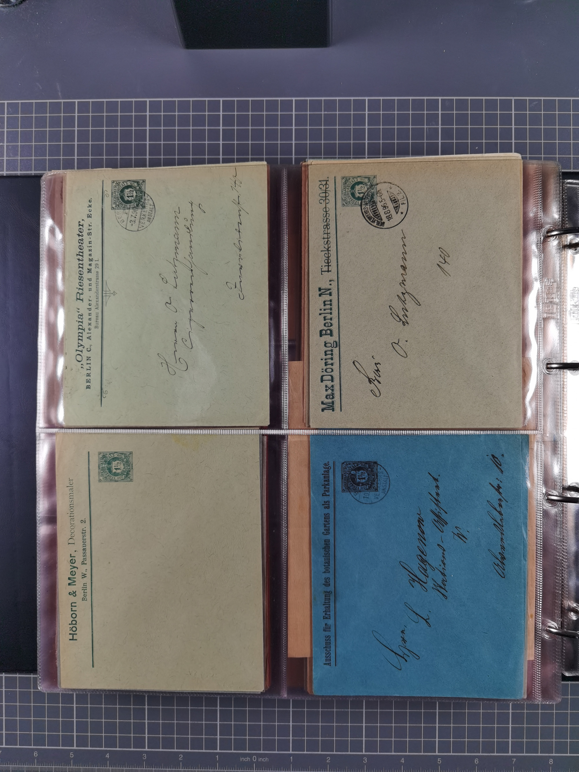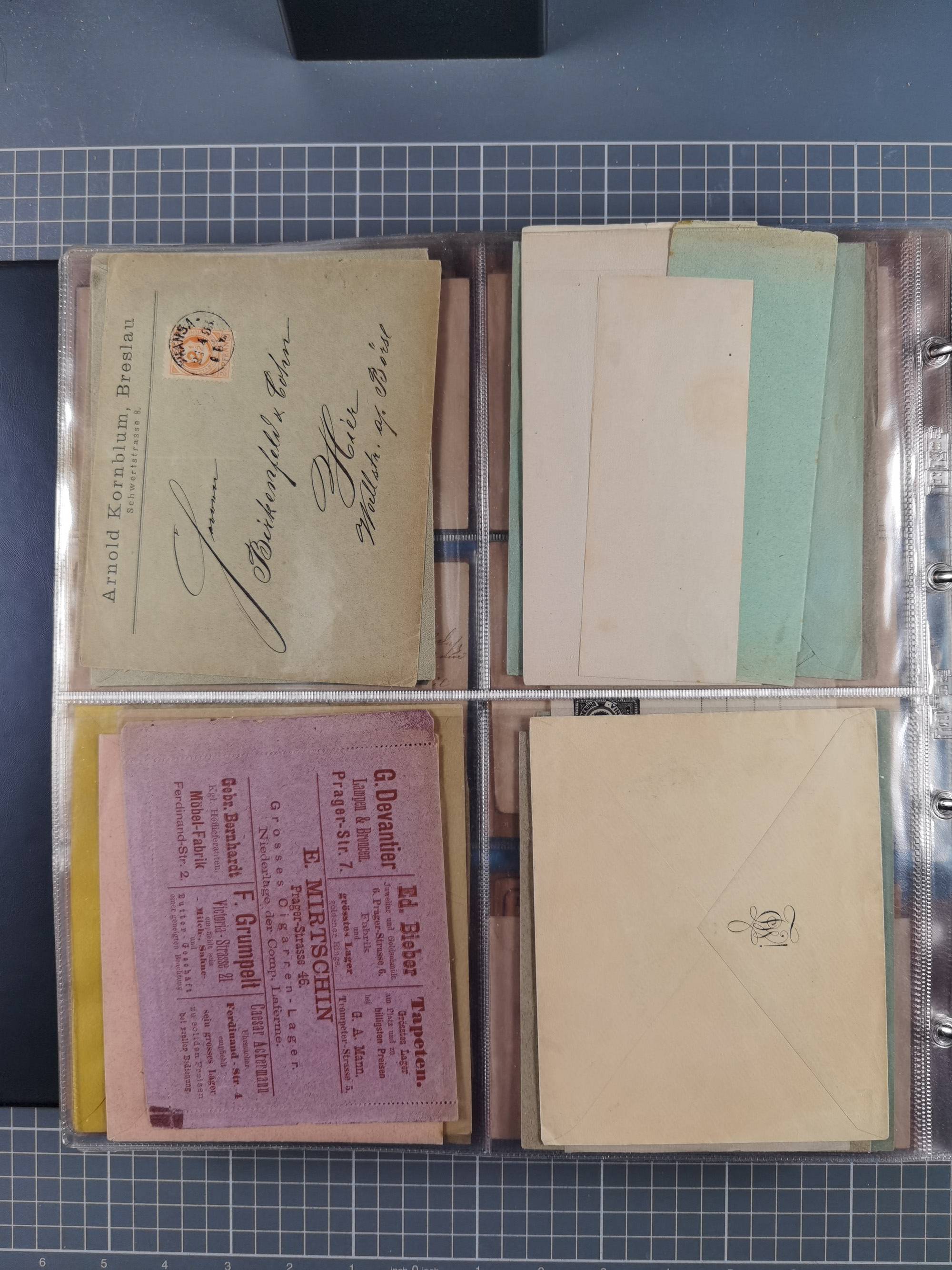 Auerbach bis Zittau: 1886/1900, umfangreiche Sammlung mit über 550 Briefen, Karten sowie ungebrauchten und gebrauchten Ganzsachen und einigen Formularen. Dabei u.a. Augsburg mit K3 gebraucht, Bamberg mit Mi.-Nr. 4 auf drei Briefen/Postkarten, Bonn mit Ganzsachen mit Firmen-Absendern, Dortmund mit P1 gebraucht (kleine Randfehler), Duisburg mit etwas fehlerhafter P2 gebraucht, Kassel Mi.-Nr. 14 auf Postkarte, Krefeld-Express-Beförderung Mi.-Nr. 5 auf Briefvorderseite, Mönchengladbach Courier Mi.-Nr. 4 auf Brief, Offenbach Privat-Post-Verkehr P1 gebraucht, Rostock K1 gebraucht, Worms K1 als Vorderseite gebraucht und Zittau P3 gebraucht mit Text. Die Erhaltung ist zum Teil leicht fehlerhaft, meist aber einwandfrei