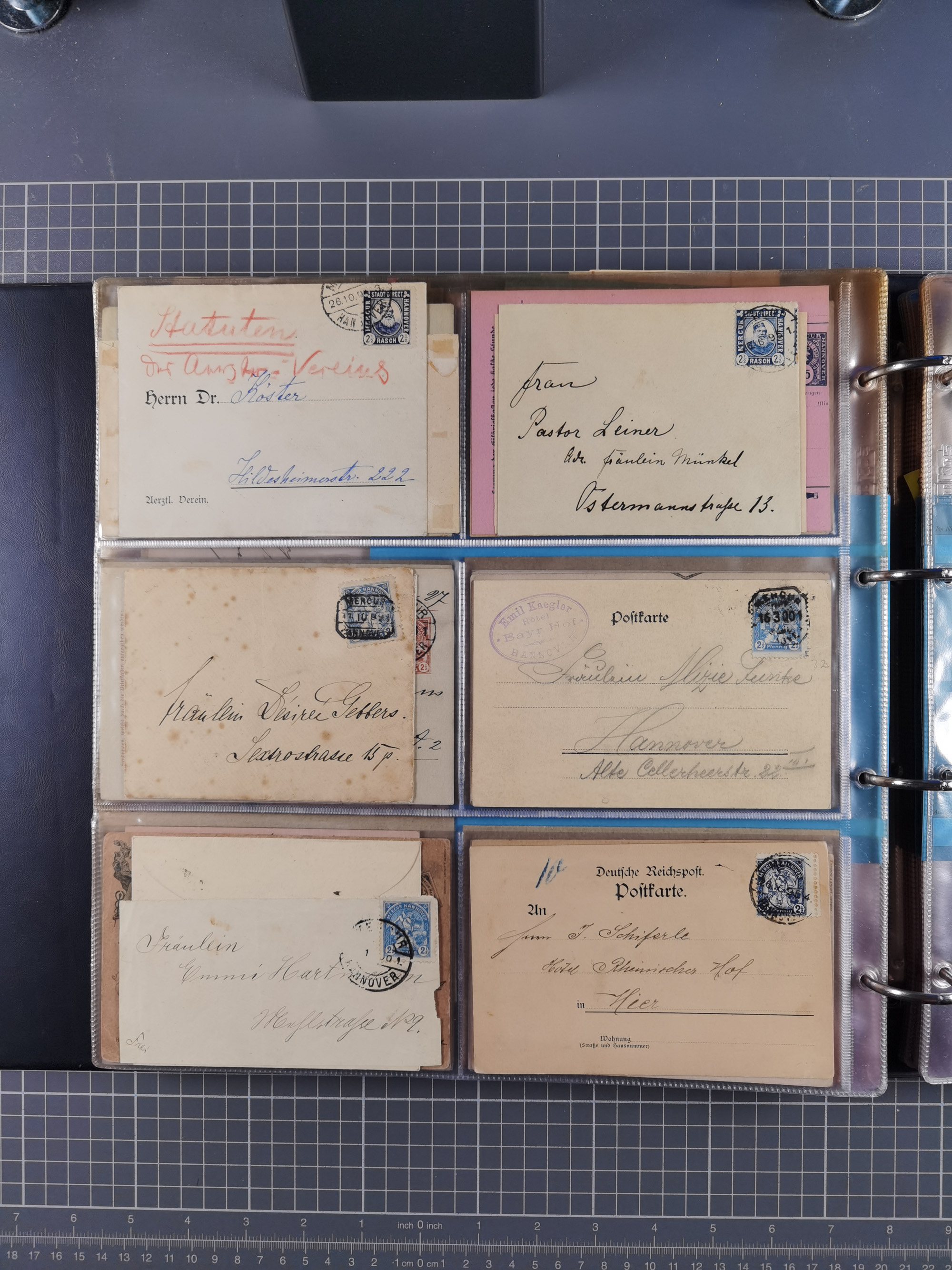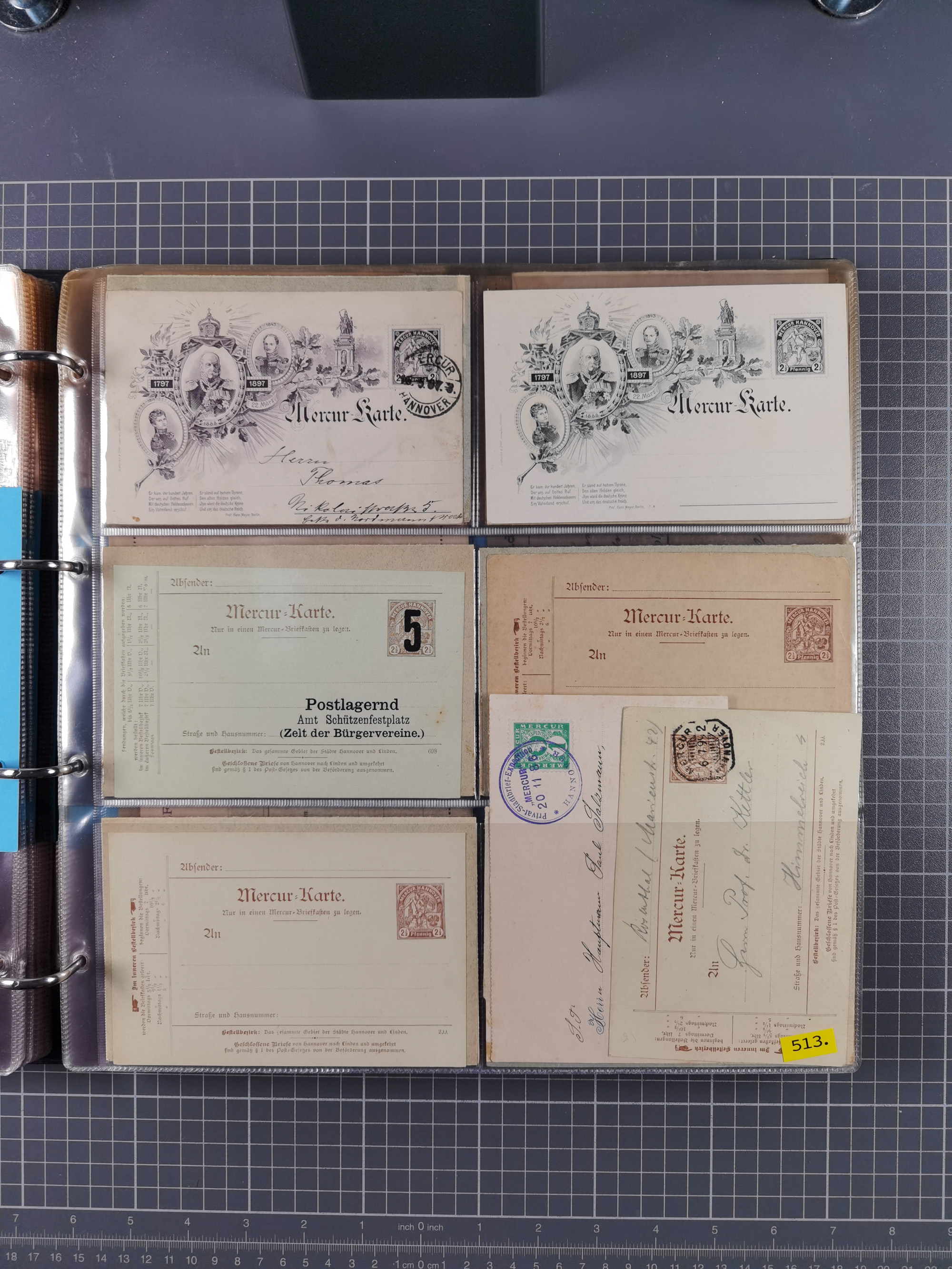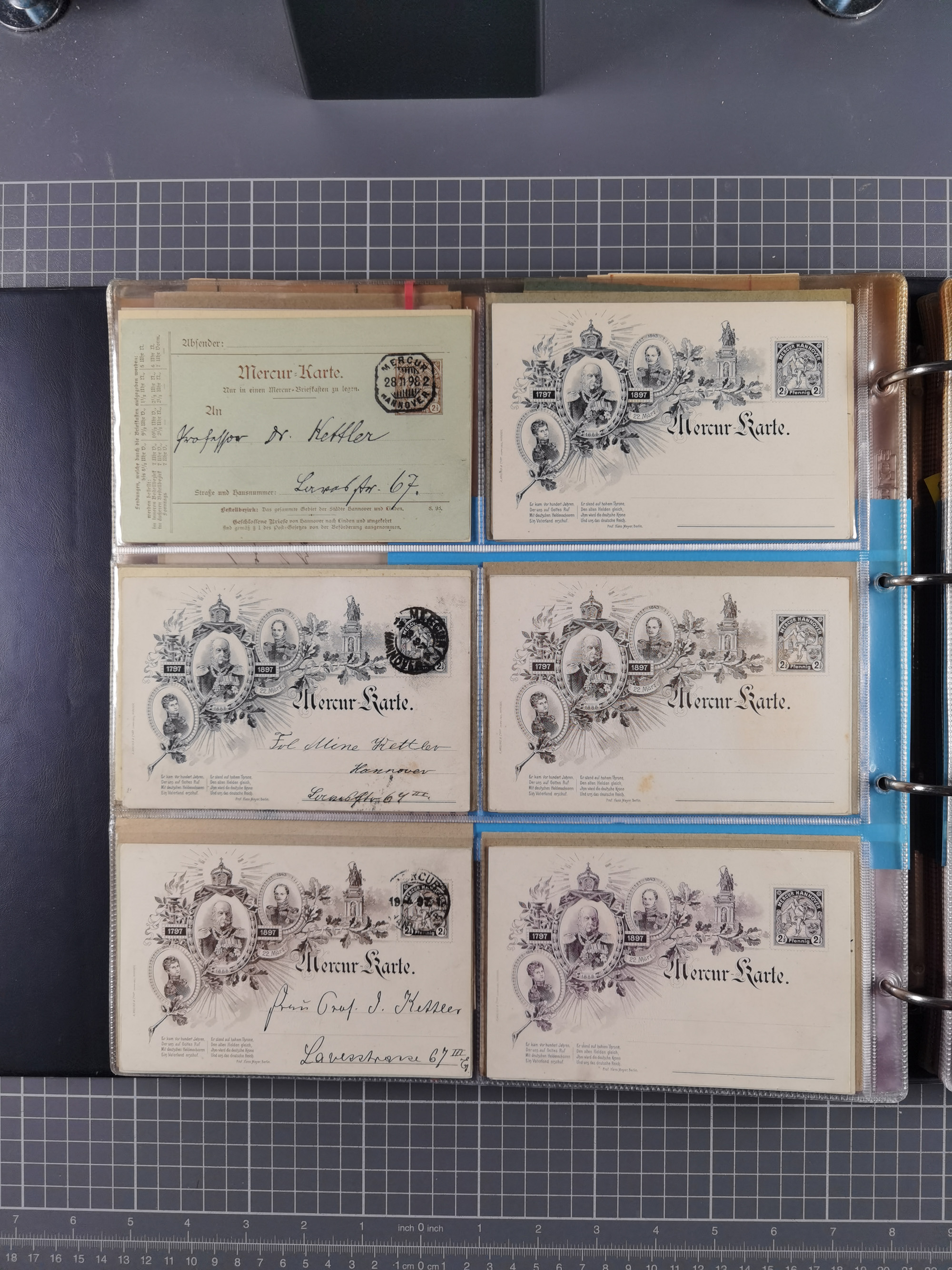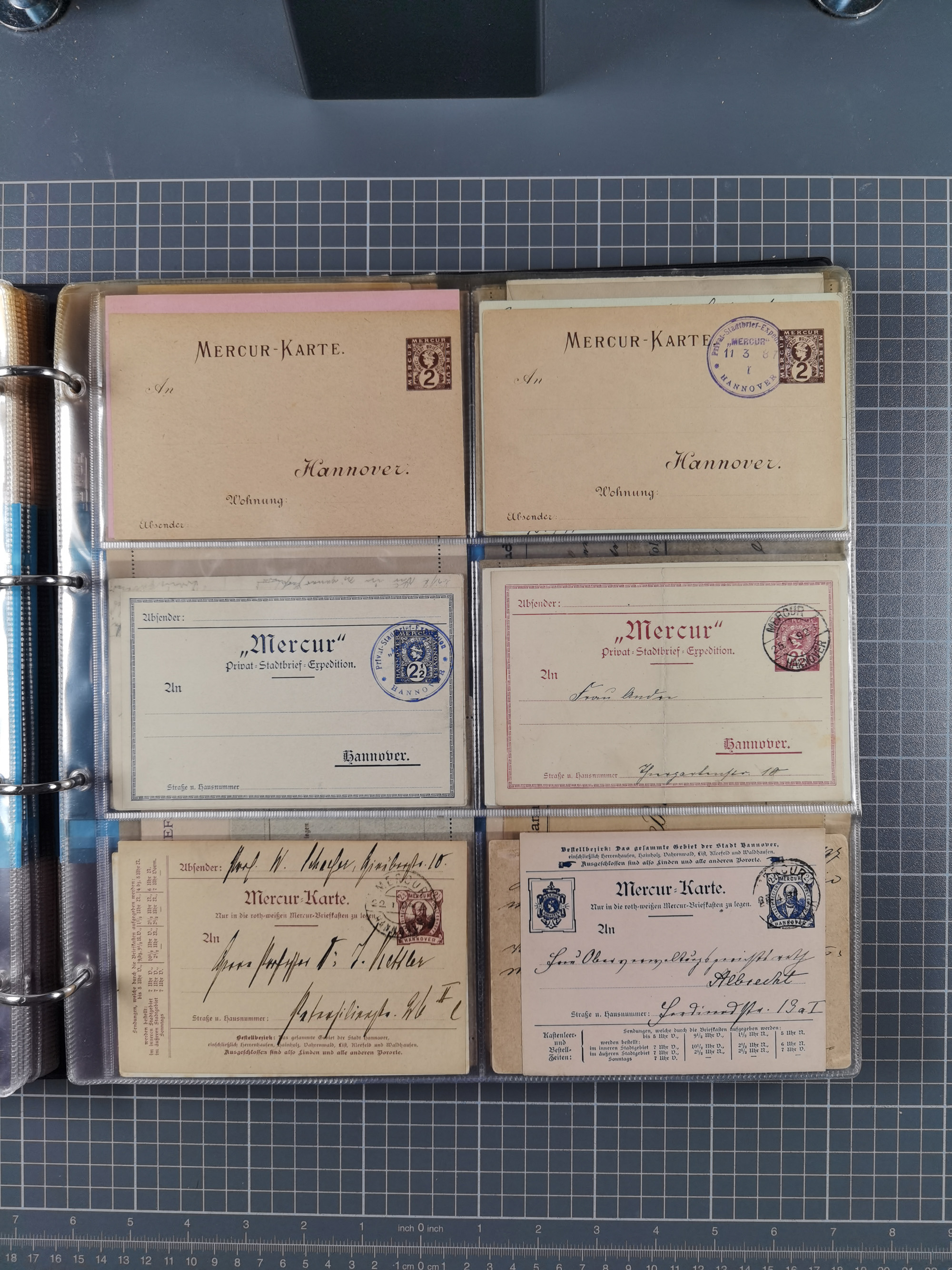 Hannover-Mercur: 1886/1900, ca. 70 Briefe, Karten und ungebrauchte/gebrauchte Ganzsachen. Dabei u.a. P18-19 und P20-22 gebraucht, P24 ungebrauch, 2x K7U und 3x K12U ungebraucht