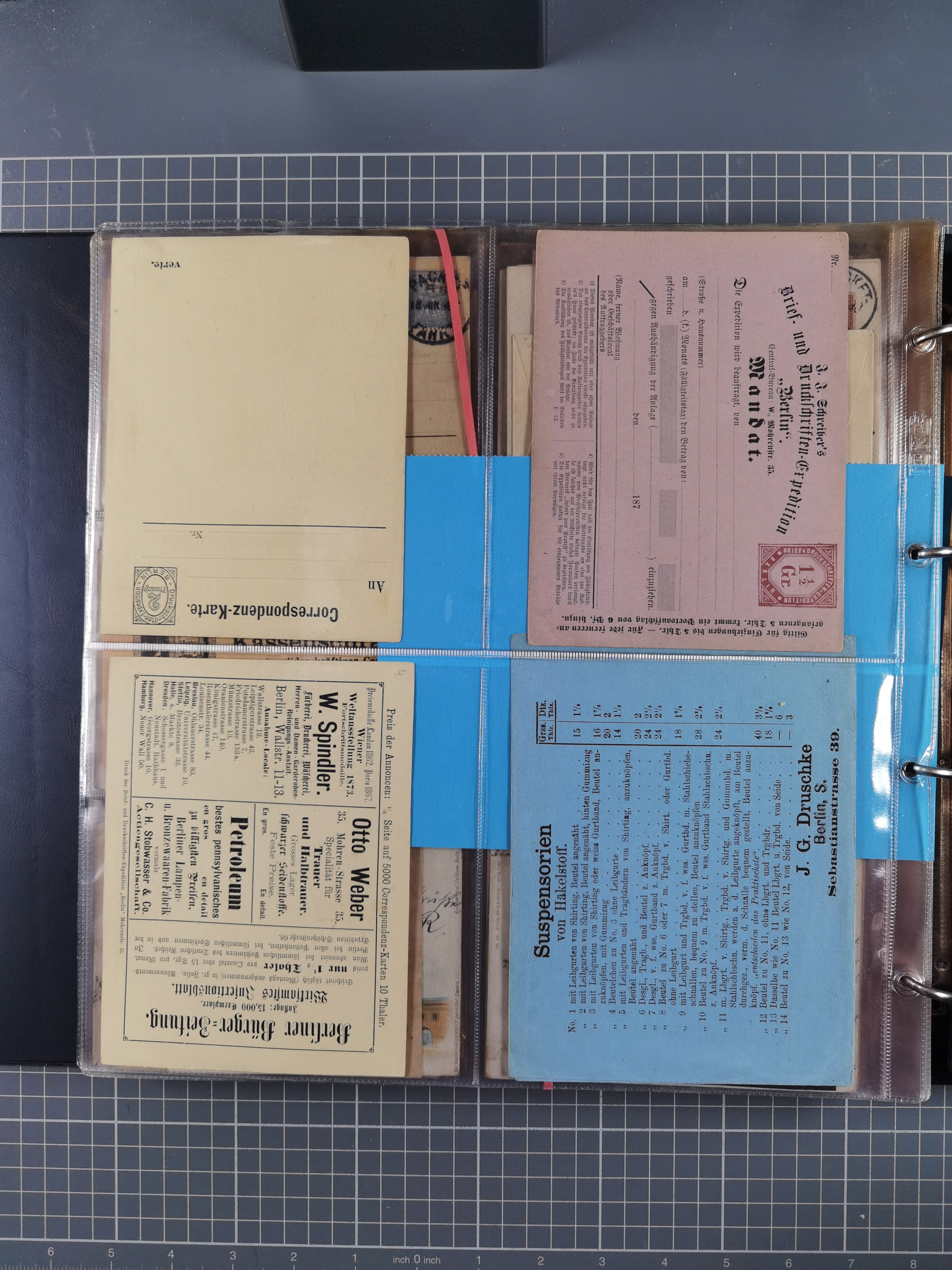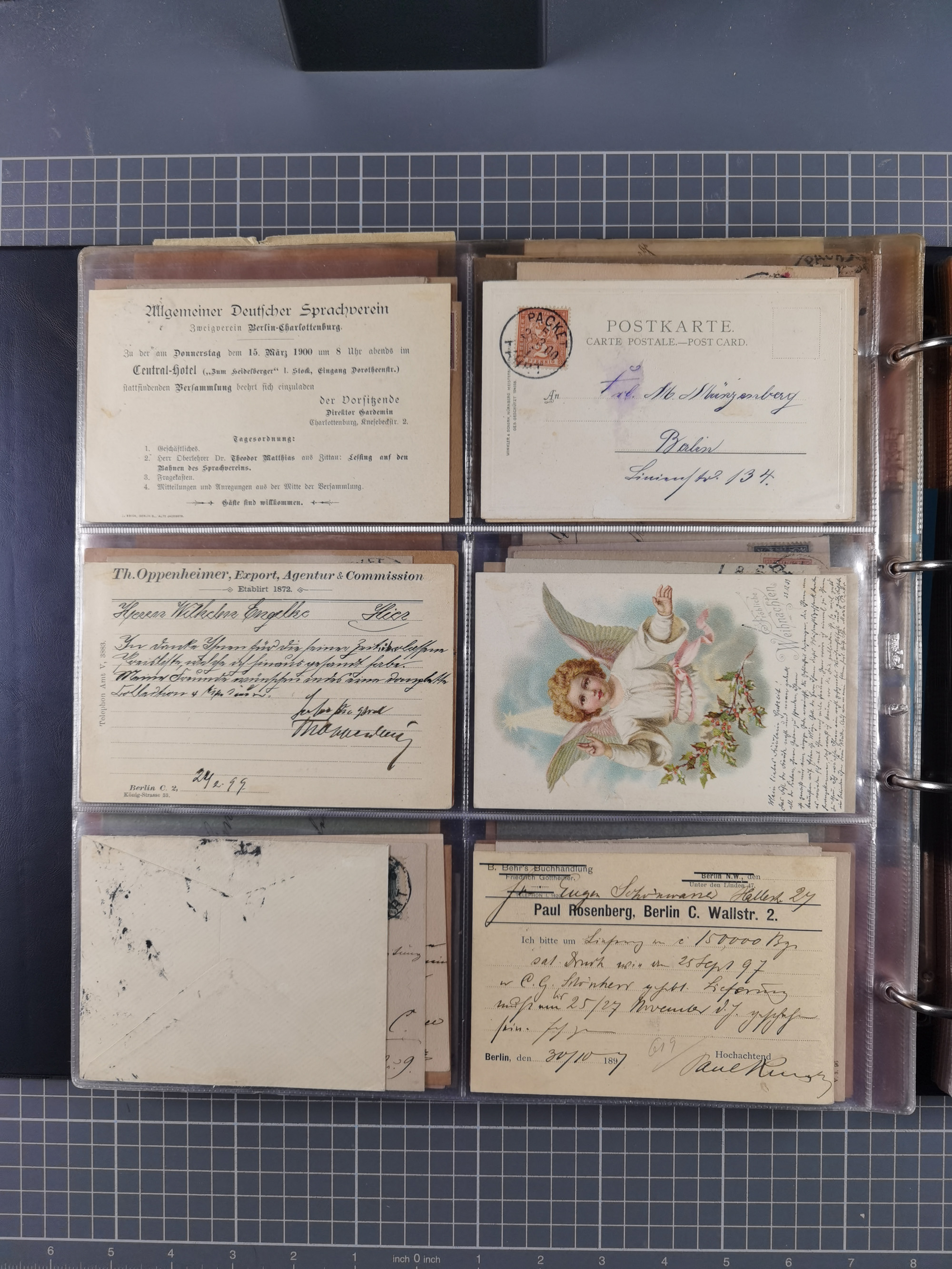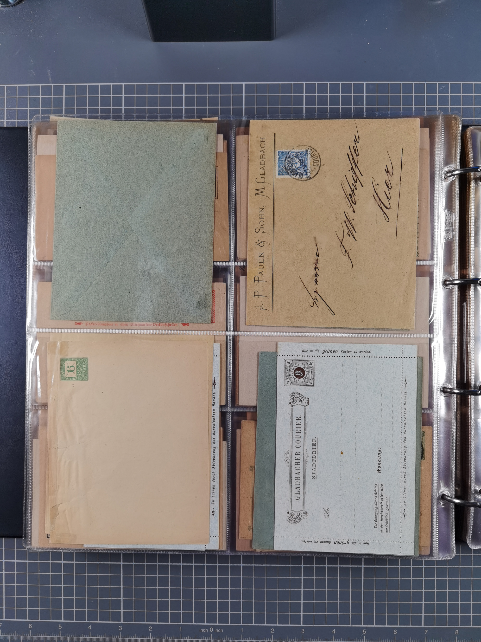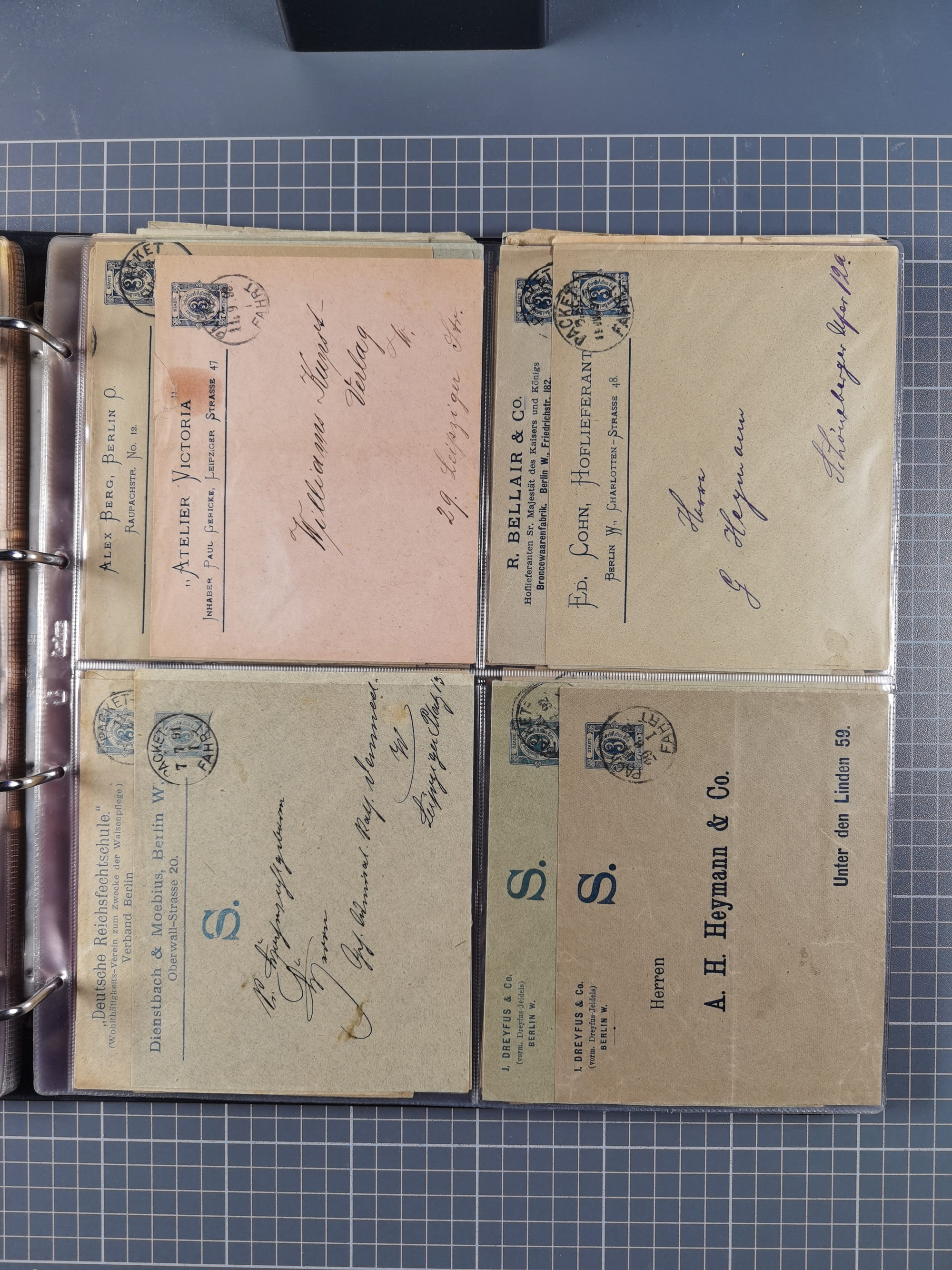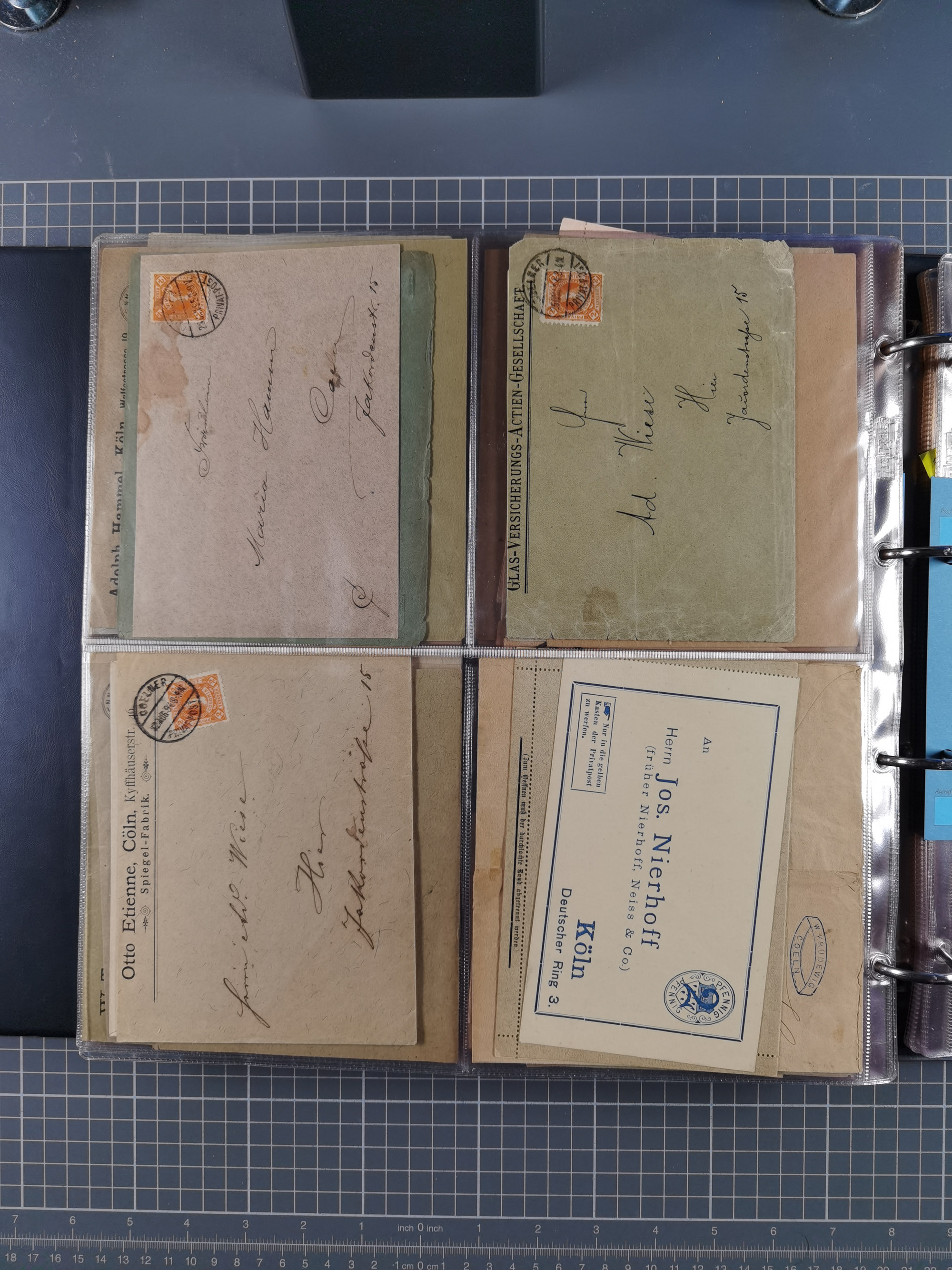 Köln: 1886/1900, ca. 100 Briefe, Karten und ungebrauchte/gebrauchte Ganzsachen sowie Formulare (u.a. “Abmeldung (Duplikat” ungebraucht) mit Schwerpunkt “Privat-Brief-Verkehr”. Dabei u.a. frankierte Firmenbriefe mit Mi.-Nr. 5 und 9, PP1 ungebraucht, PP5 ungebraucht und PU1 “Franz Wiillick” gebraucht , P28 ungebraucht und K4 gebraucht