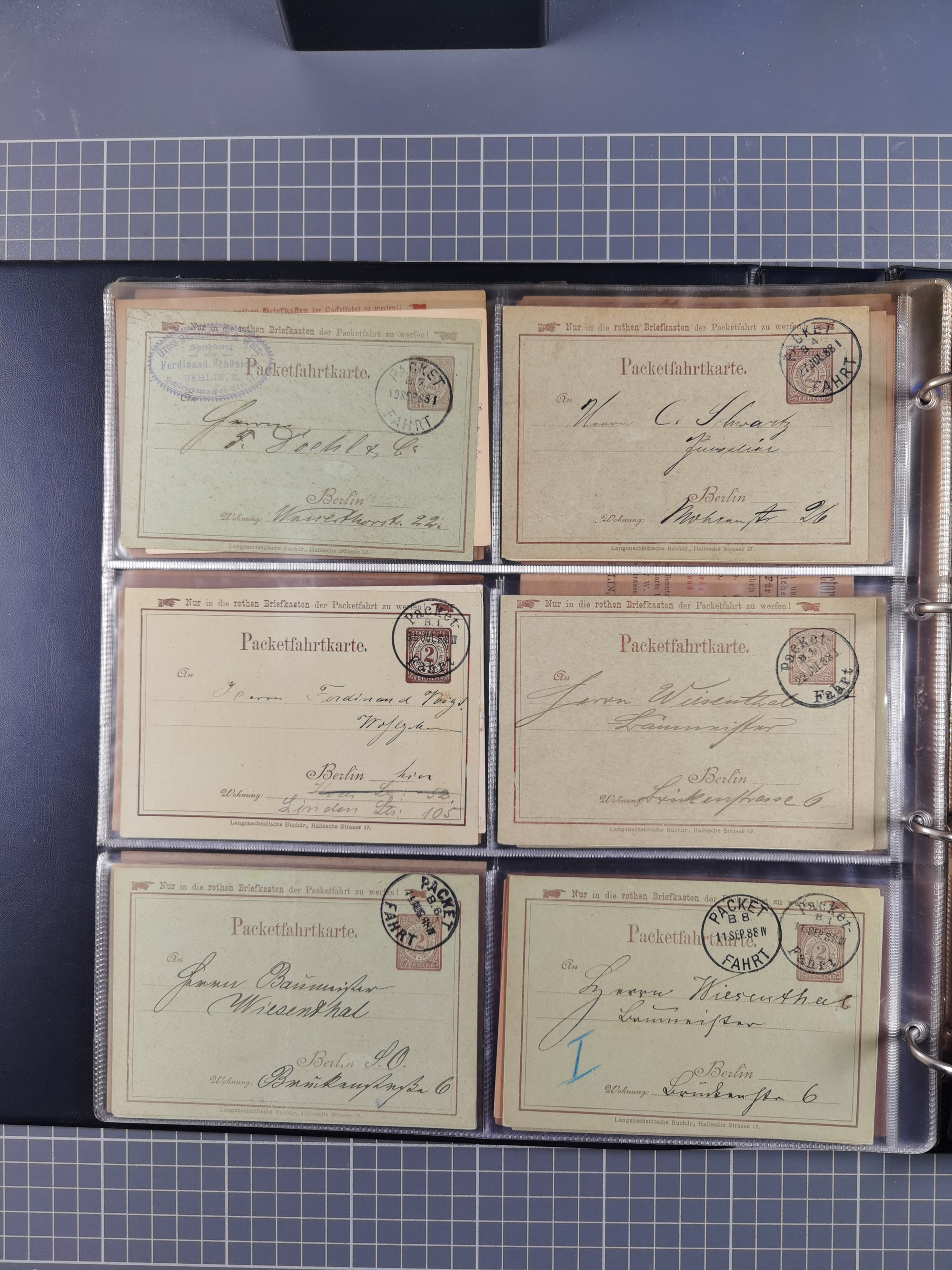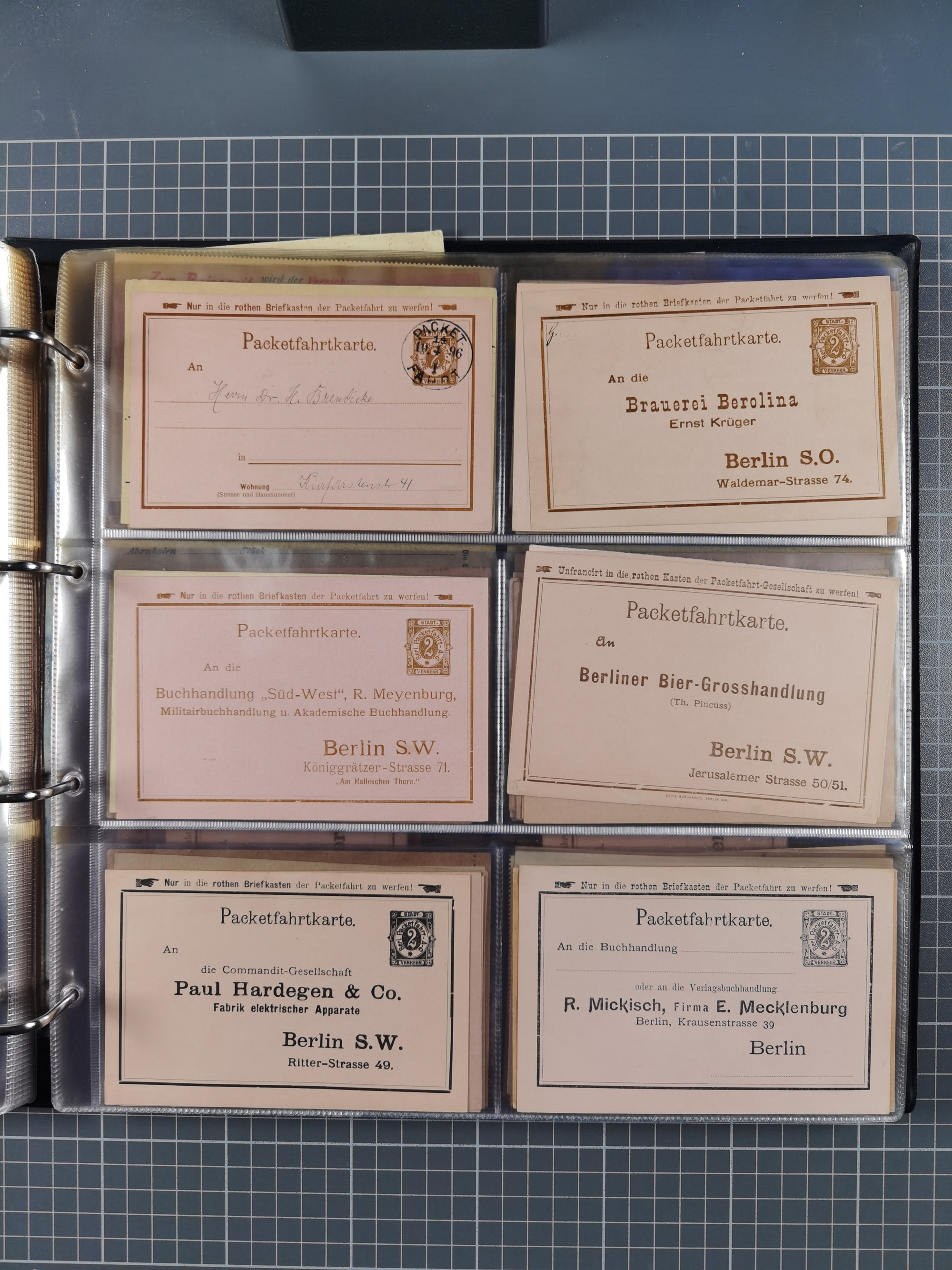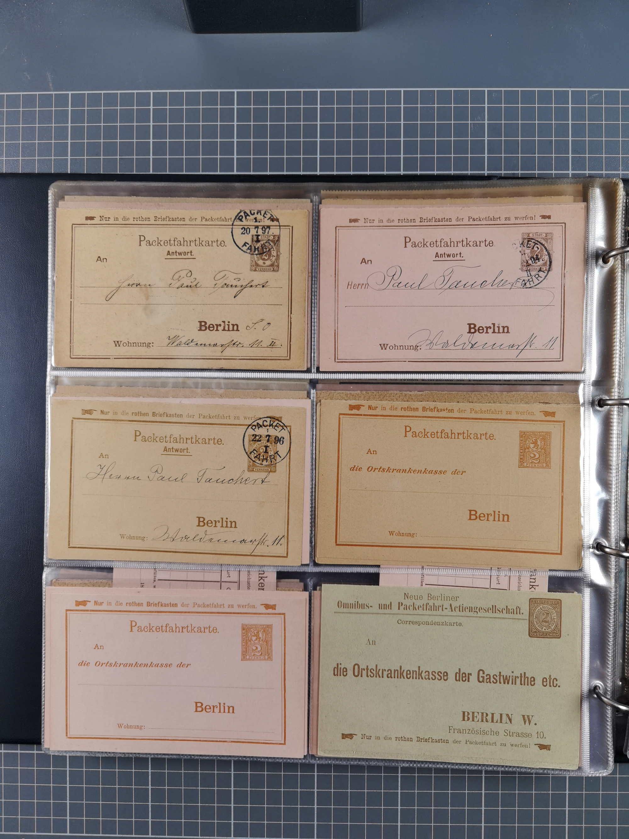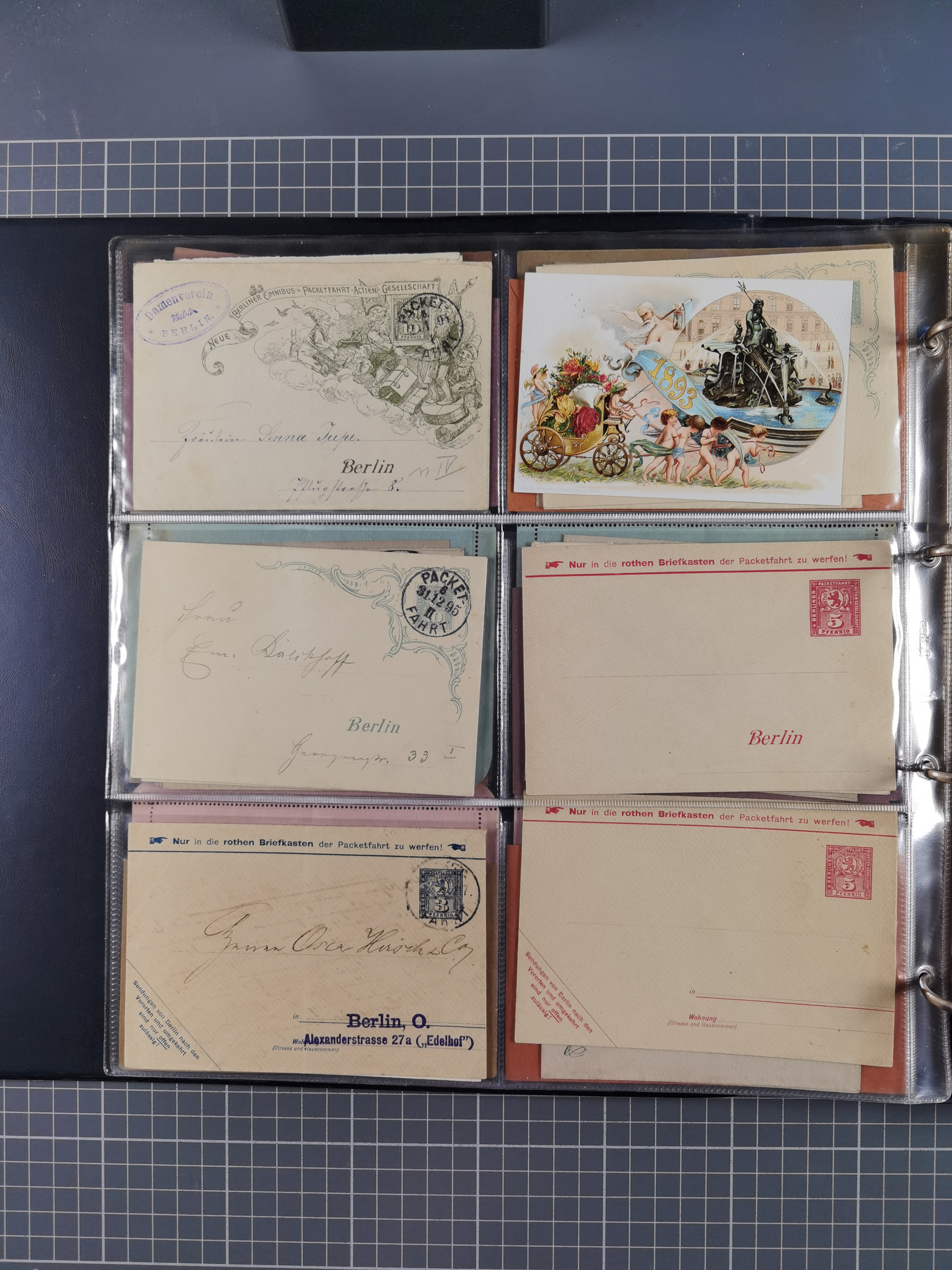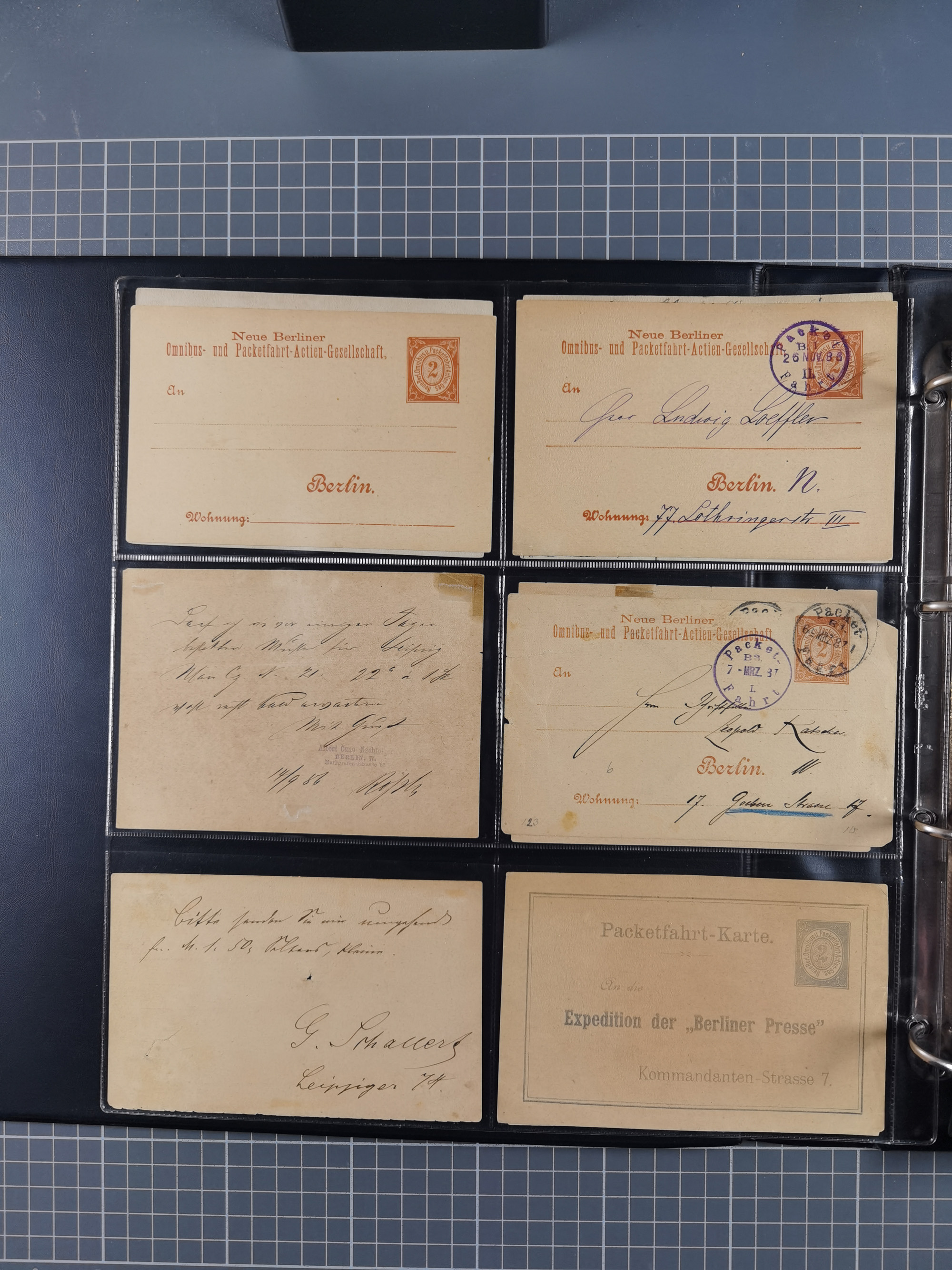 Berlin-Berliner Packetfahrt Gesellschaft: 1886/1900, umfangreiche Sammlung “Ganzsachen-Kartenbriefe und Umschläge” mit ca. 300 ungebrauchten und gebrauchten Ganzsachen. Dabei viele bessere Reklamen inkl. diverser Abbildungen, meist in guter Erhaltung