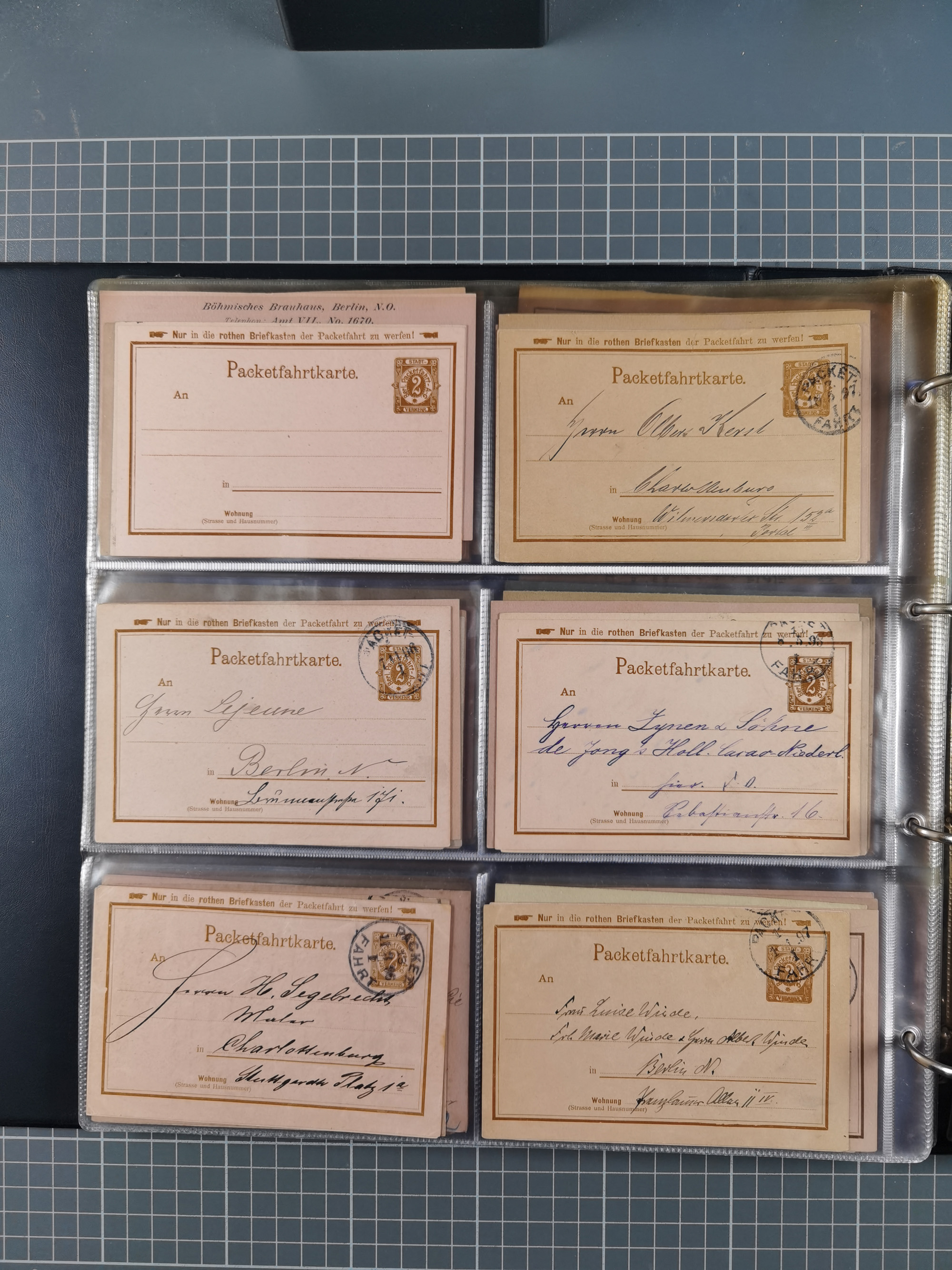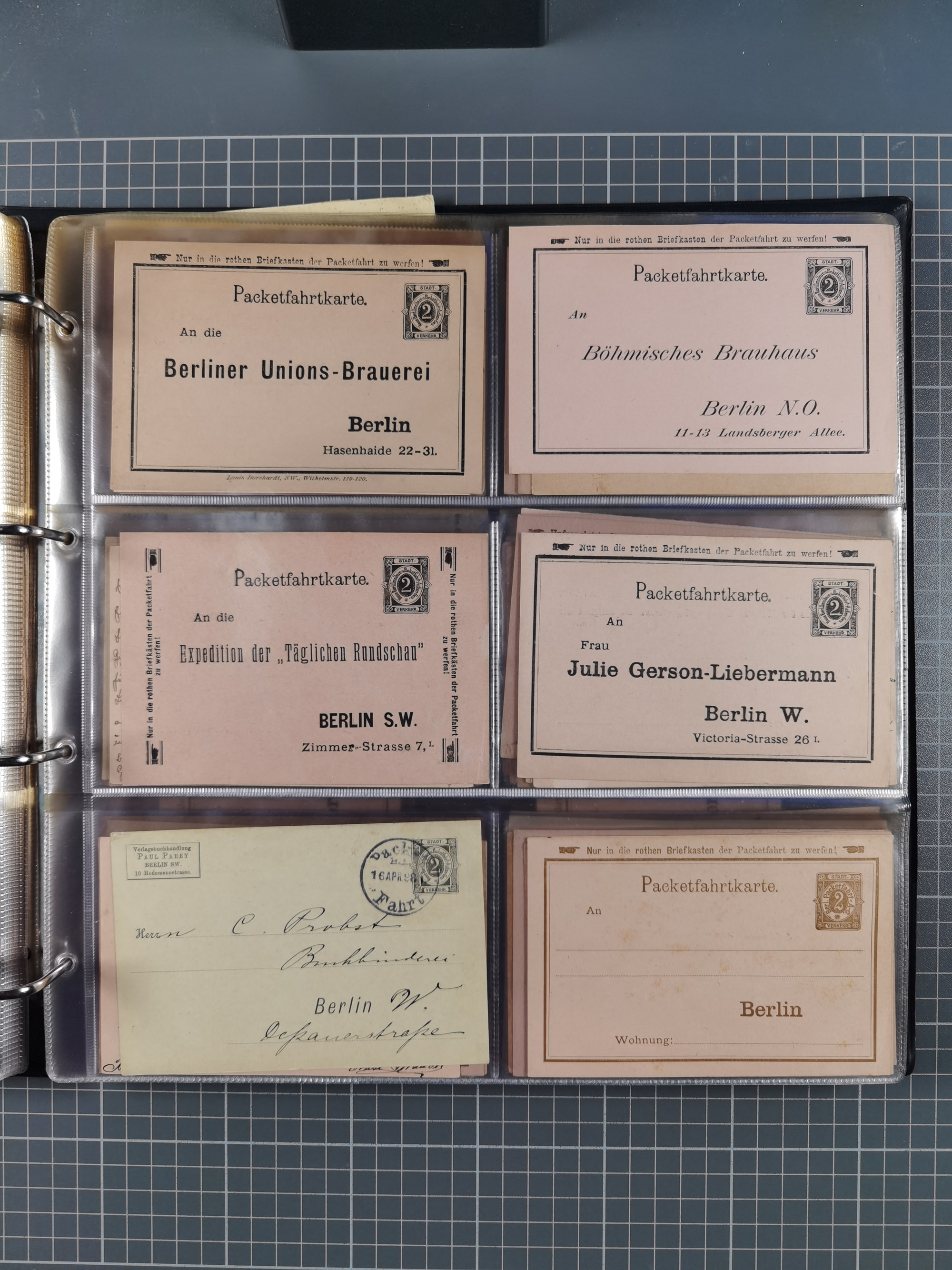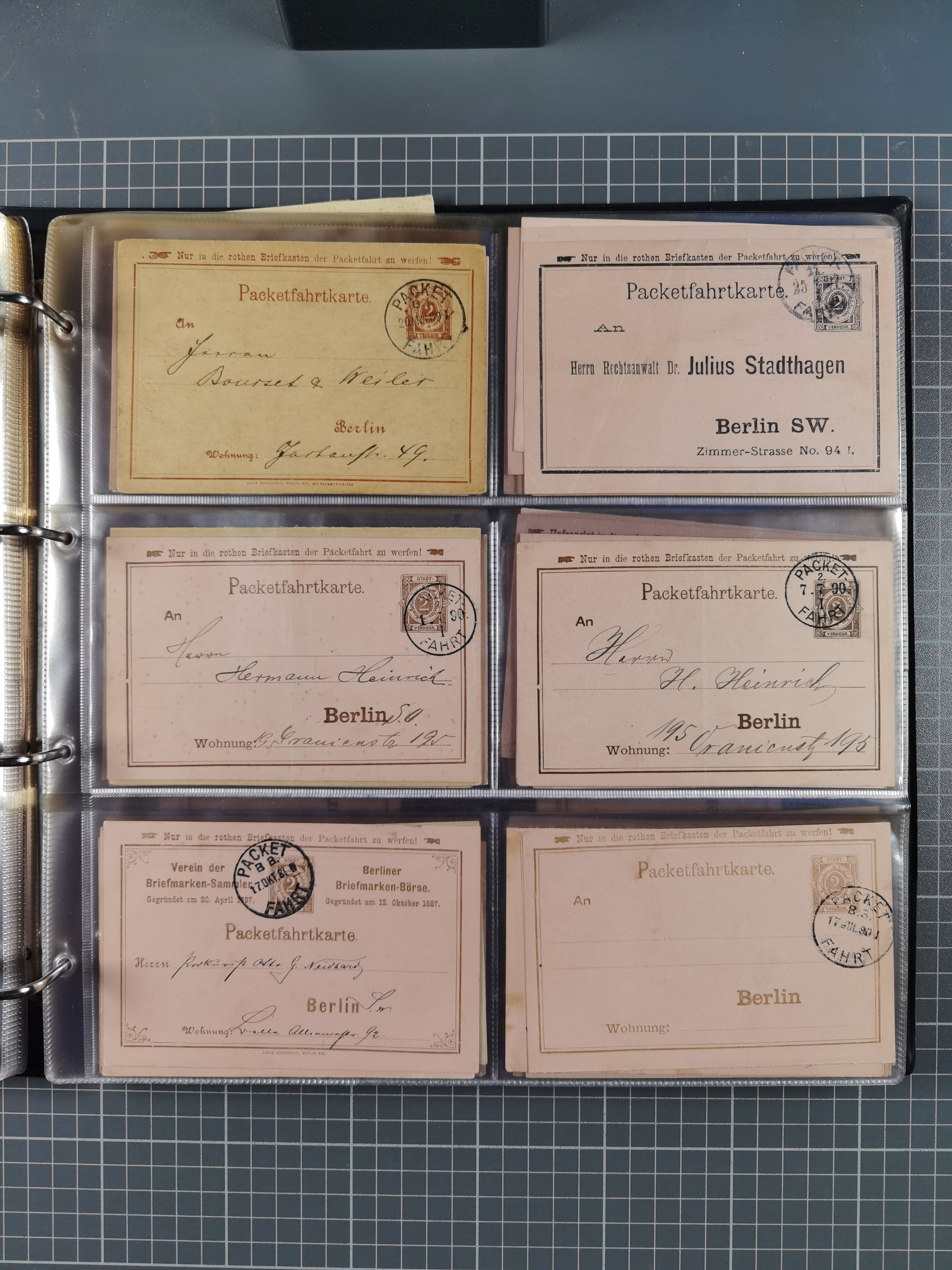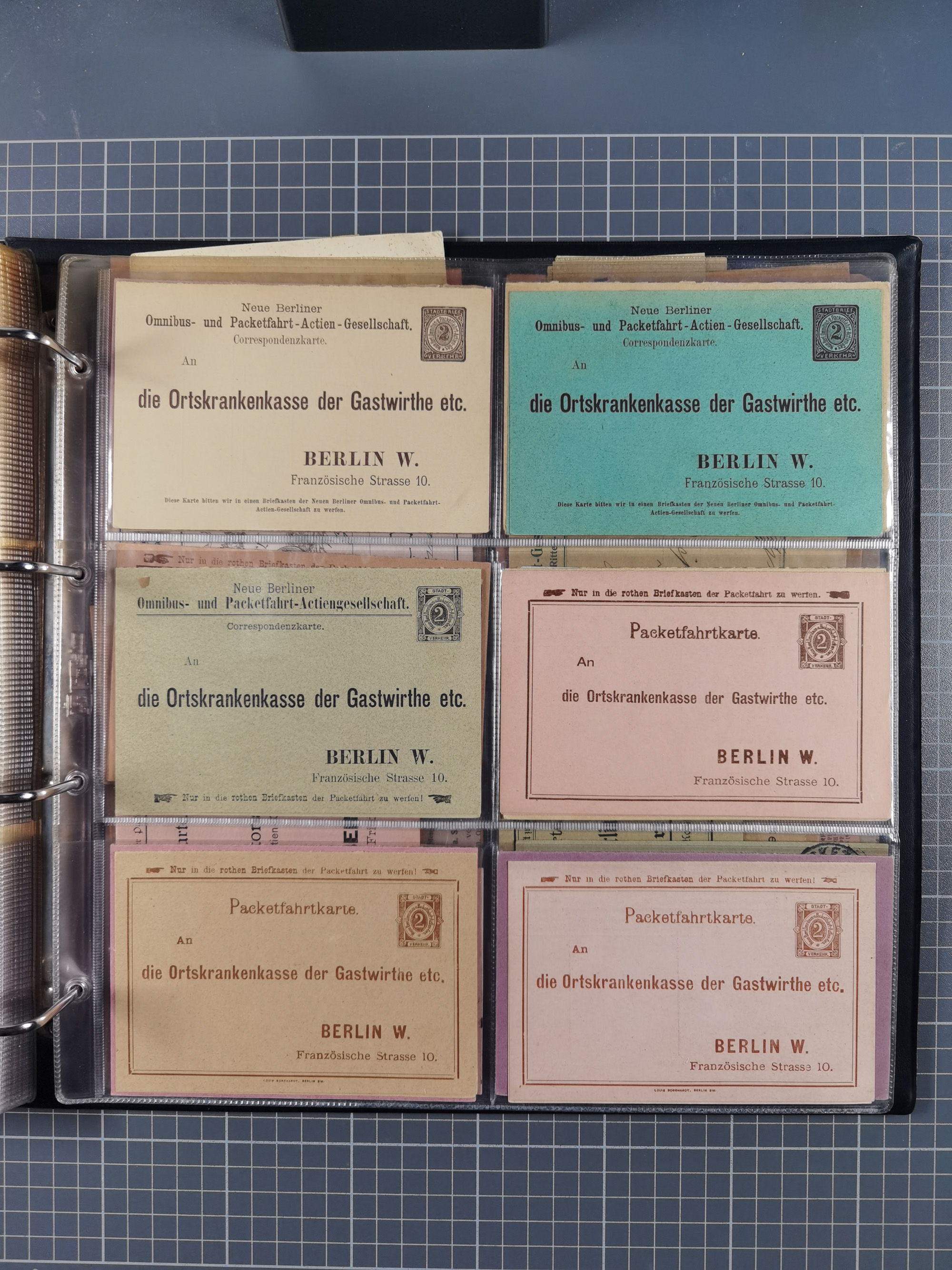 Berlin-Berliner Packetfahrt Gesellschaft: 1886/1900, umfangreiche Sammlung “Ganzsachen-Kartenbriefe und Umschläge” mit ca. 300 ungebrauchten und gebrauchten Ganzsachen. Dabei viele bessere Reklamen inkl. diverser Abbildungen, meist in guter Erhaltung