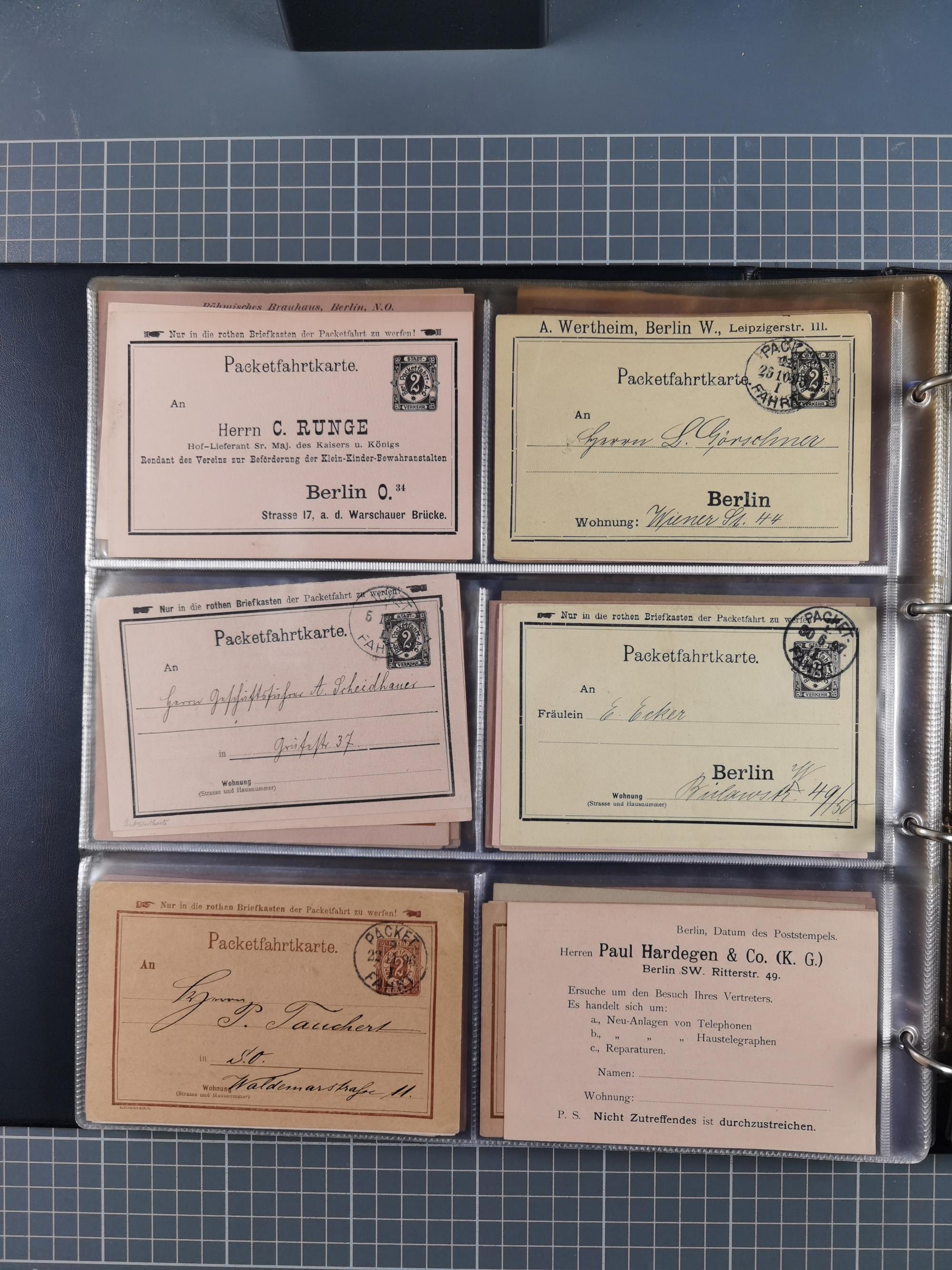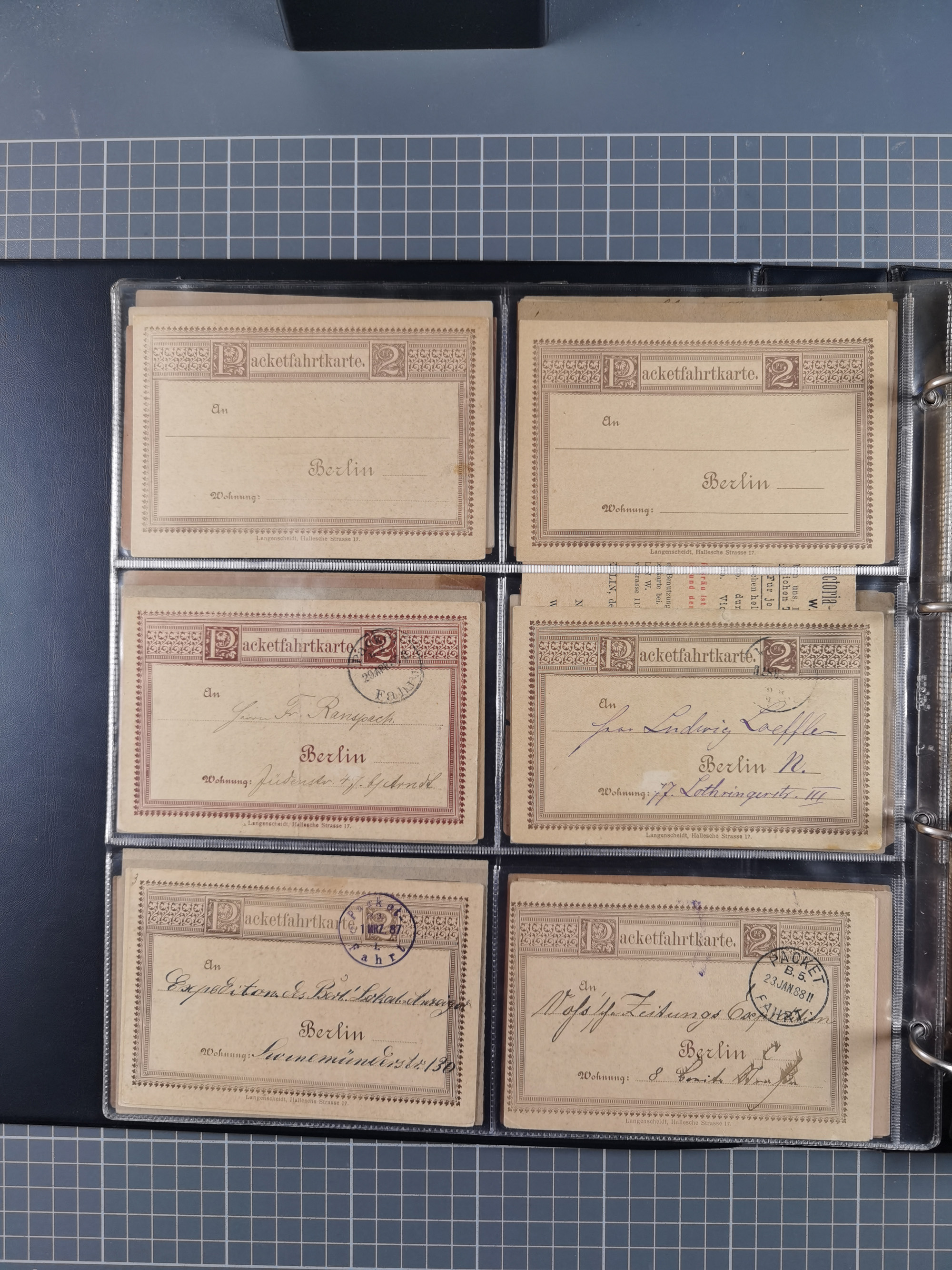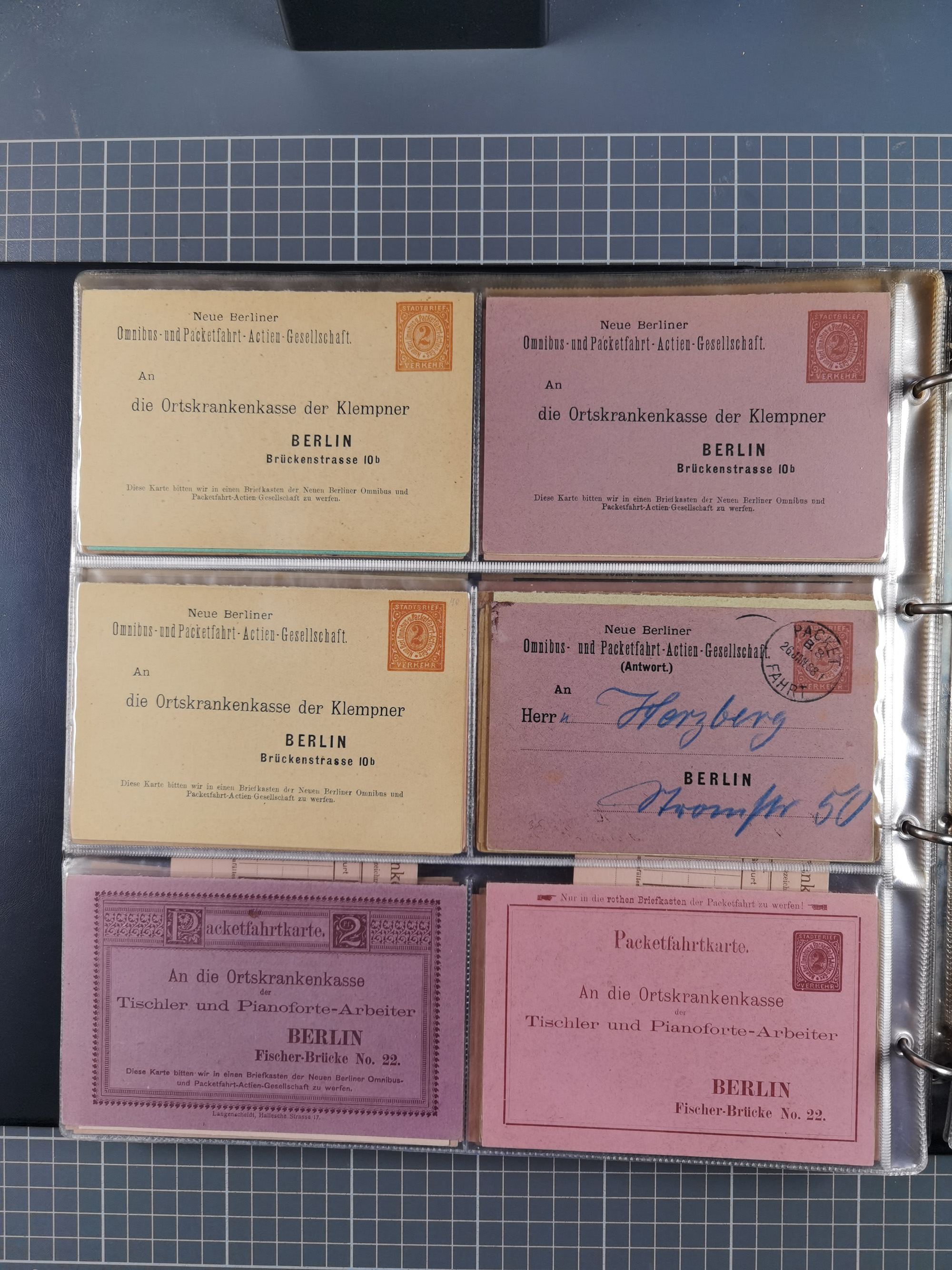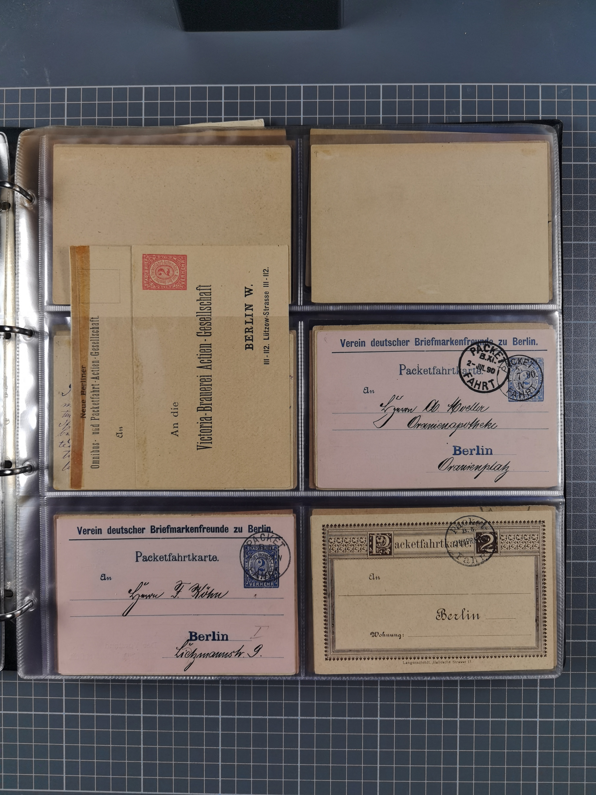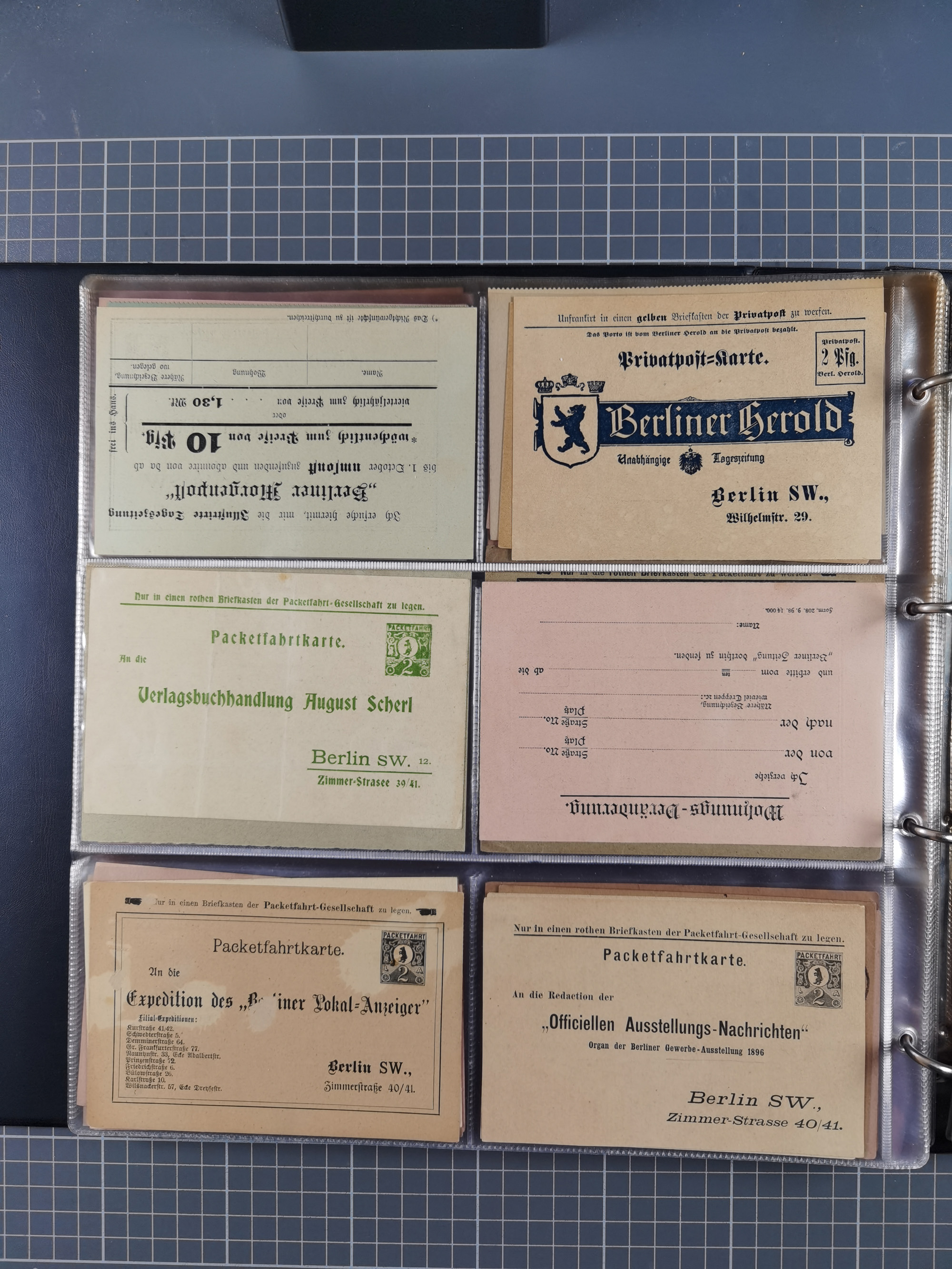 Berlin-Berliner Packetfahrt Gesellschaft: 1886/1900, umfangreiche Sammlung “Ganzsachen-Kartenbriefe und Umschläge” mit ca. 300 ungebrauchten und gebrauchten Ganzsachen. Dabei viele bessere Reklamen inkl. diverser Abbildungen, meist in guter Erhaltung