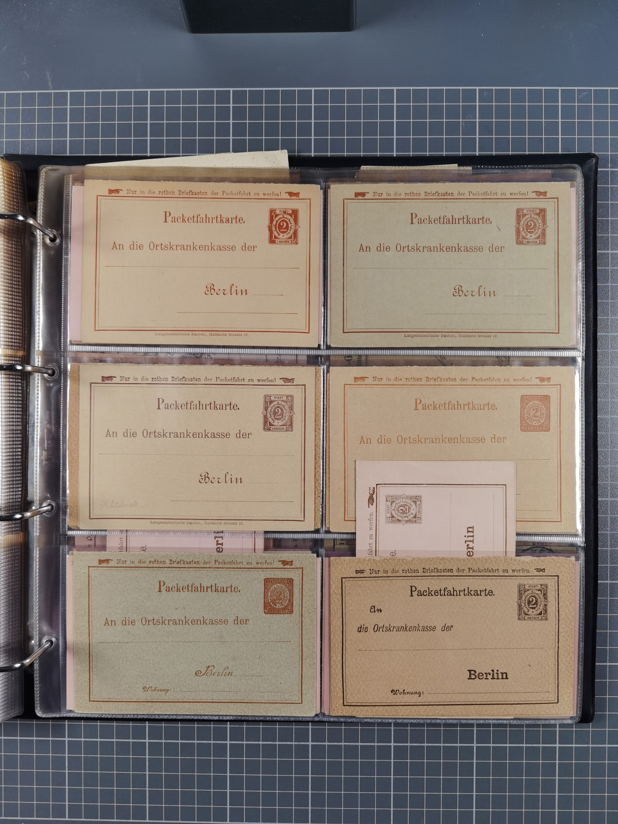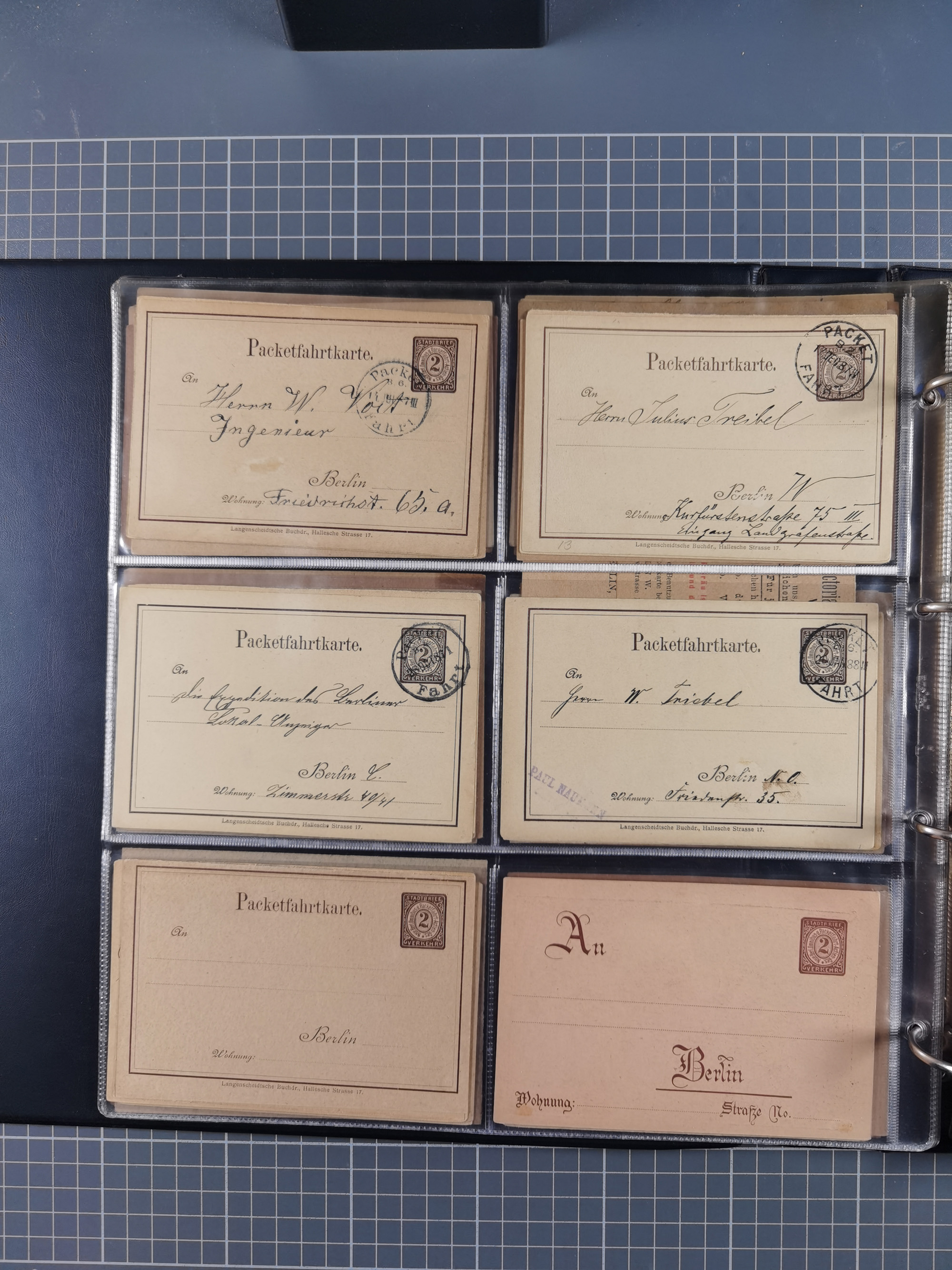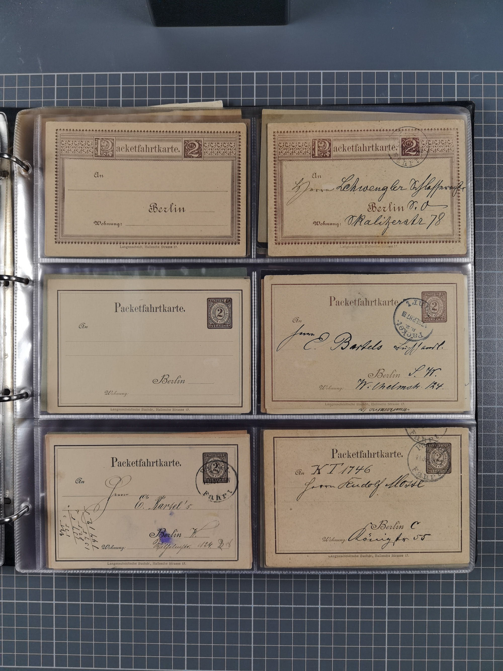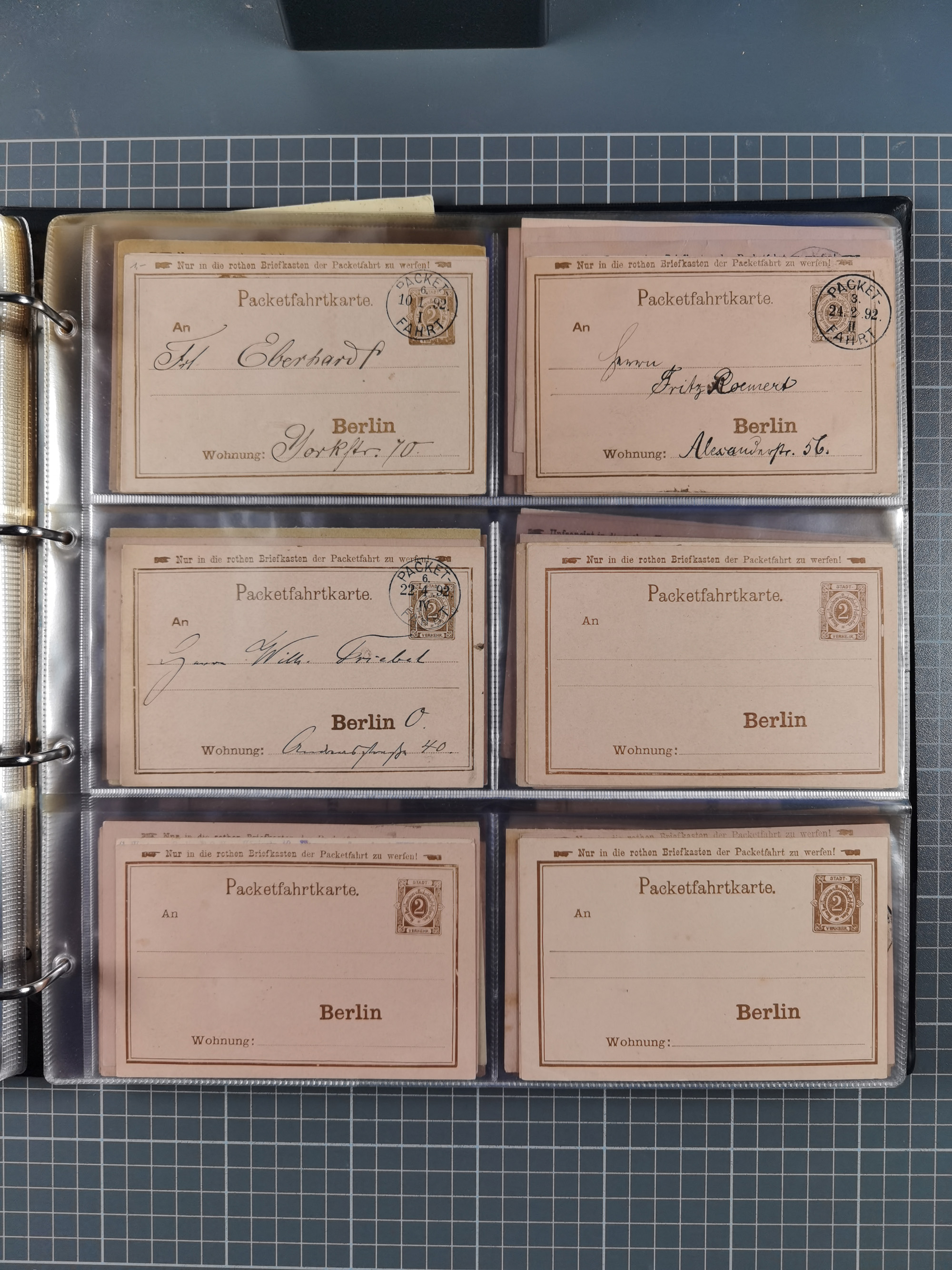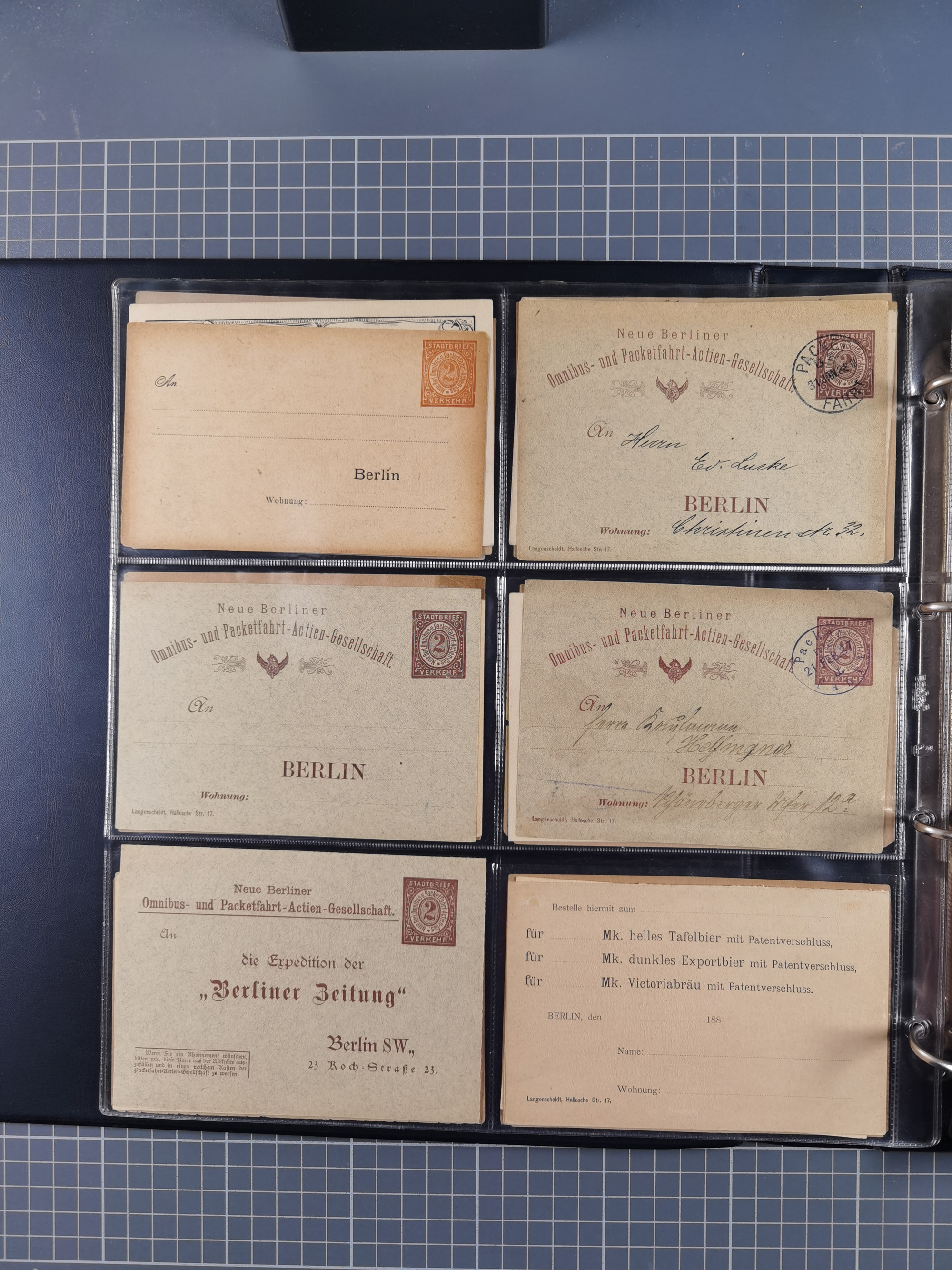 Berlin-Berliner Packetfahrt Gesellschaft: 1886/1900, umfangreiche Sammlung “Ganzsachen-Kartenbriefe und Umschläge” mit ca. 300 ungebrauchten und gebrauchten Ganzsachen. Dabei viele bessere Reklamen inkl. diverser Abbildungen, meist in guter Erhaltung