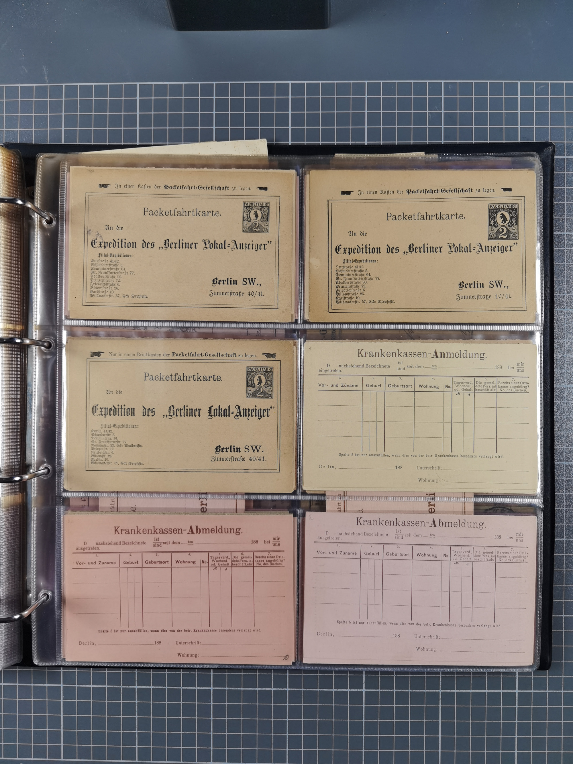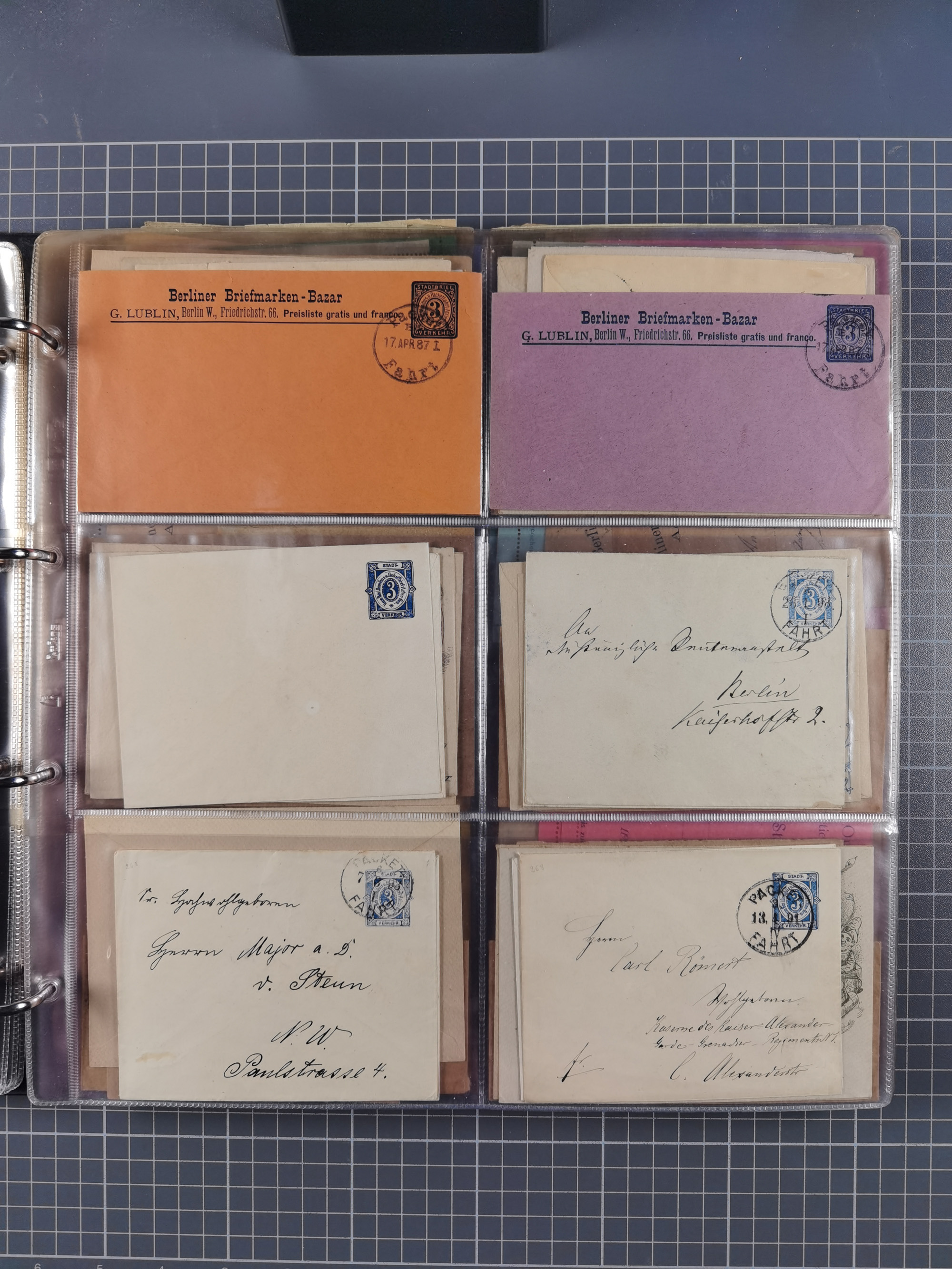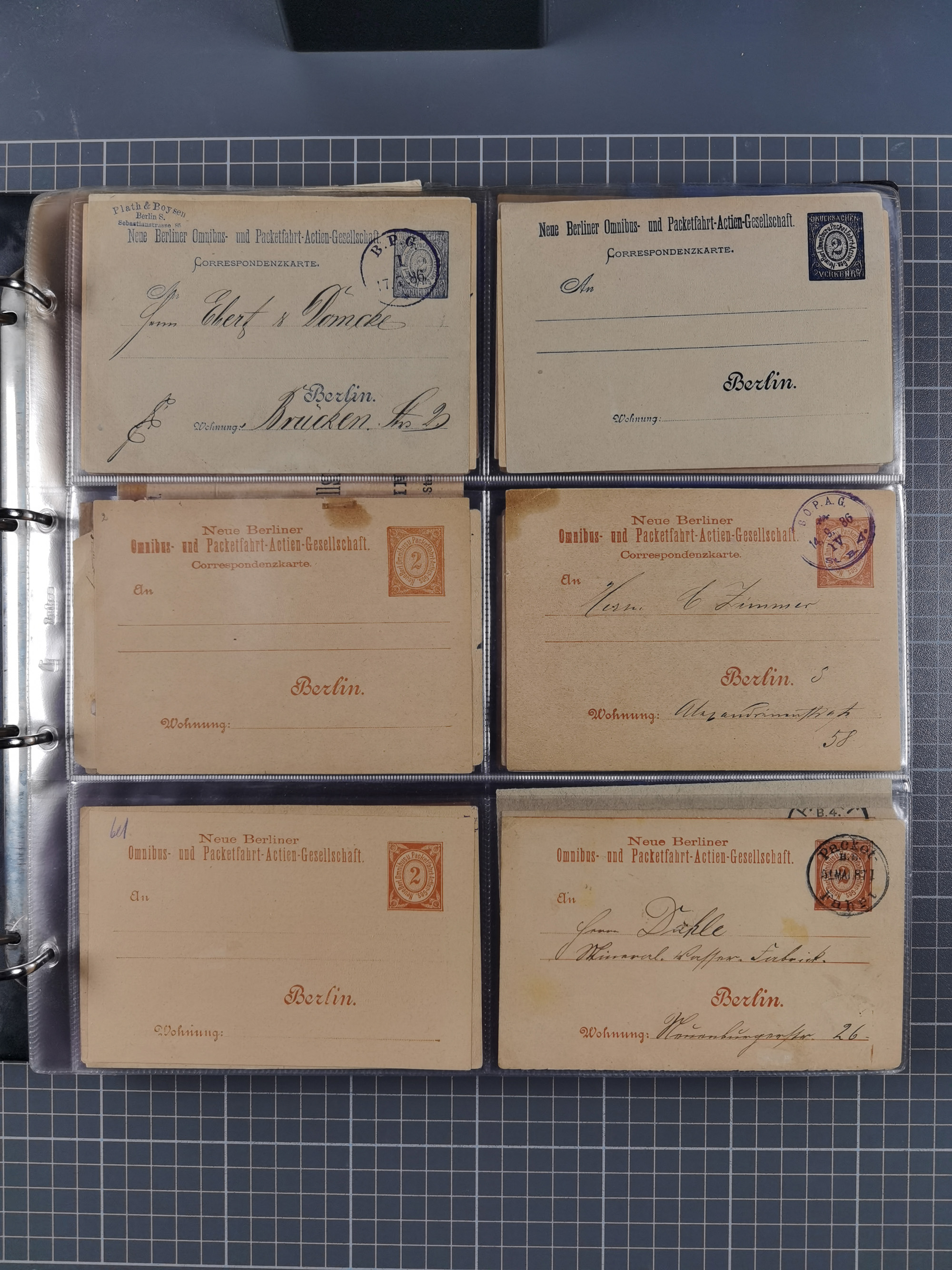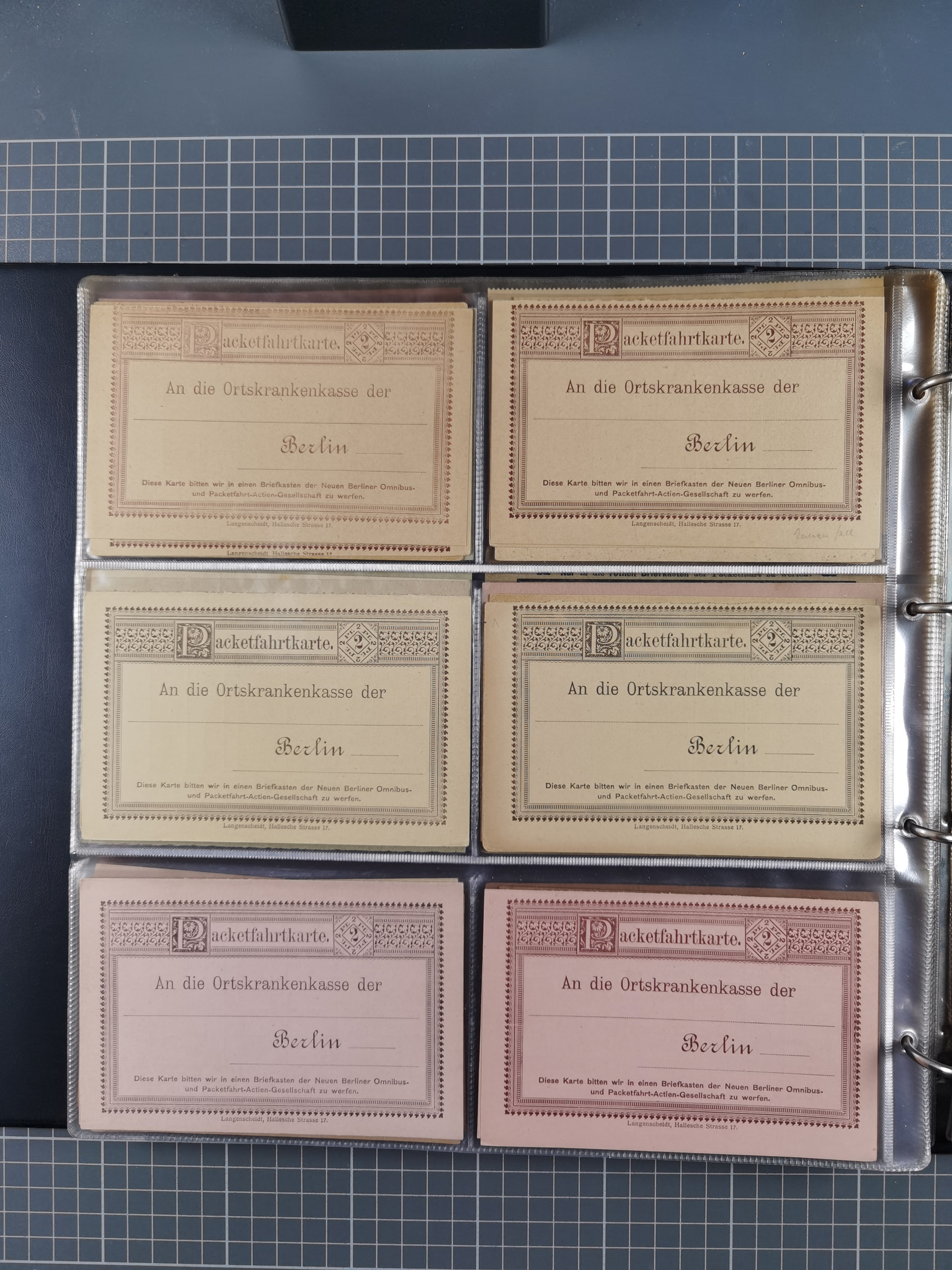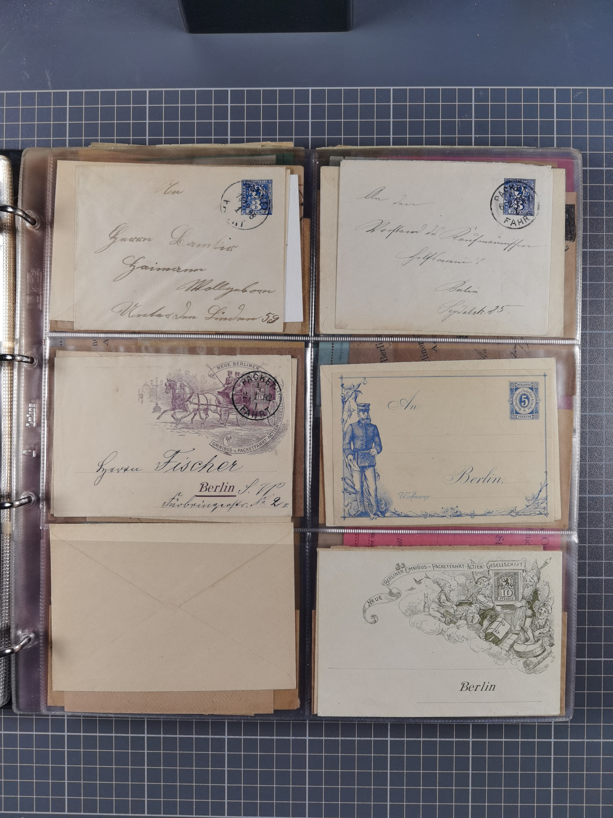 Berlin-Berliner Packetfahrt Gesellschaft: 1886/1900, umfangreiche Sammlung “Ganzsachen-Kartenbriefe und Umschläge” mit ca. 300 ungebrauchten und gebrauchten Ganzsachen. Dabei viele bessere Reklamen inkl. diverser Abbildungen, meist in guter Erhaltung