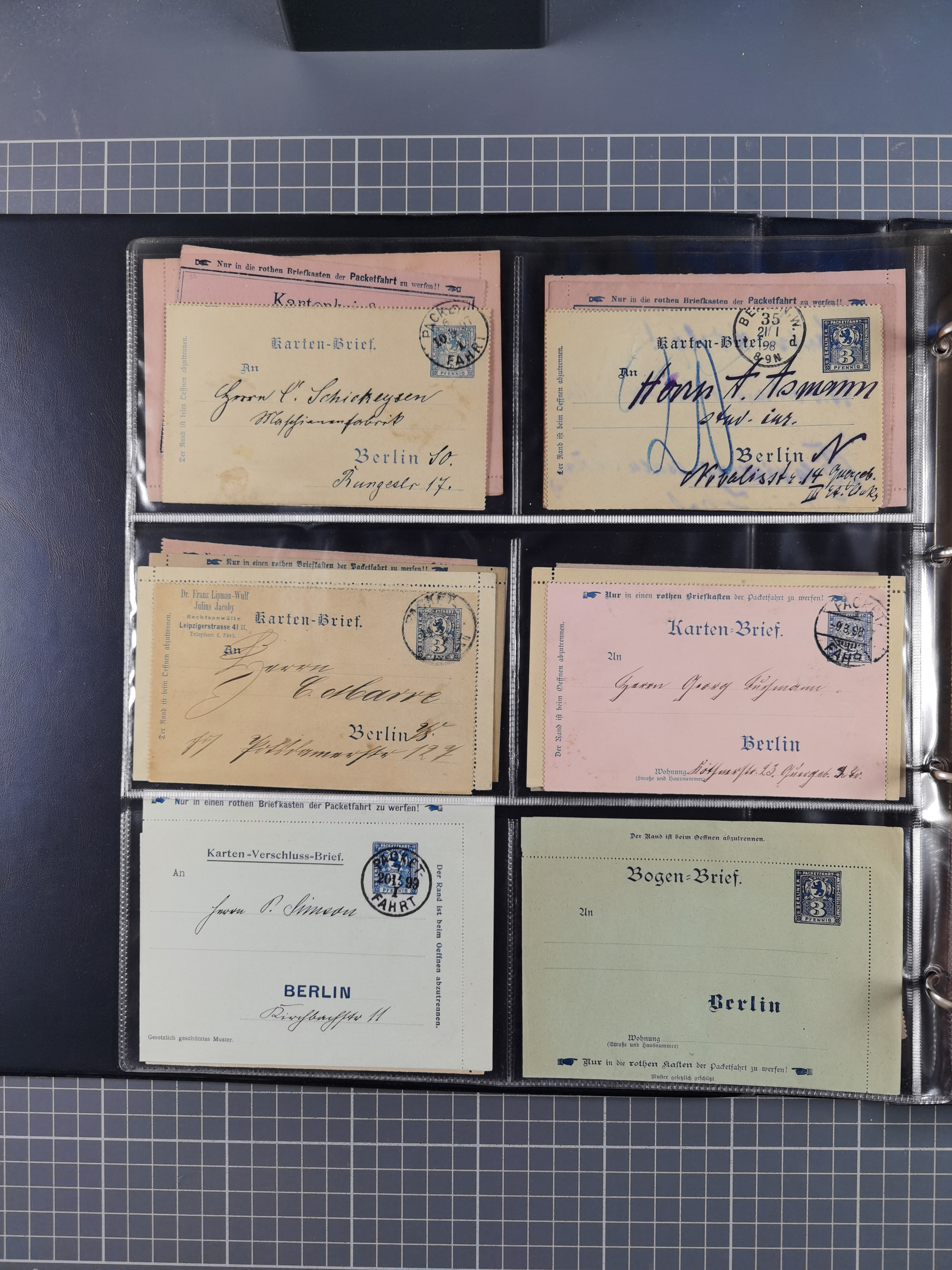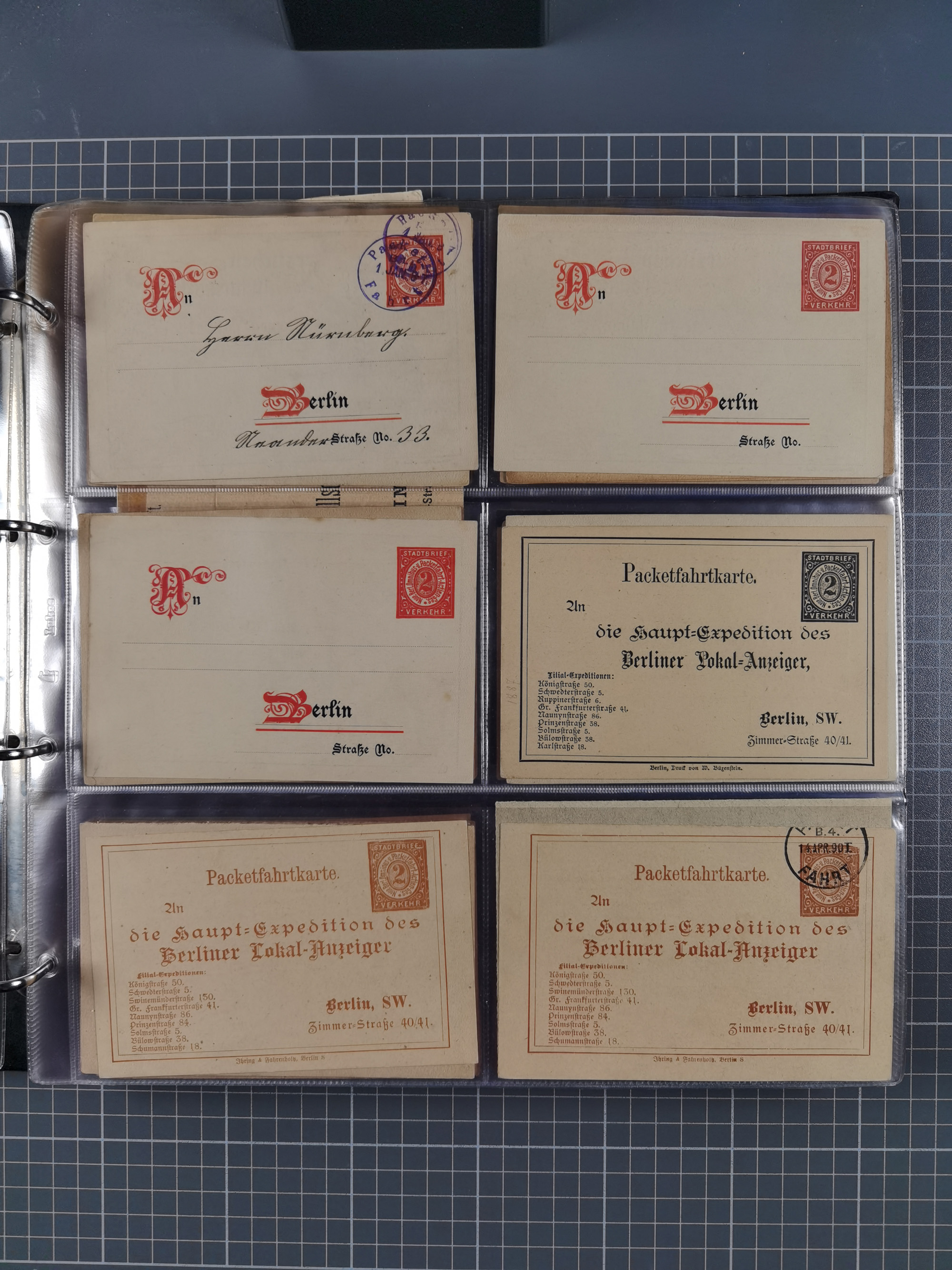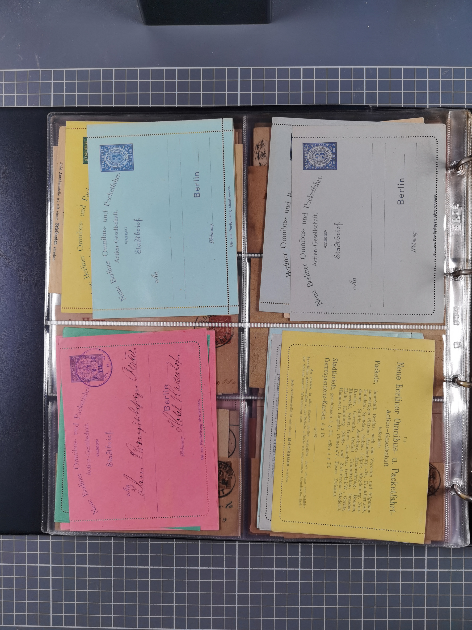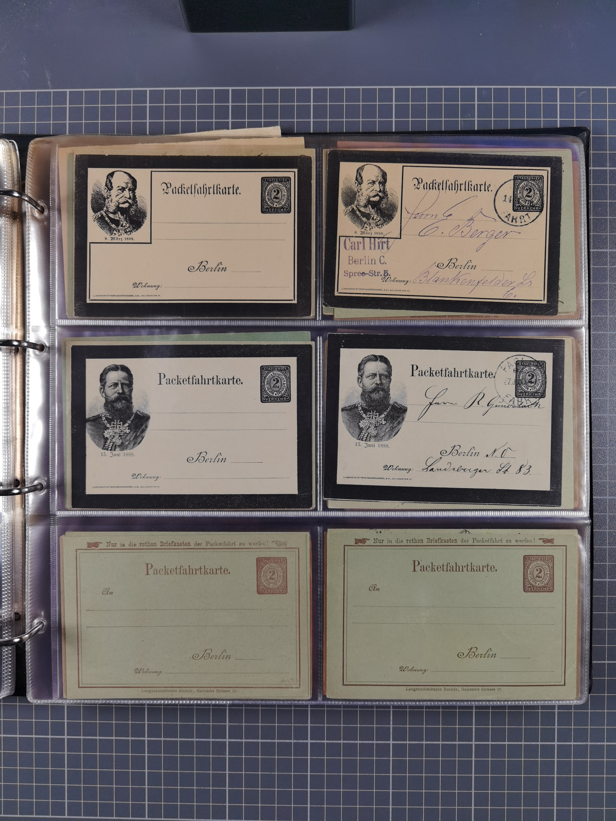 Berlin-Berliner Packetfahrt Gesellschaft: 1886/1900, umfangreiche Sammlung “Ganzsachen-Kartenbriefe und Umschläge” mit ca. 300 ungebrauchten und gebrauchten Ganzsachen. Dabei viele bessere Reklamen inkl. diverser Abbildungen, meist in guter Erhaltung