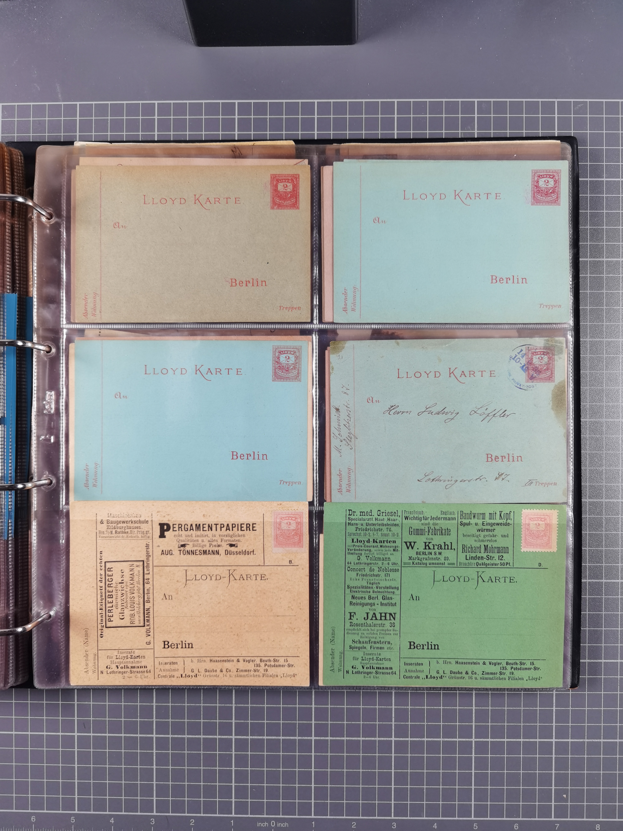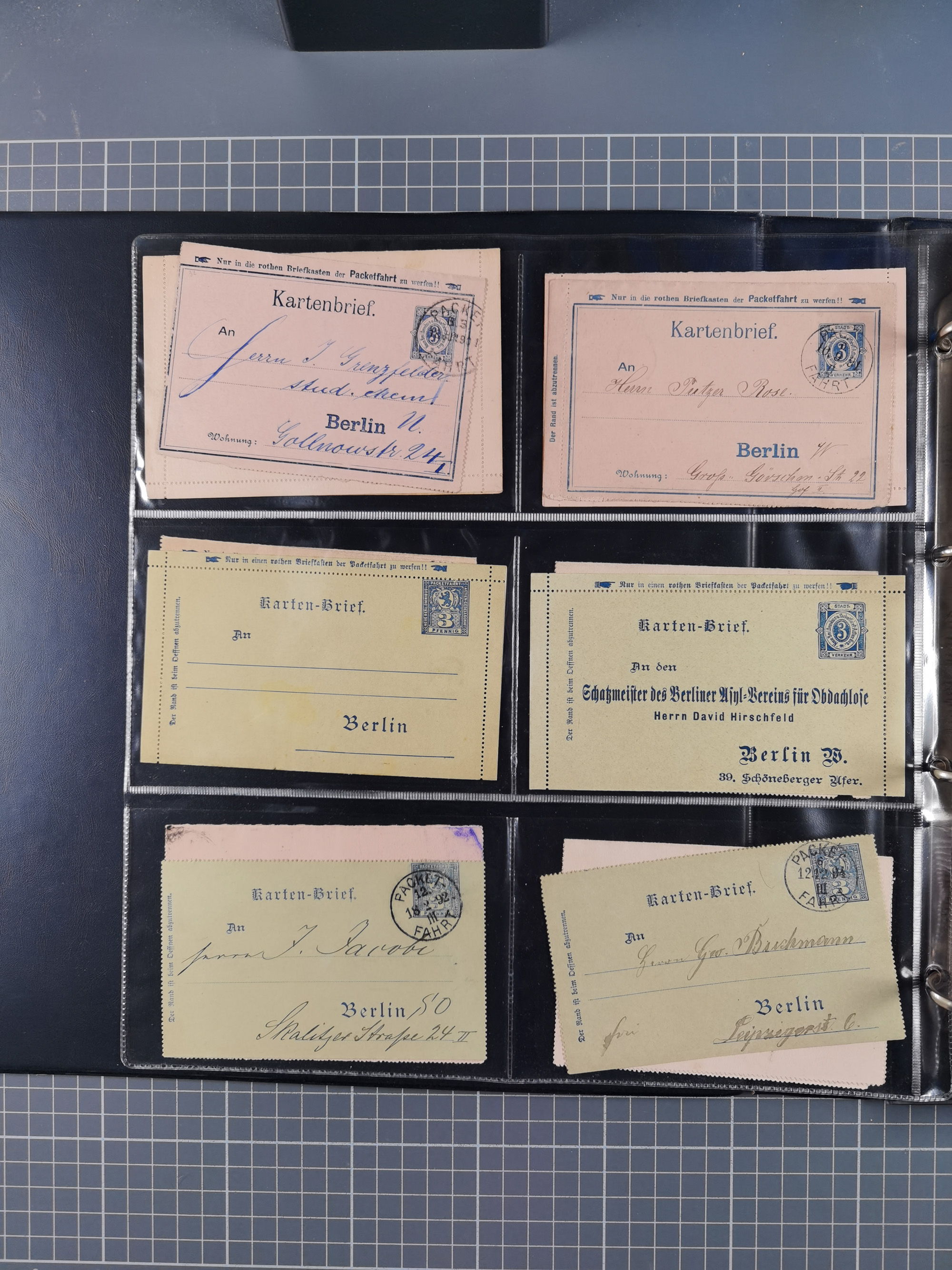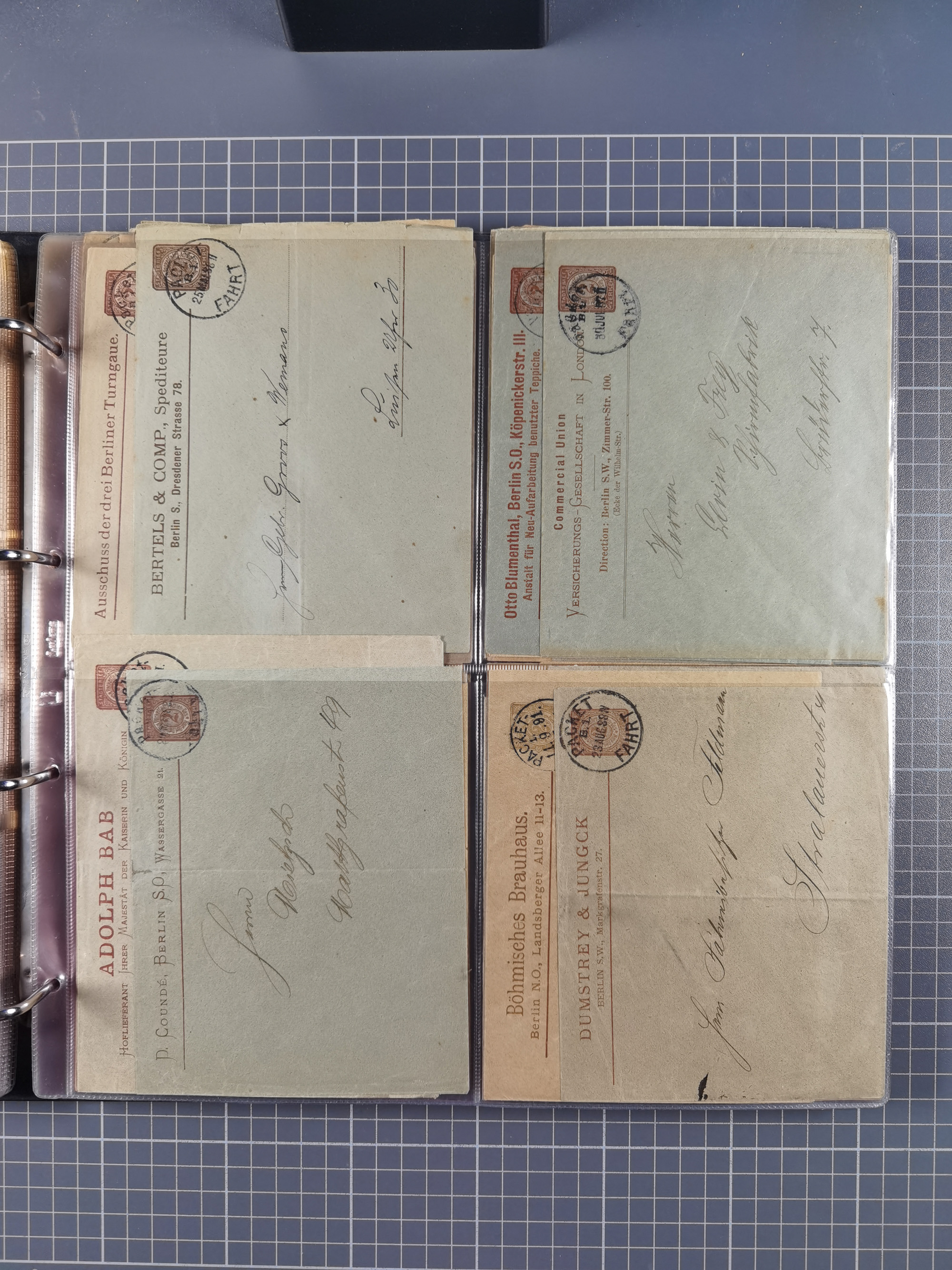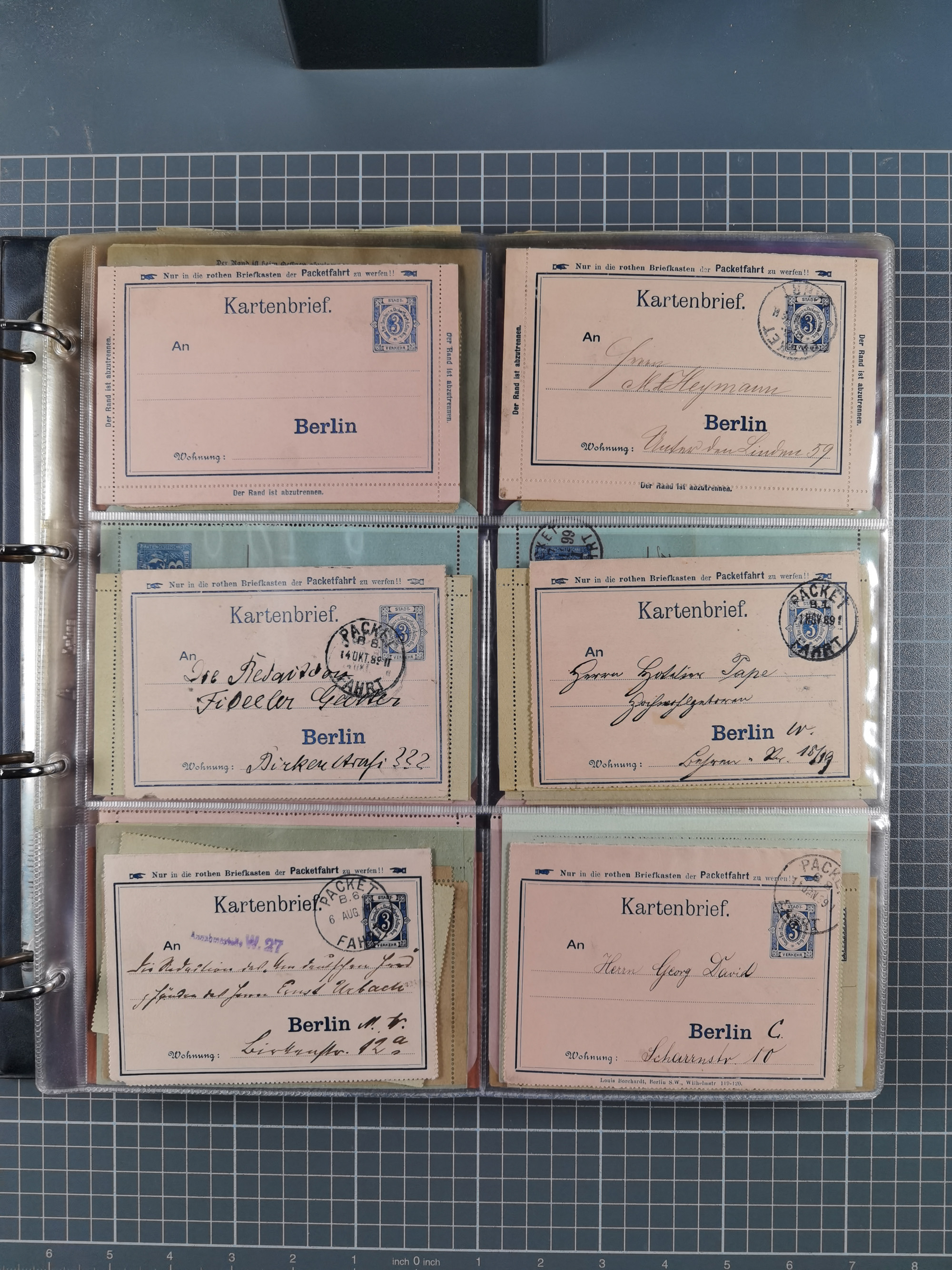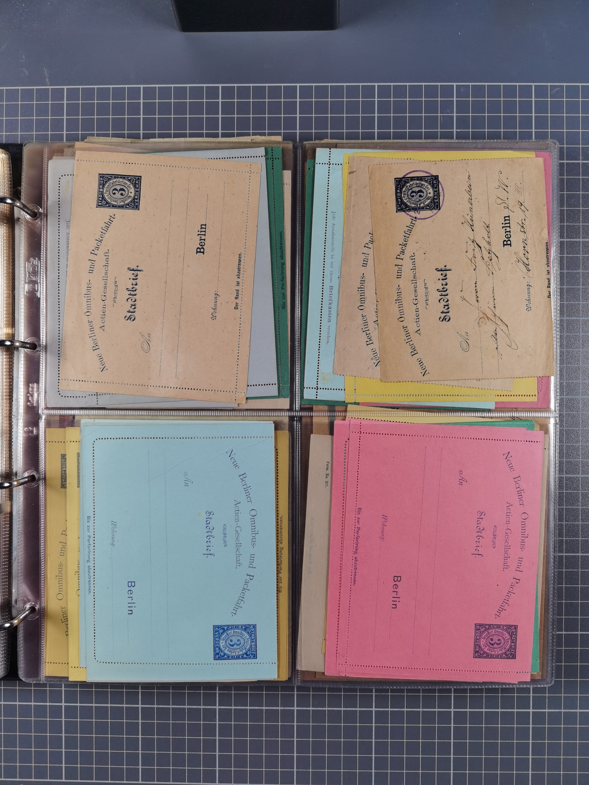 Berlin-Berliner Packetfahrt Gesellschaft: 1886/1900, umfangreiche Sammlung “Ganzsachen-Kartenbriefe und Umschläge” mit ca. 300 ungebrauchten und gebrauchten Ganzsachen. Dabei viele bessere Reklamen inkl. diverser Abbildungen, meist in guter Erhaltung