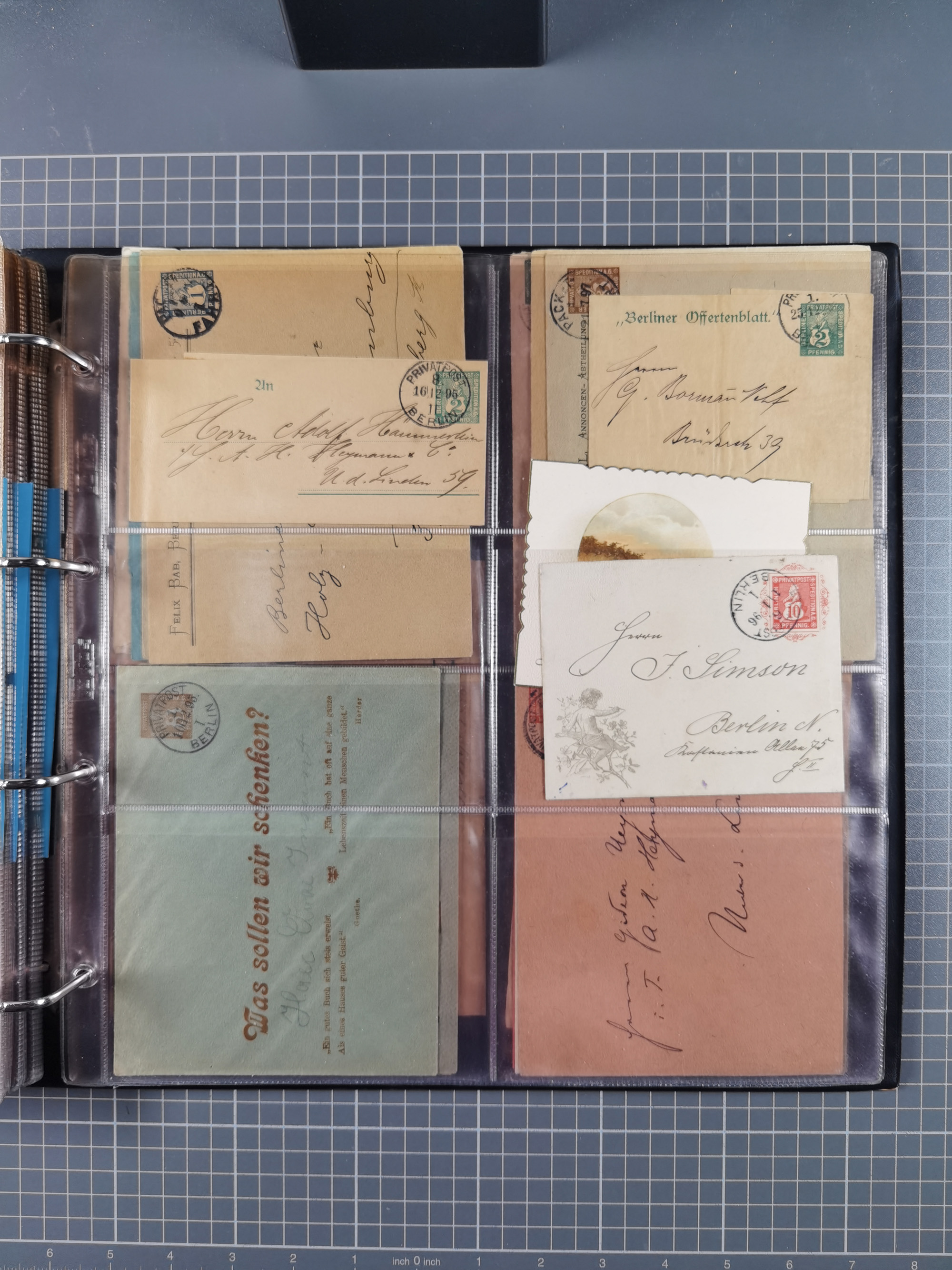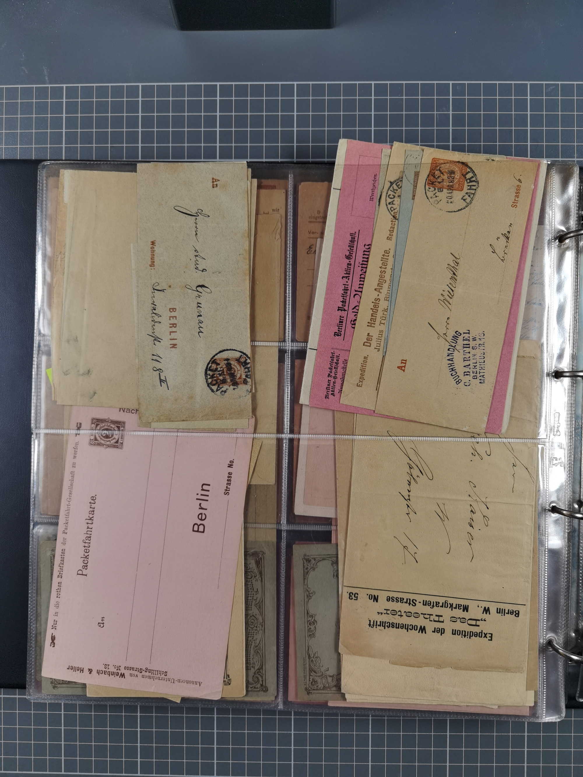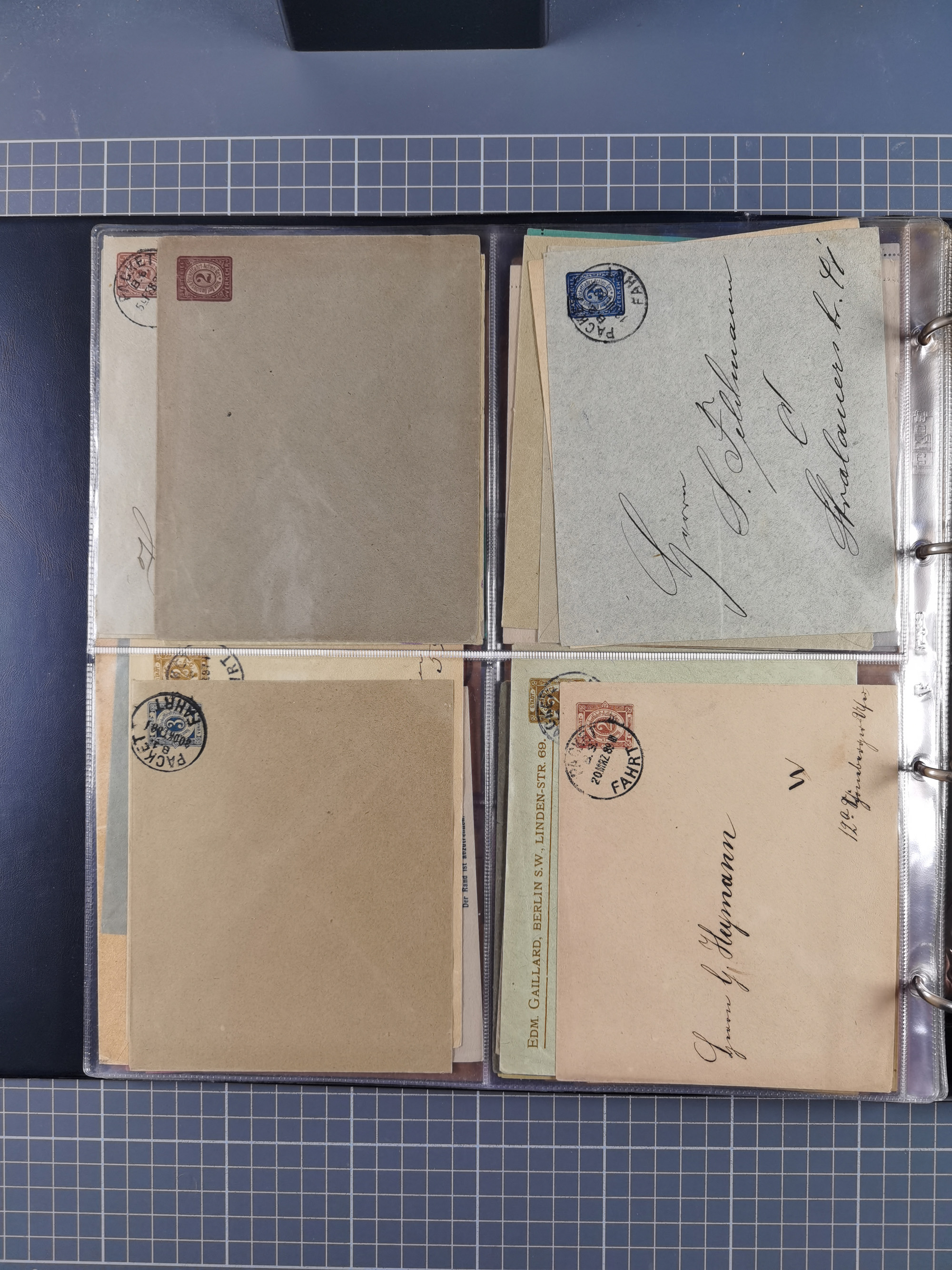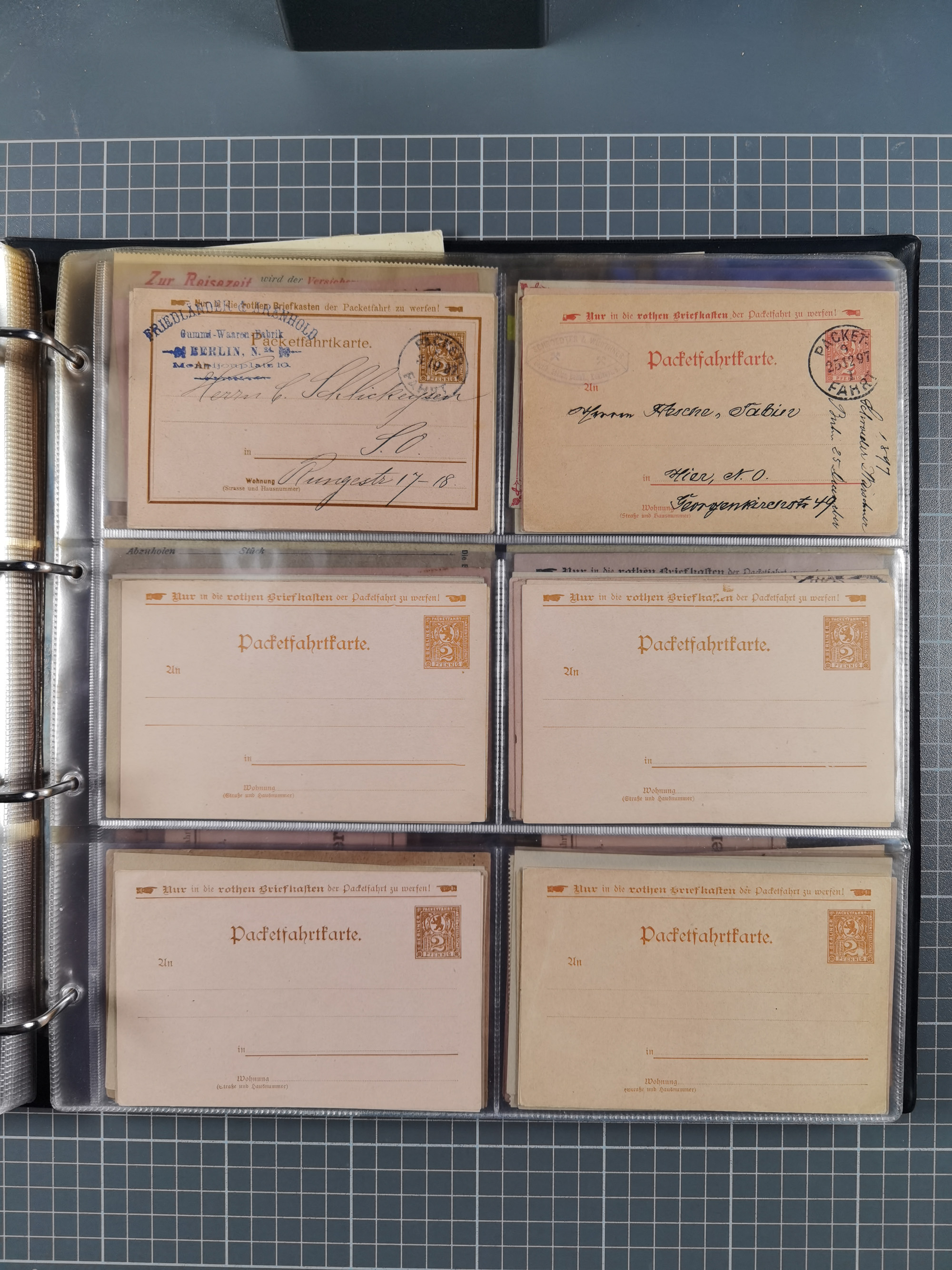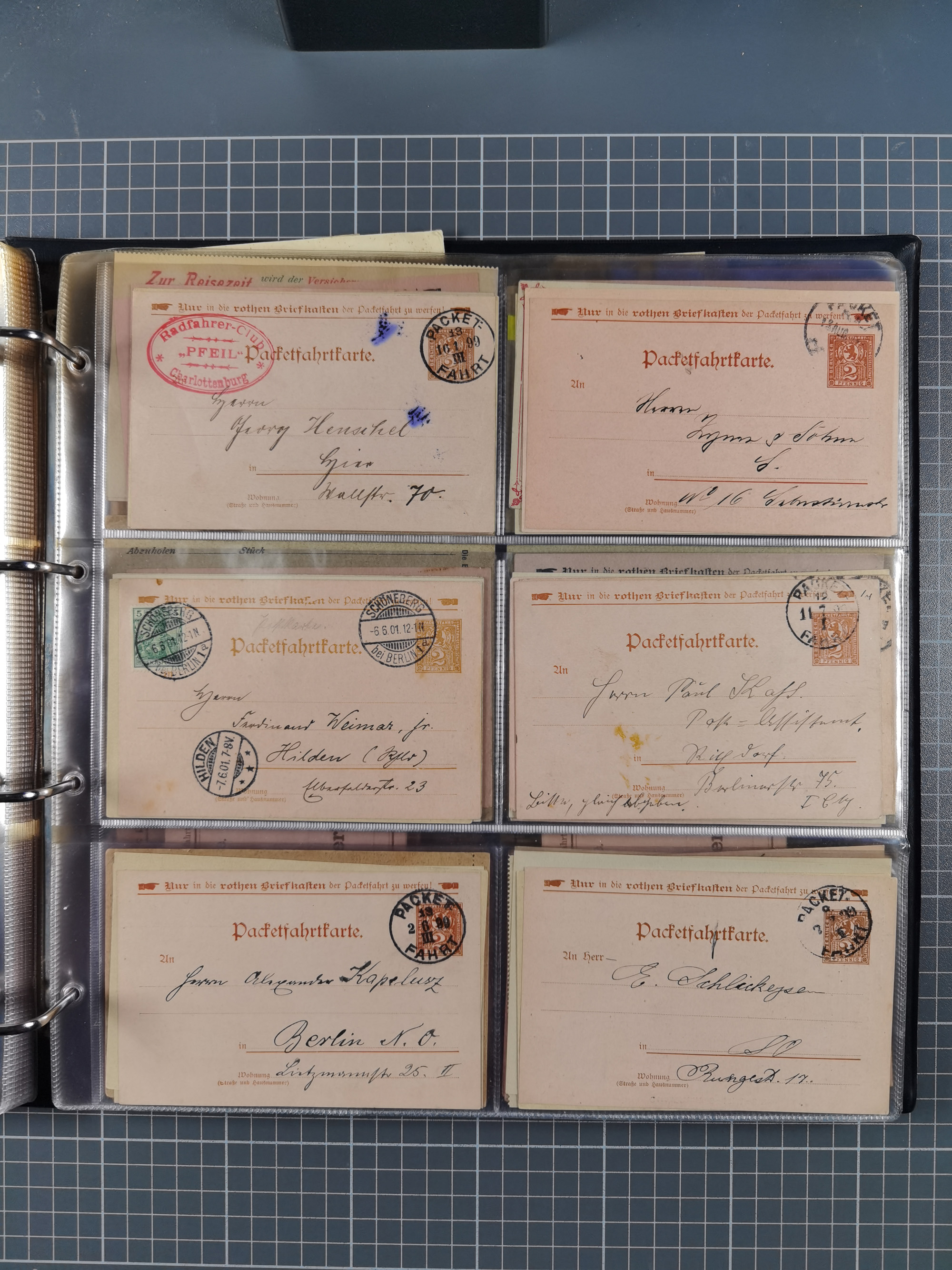 Berlin-Berliner Packetfahrt-Gesellschaft: 1886/1902, interessante Sammlung “Ganzsachenkarten und Streifbänder” mit ca.290 ungebrauchten und gebrauchten Ganzsachen. Dabei u.a. P46Z gebraucht, P60b mt Bild “Kgl. Schloss u.Denkmal des Grossen Kurfürst” und PP556 ungebraucht, dazu viele Karten auf Privatbestellung inkl. Doppeltkarten, Werbungen usw.