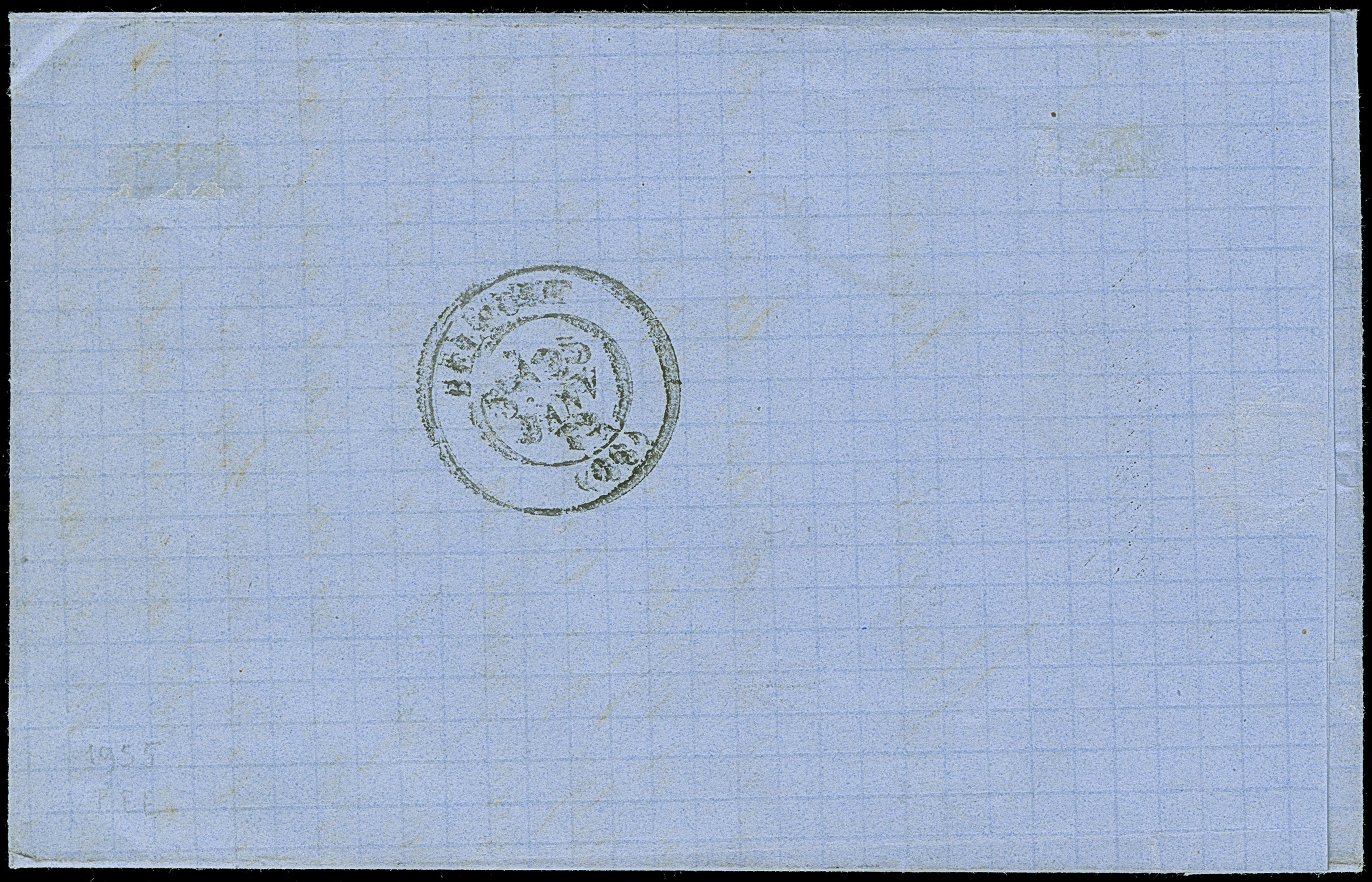 “VERSAILLES AUSWECHSELUNGS STELLE” in blue, excellent strike on entire letter from Paris with Cérès 20 c. blue tied by Dotted Star “18” and cds. “PARIS 10 FEVR. 71” alongside, sent to a French war prisoner in Hamburg, Prussia with reverse arrival cds., fine, scarce provisional censor mark, signed Roumet and Scheller