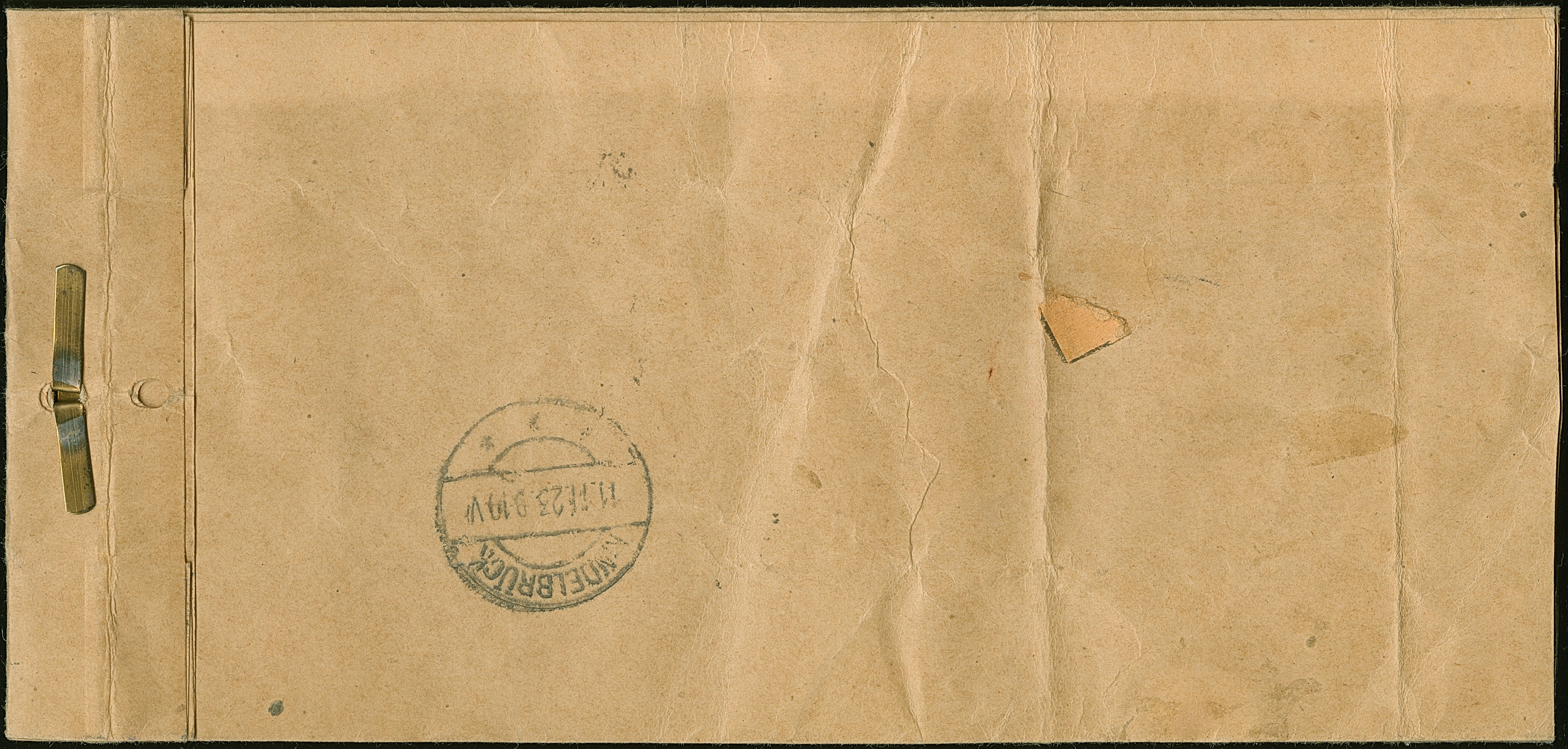 Korbdeckel 20 Mio. M. durchstochen mit Stempel “FRANKFURT (MAIN) 3.11.23” als tarifgerechte Einzelfrankatur auf Drucksachen-Streifband nach Friedrichsdorf. Die Marke mit gutem Durchstich ist in einwandfreier Erhaltung, das Streifband ist rückseitig nicht ganz komplett. Eine der ganz seltenen Einzelfrankaturen, in dieser Form nur vom 1.11. bis zum 4.11.1923 möglich, sign. Zirkenbach und Infla Berlin