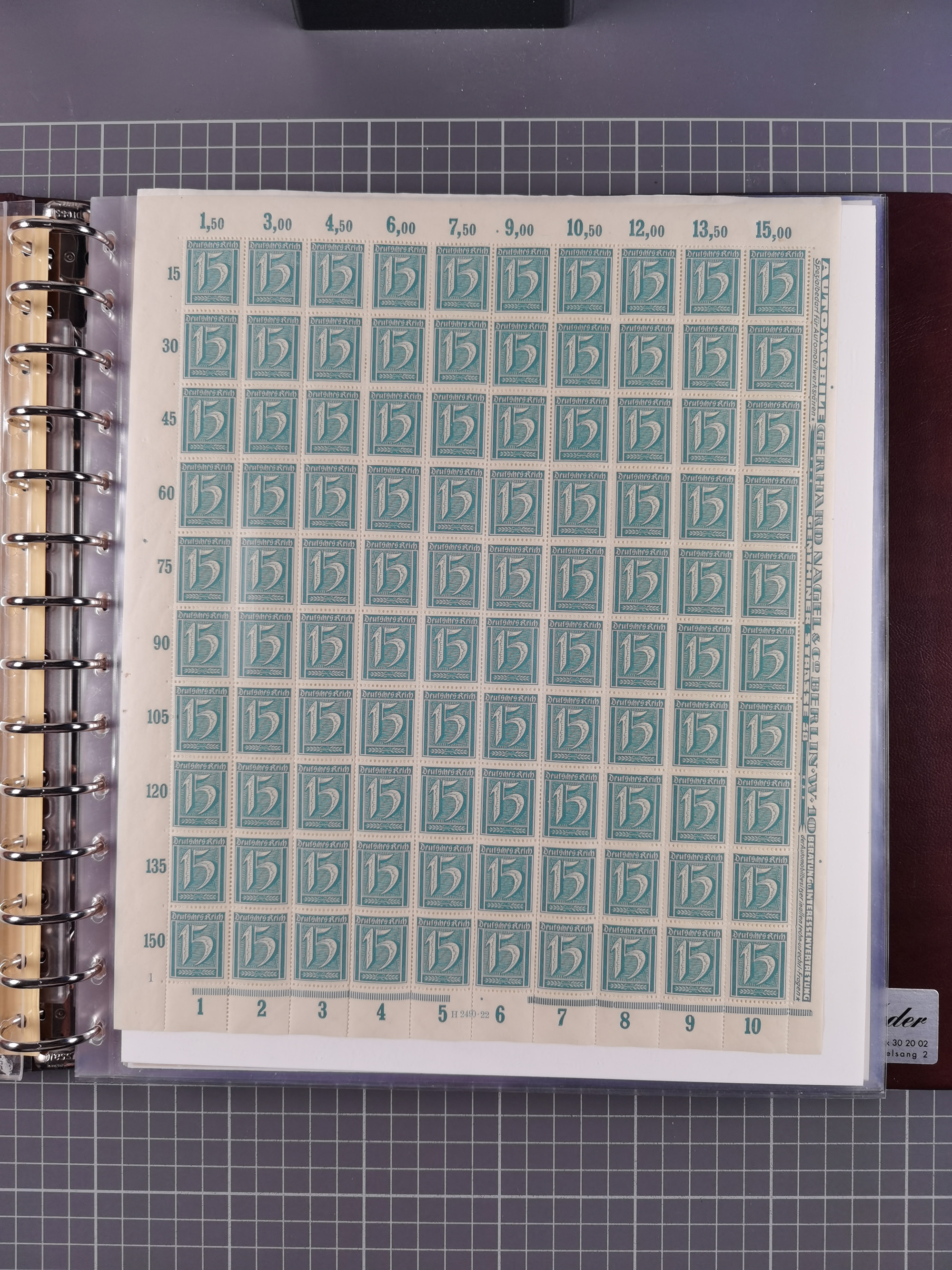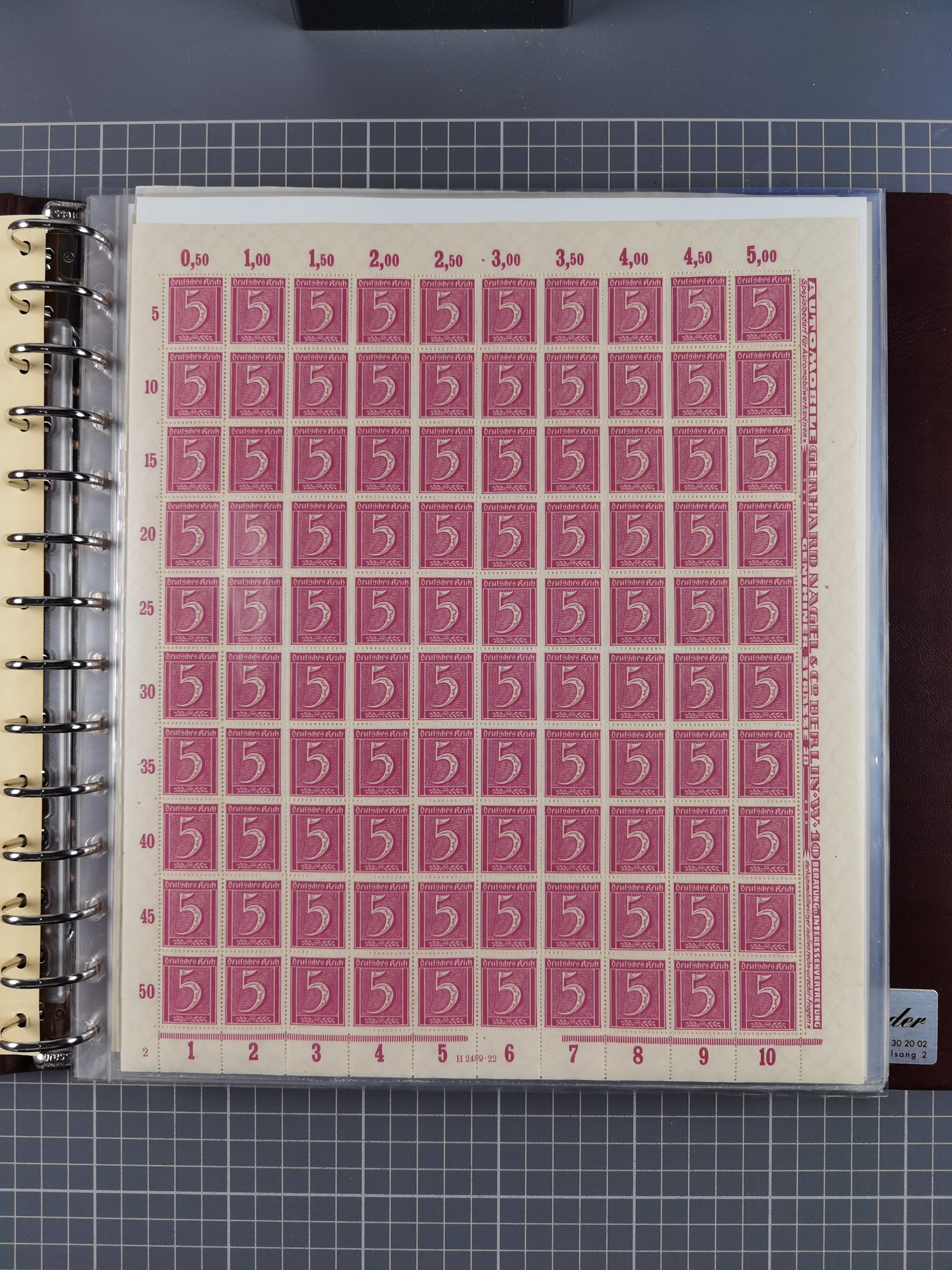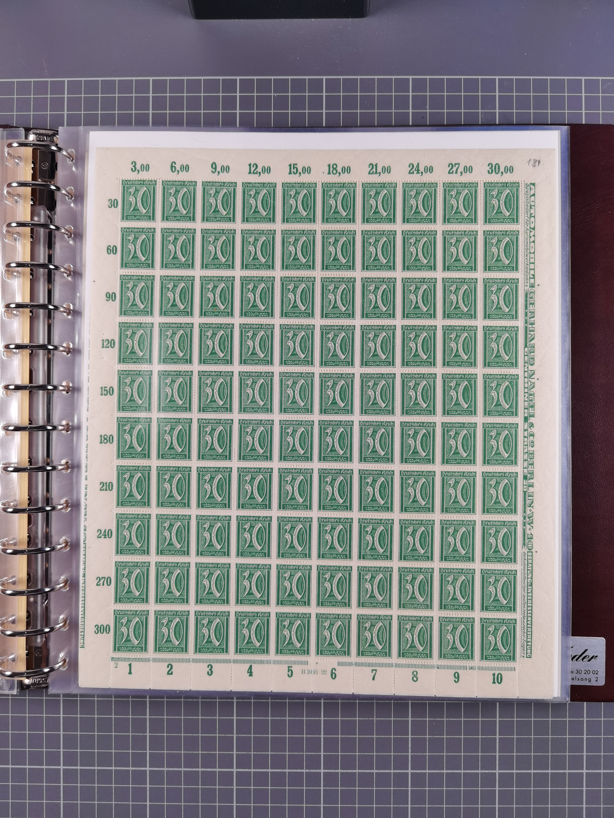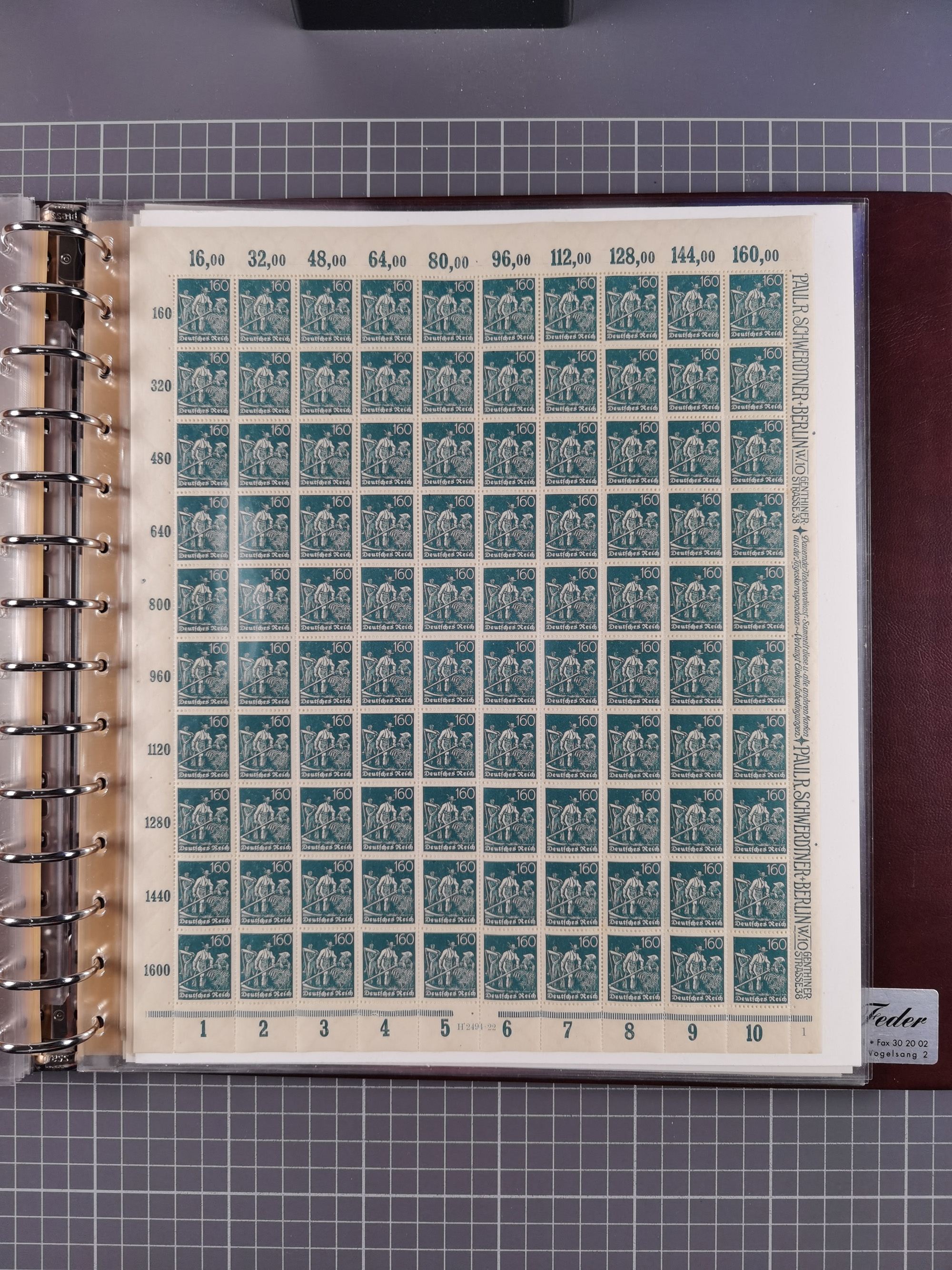 1921, 5 Pfg.-20 M., je in kpl. Bogen, dabei 10 Pfg. ungefaltet, postfrisch kleines Aufklammerungsloch im Rand und leichte Bleistiftbeschriftung, die übrigen teils mit kleinen Einschränkungen, meist postfrisch, gute Erhaltung