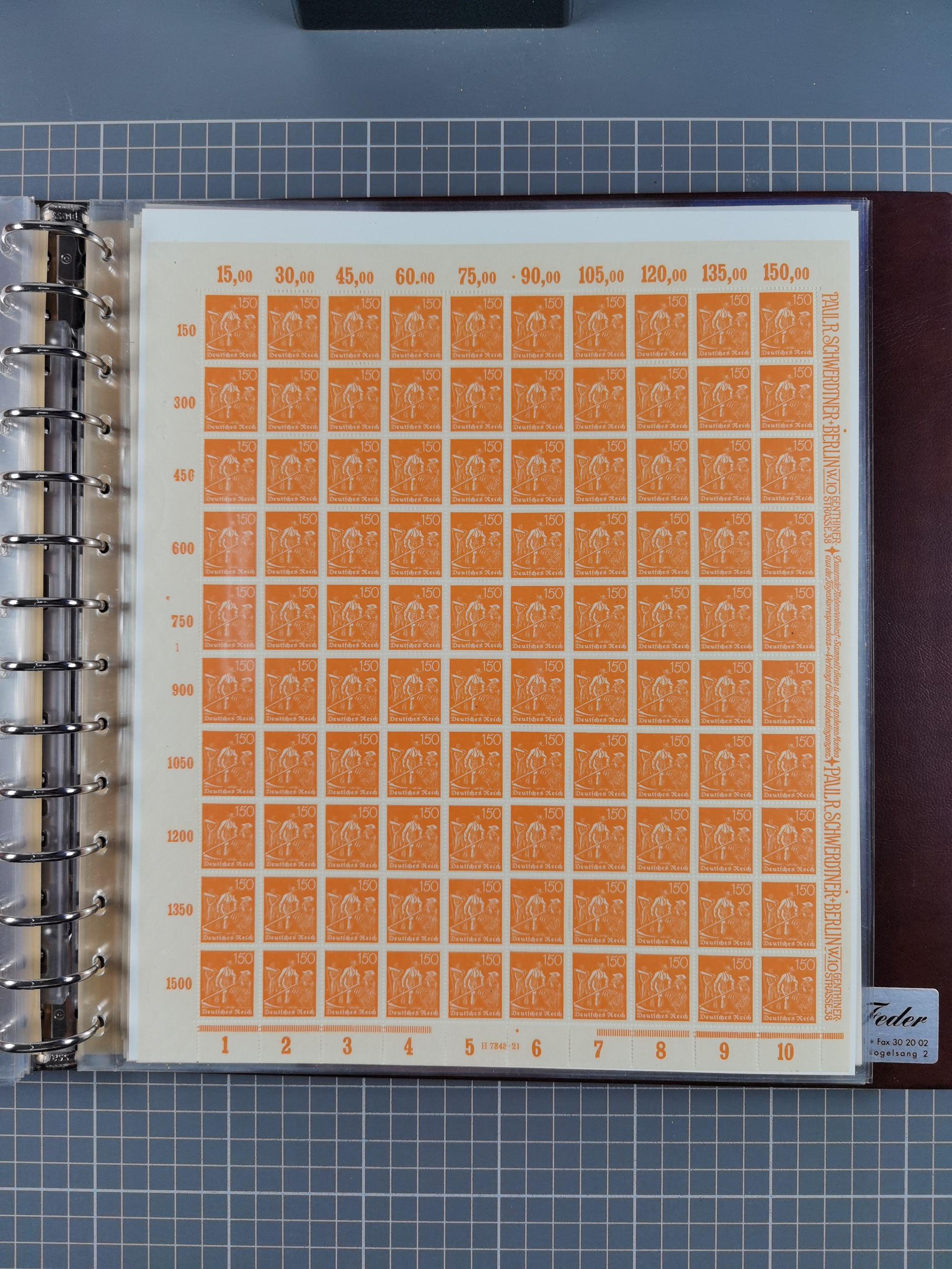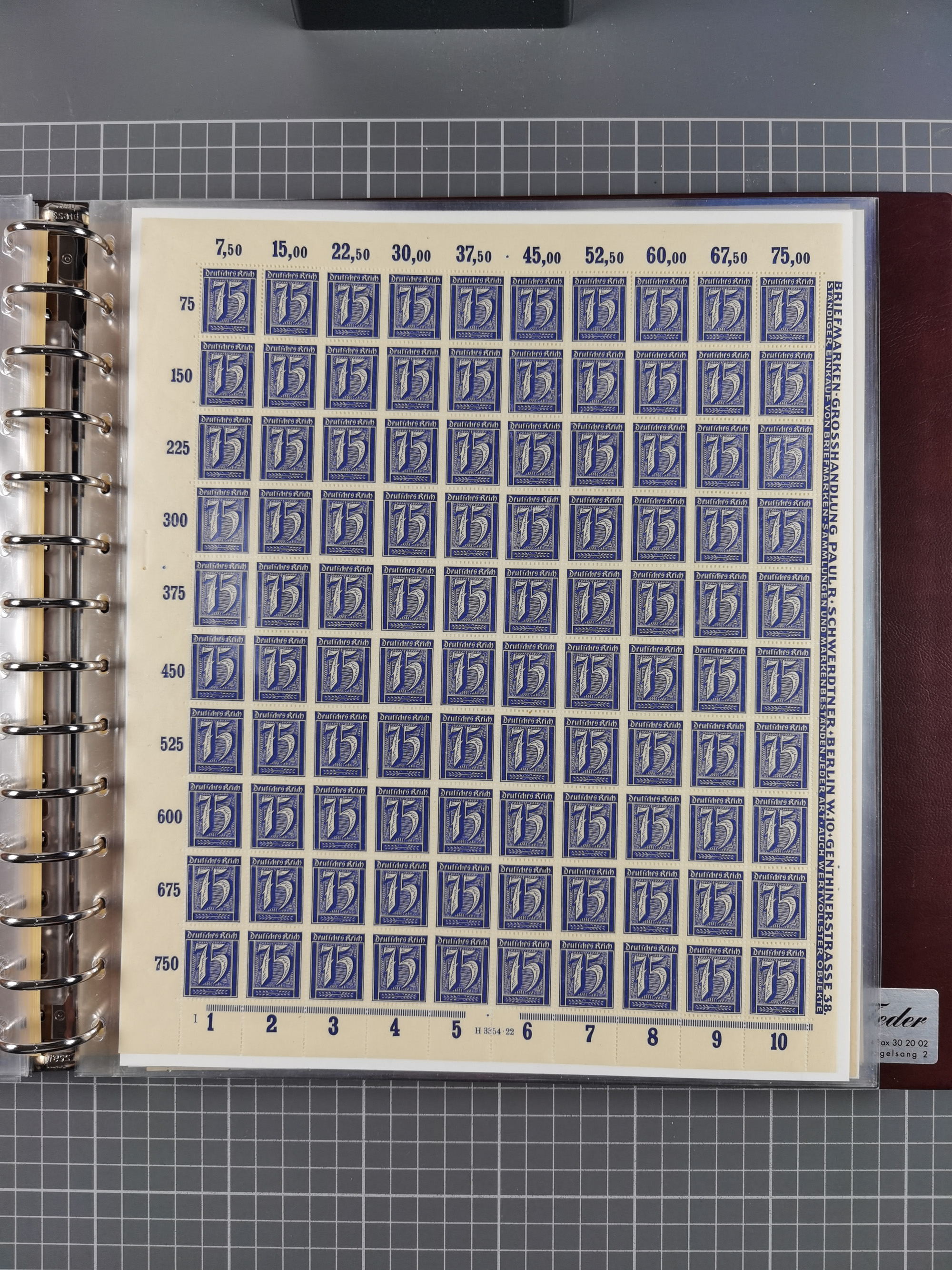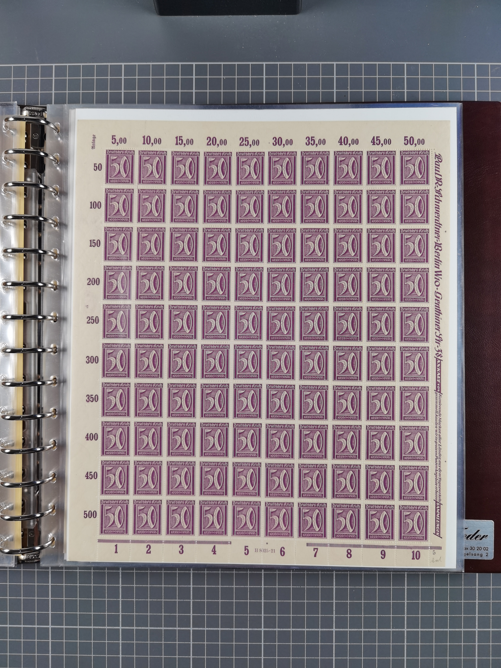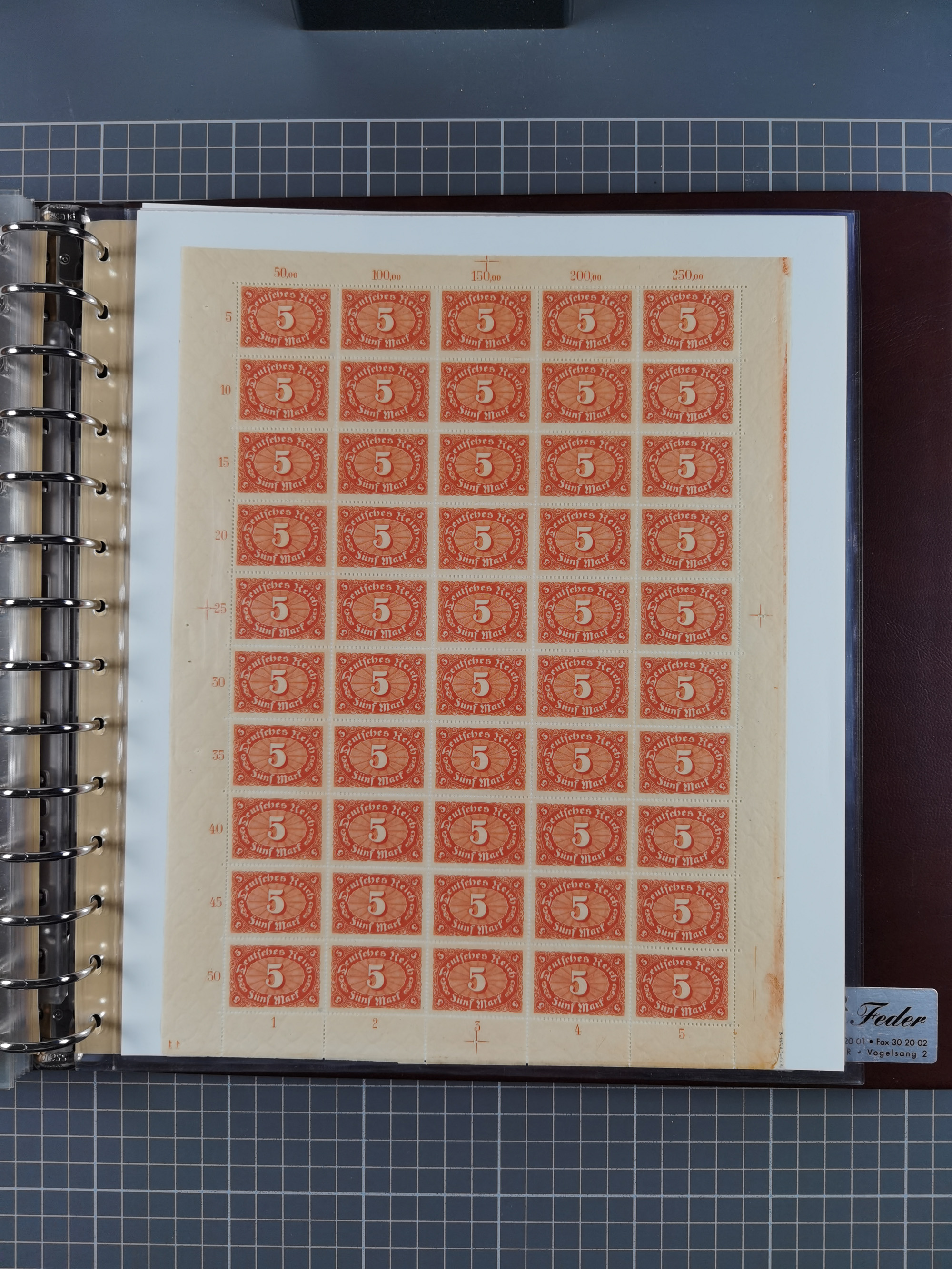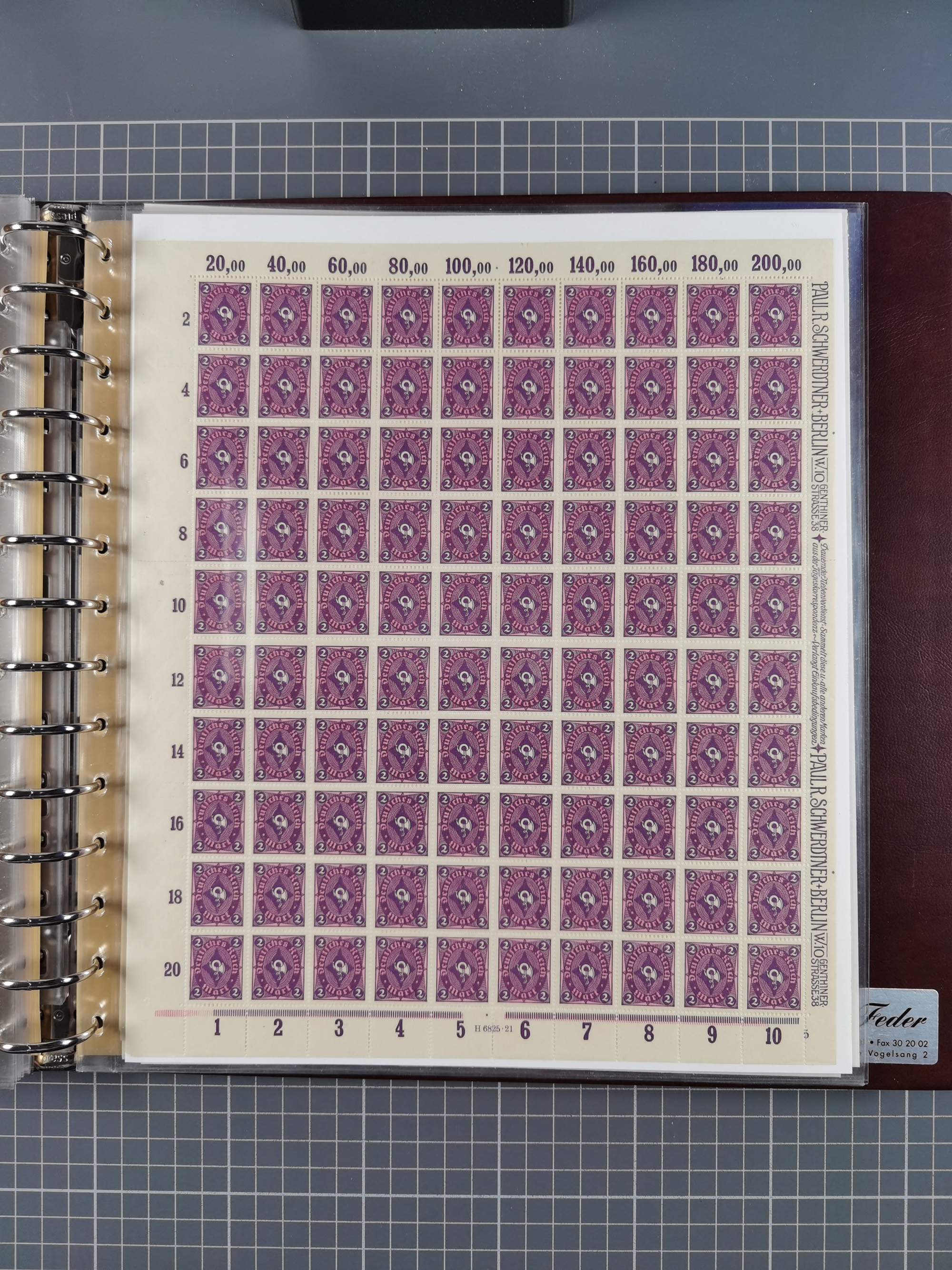 1921, 5 Pfg.-20 M., je in kpl. Bogen, dabei 10 Pfg. ungefaltet, postfrisch kleines Aufklammerungsloch im Rand und leichte Bleistiftbeschriftung, die übrigen teils mit kleinen Einschränkungen, meist postfrisch, gute Erhaltung