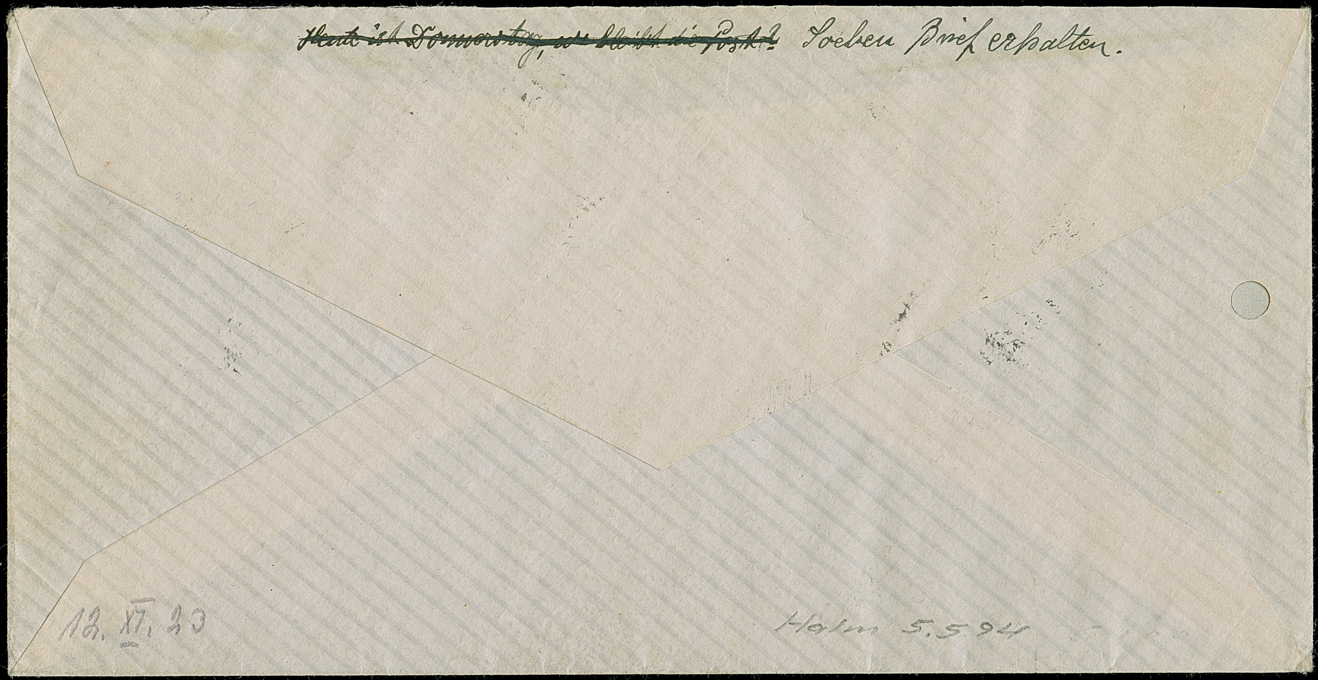 “DSP LINIE BREMEN-NEW YORK c 23.5.23” (D. Bremen) klar auf Ziffer 300 M. mit Wasserzeichen 1 auf Brief nach Bremen. Der Umschlag mit Randspuren