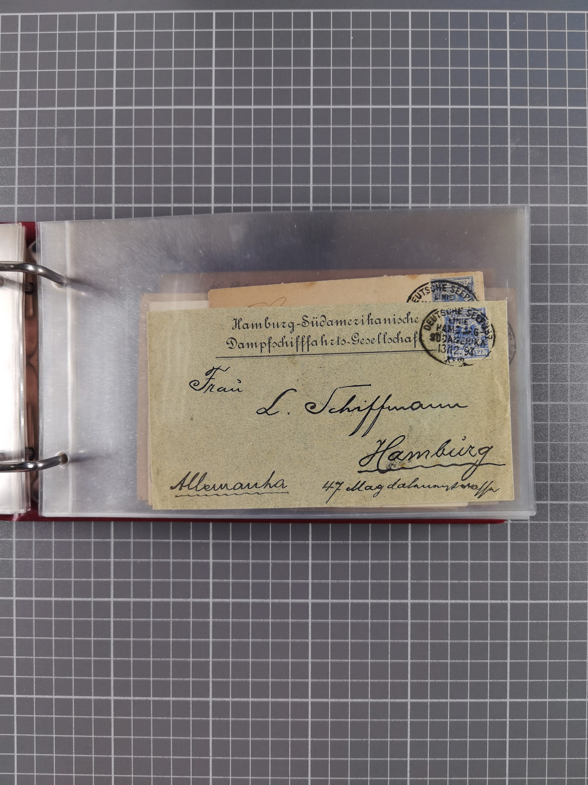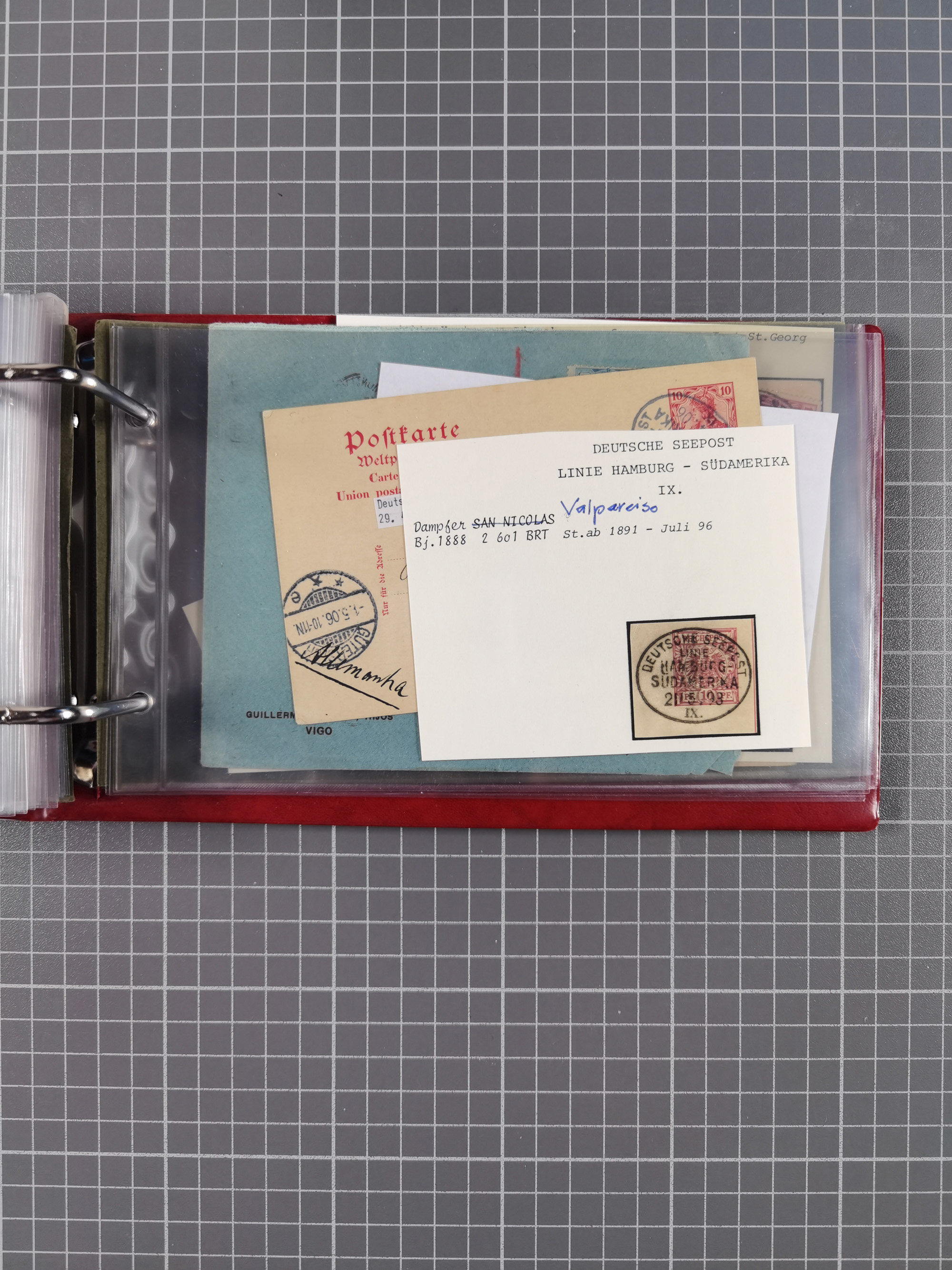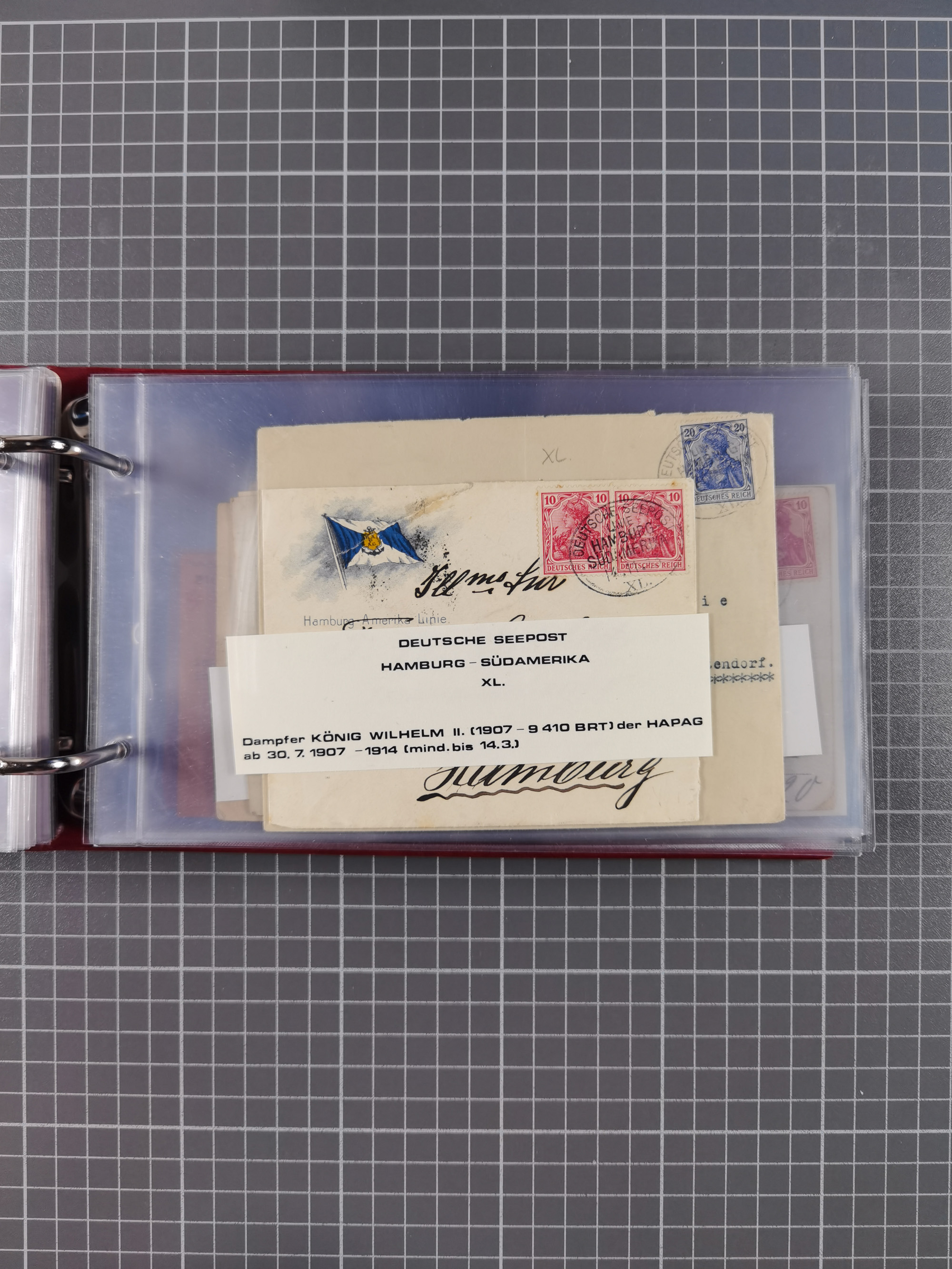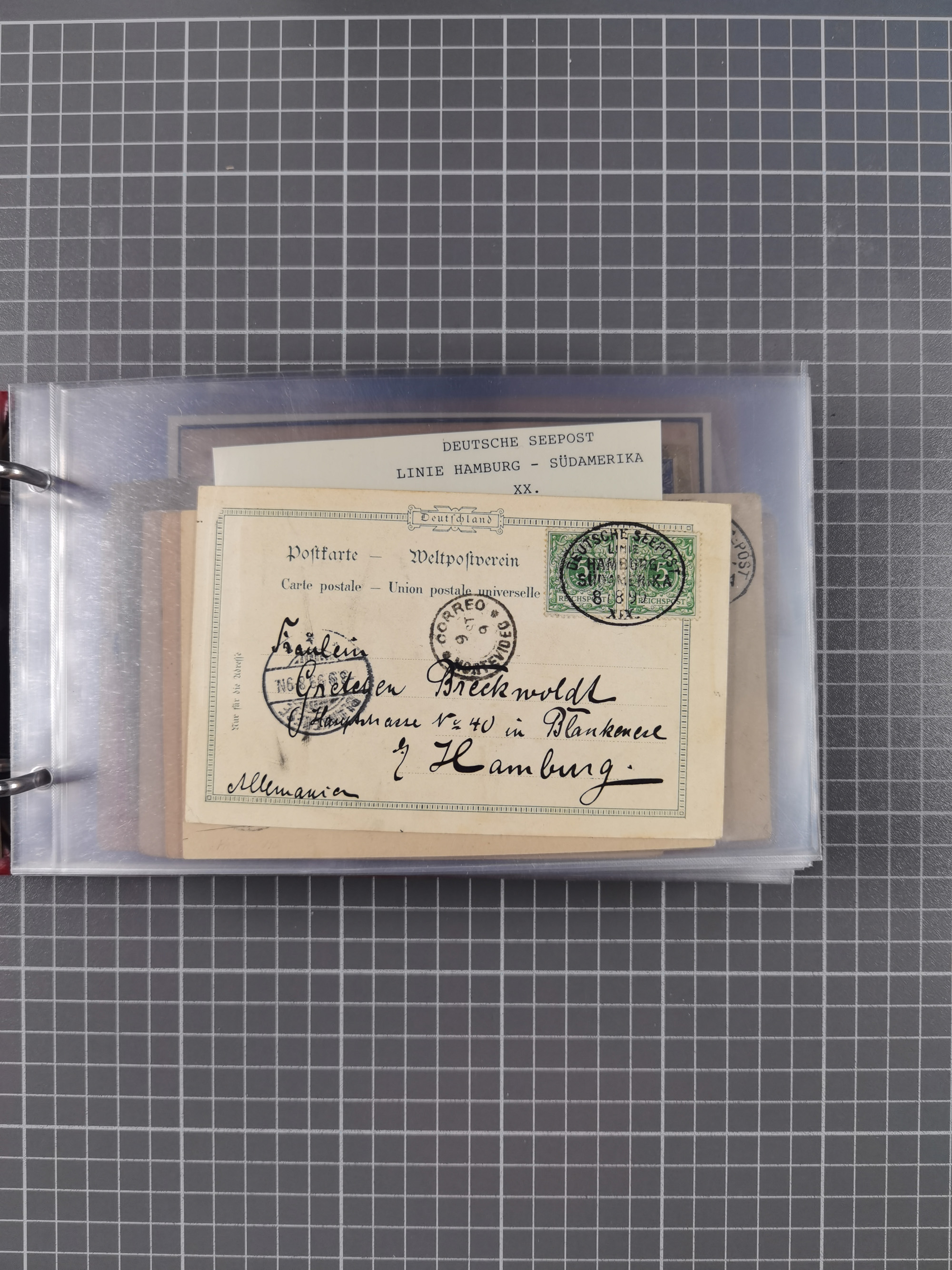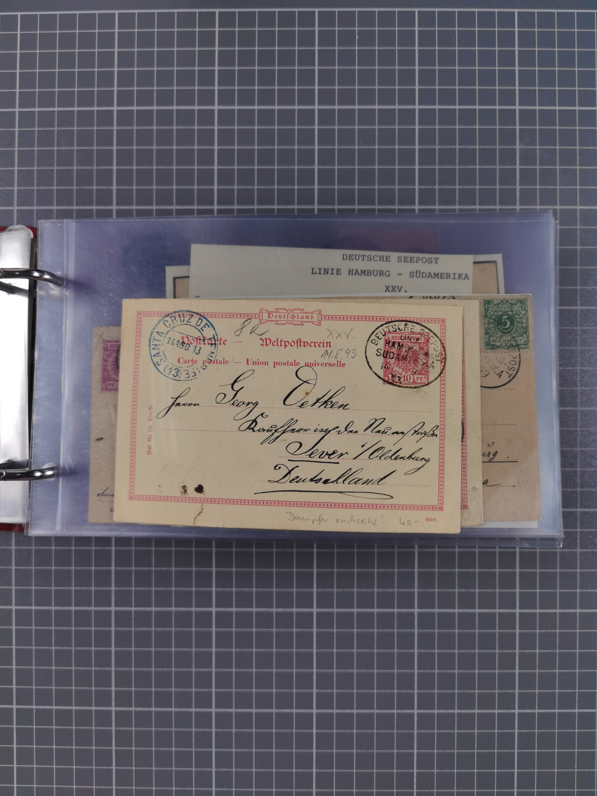 1891/1935 (ca.), umfangreiche Sammlung “DSP LINIE HAMBURG-SÜDAMERIKA I-LV” mit ca. 470 Briefen, Karten und GSK sowie wenigen Briefstücken mit Schwerpunkt vor 1914, dabei einige Belege mit “Paquebot”-Stempeln, Destinationen (u.a. 1895 nach Konstantinopel und GSK 1898 via Rottedam nach Jaluit), Bedarfspost aus der Infla-Zeit, Ozean-Brief 1913 und R-Ozean-Brief 1926. Die Erhaltung ist zum Teil etwas fehlerhaft, dafür fast nur klare Stempel, meist Bedarfspost, ex Steinmeyer