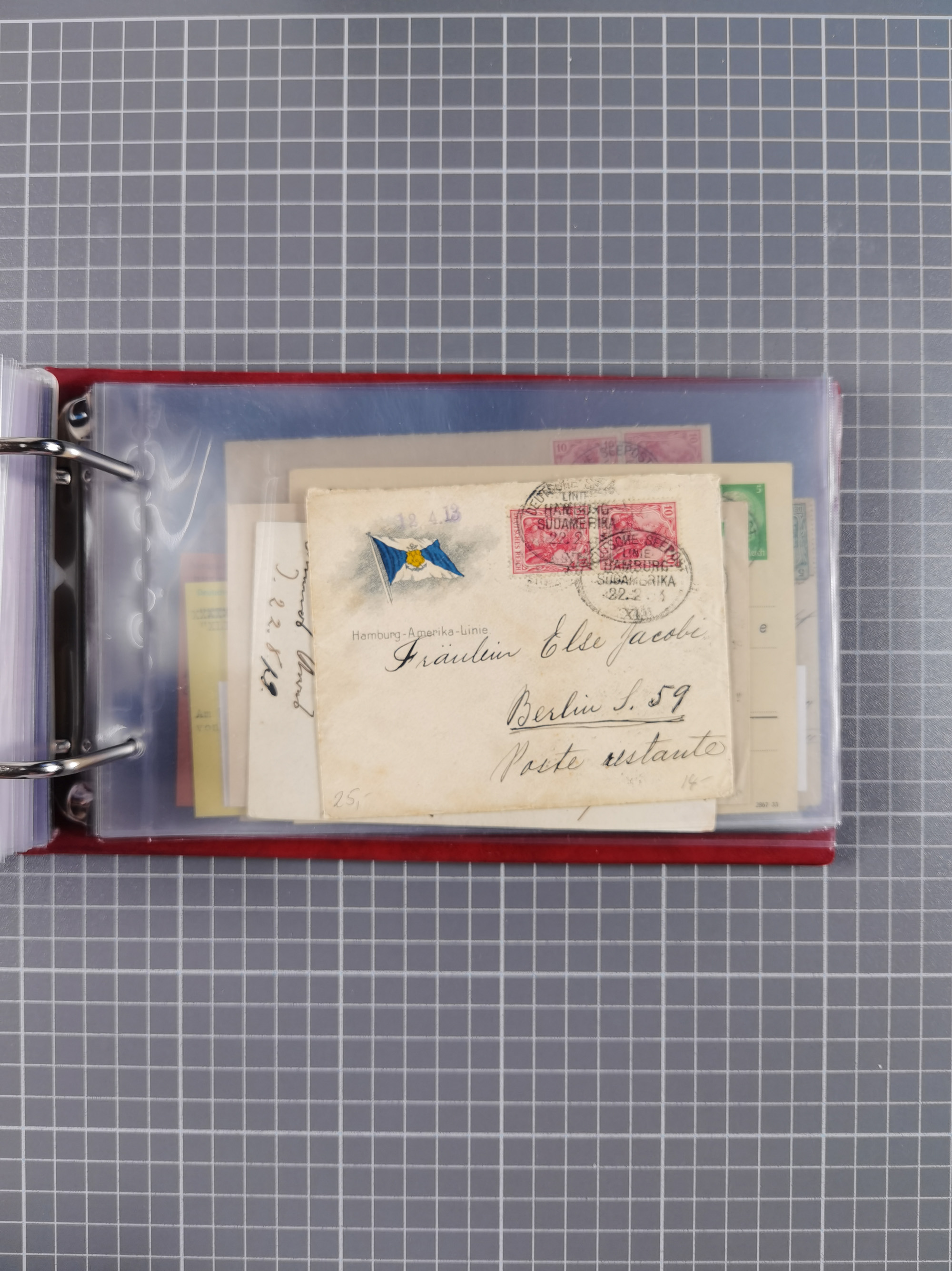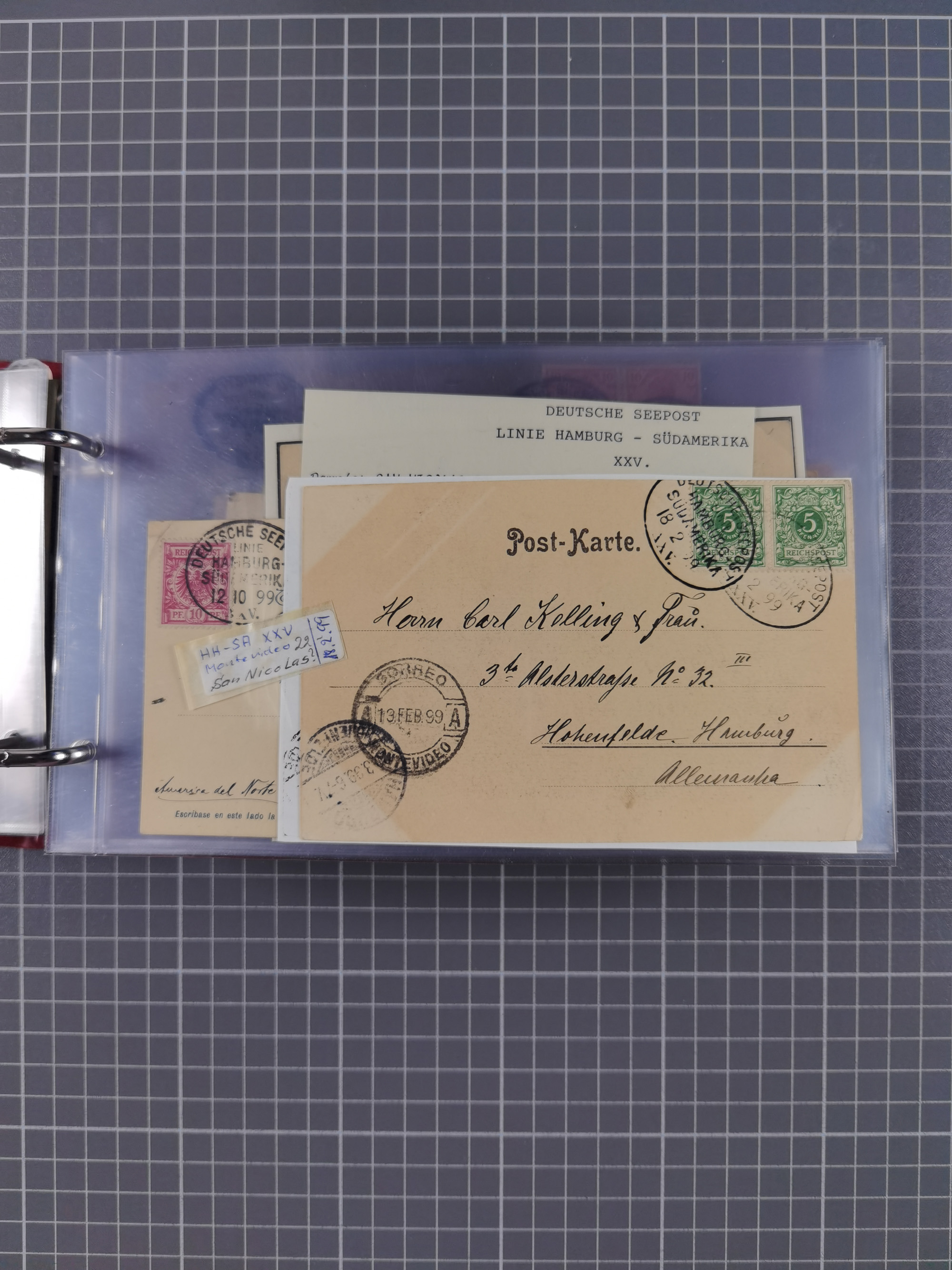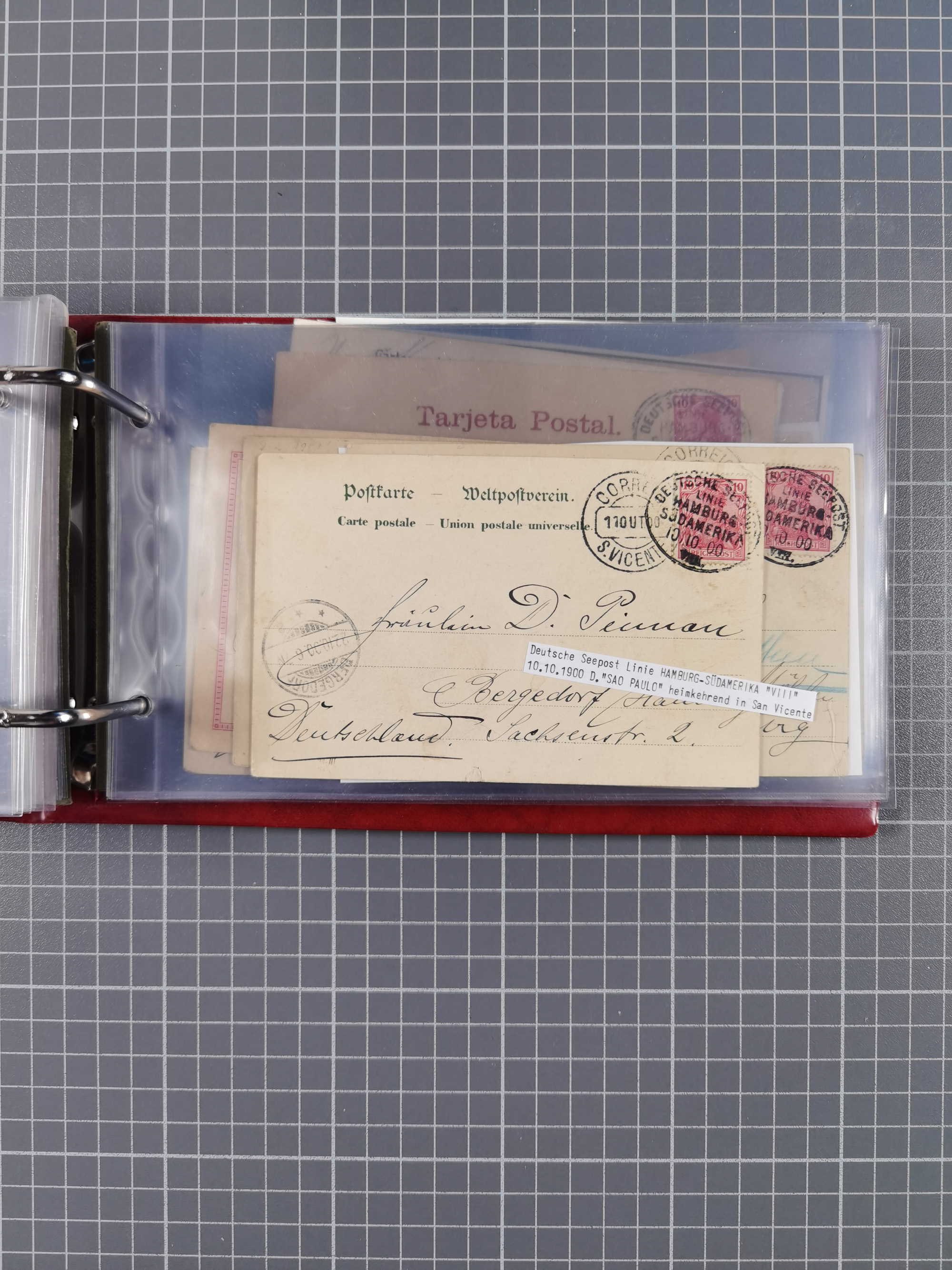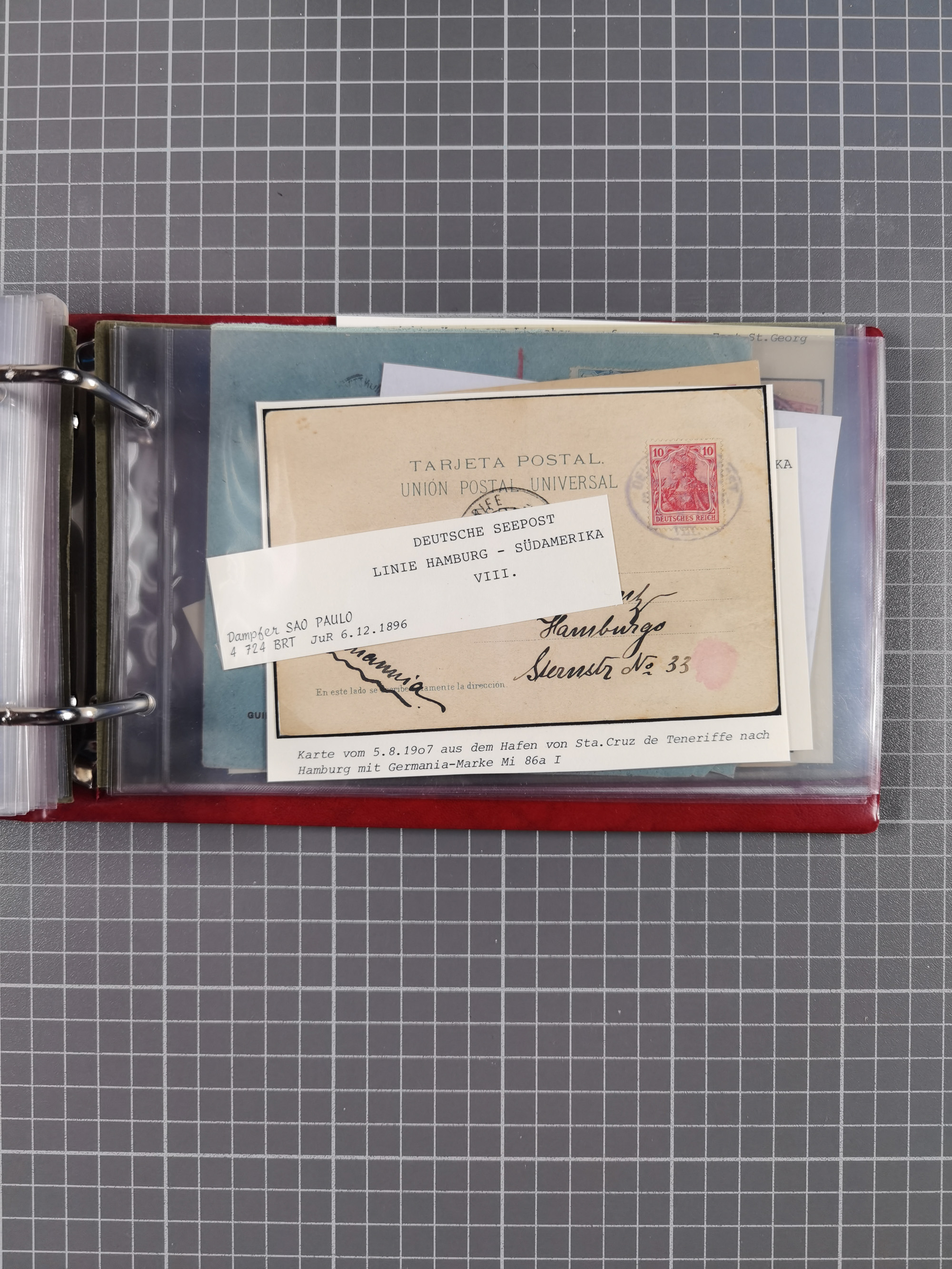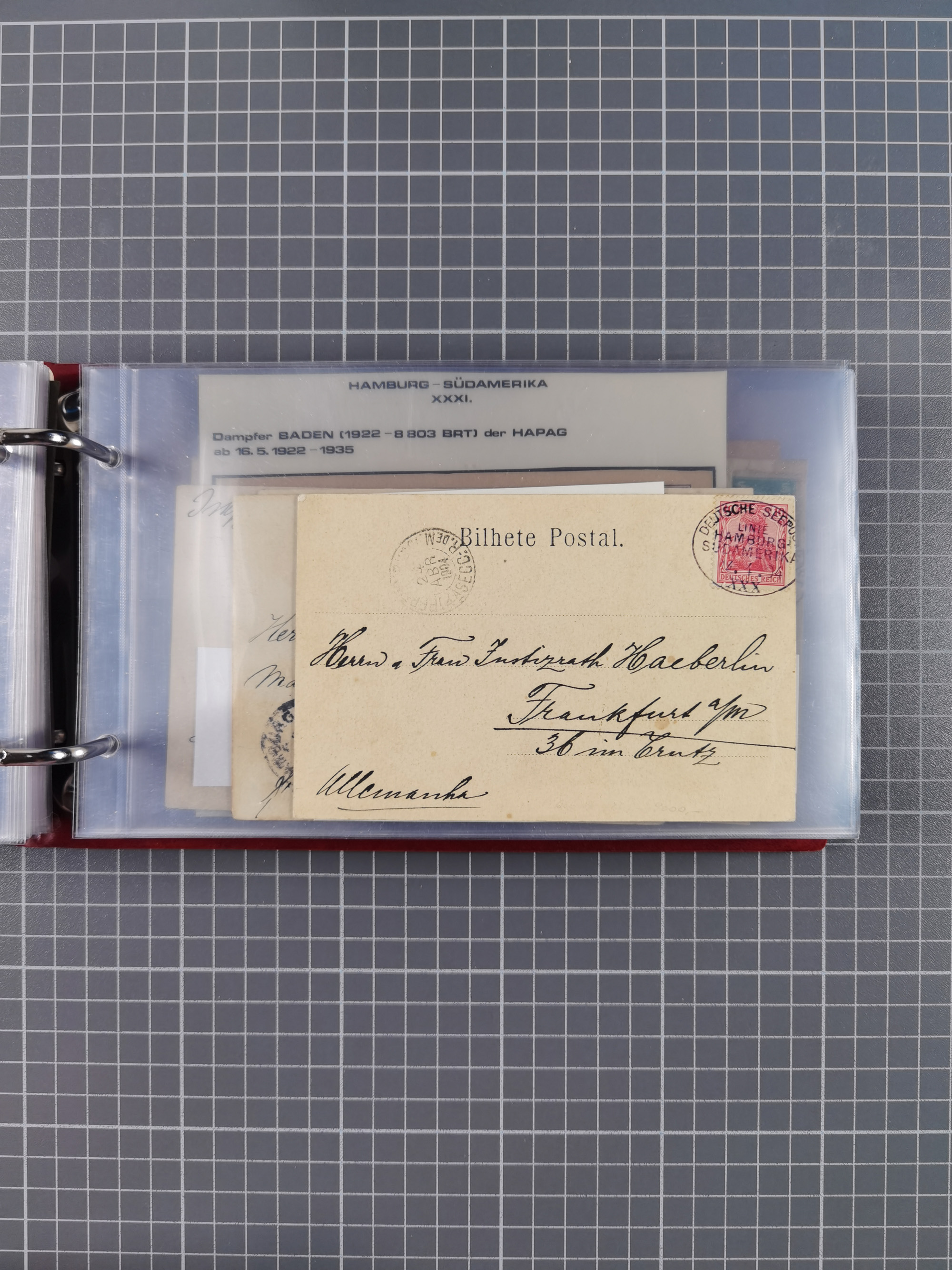1891/1935 (ca.), umfangreiche Sammlung “DSP LINIE HAMBURG-SÜDAMERIKA I-LV” mit ca. 470 Briefen, Karten und GSK sowie wenigen Briefstücken mit Schwerpunkt vor 1914, dabei einige Belege mit “Paquebot”-Stempeln, Destinationen (u.a. 1895 nach Konstantinopel und GSK 1898 via Rottedam nach Jaluit), Bedarfspost aus der Infla-Zeit, Ozean-Brief 1913 und R-Ozean-Brief 1926. Die Erhaltung ist zum Teil etwas fehlerhaft, dafür fast nur klare Stempel, meist Bedarfspost, ex Steinmeyer
