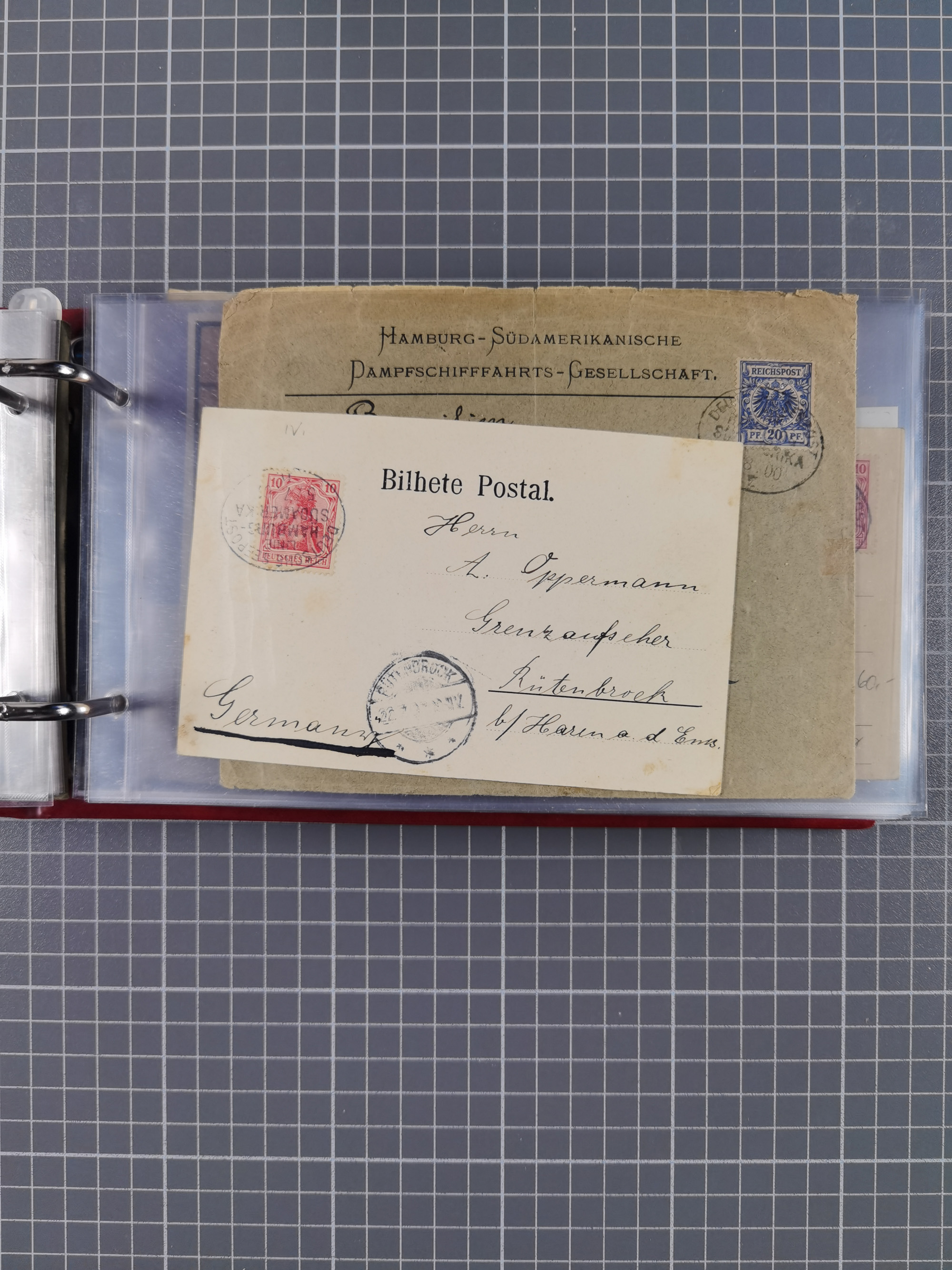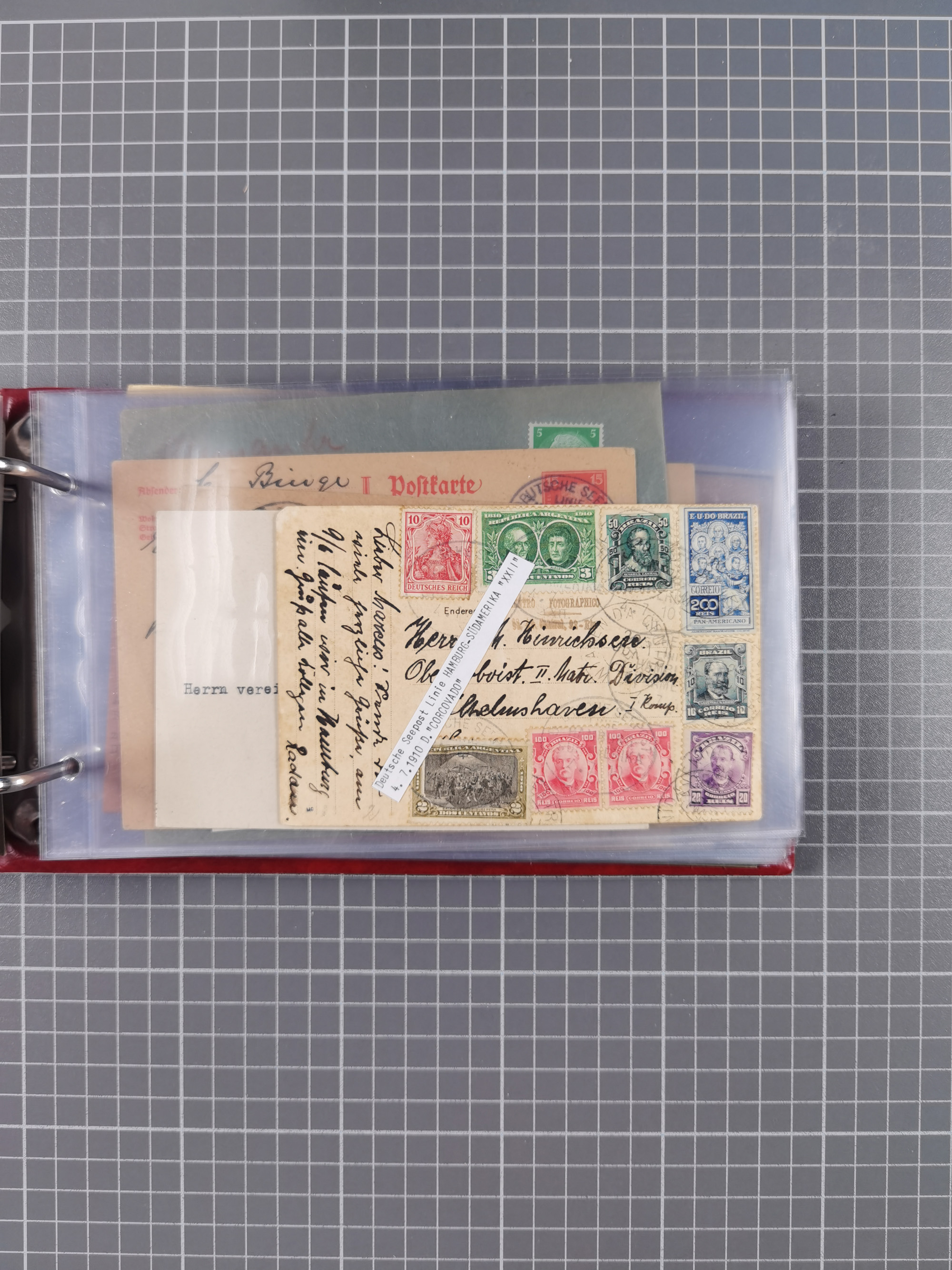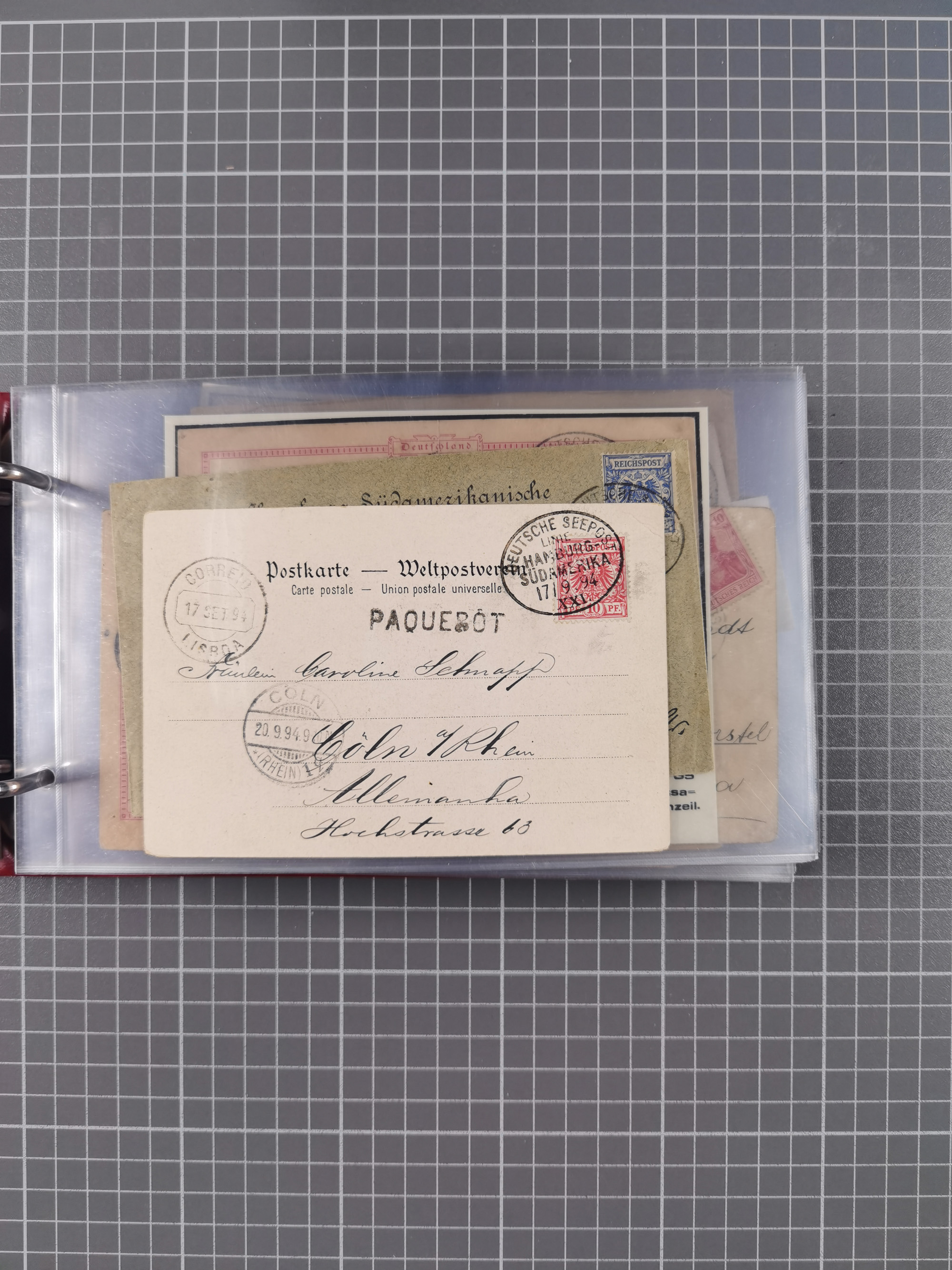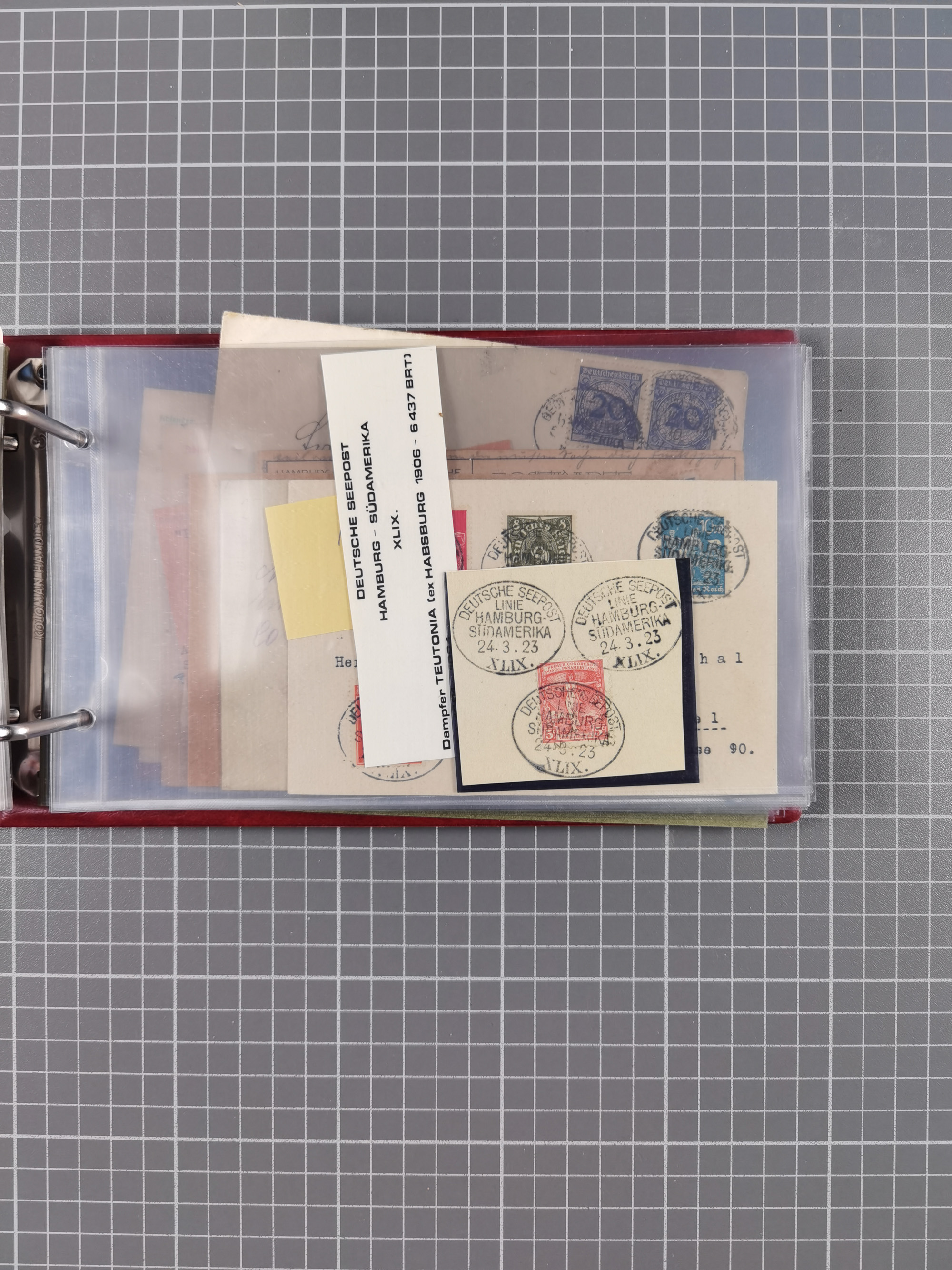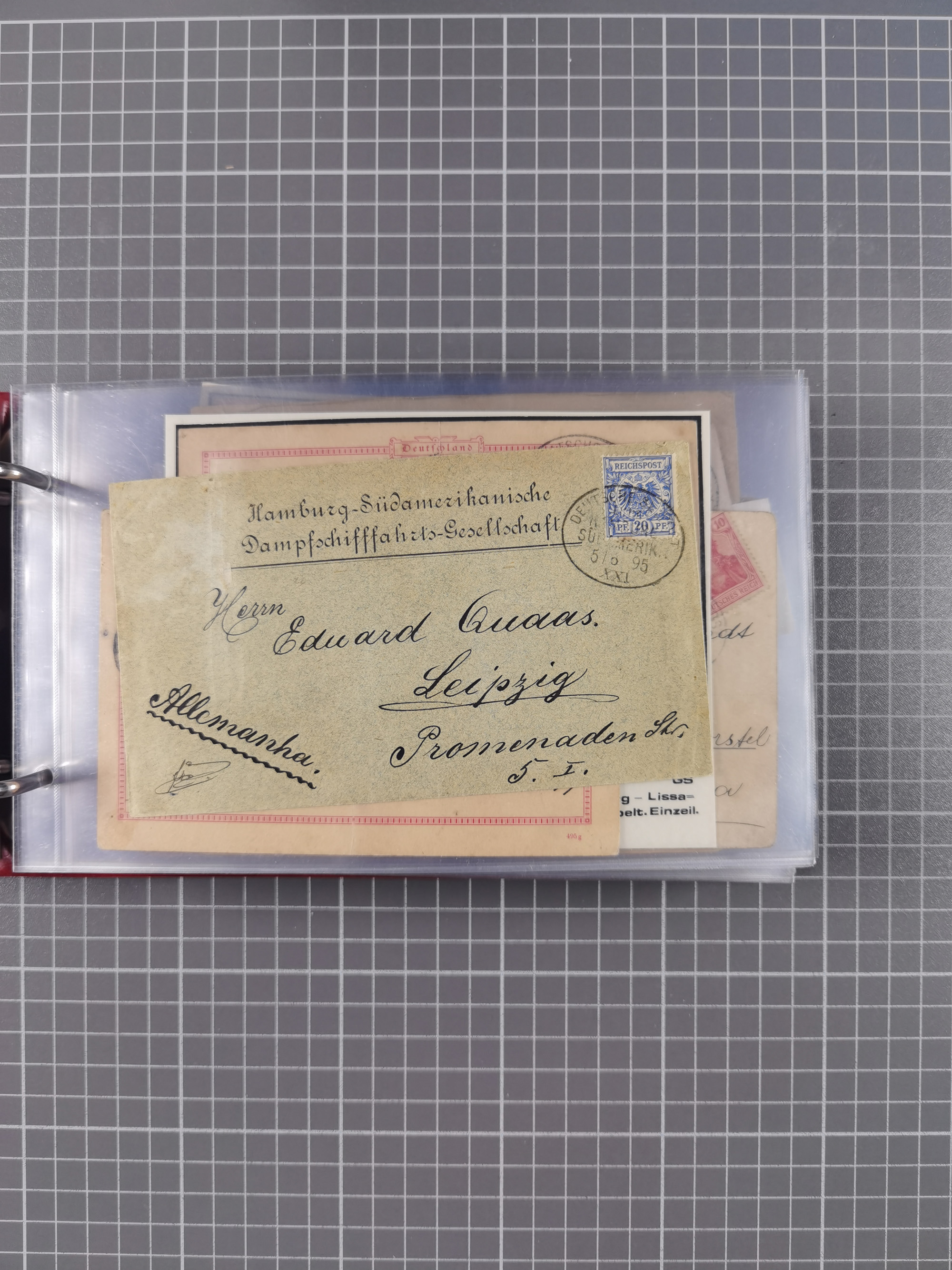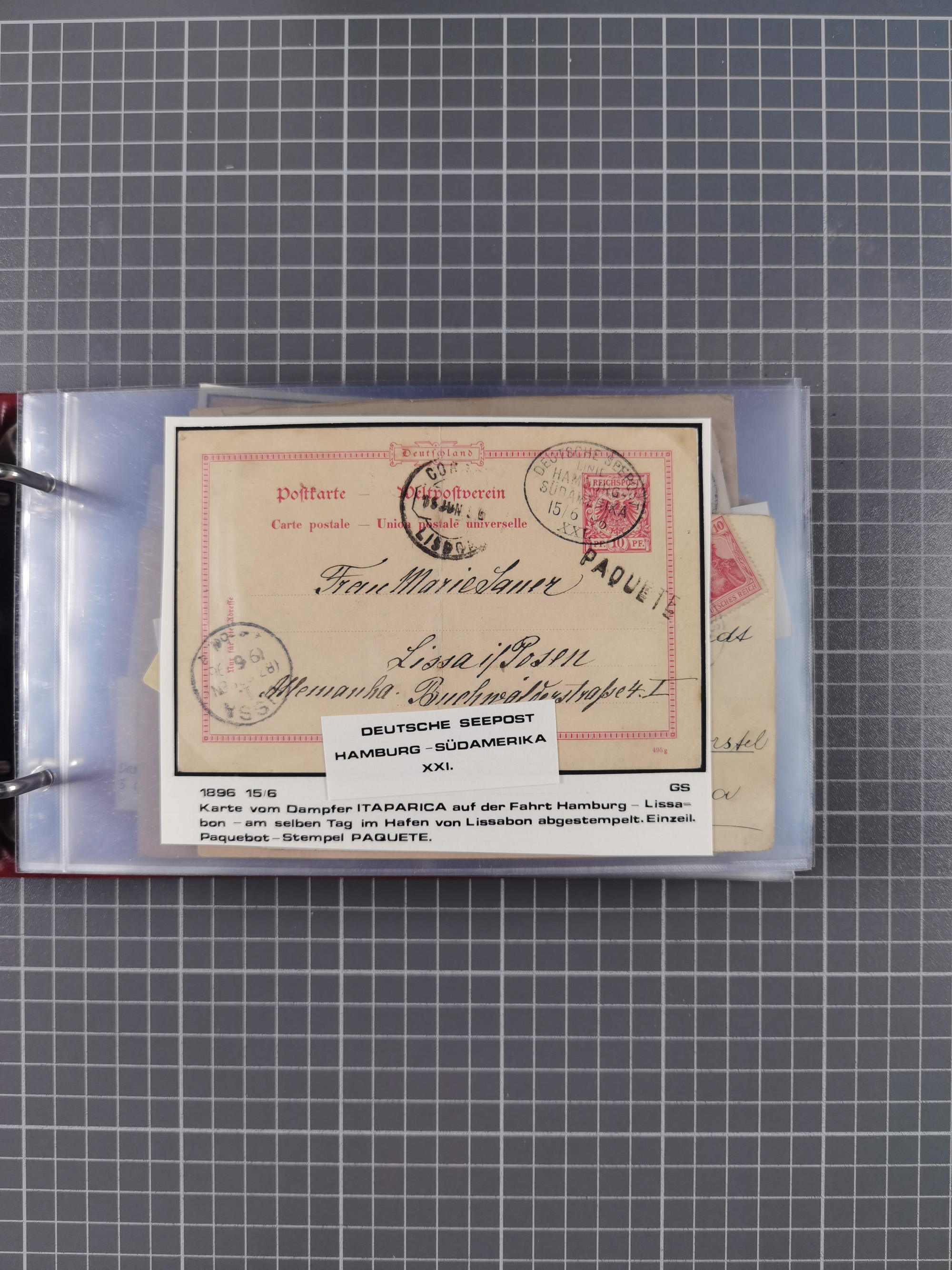 1891/1935 (ca.), umfangreiche Sammlung “DSP LINIE HAMBURG-SÜDAMERIKA I-LV” mit ca. 470 Briefen, Karten und GSK sowie wenigen Briefstücken mit Schwerpunkt vor 1914, dabei einige Belege mit “Paquebot”-Stempeln, Destinationen (u.a. 1895 nach Konstantinopel und GSK 1898 via Rottedam nach Jaluit), Bedarfspost aus der Infla-Zeit, Ozean-Brief 1913 und R-Ozean-Brief 1926. Die Erhaltung ist zum Teil etwas fehlerhaft, dafür fast nur klare Stempel, meist Bedarfspost, ex Steinmeyer