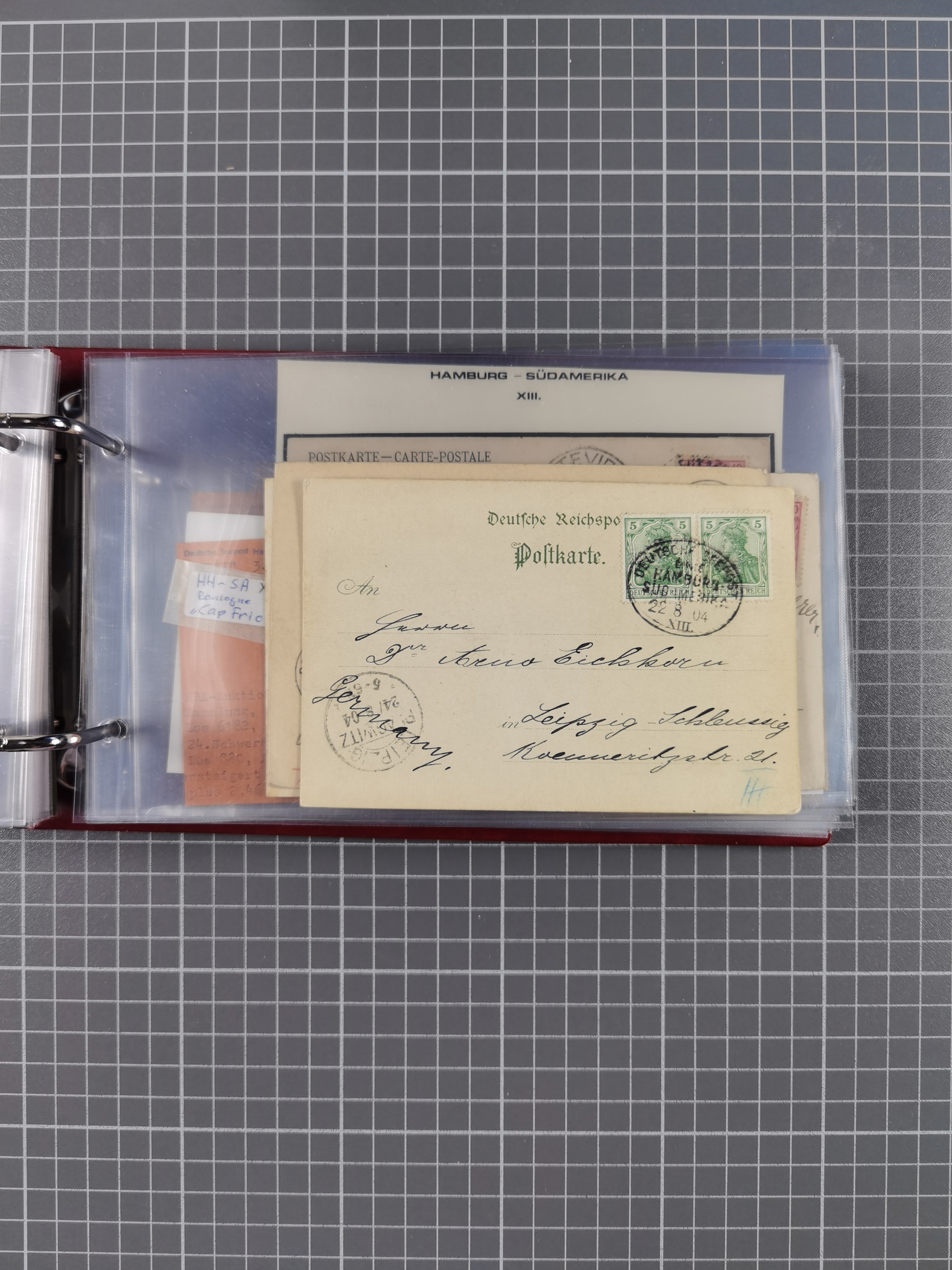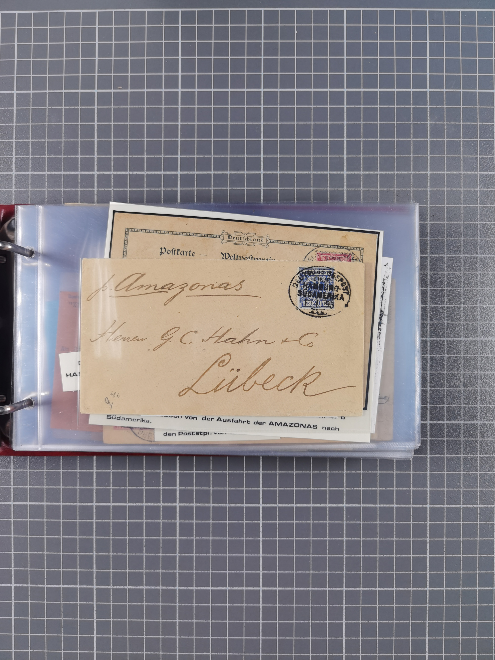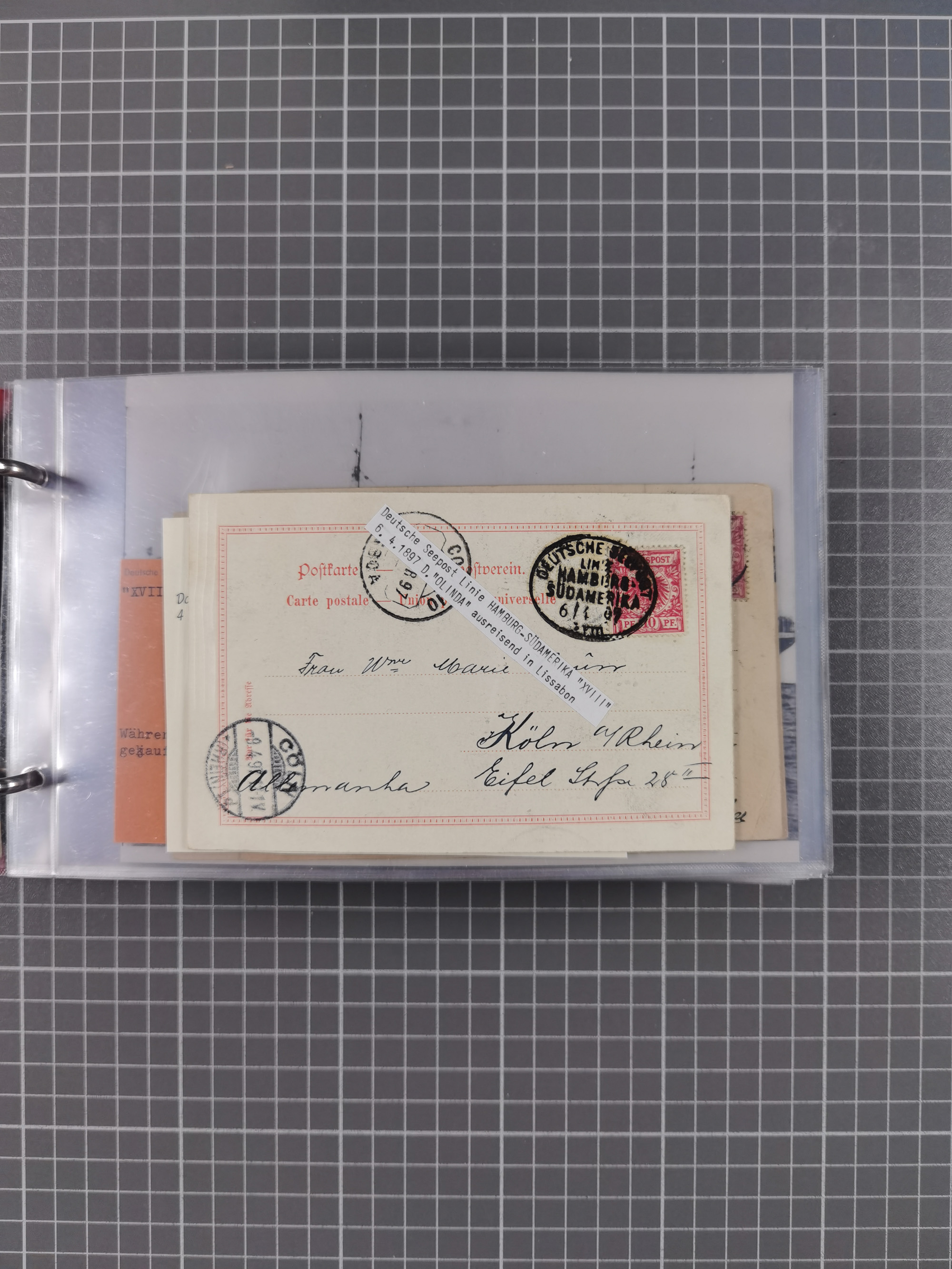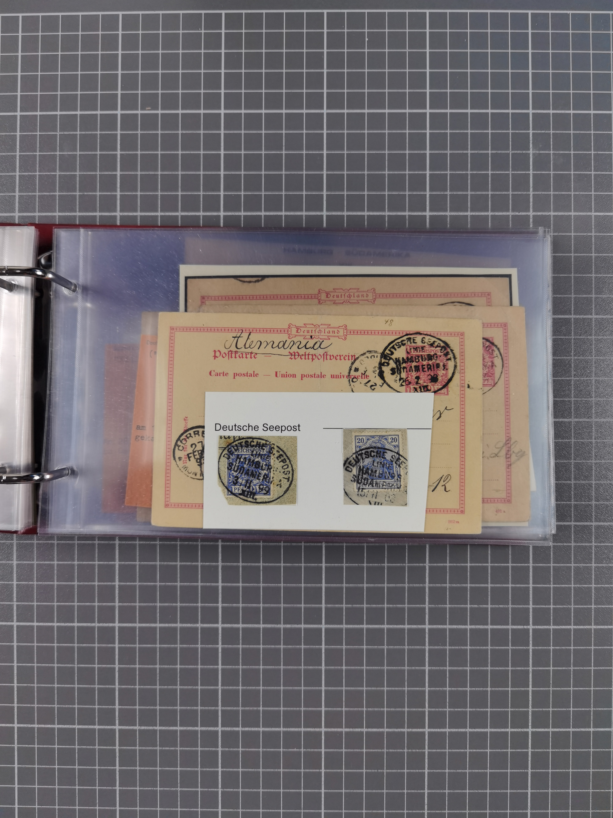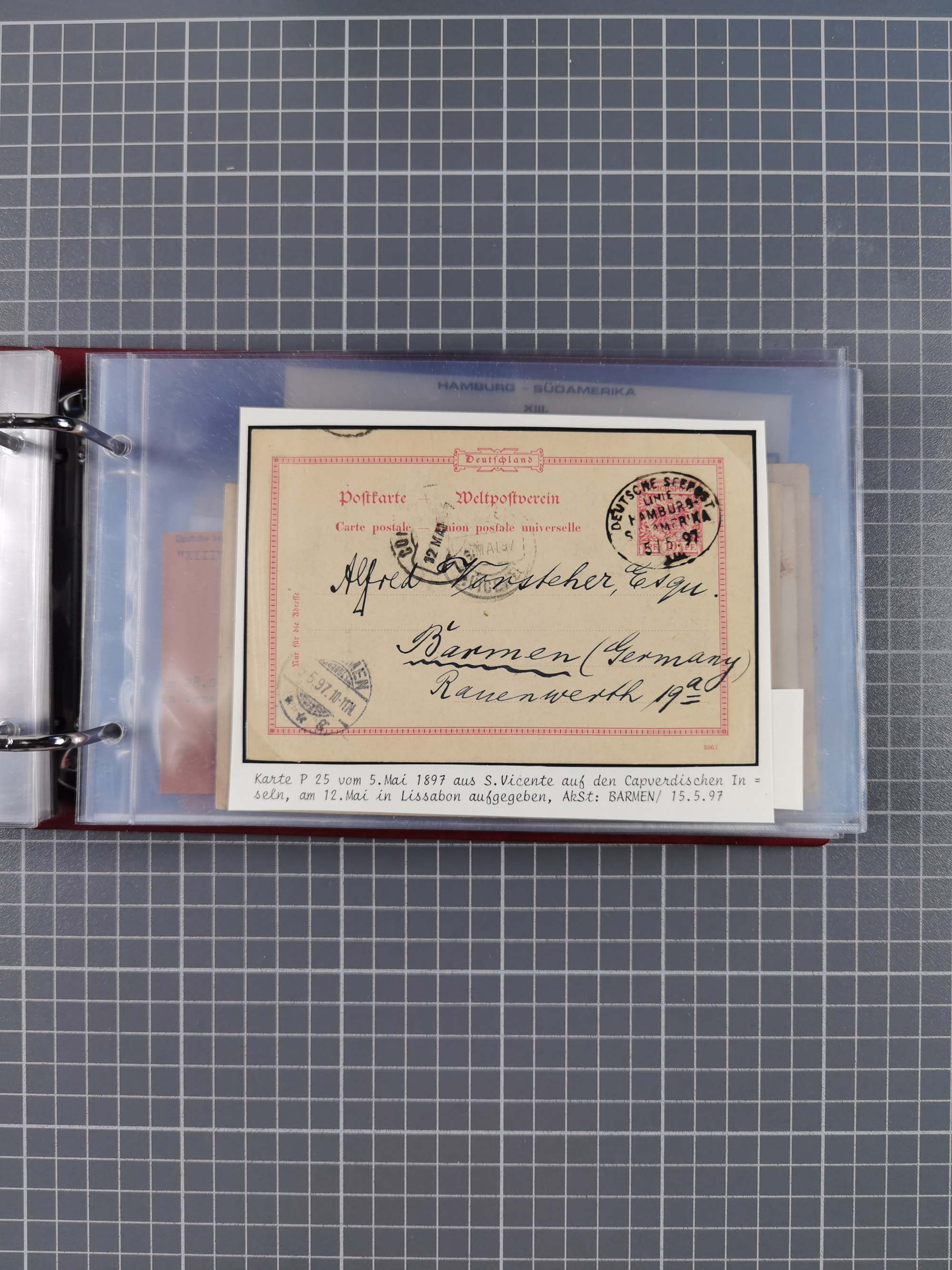 1891/1935 (ca.), umfangreiche Sammlung “DSP LINIE HAMBURG-SÜDAMERIKA I-LV” mit ca. 470 Briefen, Karten und GSK sowie wenigen Briefstücken mit Schwerpunkt vor 1914, dabei einige Belege mit “Paquebot”-Stempeln, Destinationen (u.a. 1895 nach Konstantinopel und GSK 1898 via Rottedam nach Jaluit), Bedarfspost aus der Infla-Zeit, Ozean-Brief 1913 und R-Ozean-Brief 1926. Die Erhaltung ist zum Teil etwas fehlerhaft, dafür fast nur klare Stempel, meist Bedarfspost, ex Steinmeyer