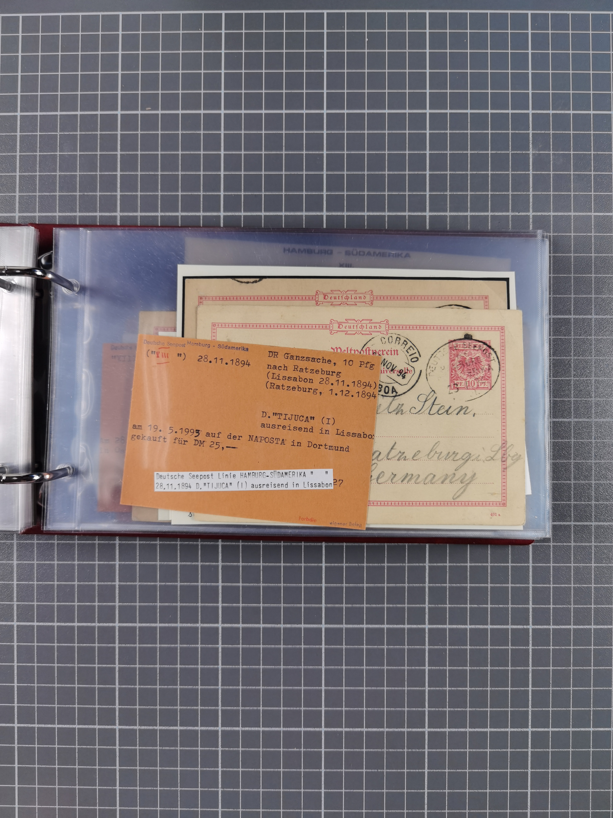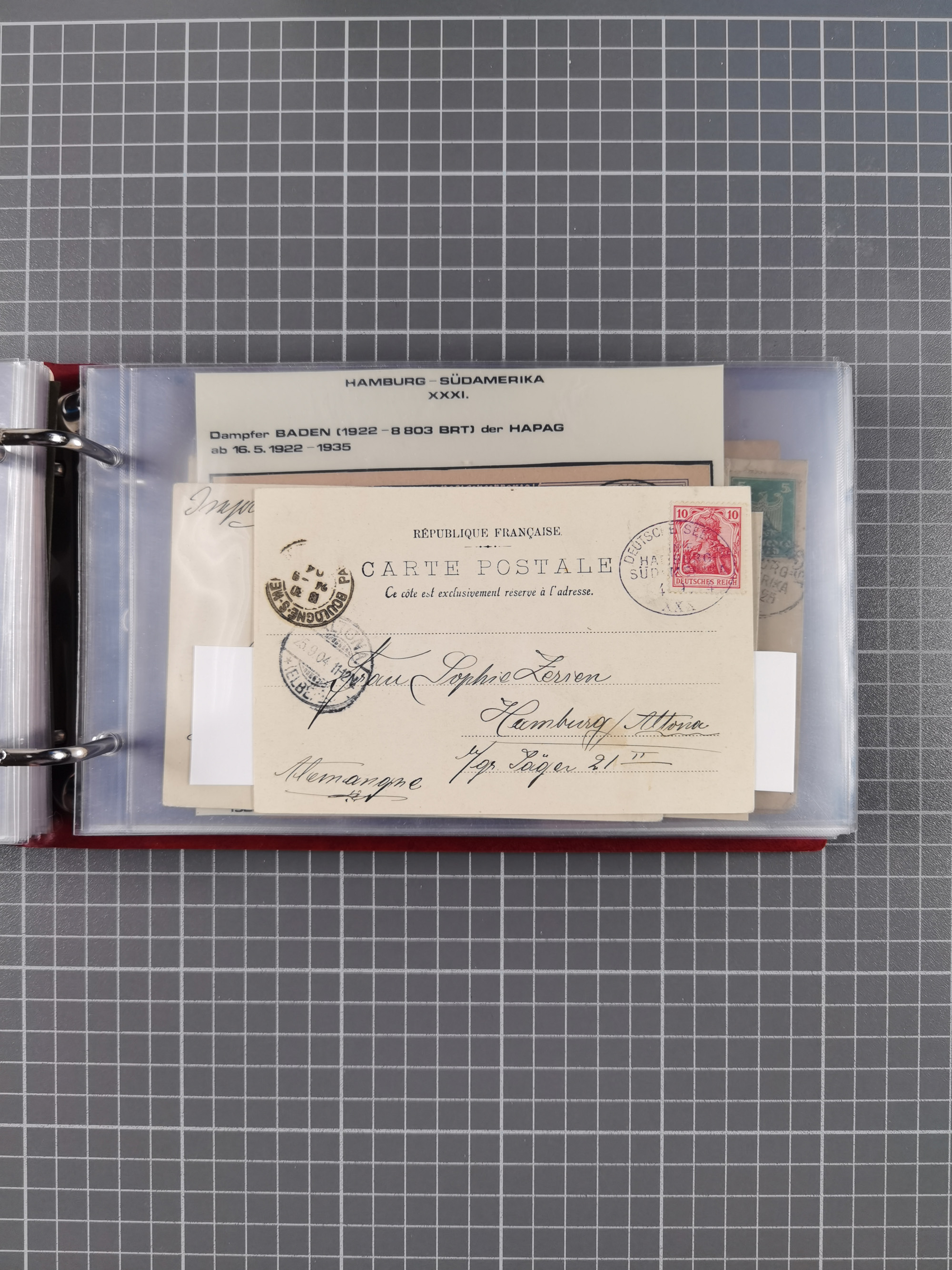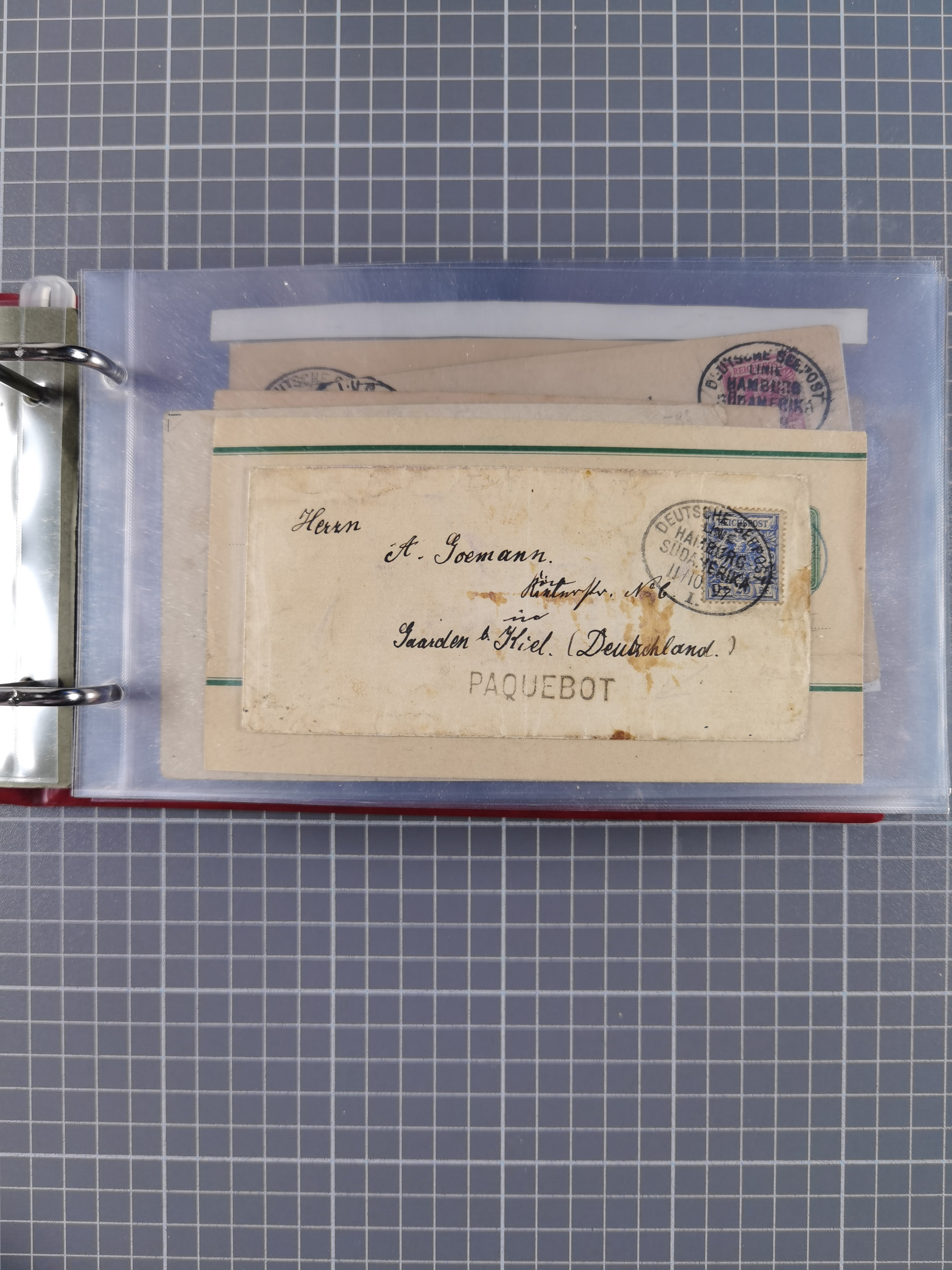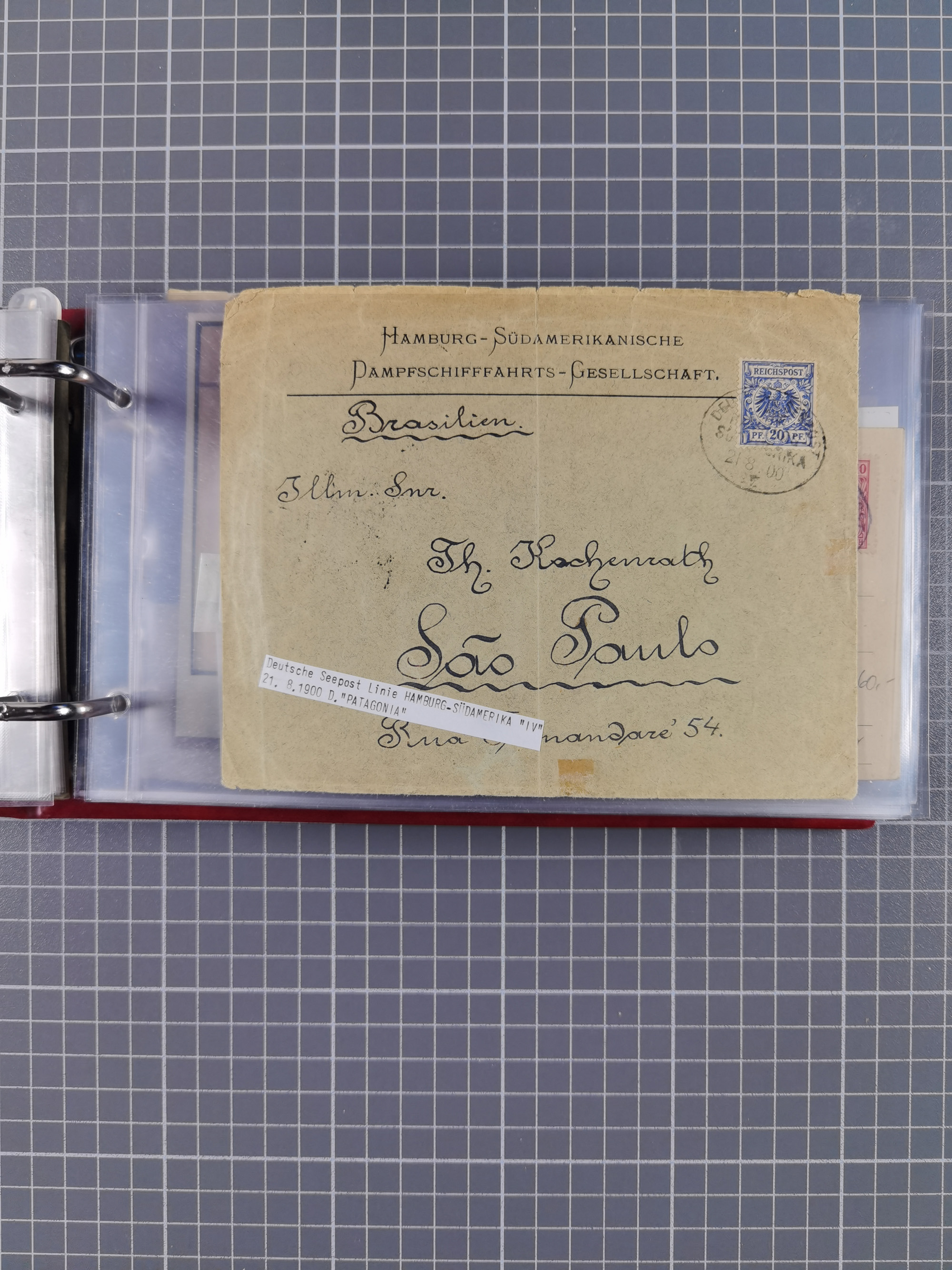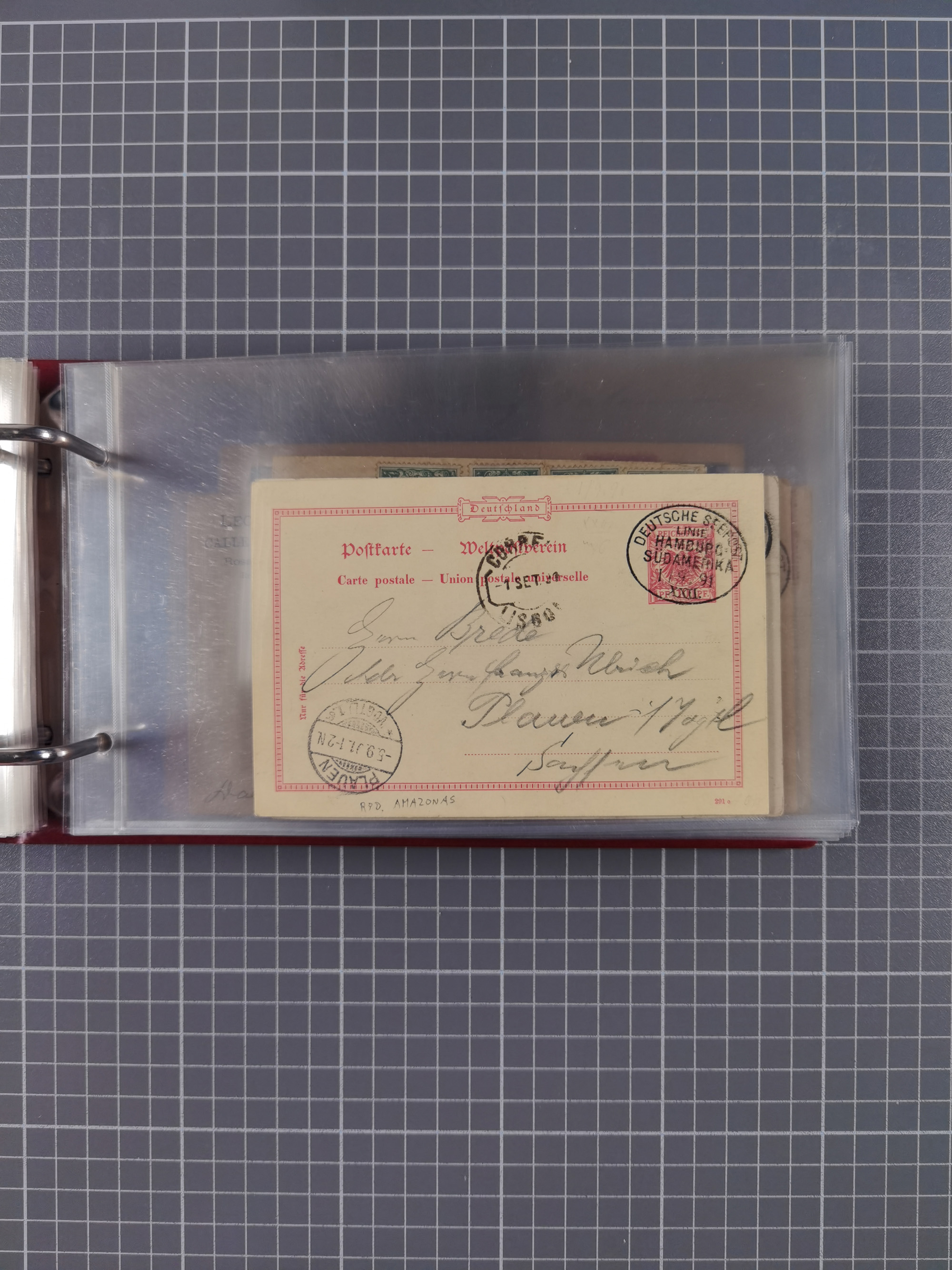 1891/1935 (ca.), umfangreiche Sammlung “DSP LINIE HAMBURG-SÜDAMERIKA I-LV” mit ca. 470 Briefen, Karten und GSK sowie wenigen Briefstücken mit Schwerpunkt vor 1914, dabei einige Belege mit “Paquebot”-Stempeln, Destinationen (u.a. 1895 nach Konstantinopel und GSK 1898 via Rottedam nach Jaluit), Bedarfspost aus der Infla-Zeit, Ozean-Brief 1913 und R-Ozean-Brief 1926. Die Erhaltung ist zum Teil etwas fehlerhaft, dafür fast nur klare Stempel, meist Bedarfspost, ex Steinmeyer