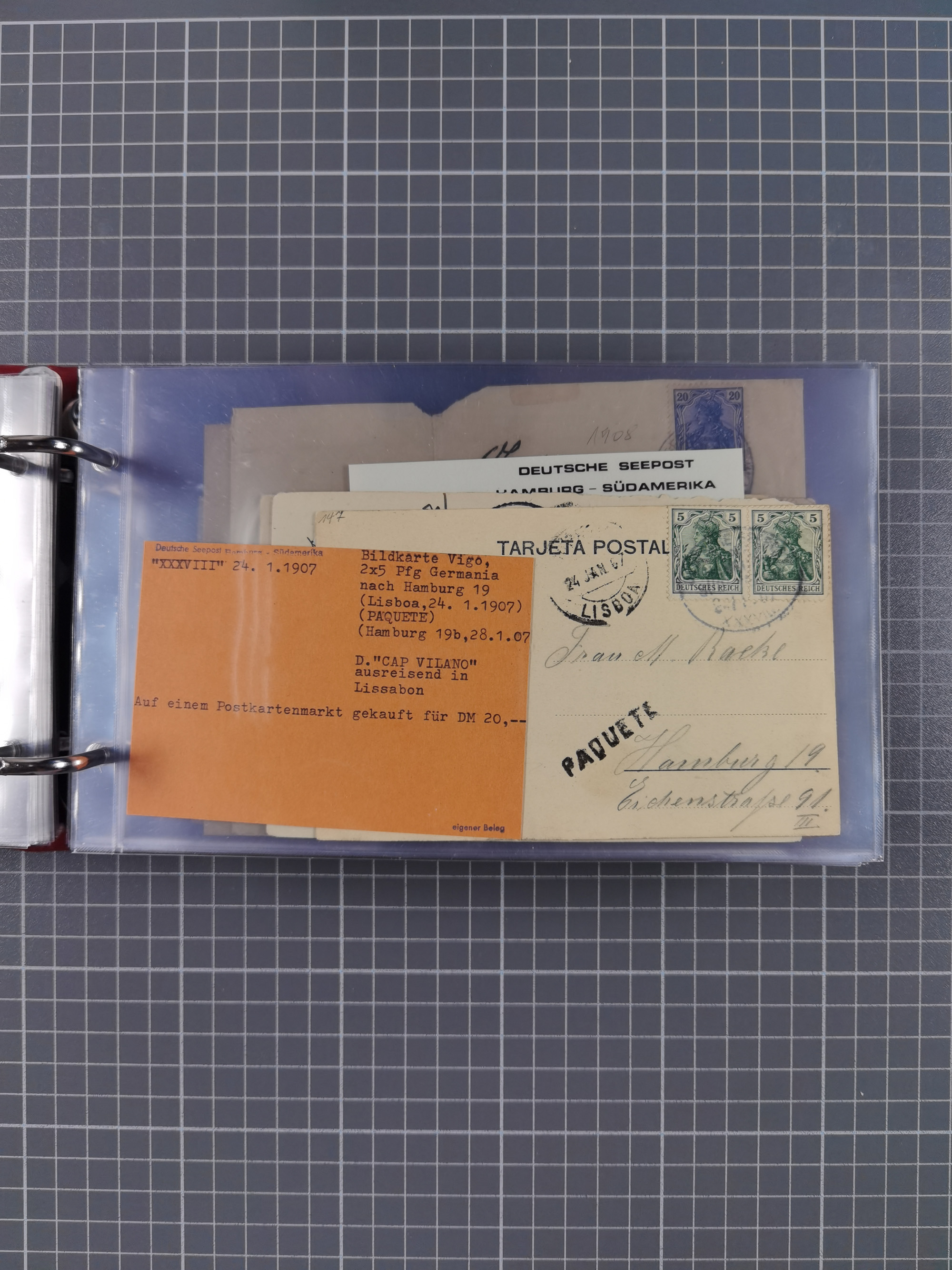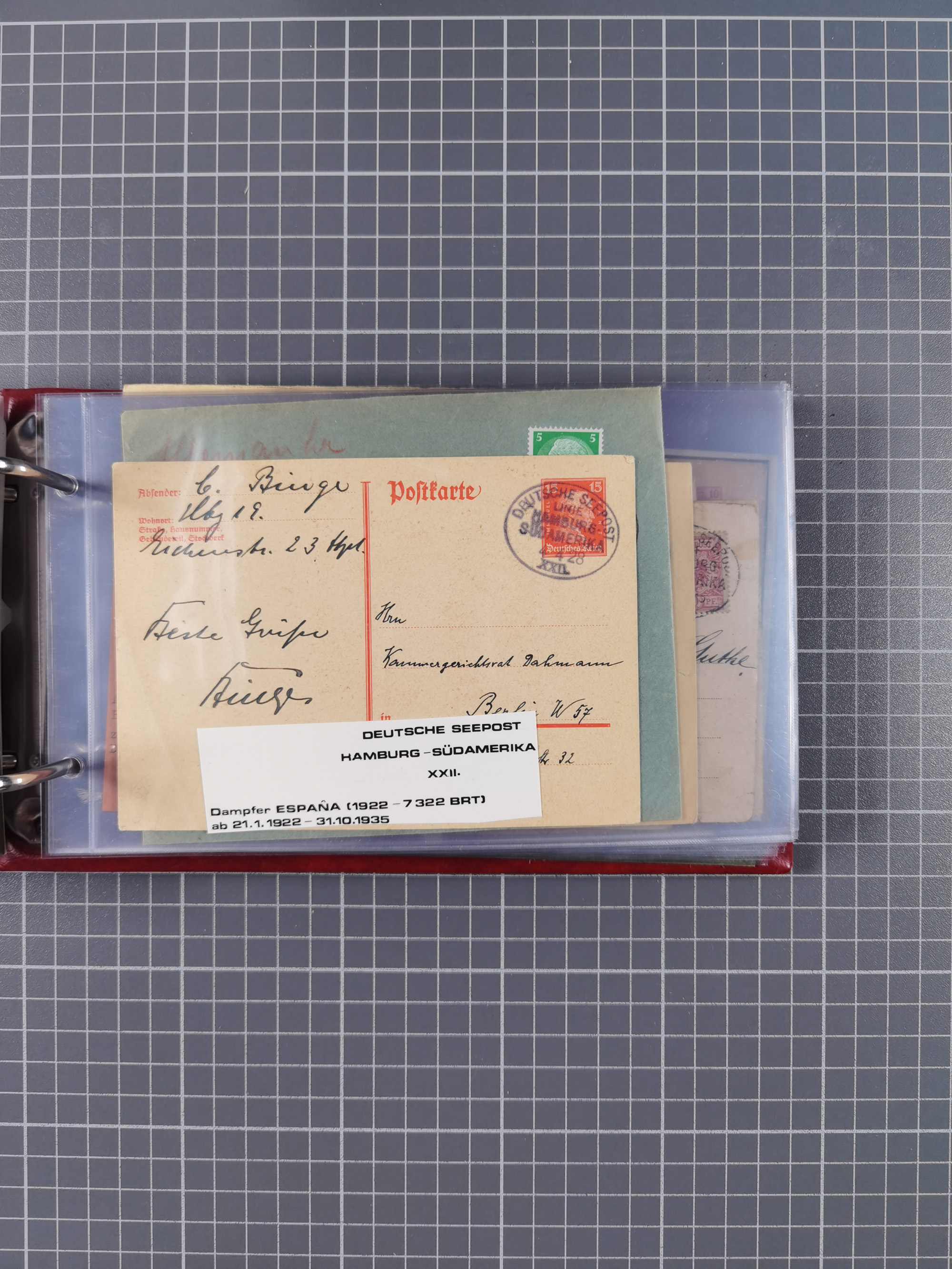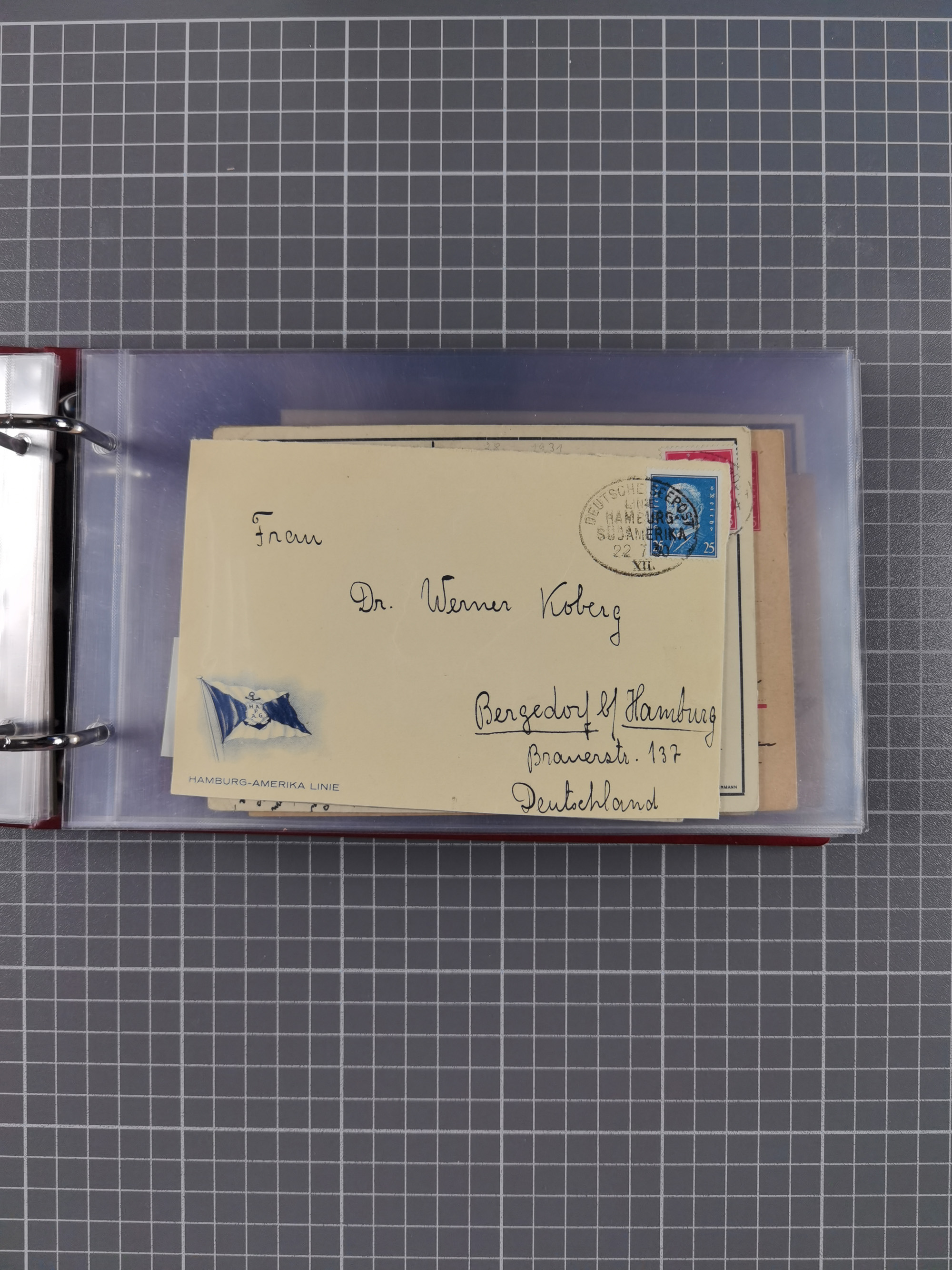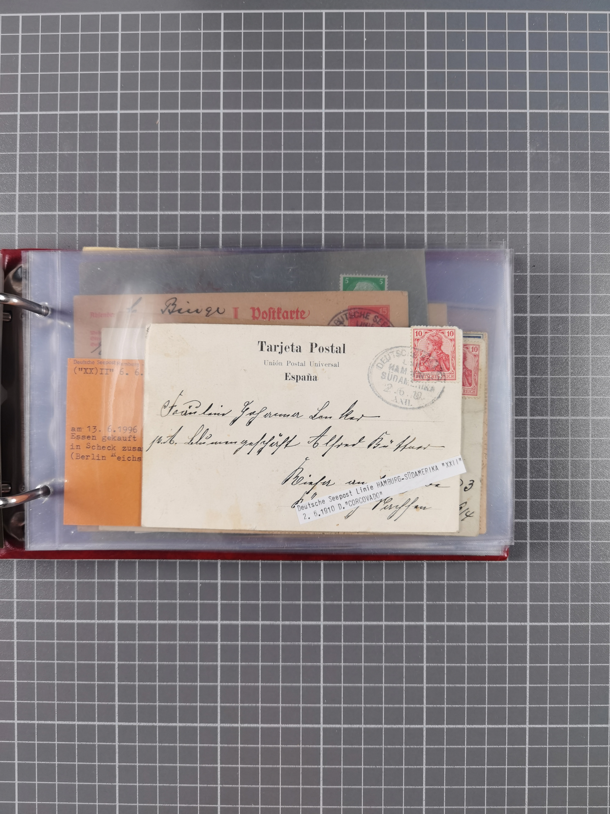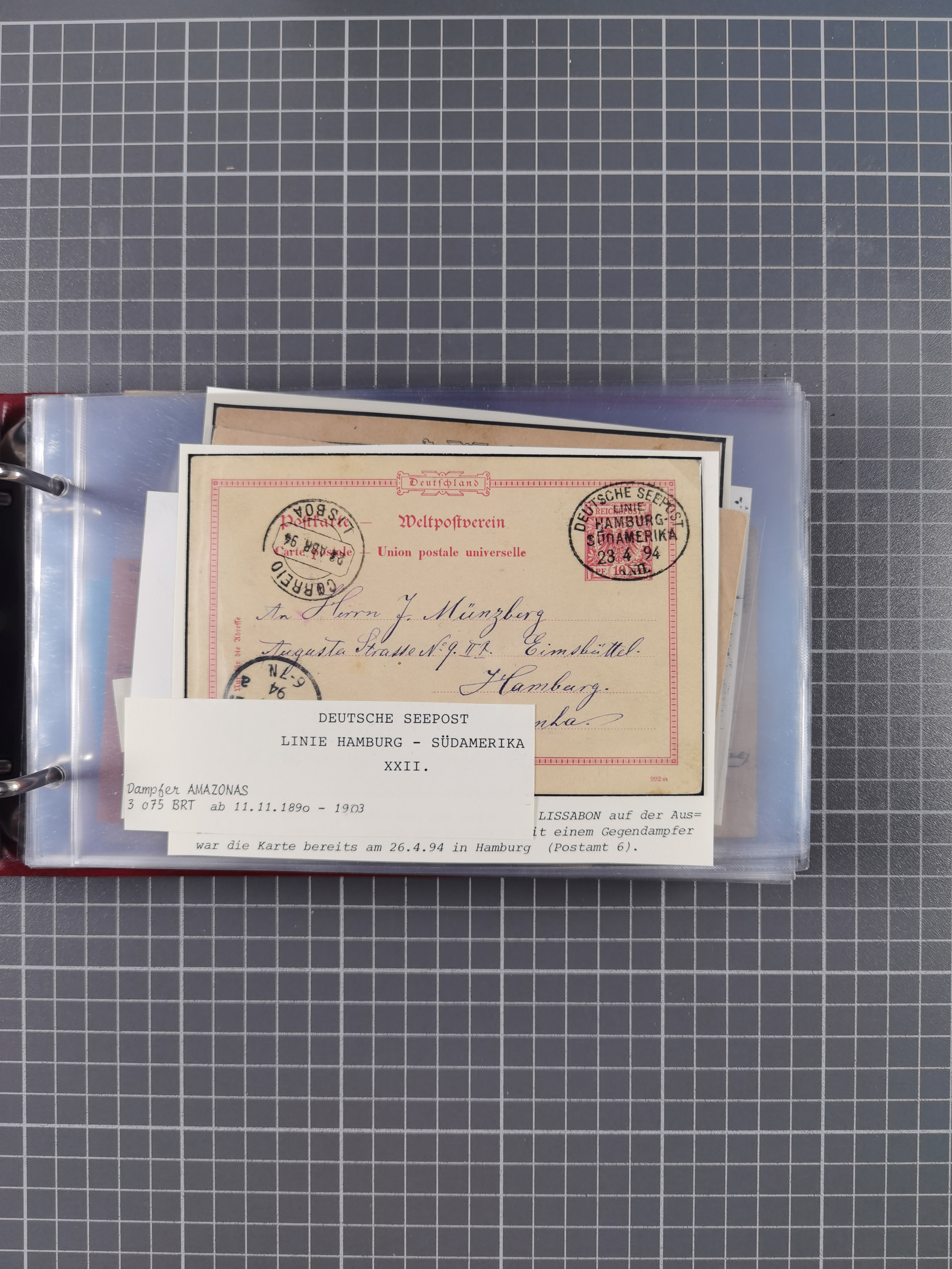 1891/1935 (ca.), umfangreiche Sammlung “DSP LINIE HAMBURG-SÜDAMERIKA I-LV” mit ca. 470 Briefen, Karten und GSK sowie wenigen Briefstücken mit Schwerpunkt vor 1914, dabei einige Belege mit “Paquebot”-Stempeln, Destinationen (u.a. 1895 nach Konstantinopel und GSK 1898 via Rottedam nach Jaluit), Bedarfspost aus der Infla-Zeit, Ozean-Brief 1913 und R-Ozean-Brief 1926. Die Erhaltung ist zum Teil etwas fehlerhaft, dafür fast nur klare Stempel, meist Bedarfspost, ex Steinmeyer