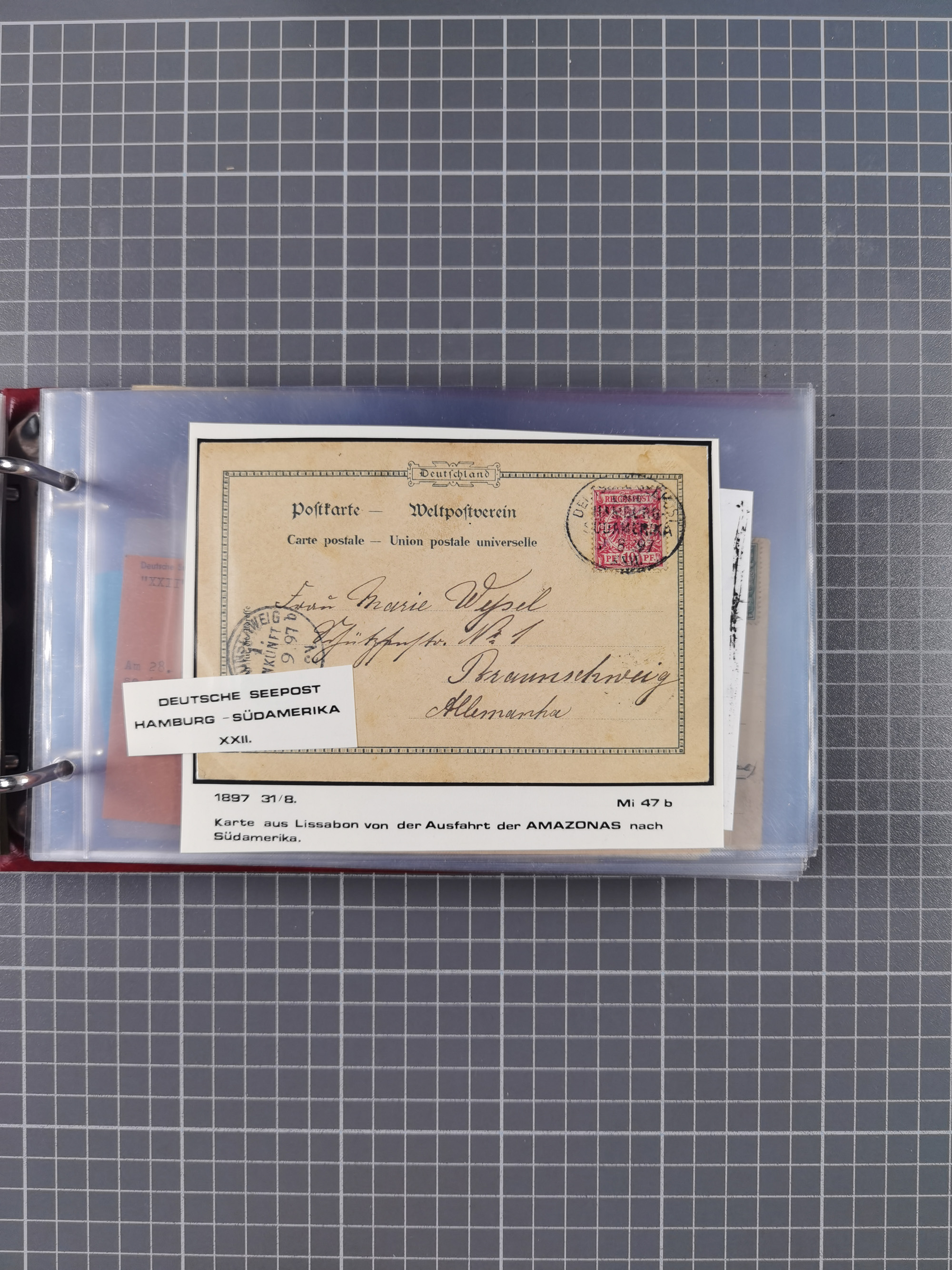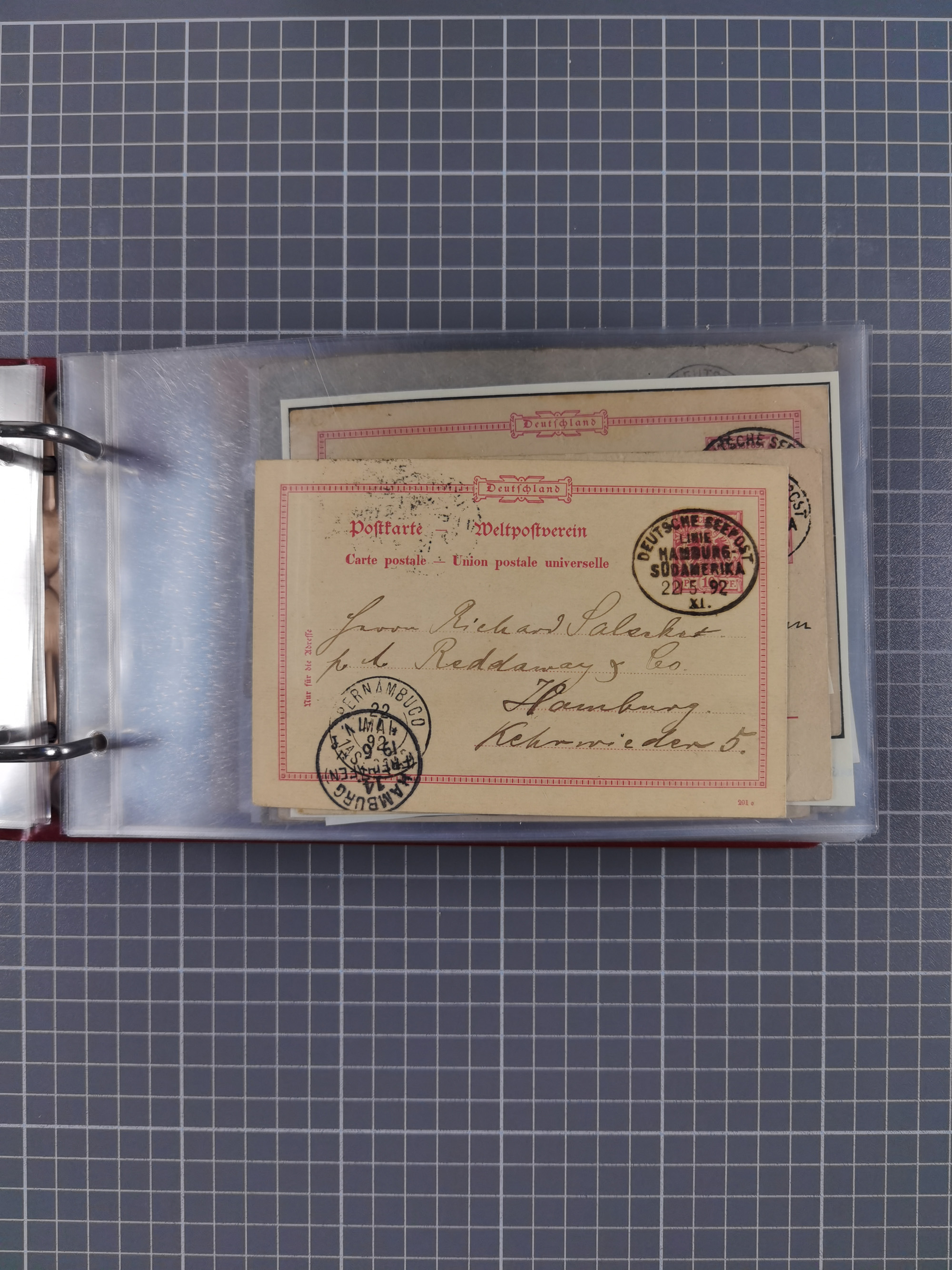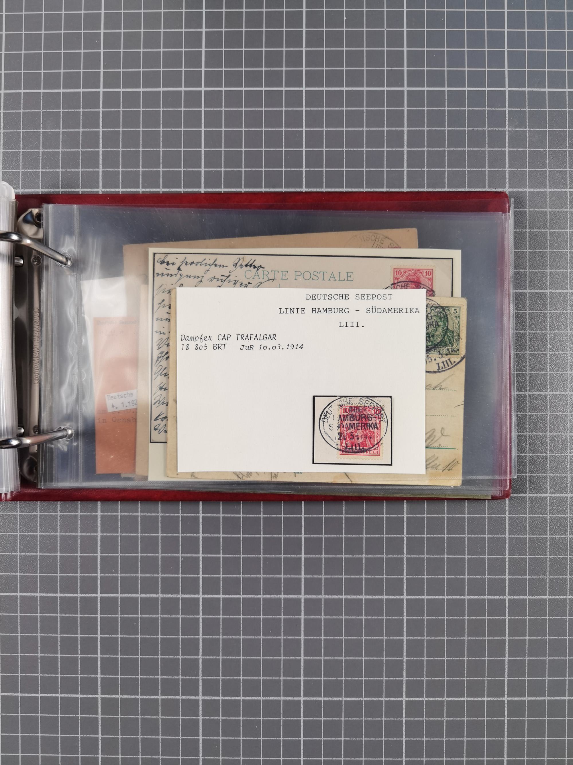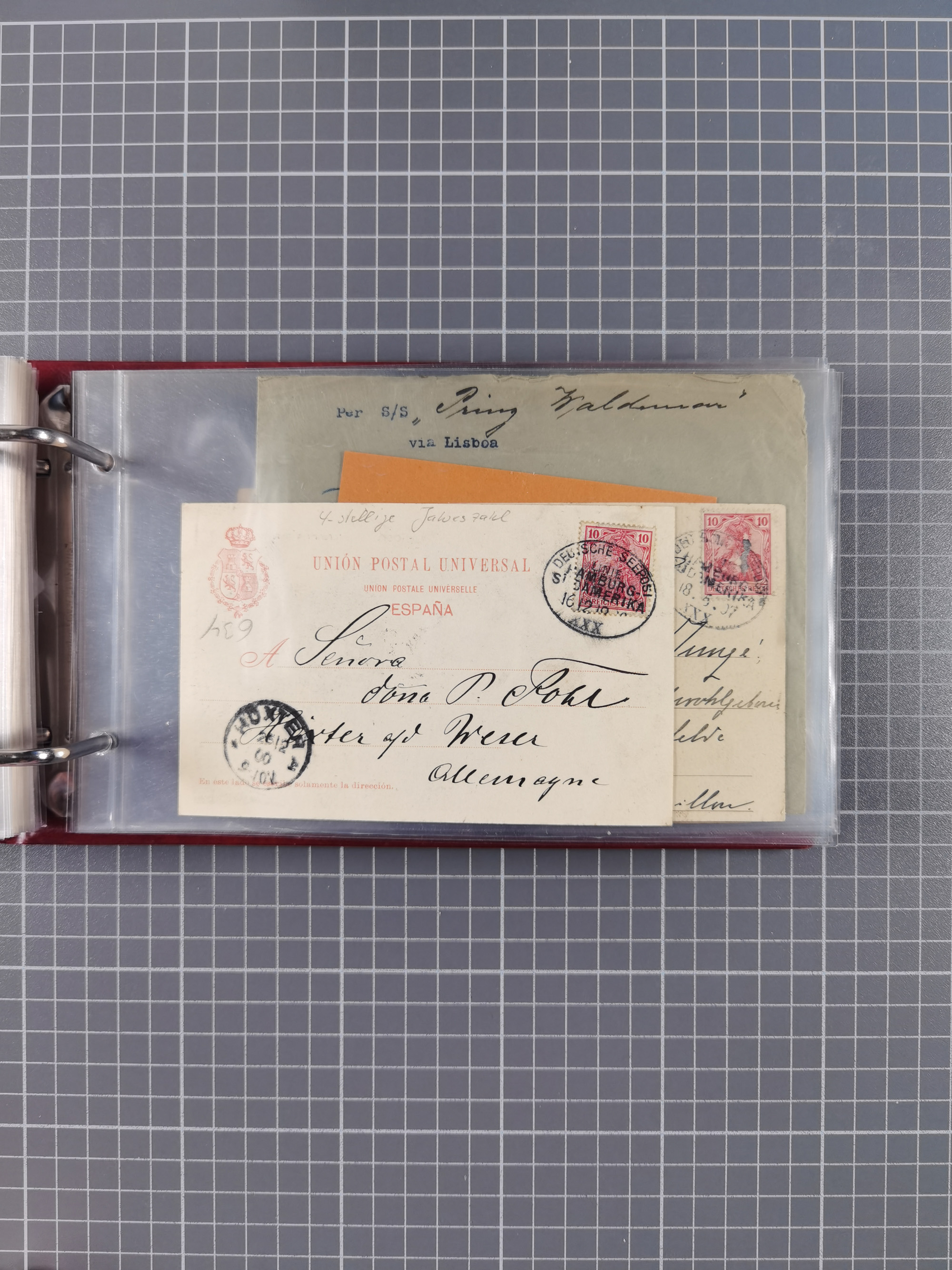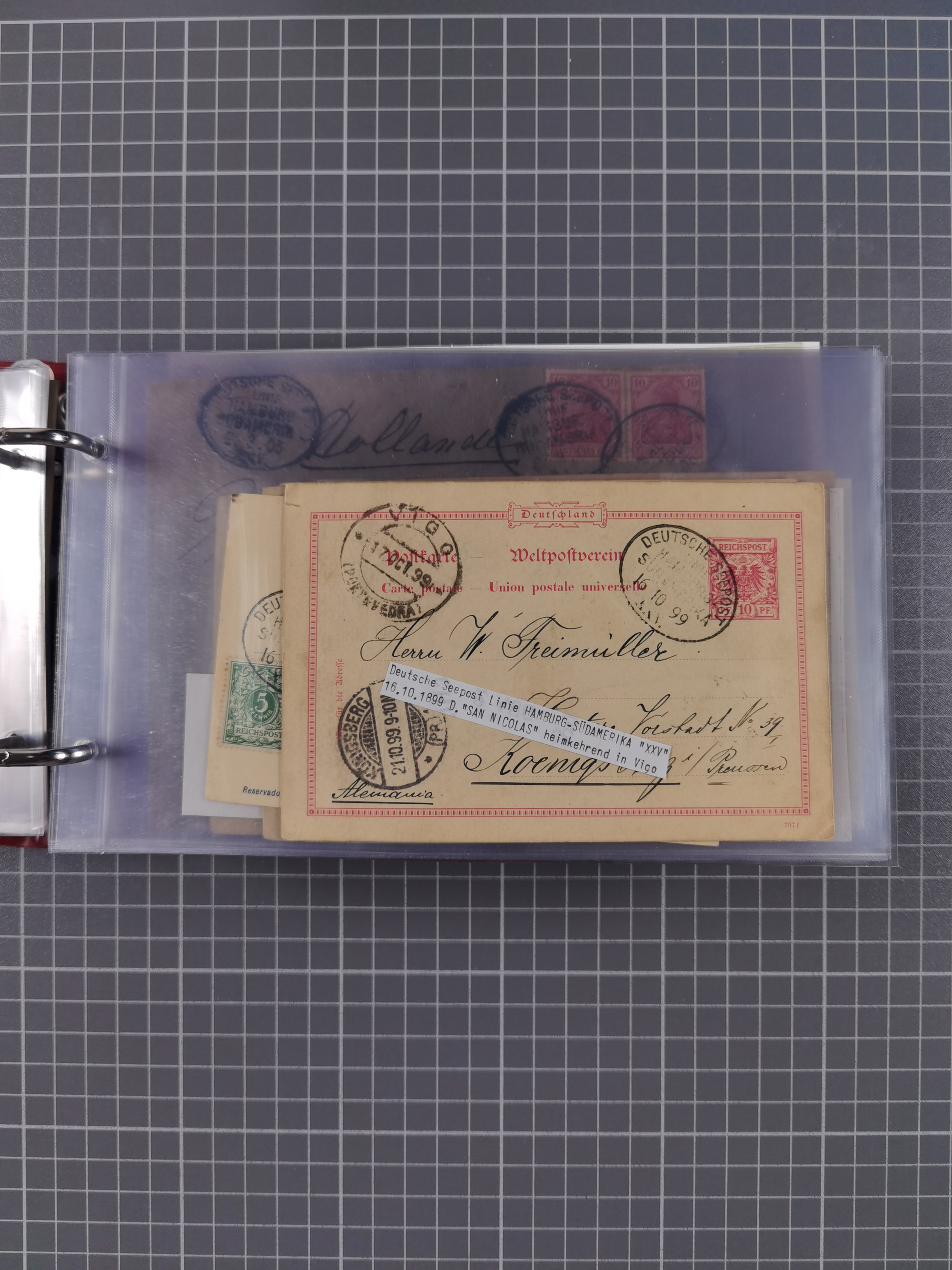 1891/1935 (ca.), umfangreiche Sammlung “DSP LINIE HAMBURG-SÜDAMERIKA I-LV” mit ca. 470 Briefen, Karten und GSK sowie wenigen Briefstücken mit Schwerpunkt vor 1914, dabei einige Belege mit “Paquebot”-Stempeln, Destinationen (u.a. 1895 nach Konstantinopel und GSK 1898 via Rottedam nach Jaluit), Bedarfspost aus der Infla-Zeit, Ozean-Brief 1913 und R-Ozean-Brief 1926. Die Erhaltung ist zum Teil etwas fehlerhaft, dafür fast nur klare Stempel, meist Bedarfspost, ex Steinmeyer