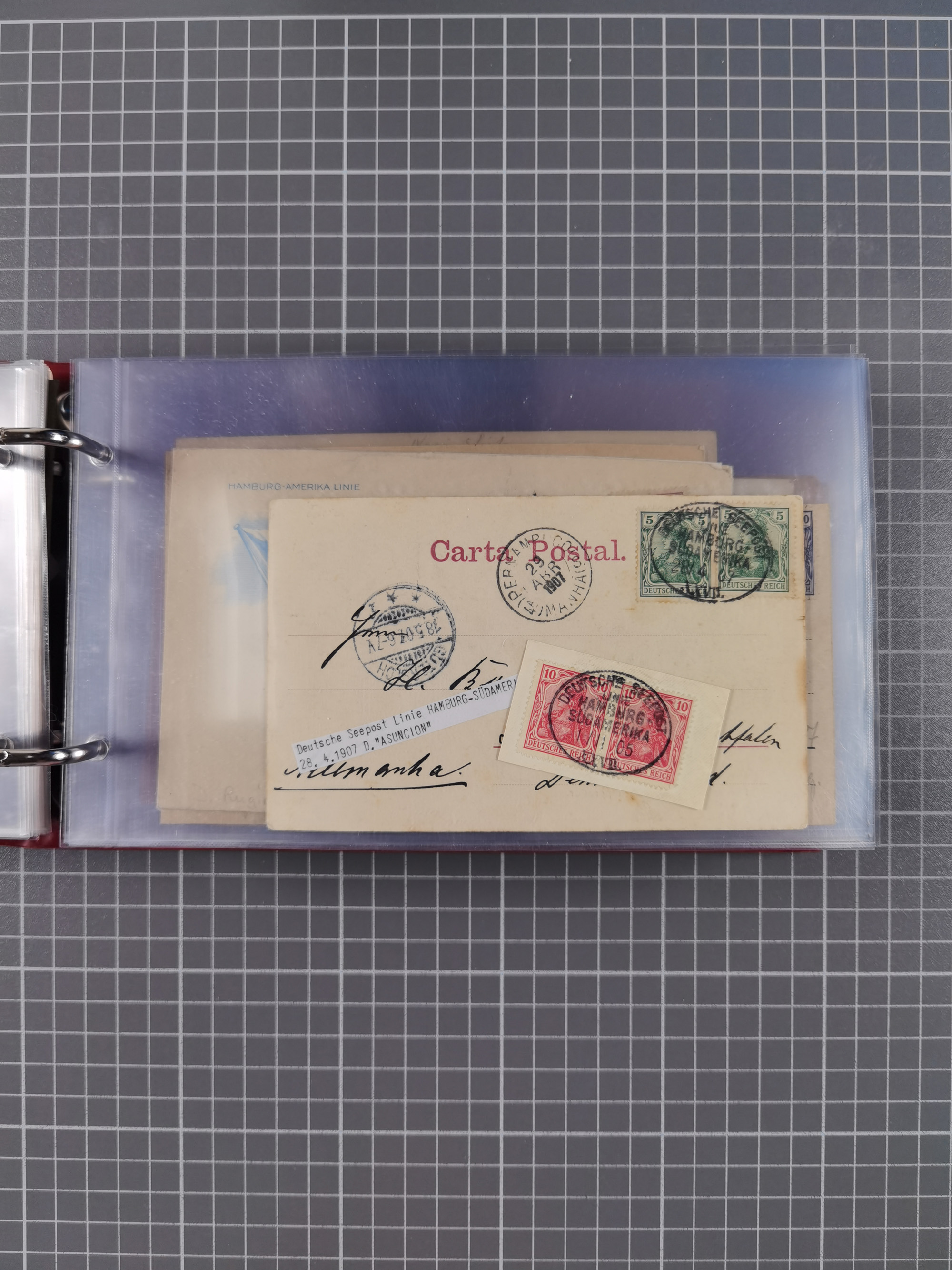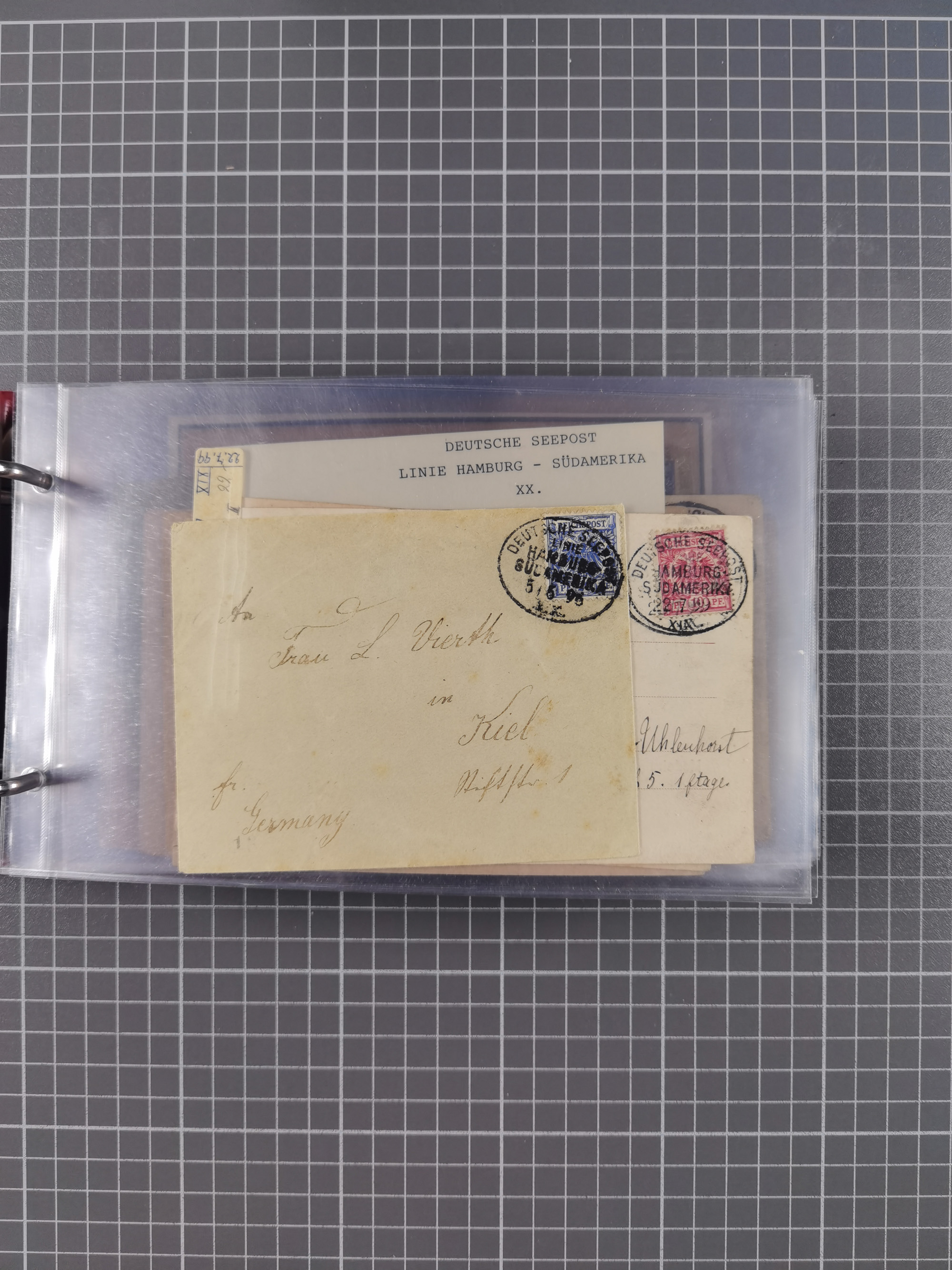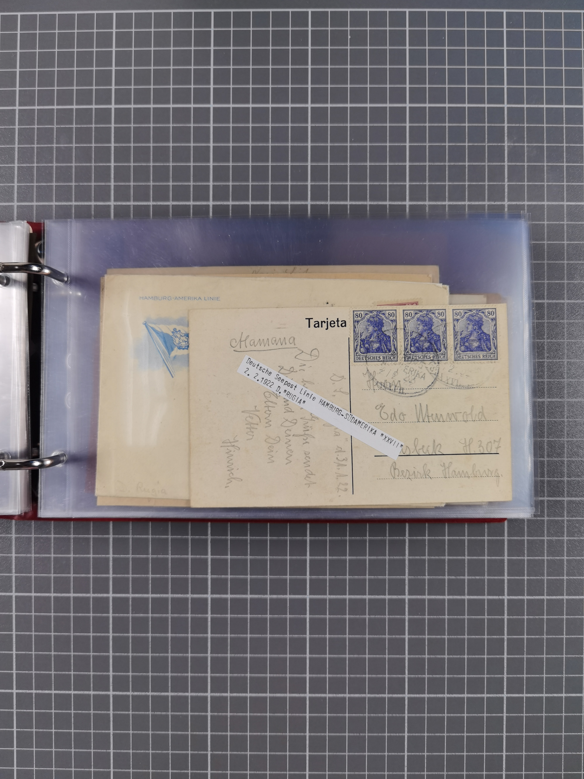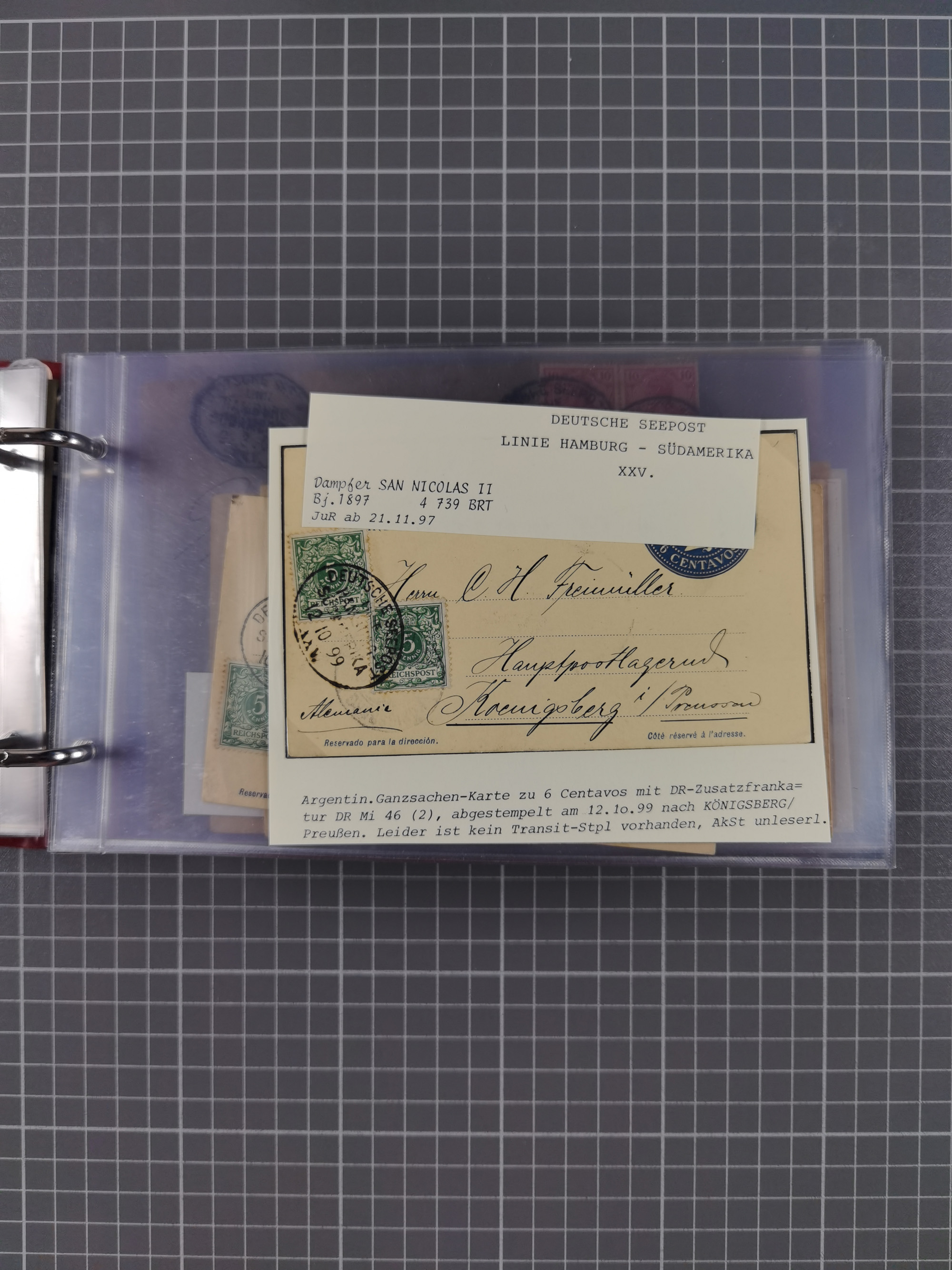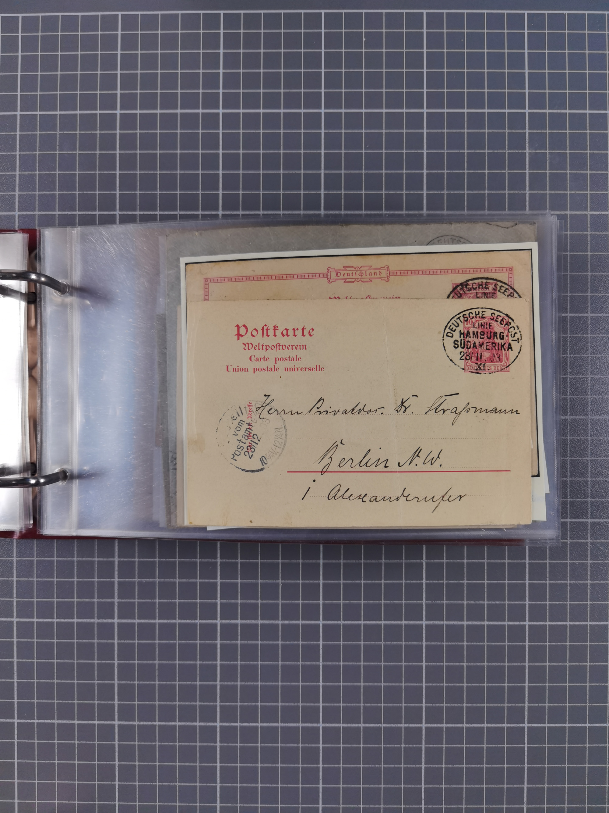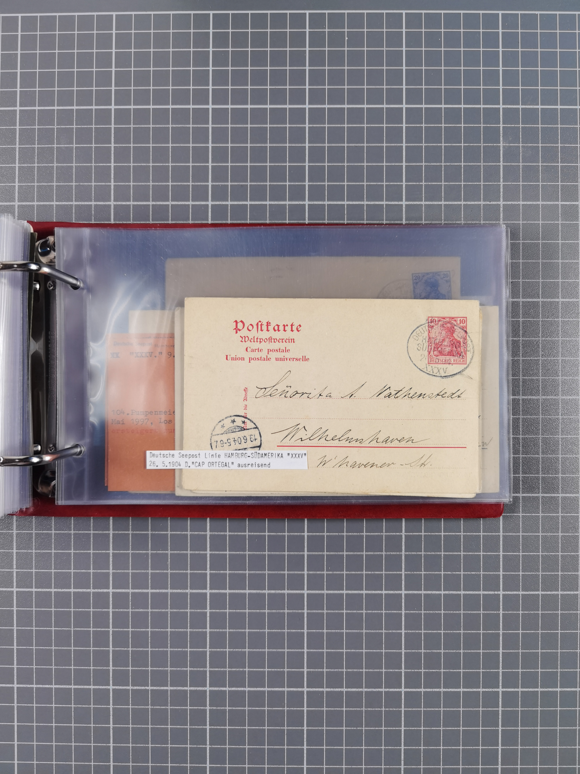1891/1935 (ca.), umfangreiche Sammlung “DSP LINIE HAMBURG-SÜDAMERIKA I-LV” mit ca. 470 Briefen, Karten und GSK sowie wenigen Briefstücken mit Schwerpunkt vor 1914, dabei einige Belege mit “Paquebot”-Stempeln, Destinationen (u.a. 1895 nach Konstantinopel und GSK 1898 via Rottedam nach Jaluit), Bedarfspost aus der Infla-Zeit, Ozean-Brief 1913 und R-Ozean-Brief 1926. Die Erhaltung ist zum Teil etwas fehlerhaft, dafür fast nur klare Stempel, meist Bedarfspost, ex Steinmeyer