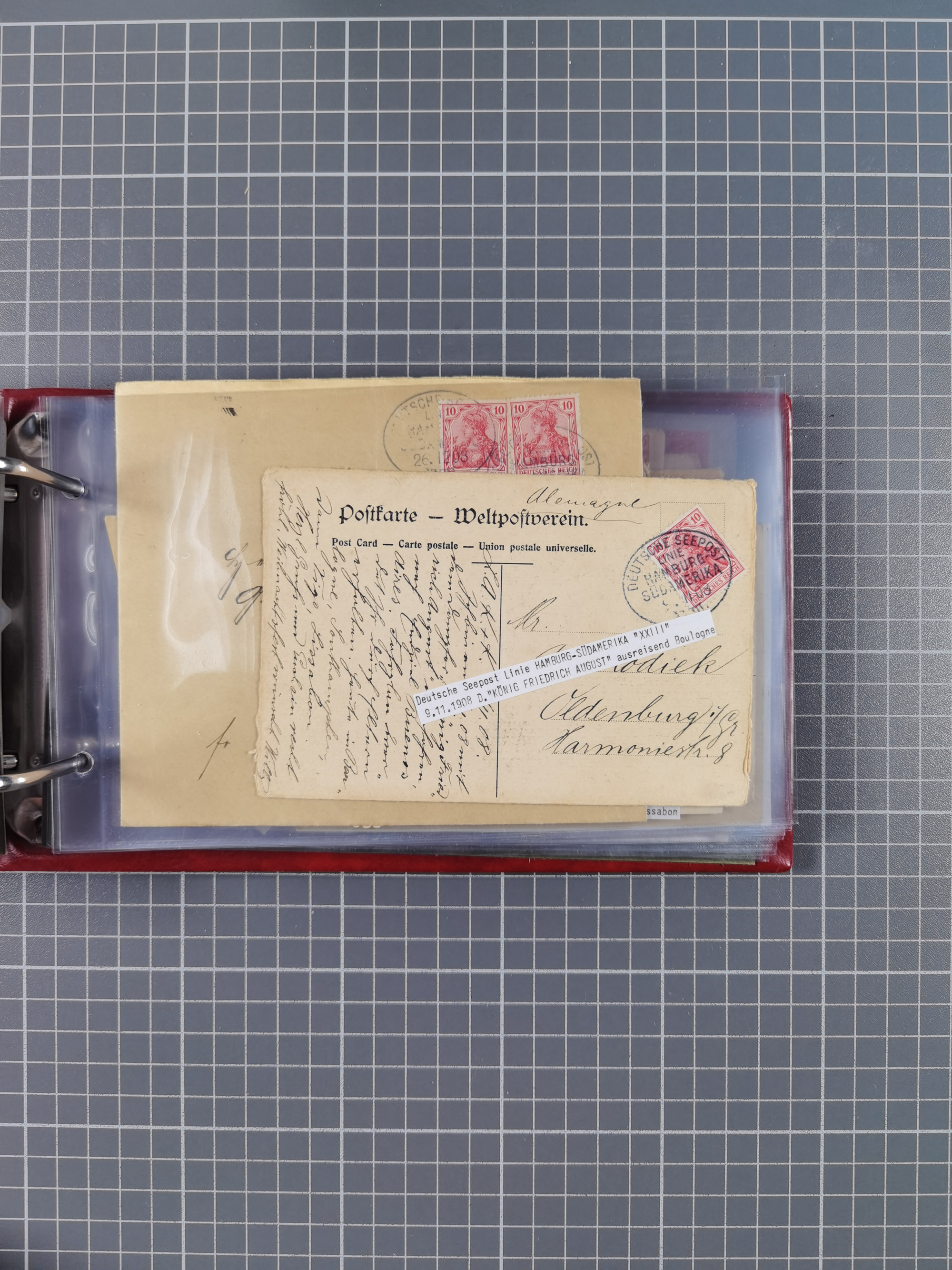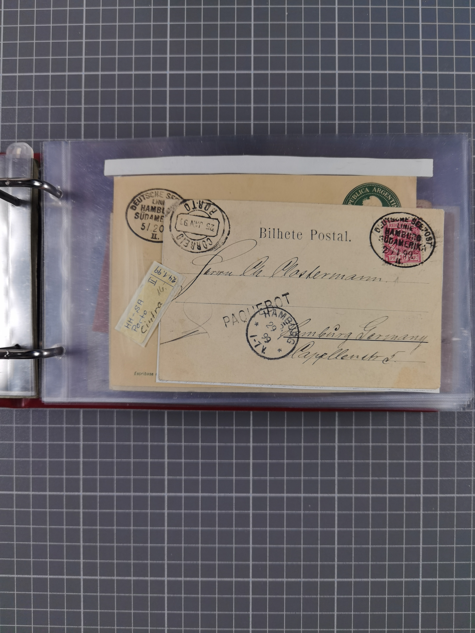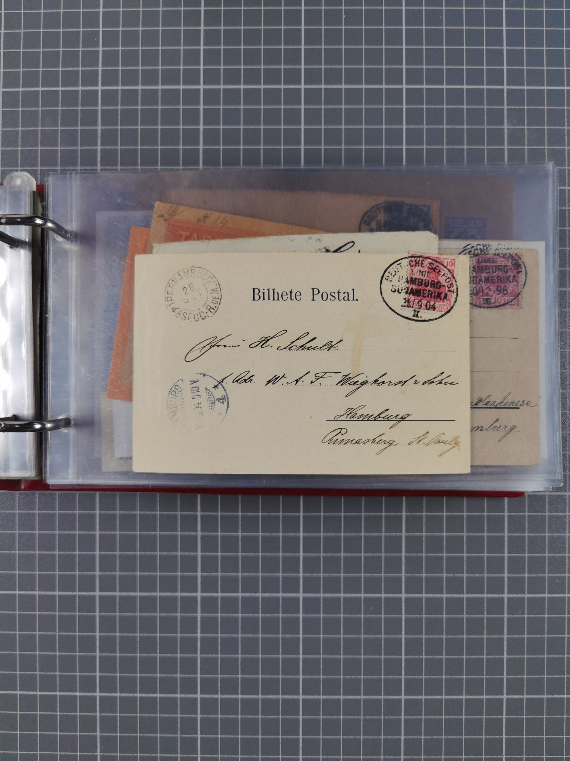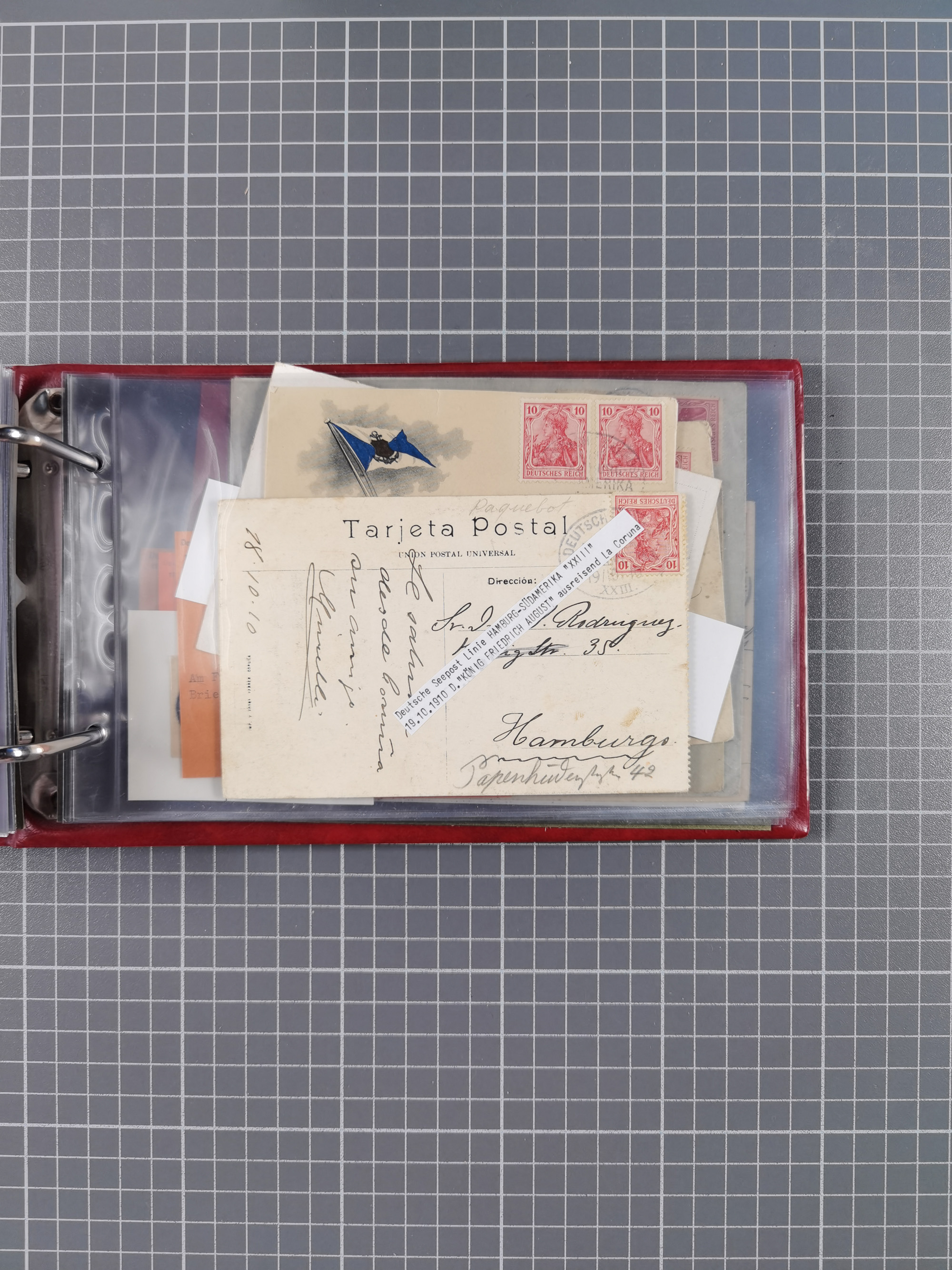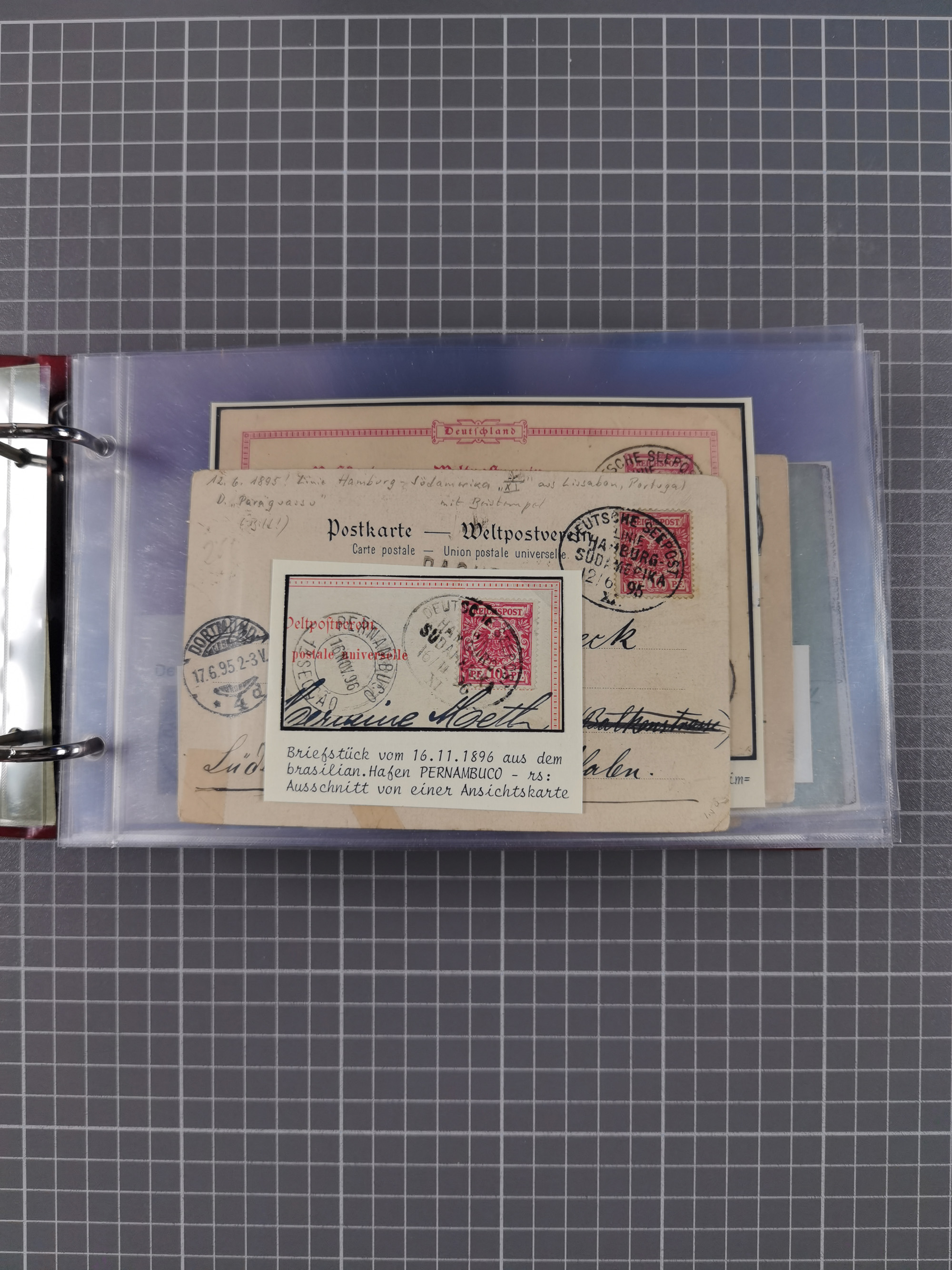 1891/1935 (ca.), umfangreiche Sammlung “DSP LINIE HAMBURG-SÜDAMERIKA I-LV” mit ca. 470 Briefen, Karten und GSK sowie wenigen Briefstücken mit Schwerpunkt vor 1914, dabei einige Belege mit “Paquebot”-Stempeln, Destinationen (u.a. 1895 nach Konstantinopel und GSK 1898 via Rottedam nach Jaluit), Bedarfspost aus der Infla-Zeit, Ozean-Brief 1913 und R-Ozean-Brief 1926. Die Erhaltung ist zum Teil etwas fehlerhaft, dafür fast nur klare Stempel, meist Bedarfspost, ex Steinmeyer