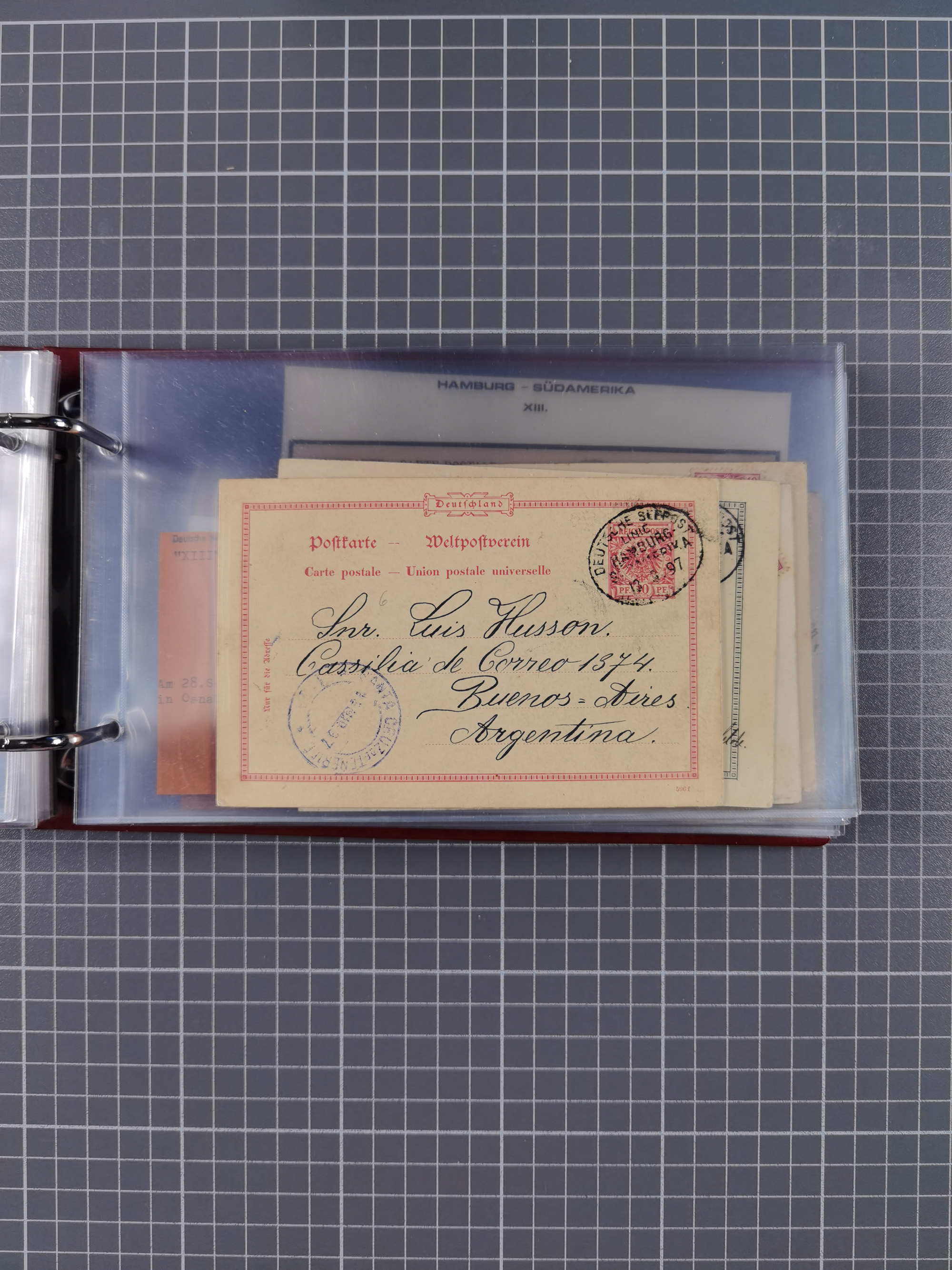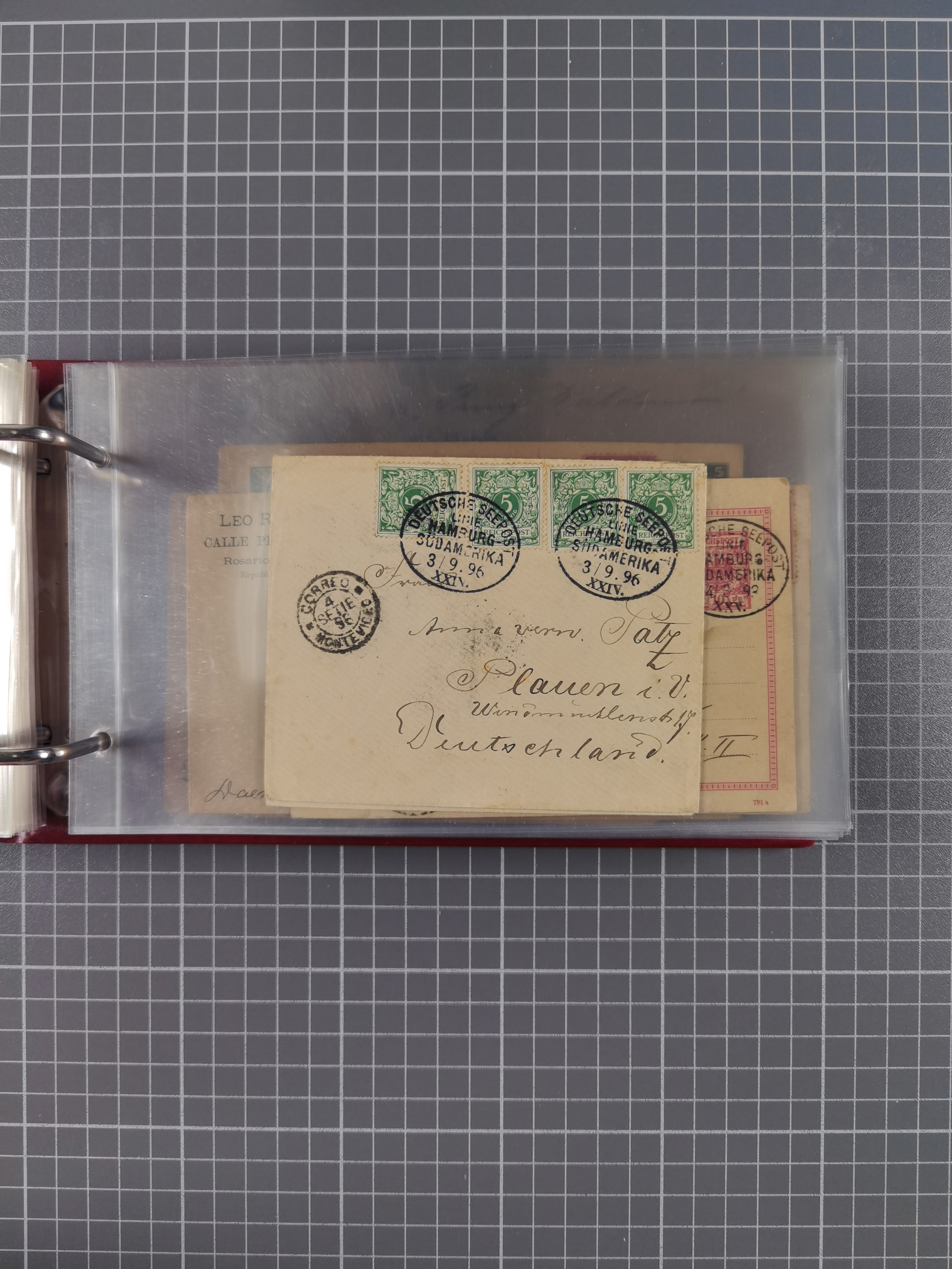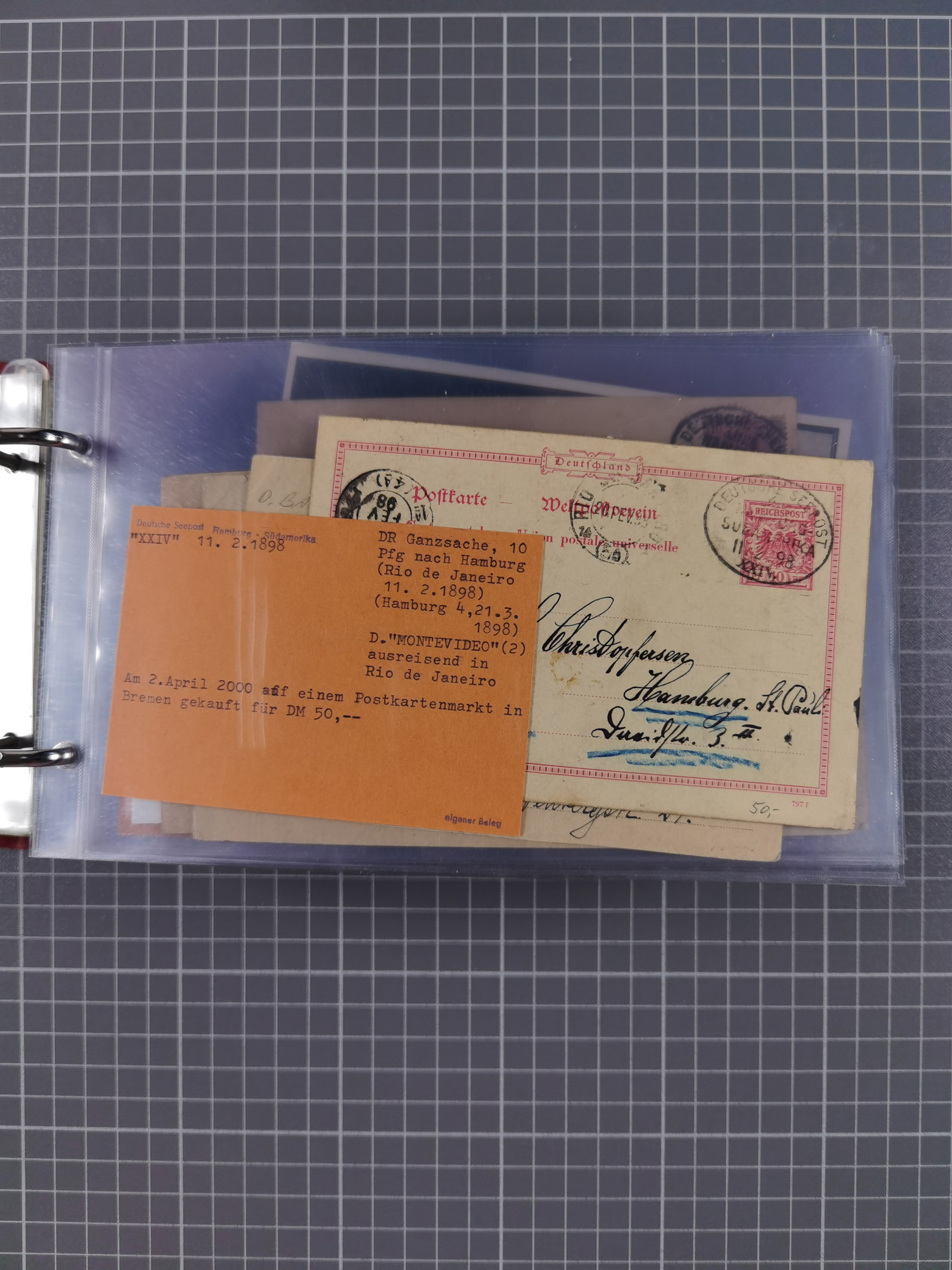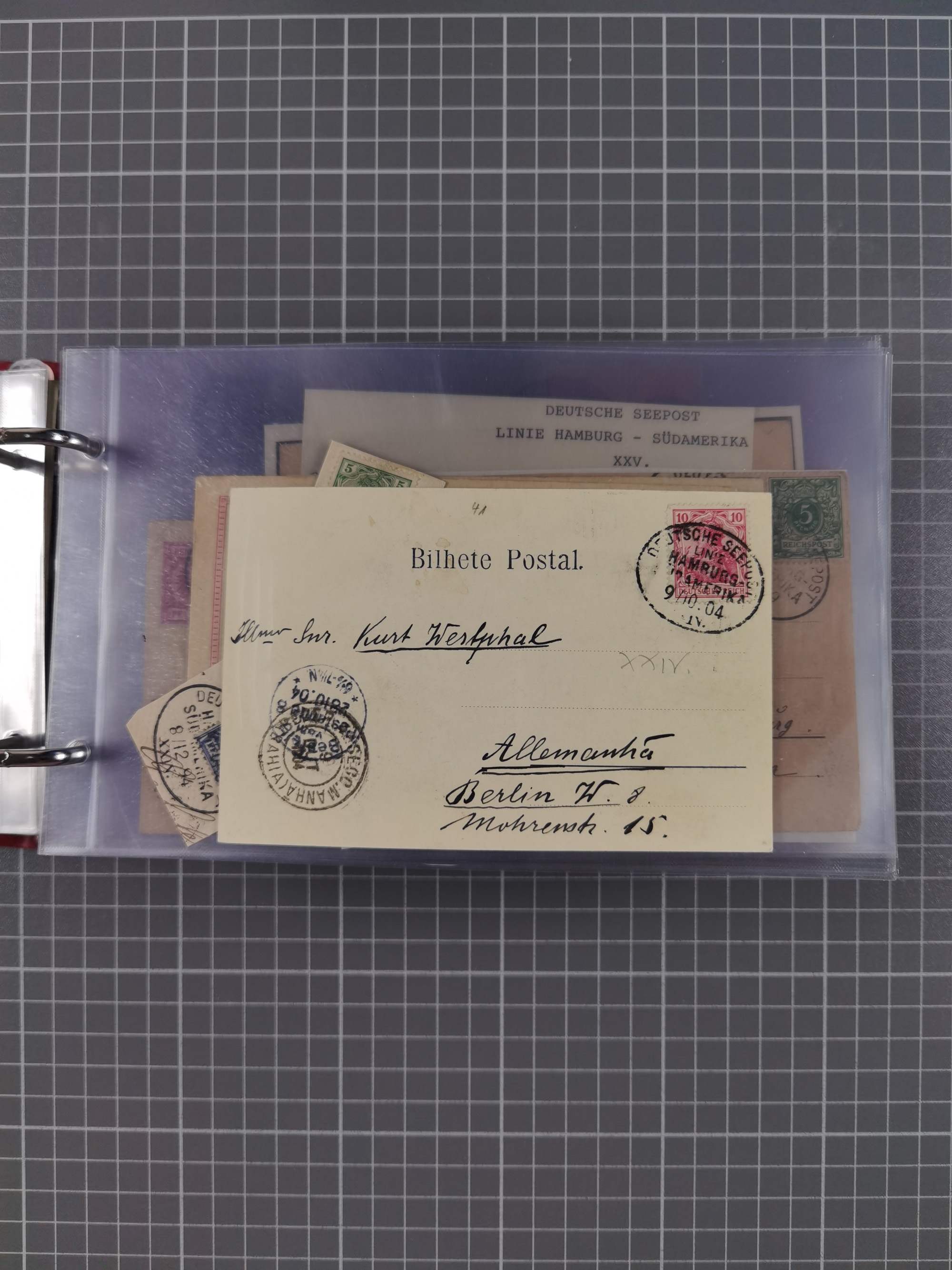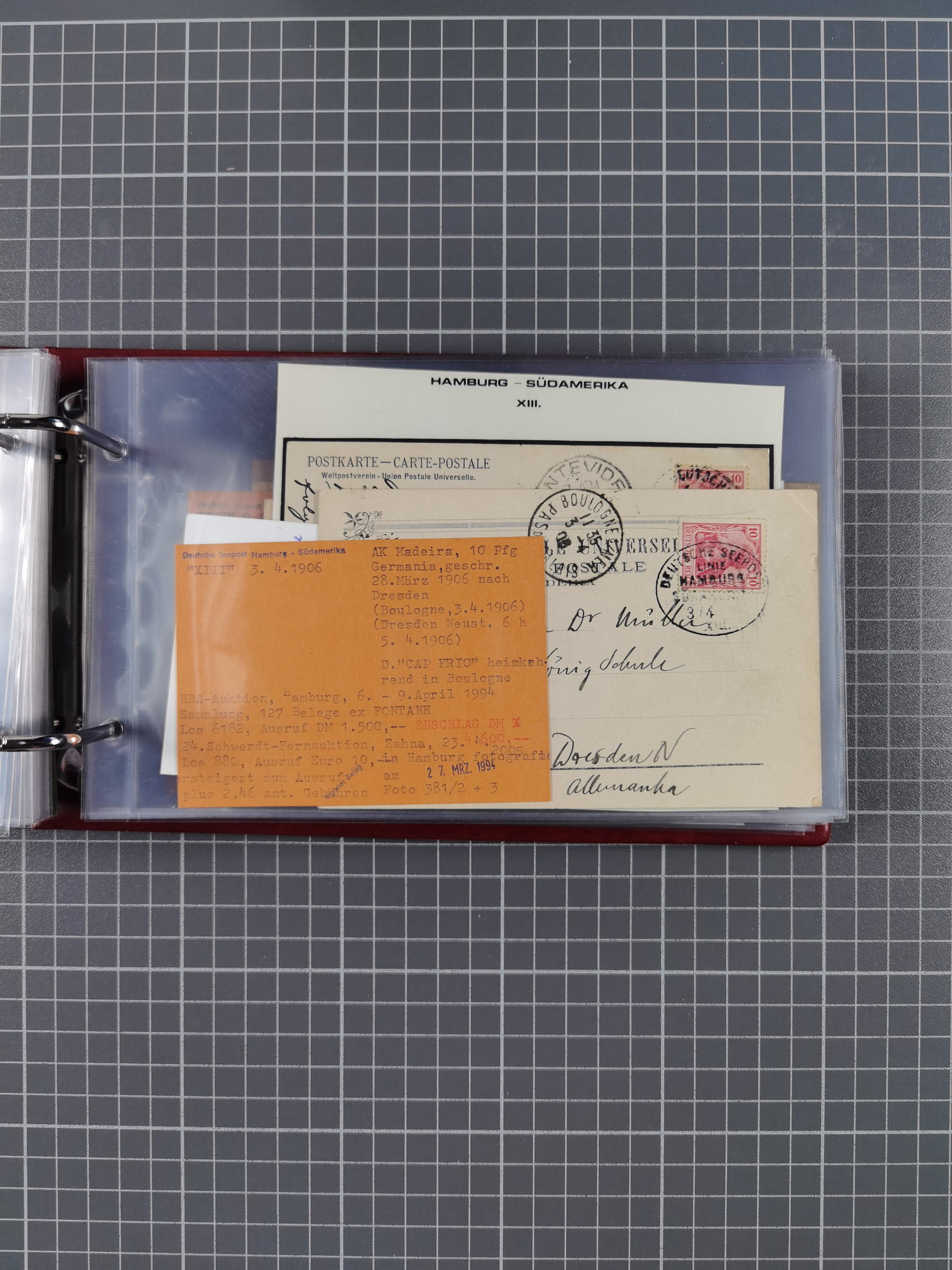 1891/1935 (ca.), umfangreiche Sammlung “DSP LINIE HAMBURG-SÜDAMERIKA I-LV” mit ca. 470 Briefen, Karten und GSK sowie wenigen Briefstücken mit Schwerpunkt vor 1914, dabei einige Belege mit “Paquebot”-Stempeln, Destinationen (u.a. 1895 nach Konstantinopel und GSK 1898 via Rottedam nach Jaluit), Bedarfspost aus der Infla-Zeit, Ozean-Brief 1913 und R-Ozean-Brief 1926. Die Erhaltung ist zum Teil etwas fehlerhaft, dafür fast nur klare Stempel, meist Bedarfspost, ex Steinmeyer