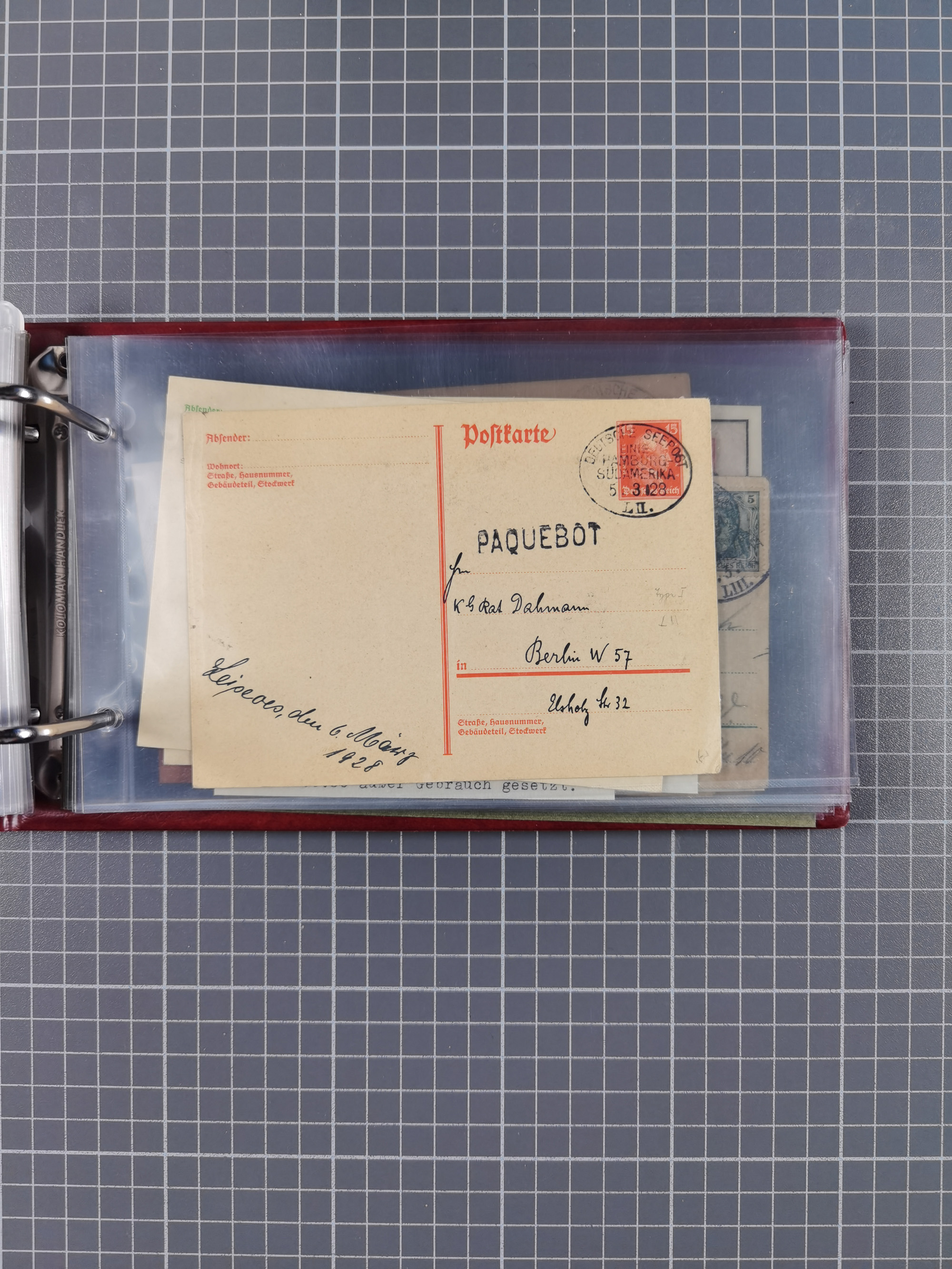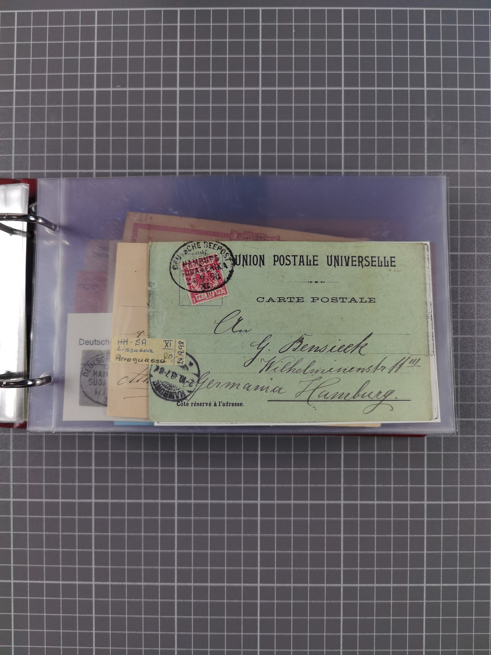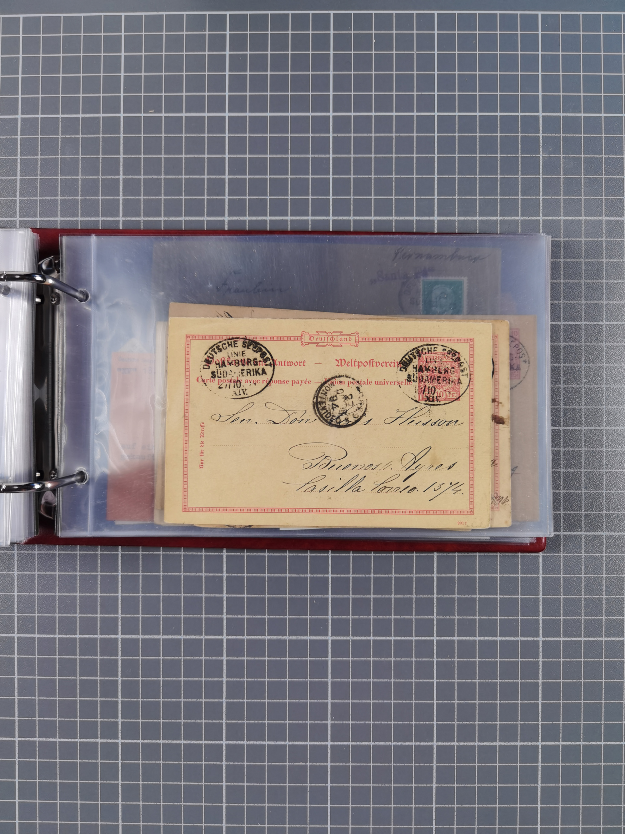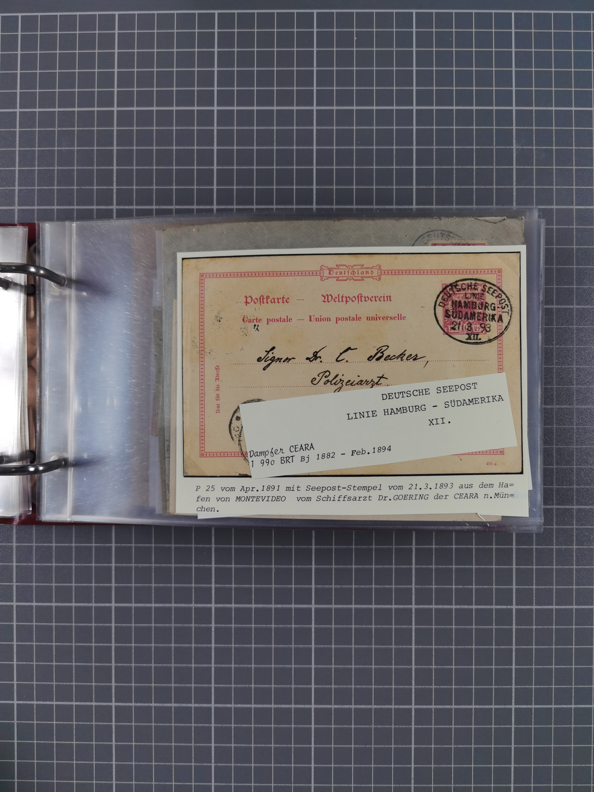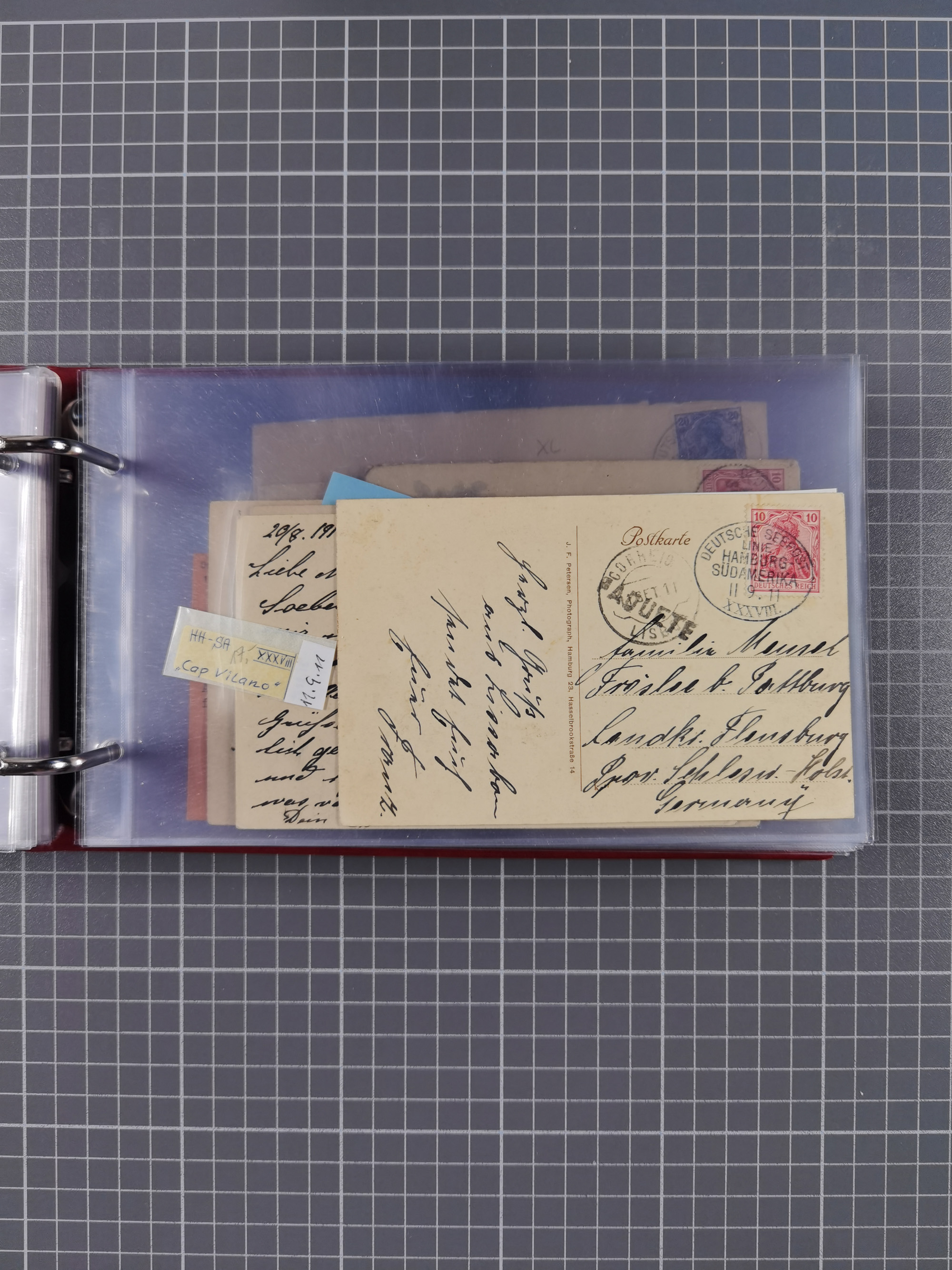 1891/1935 (ca.), umfangreiche Sammlung “DSP LINIE HAMBURG-SÜDAMERIKA I-LV” mit ca. 470 Briefen, Karten und GSK sowie wenigen Briefstücken mit Schwerpunkt vor 1914, dabei einige Belege mit “Paquebot”-Stempeln, Destinationen (u.a. 1895 nach Konstantinopel und GSK 1898 via Rottedam nach Jaluit), Bedarfspost aus der Infla-Zeit, Ozean-Brief 1913 und R-Ozean-Brief 1926. Die Erhaltung ist zum Teil etwas fehlerhaft, dafür fast nur klare Stempel, meist Bedarfspost, ex Steinmeyer