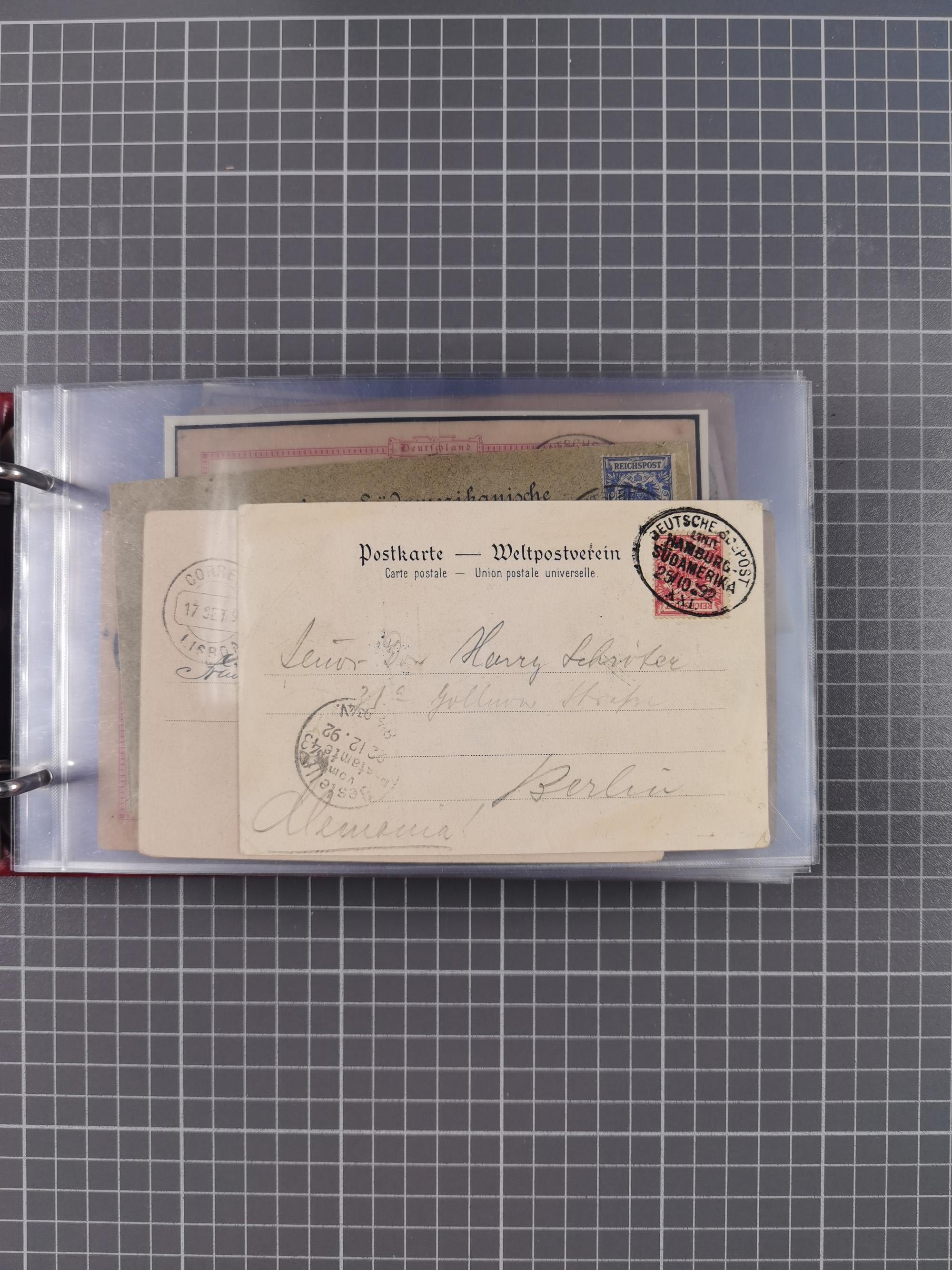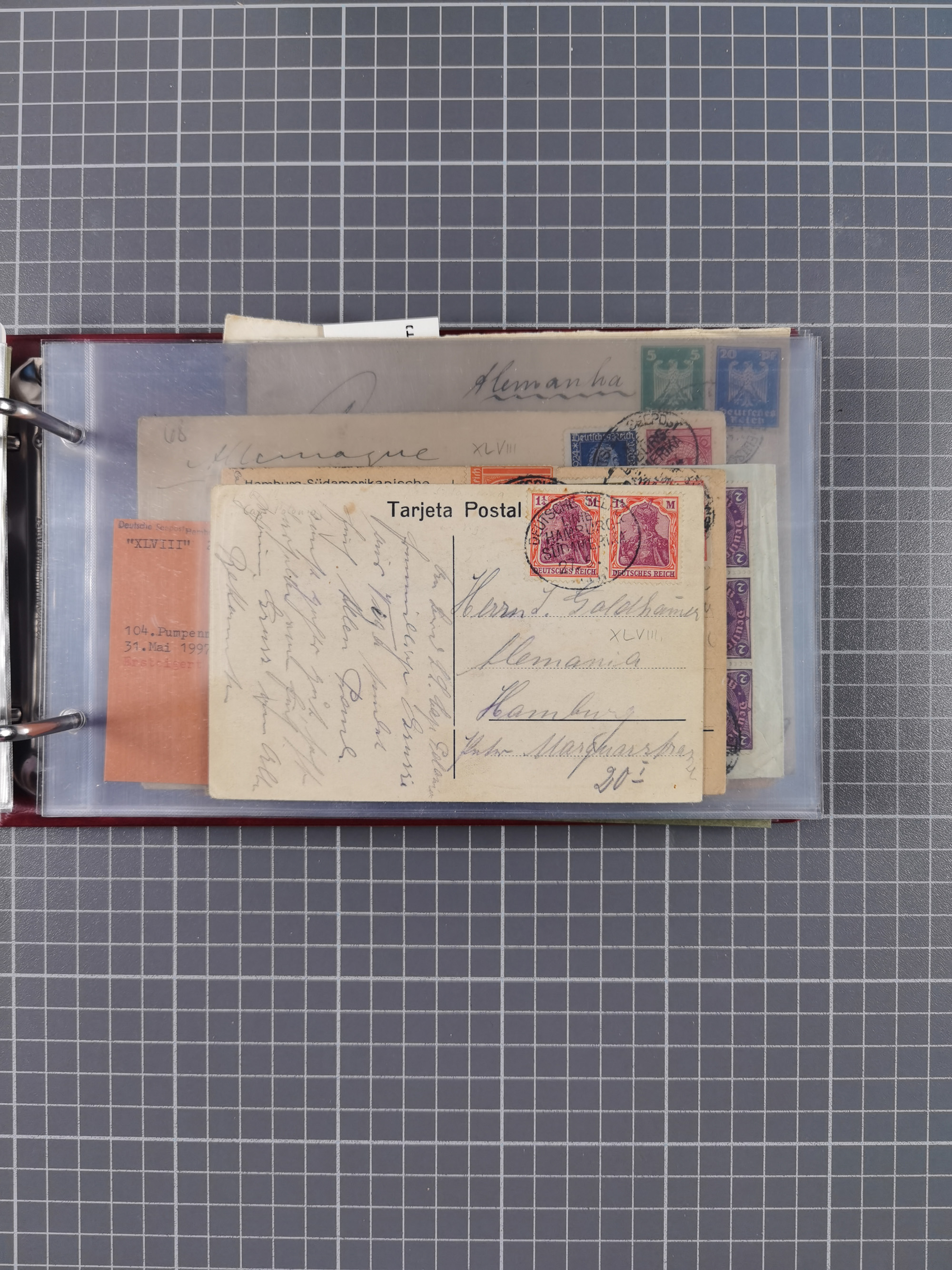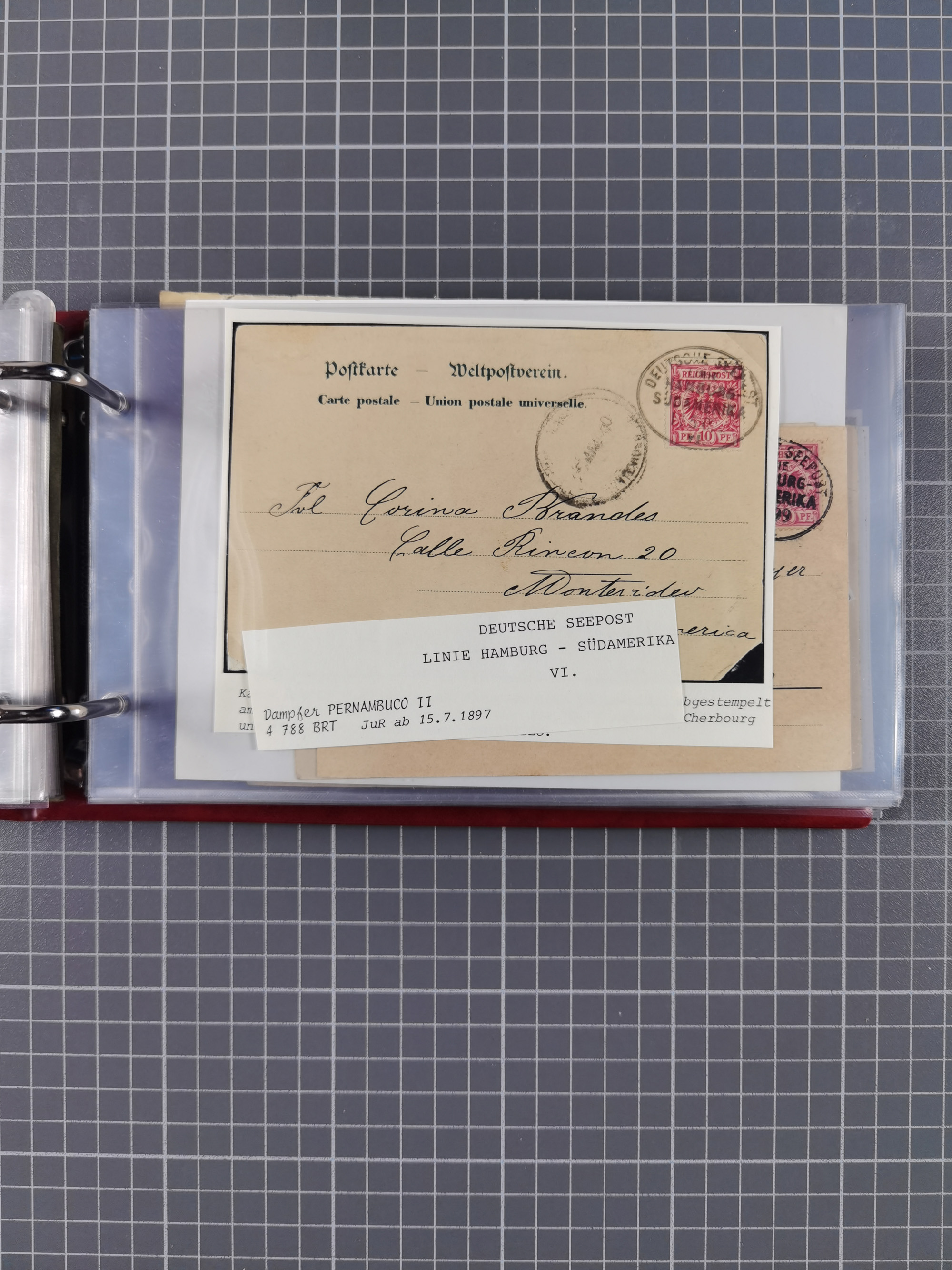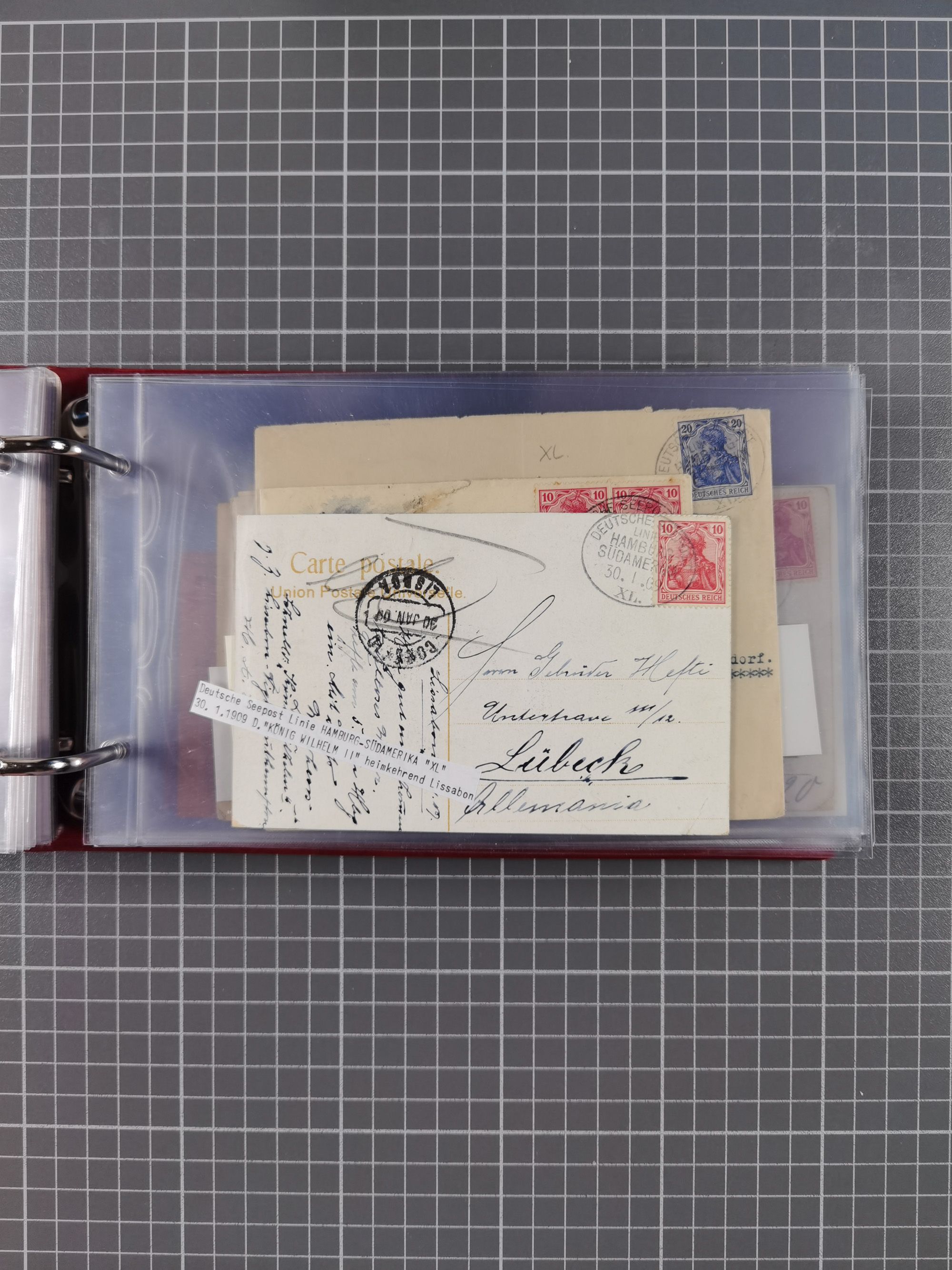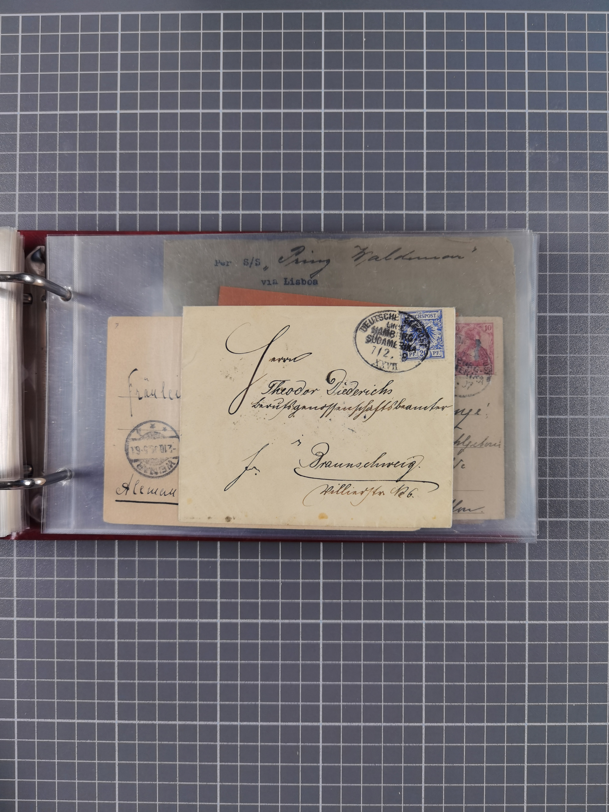 1891/1935 (ca.), umfangreiche Sammlung “DSP LINIE HAMBURG-SÜDAMERIKA I-LV” mit ca. 470 Briefen, Karten und GSK sowie wenigen Briefstücken mit Schwerpunkt vor 1914, dabei einige Belege mit “Paquebot”-Stempeln, Destinationen (u.a. 1895 nach Konstantinopel und GSK 1898 via Rottedam nach Jaluit), Bedarfspost aus der Infla-Zeit, Ozean-Brief 1913 und R-Ozean-Brief 1926. Die Erhaltung ist zum Teil etwas fehlerhaft, dafür fast nur klare Stempel, meist Bedarfspost, ex Steinmeyer