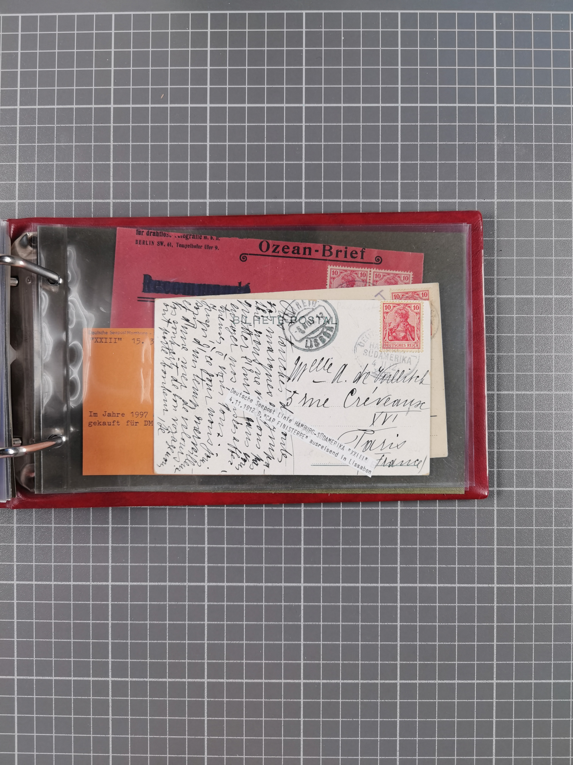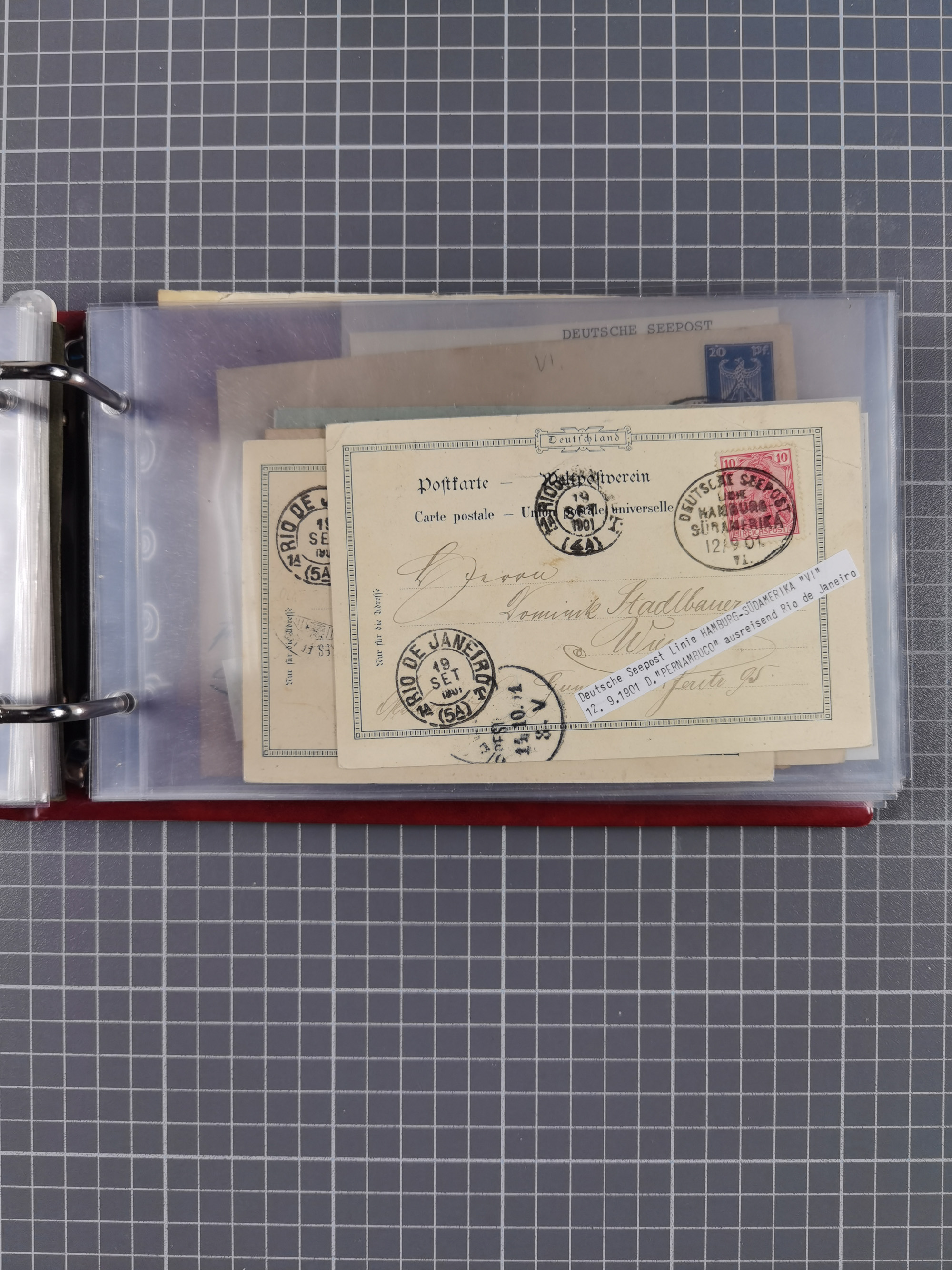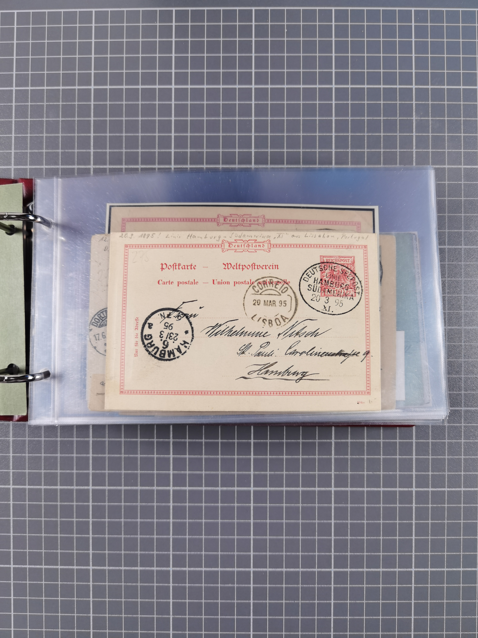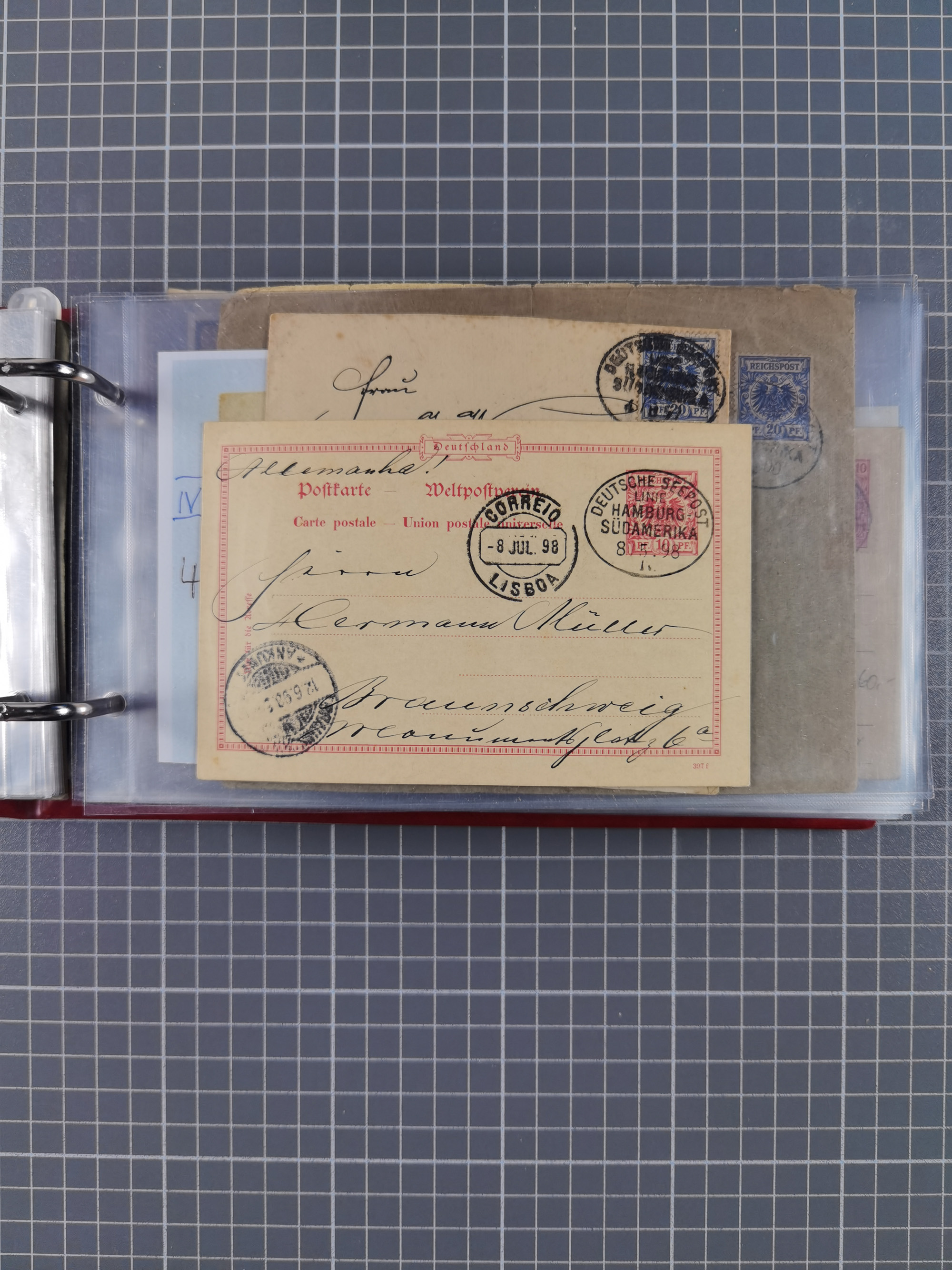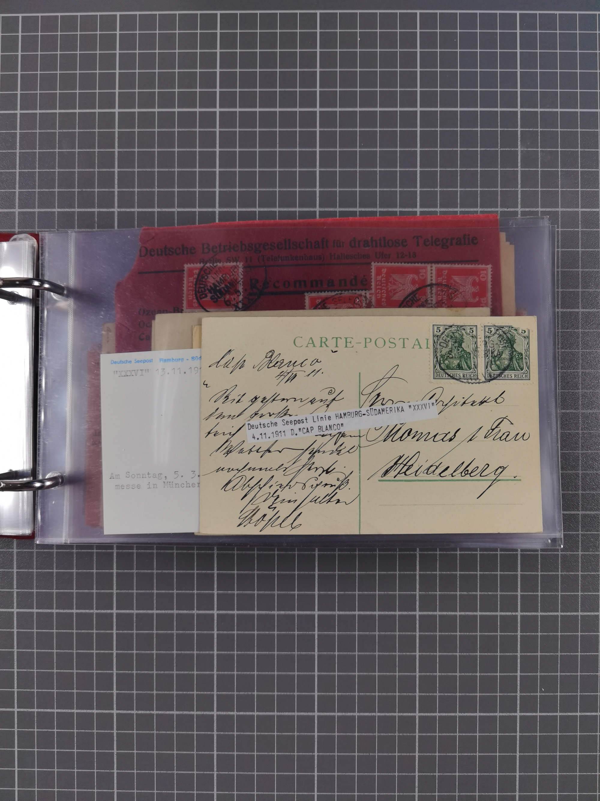 1891/1935 (ca.), umfangreiche Sammlung “DSP LINIE HAMBURG-SÜDAMERIKA I-LV” mit ca. 470 Briefen, Karten und GSK sowie wenigen Briefstücken mit Schwerpunkt vor 1914, dabei einige Belege mit “Paquebot”-Stempeln, Destinationen (u.a. 1895 nach Konstantinopel und GSK 1898 via Rottedam nach Jaluit), Bedarfspost aus der Infla-Zeit, Ozean-Brief 1913 und R-Ozean-Brief 1926. Die Erhaltung ist zum Teil etwas fehlerhaft, dafür fast nur klare Stempel, meist Bedarfspost, ex Steinmeyer