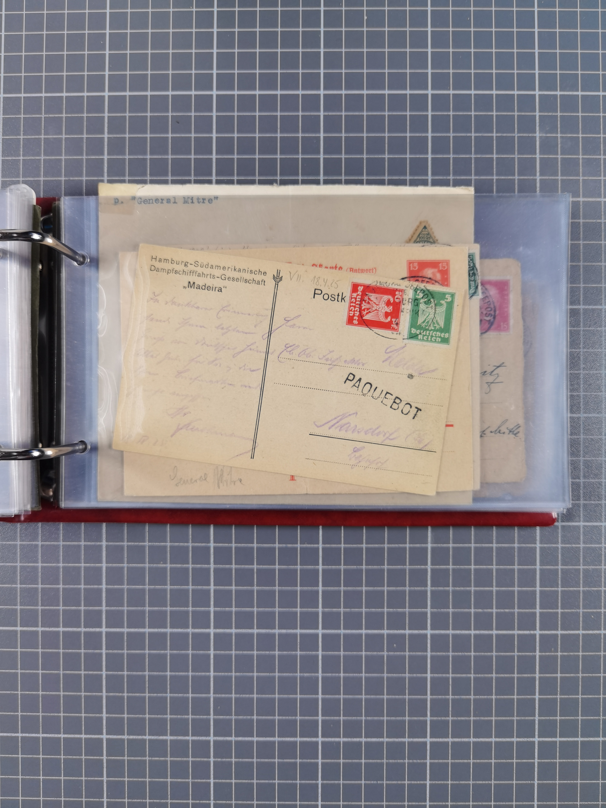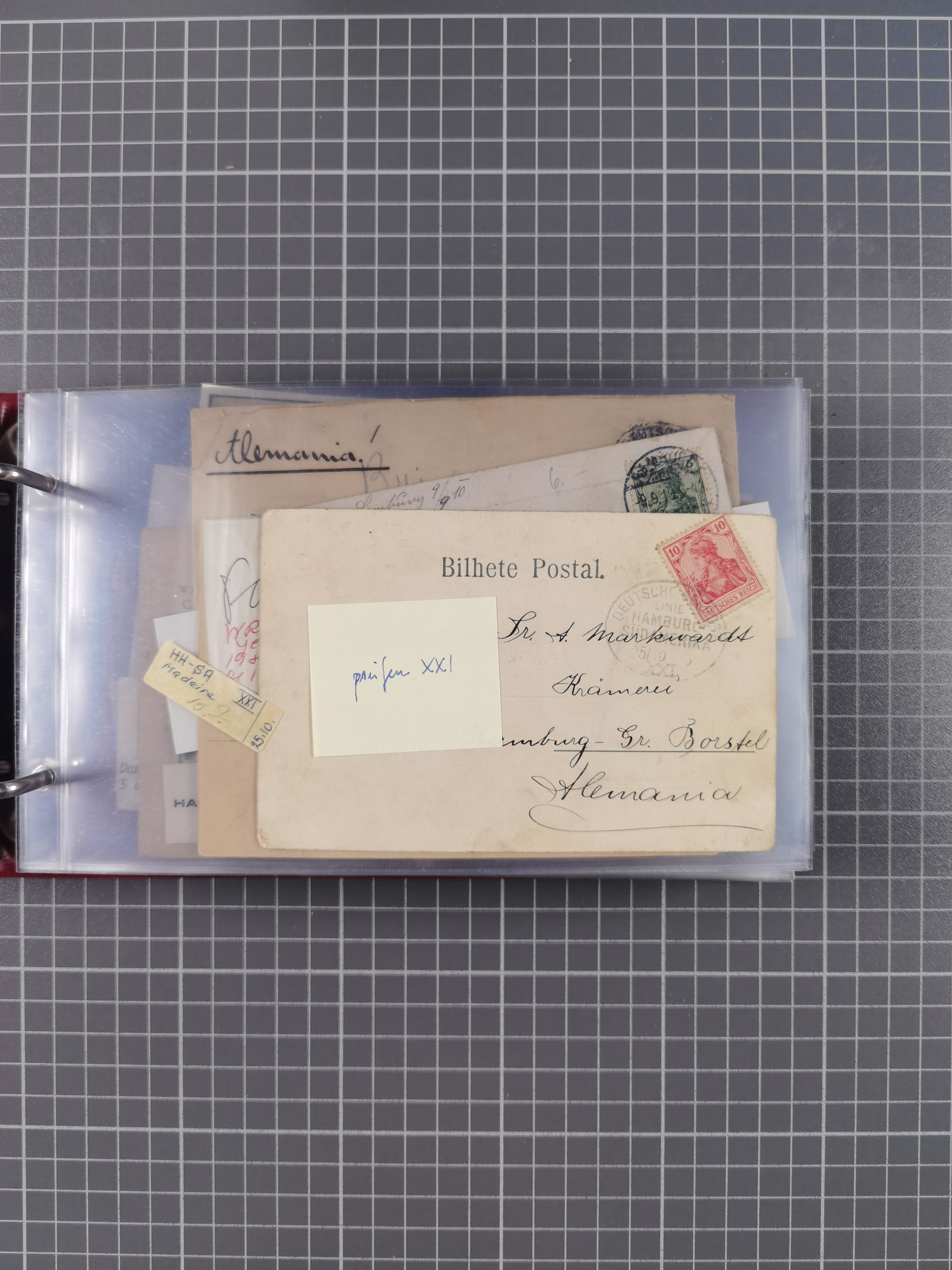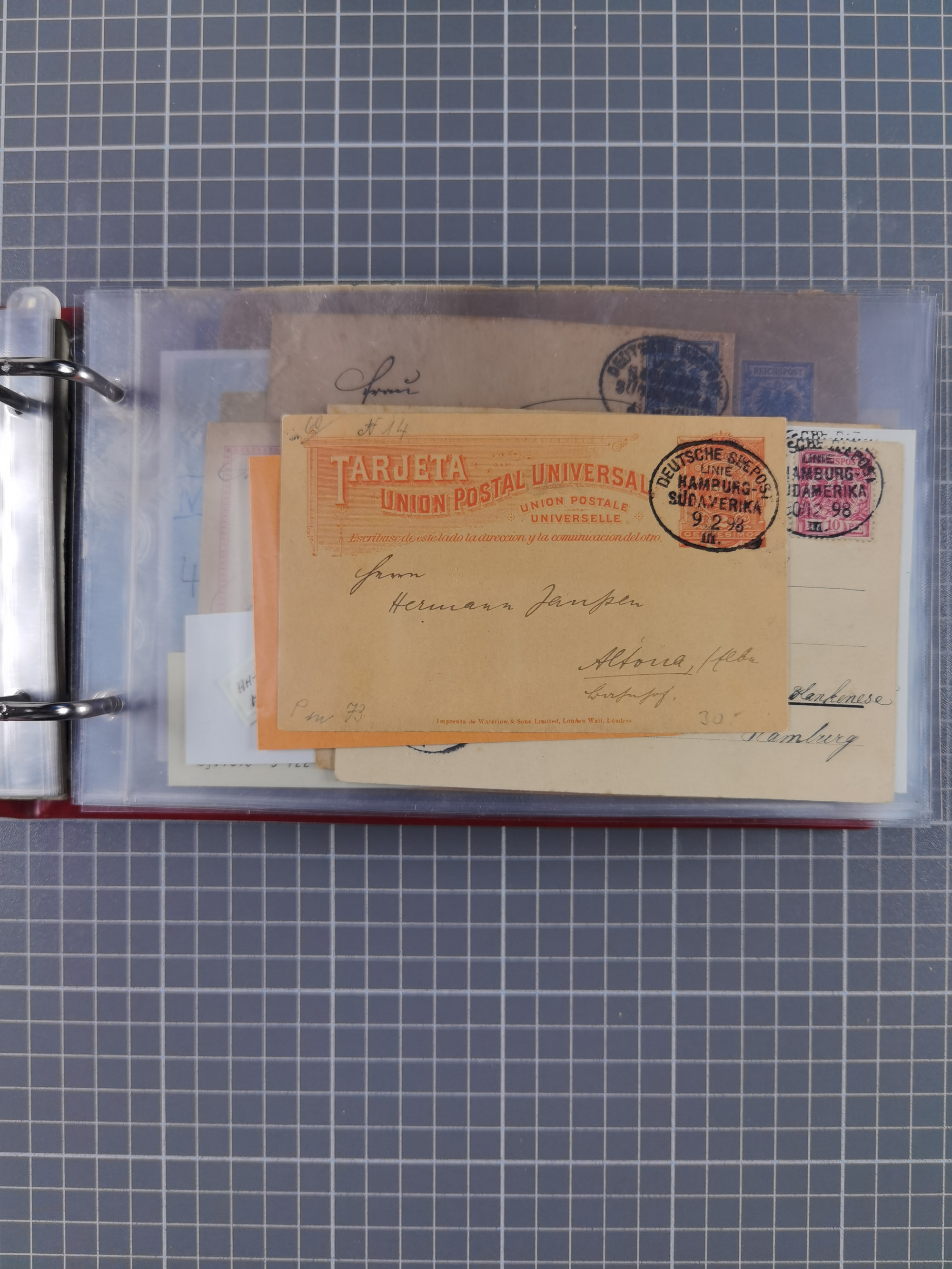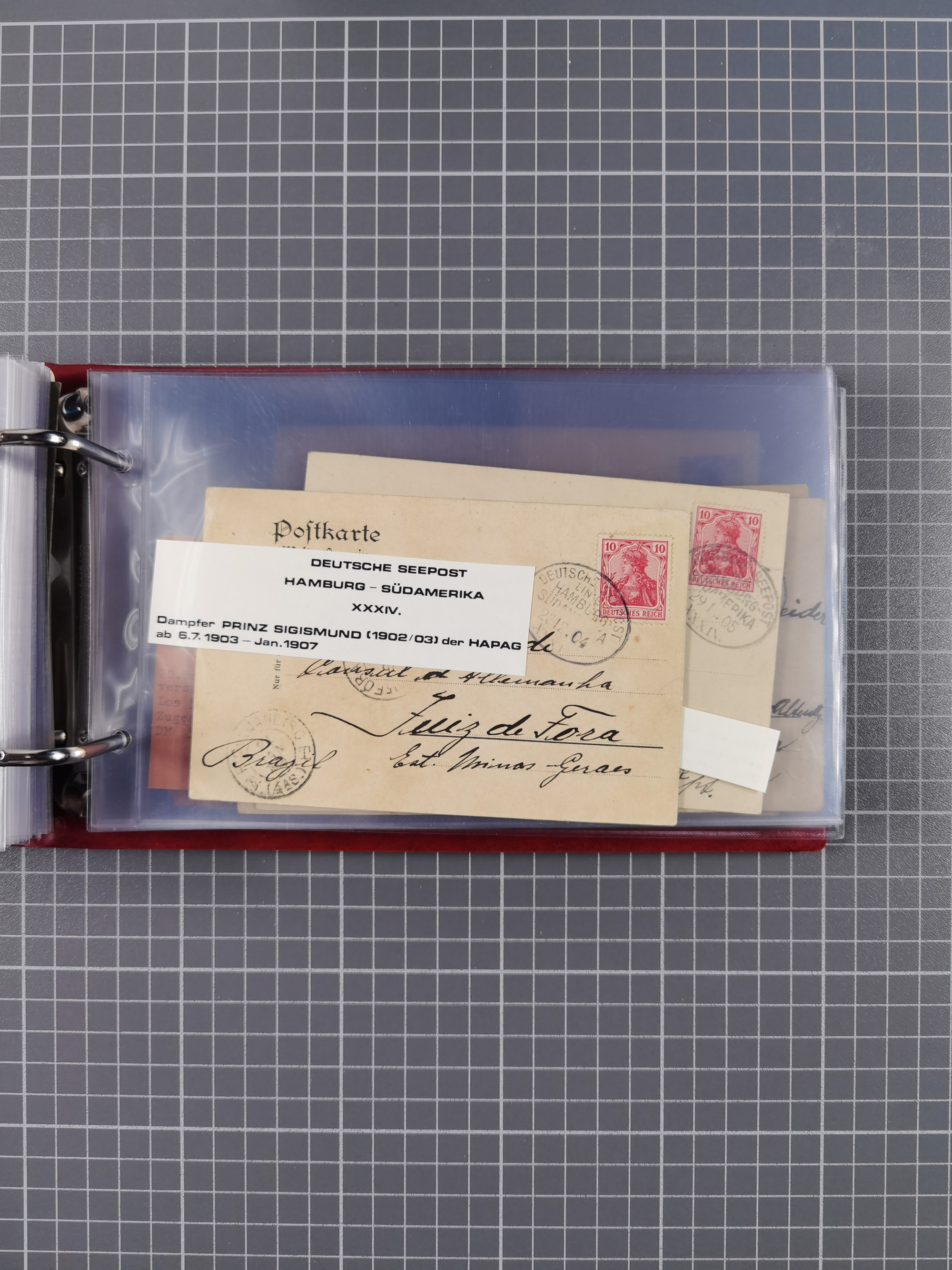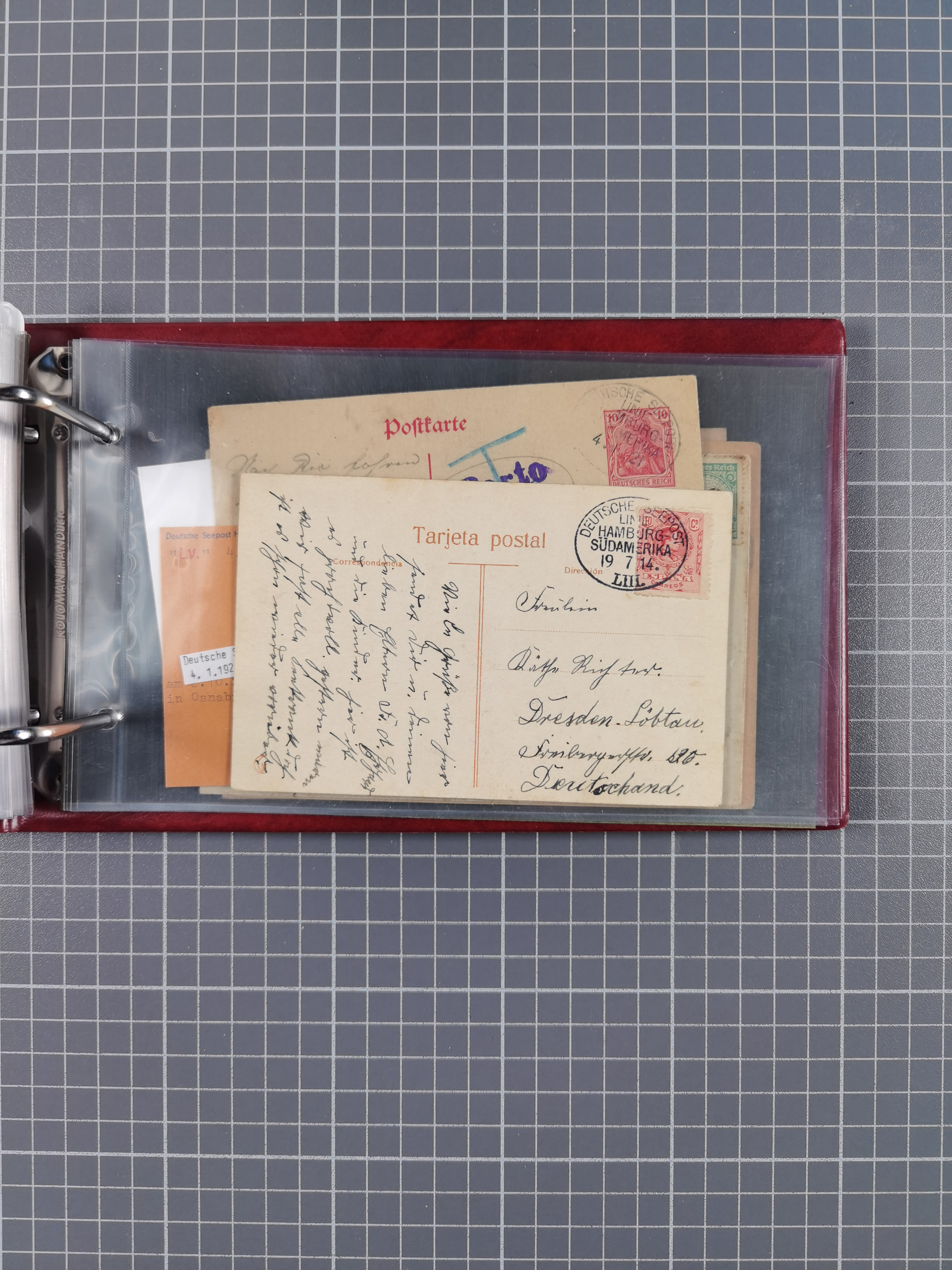 1891/1935 (ca.), umfangreiche Sammlung “DSP LINIE HAMBURG-SÜDAMERIKA I-LV” mit ca. 470 Briefen, Karten und GSK sowie wenigen Briefstücken mit Schwerpunkt vor 1914, dabei einige Belege mit “Paquebot”-Stempeln, Destinationen (u.a. 1895 nach Konstantinopel und GSK 1898 via Rottedam nach Jaluit), Bedarfspost aus der Infla-Zeit, Ozean-Brief 1913 und R-Ozean-Brief 1926. Die Erhaltung ist zum Teil etwas fehlerhaft, dafür fast nur klare Stempel, meist Bedarfspost, ex Steinmeyer
