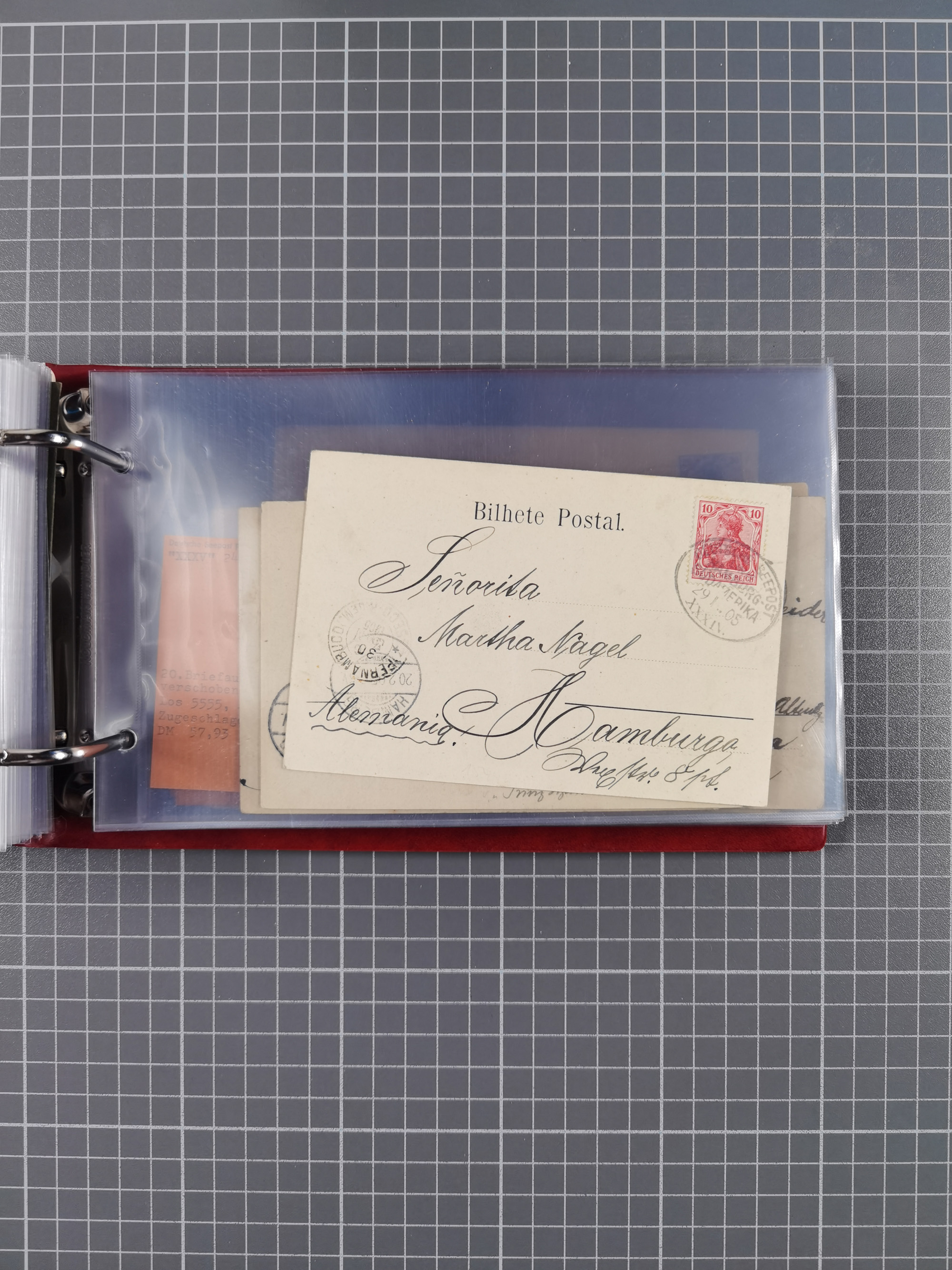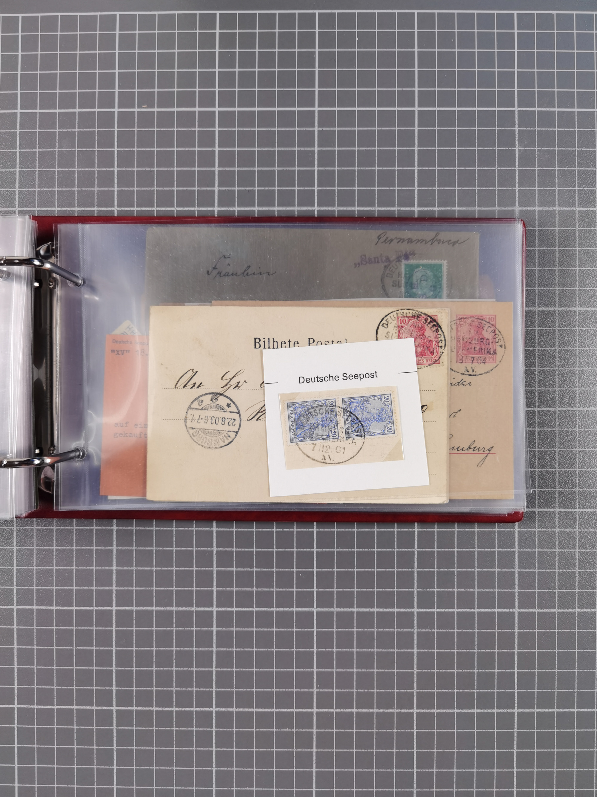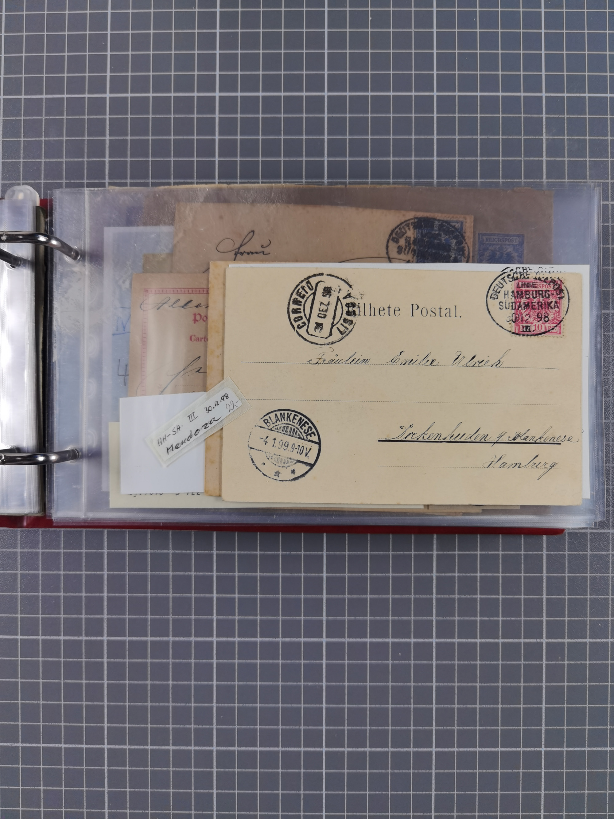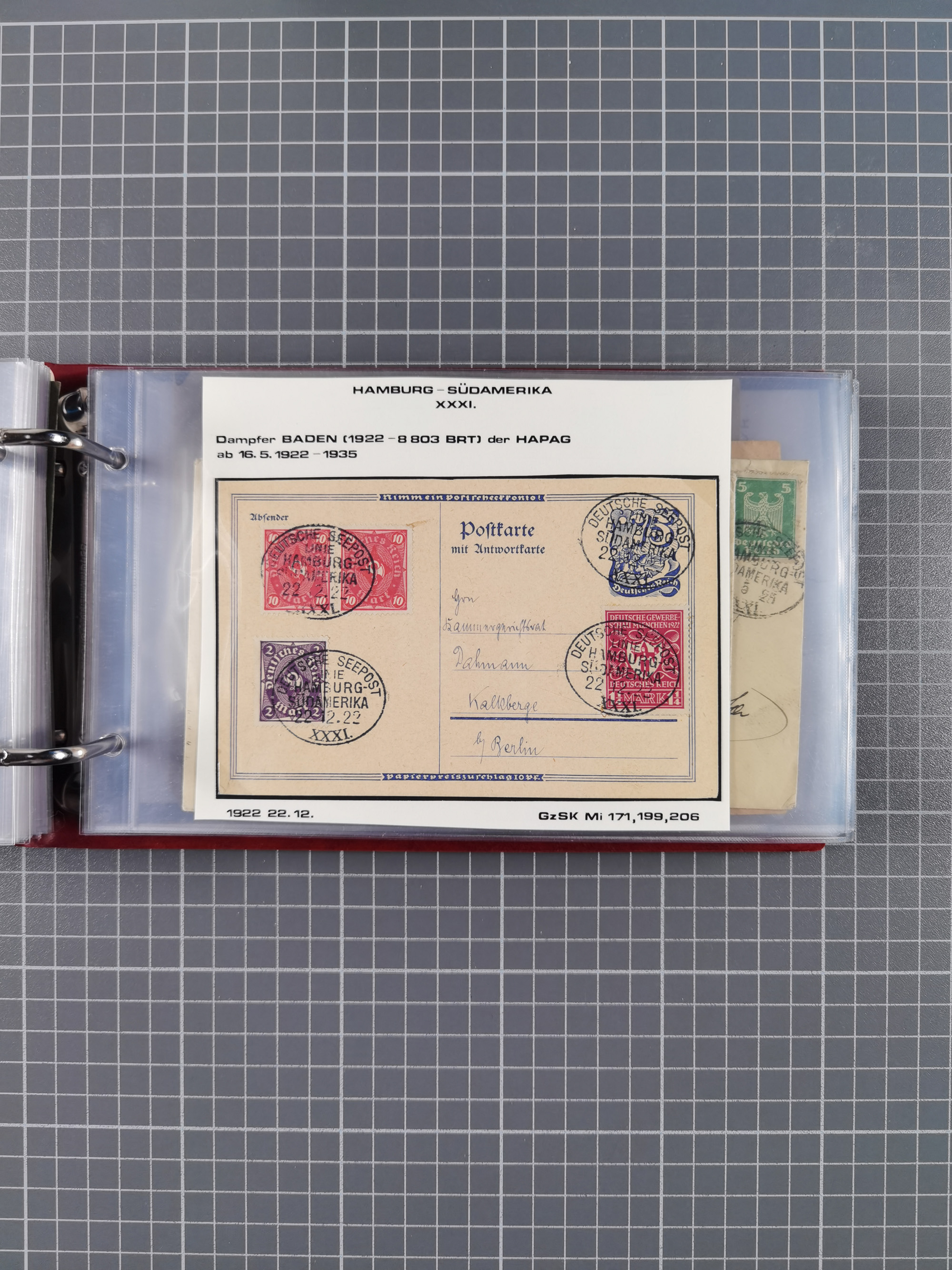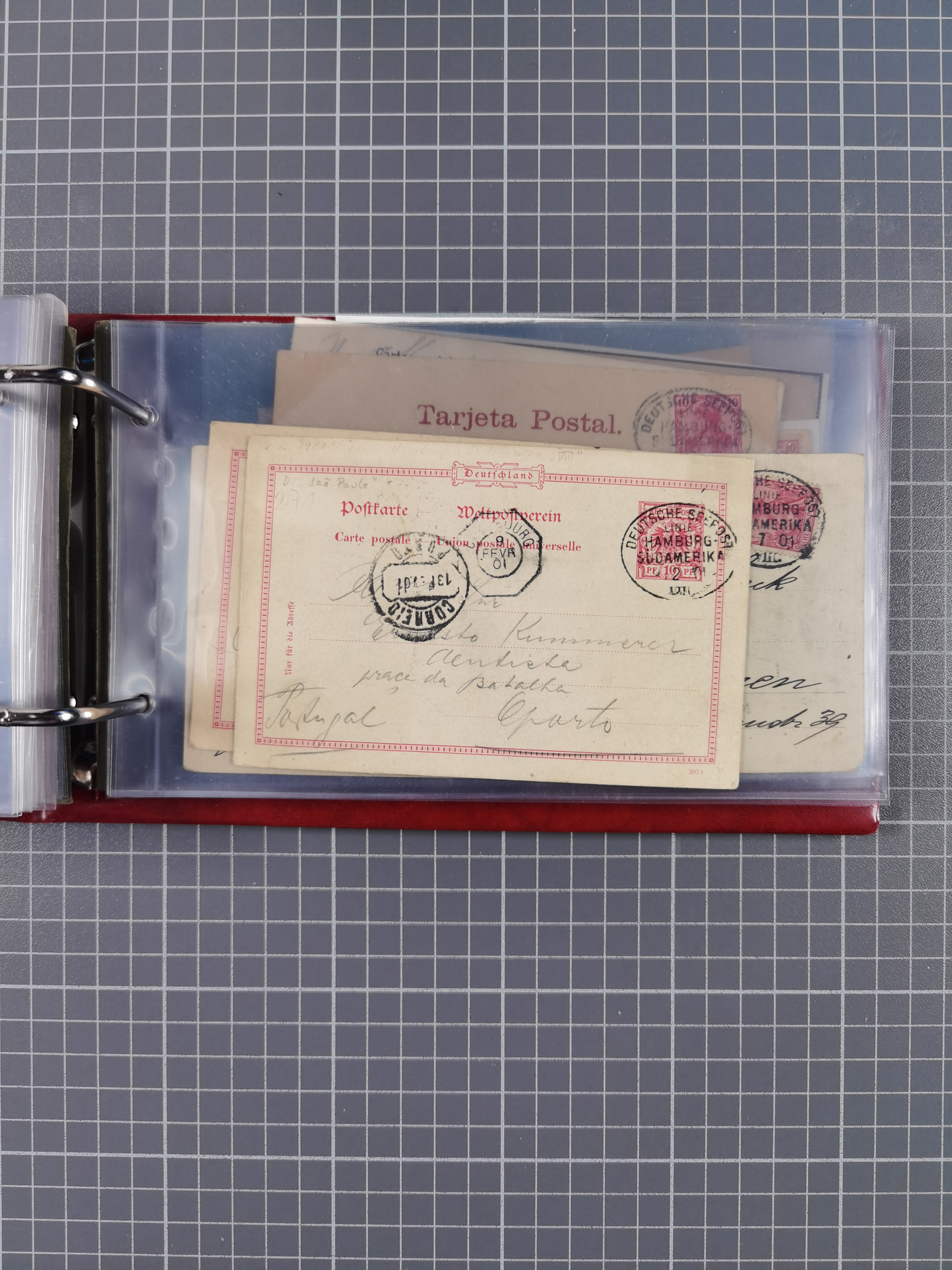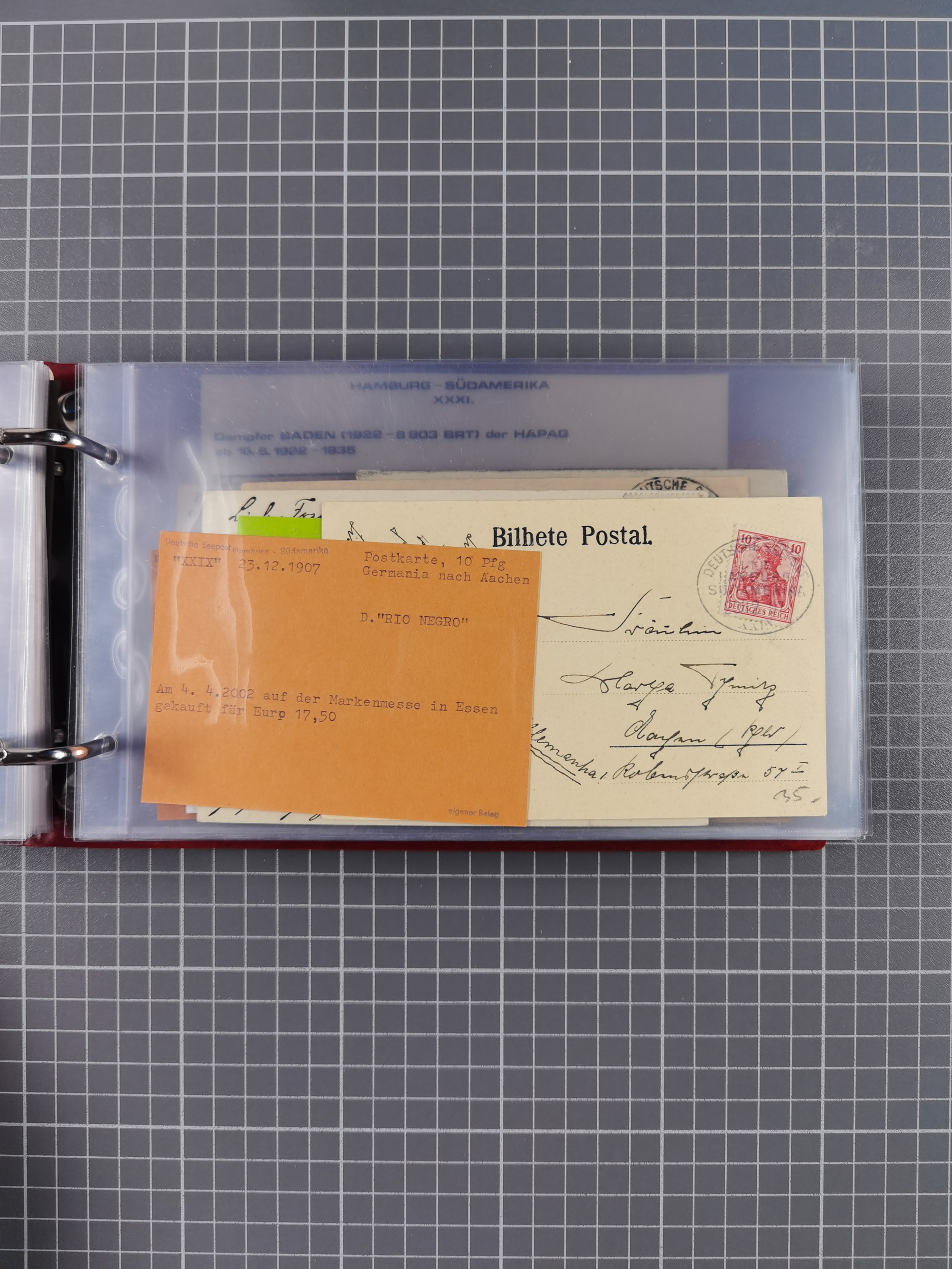 1891/1935 (ca.), umfangreiche Sammlung “DSP LINIE HAMBURG-SÜDAMERIKA I-LV” mit ca. 470 Briefen, Karten und GSK sowie wenigen Briefstücken mit Schwerpunkt vor 1914, dabei einige Belege mit “Paquebot”-Stempeln, Destinationen (u.a. 1895 nach Konstantinopel und GSK 1898 via Rottedam nach Jaluit), Bedarfspost aus der Infla-Zeit, Ozean-Brief 1913 und R-Ozean-Brief 1926. Die Erhaltung ist zum Teil etwas fehlerhaft, dafür fast nur klare Stempel, meist Bedarfspost, ex Steinmeyer