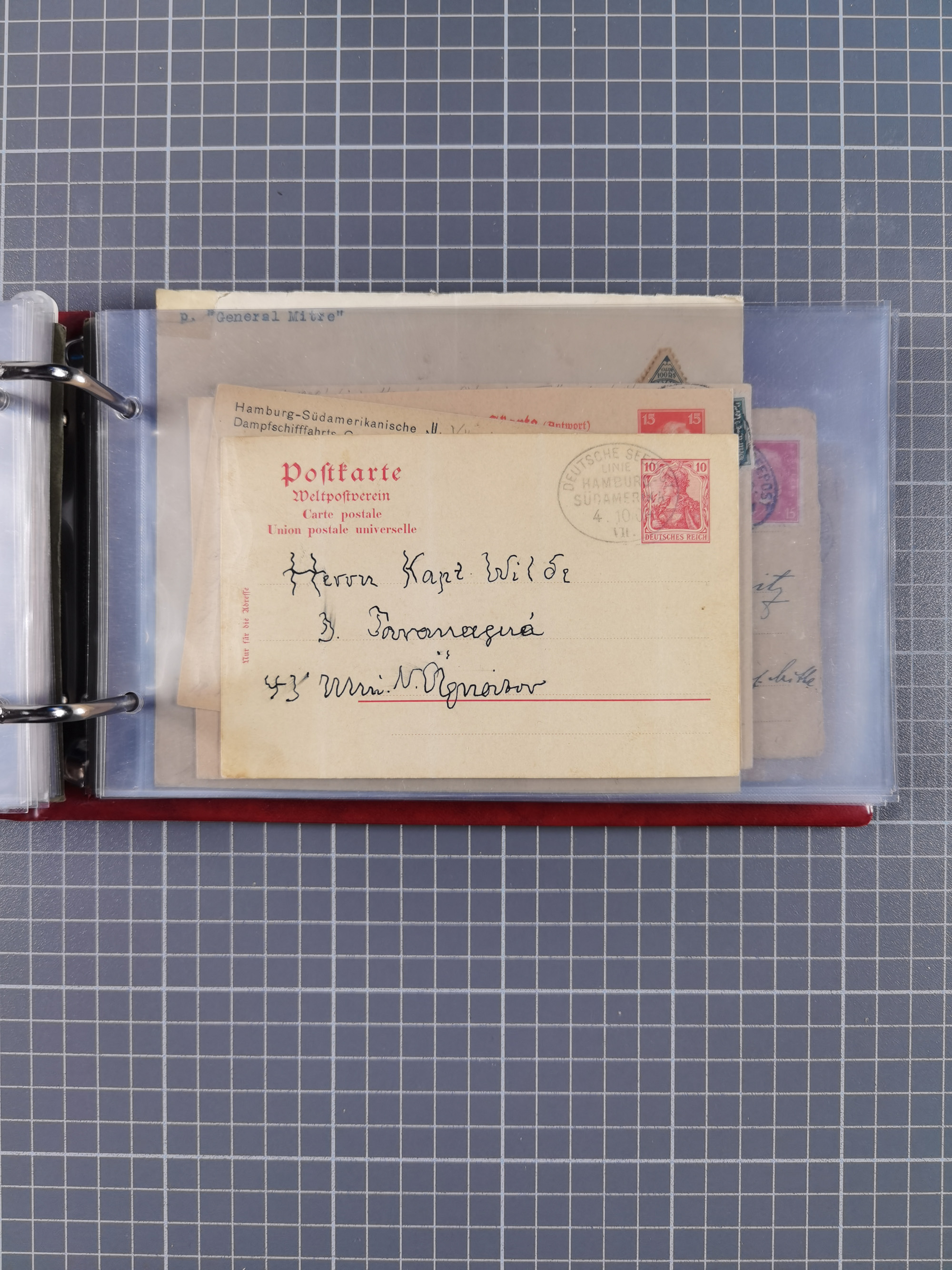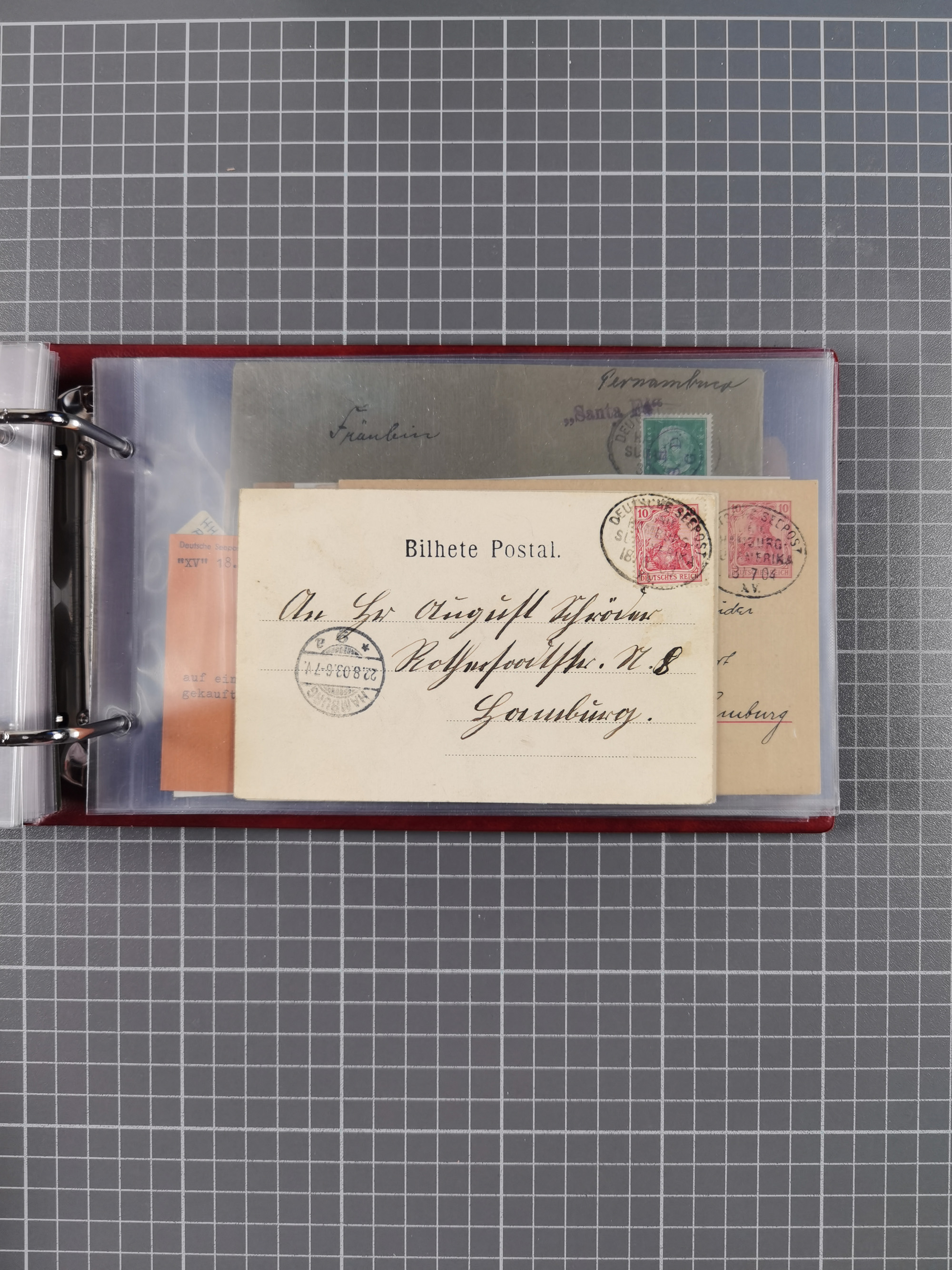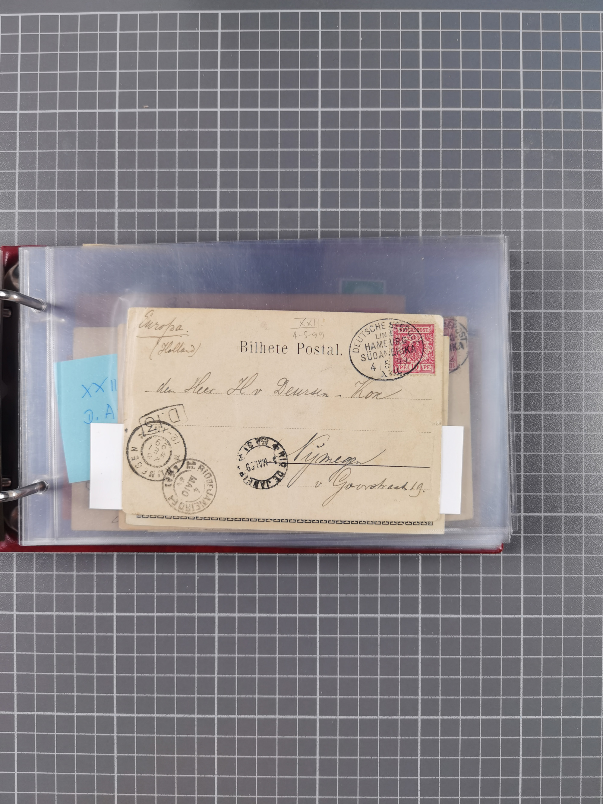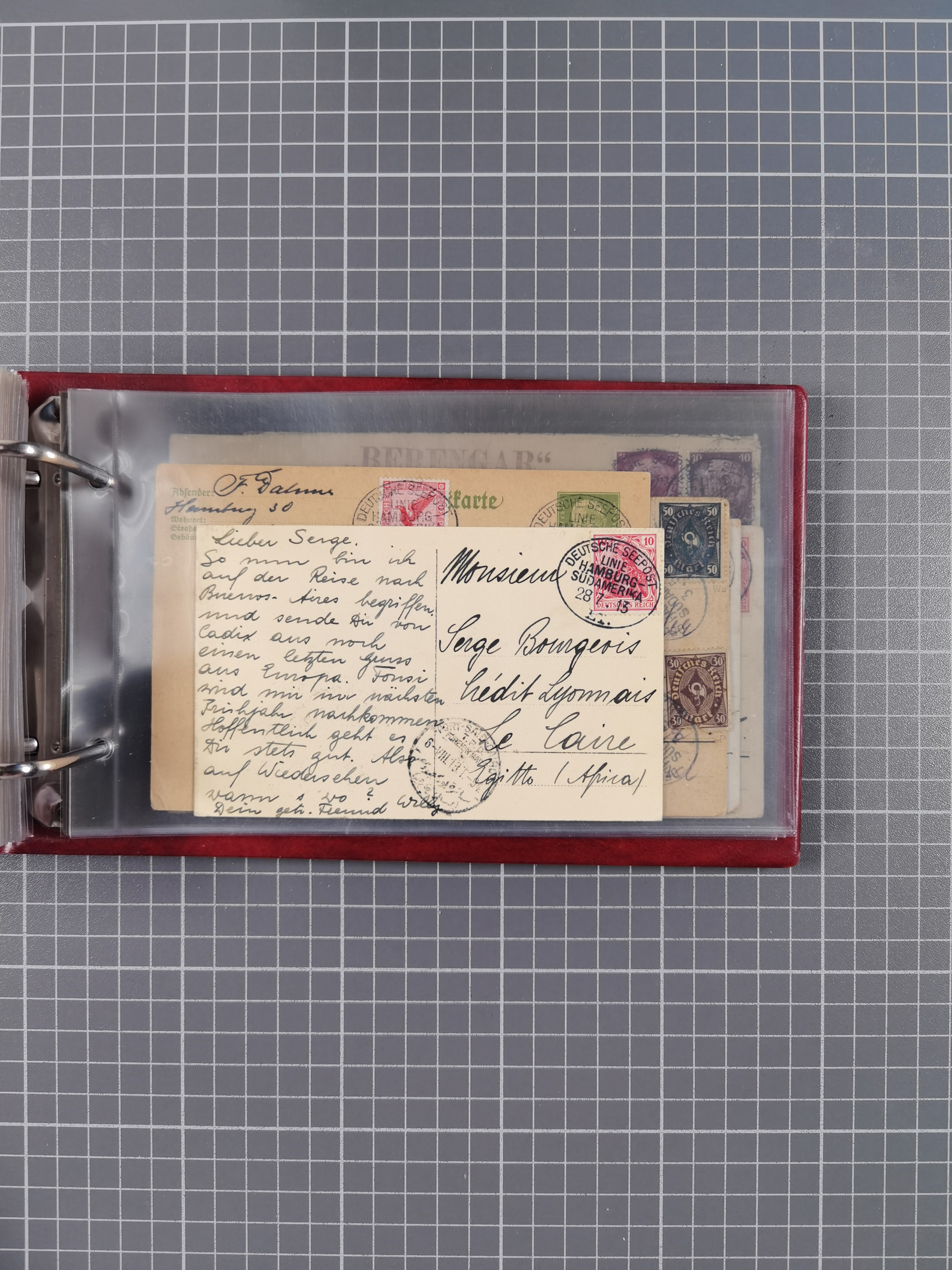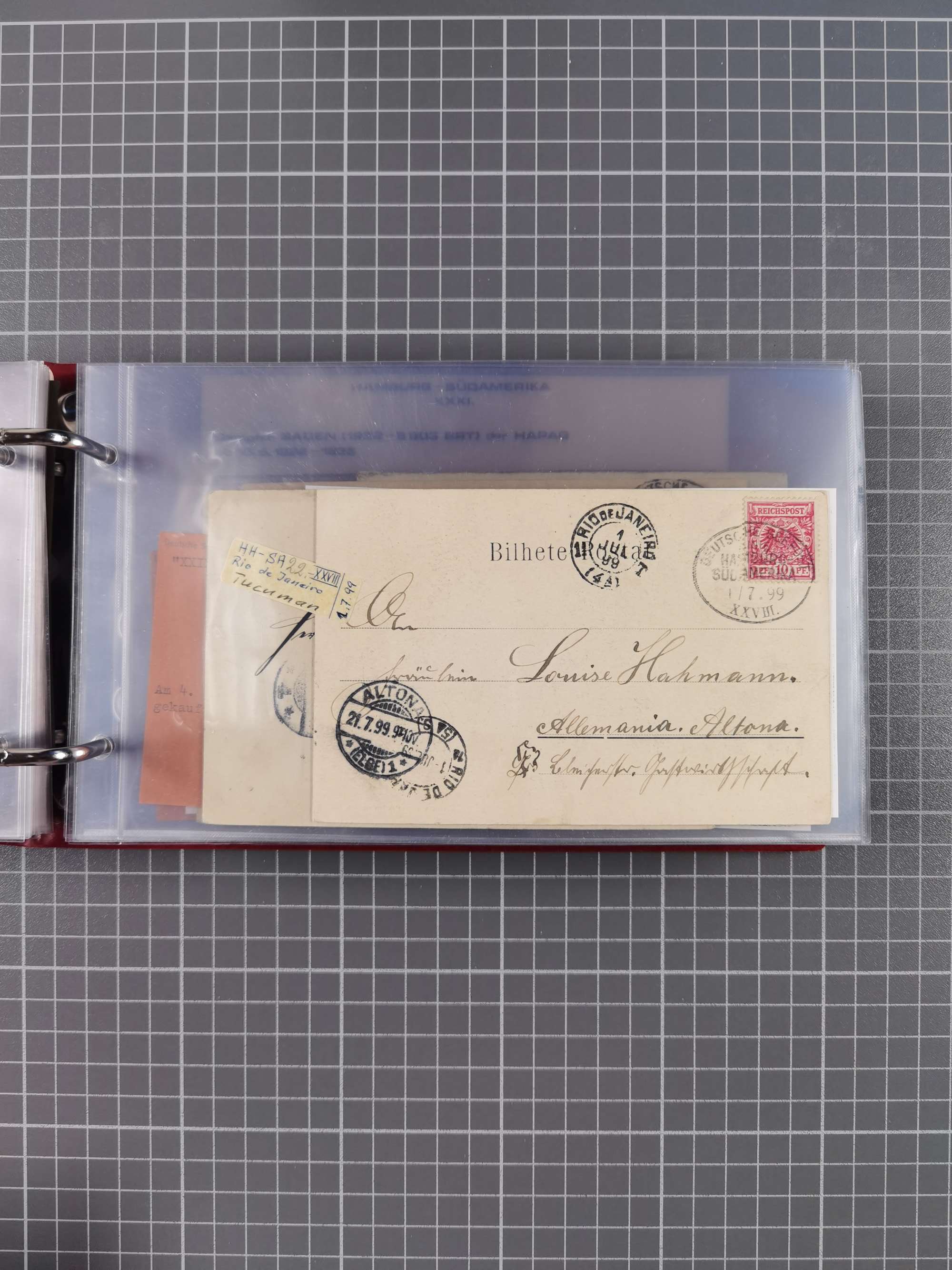 1891/1935 (ca.), umfangreiche Sammlung “DSP LINIE HAMBURG-SÜDAMERIKA I-LV” mit ca. 470 Briefen, Karten und GSK sowie wenigen Briefstücken mit Schwerpunkt vor 1914, dabei einige Belege mit “Paquebot”-Stempeln, Destinationen (u.a. 1895 nach Konstantinopel und GSK 1898 via Rottedam nach Jaluit), Bedarfspost aus der Infla-Zeit, Ozean-Brief 1913 und R-Ozean-Brief 1926. Die Erhaltung ist zum Teil etwas fehlerhaft, dafür fast nur klare Stempel, meist Bedarfspost, ex Steinmeyer