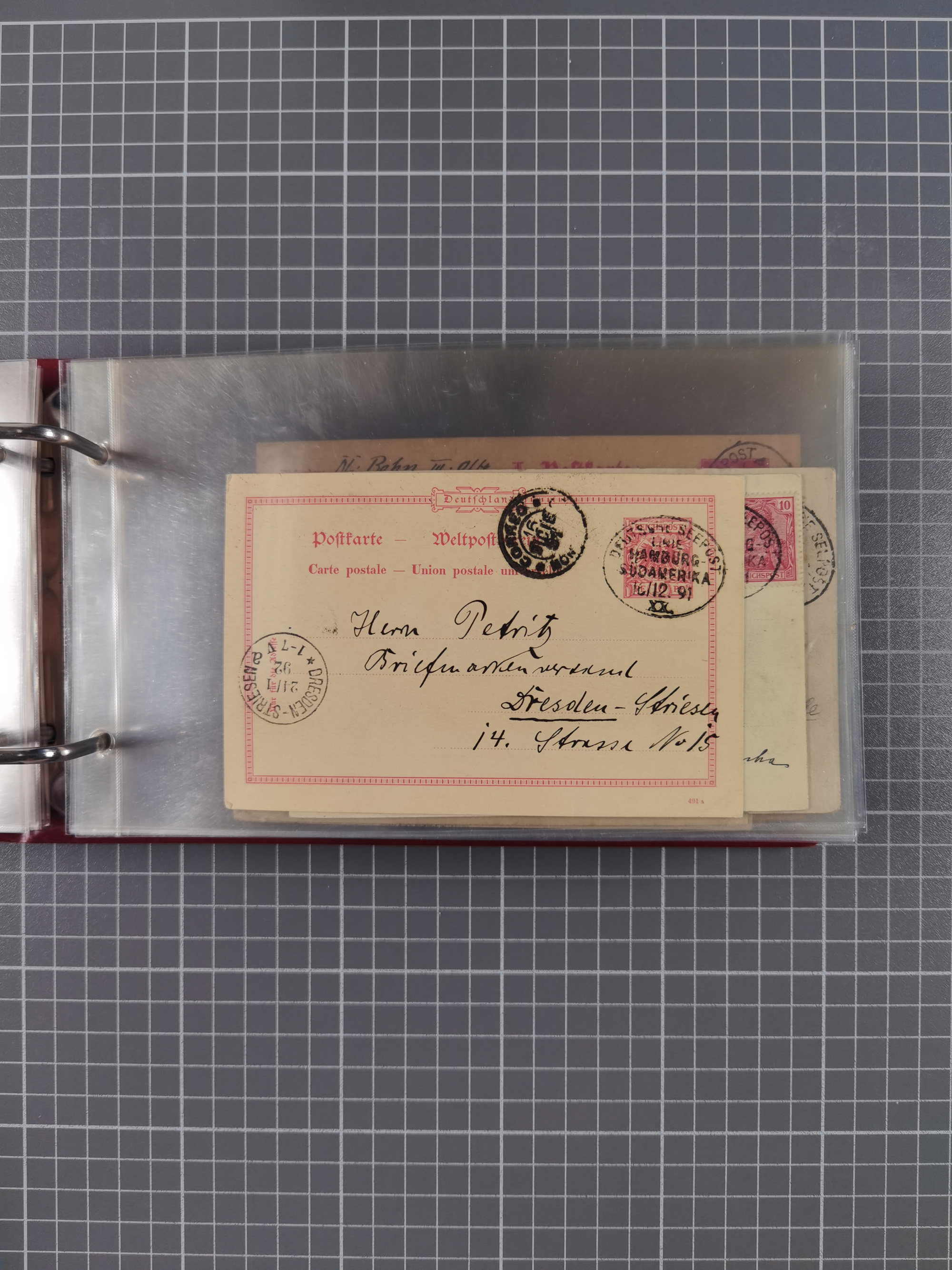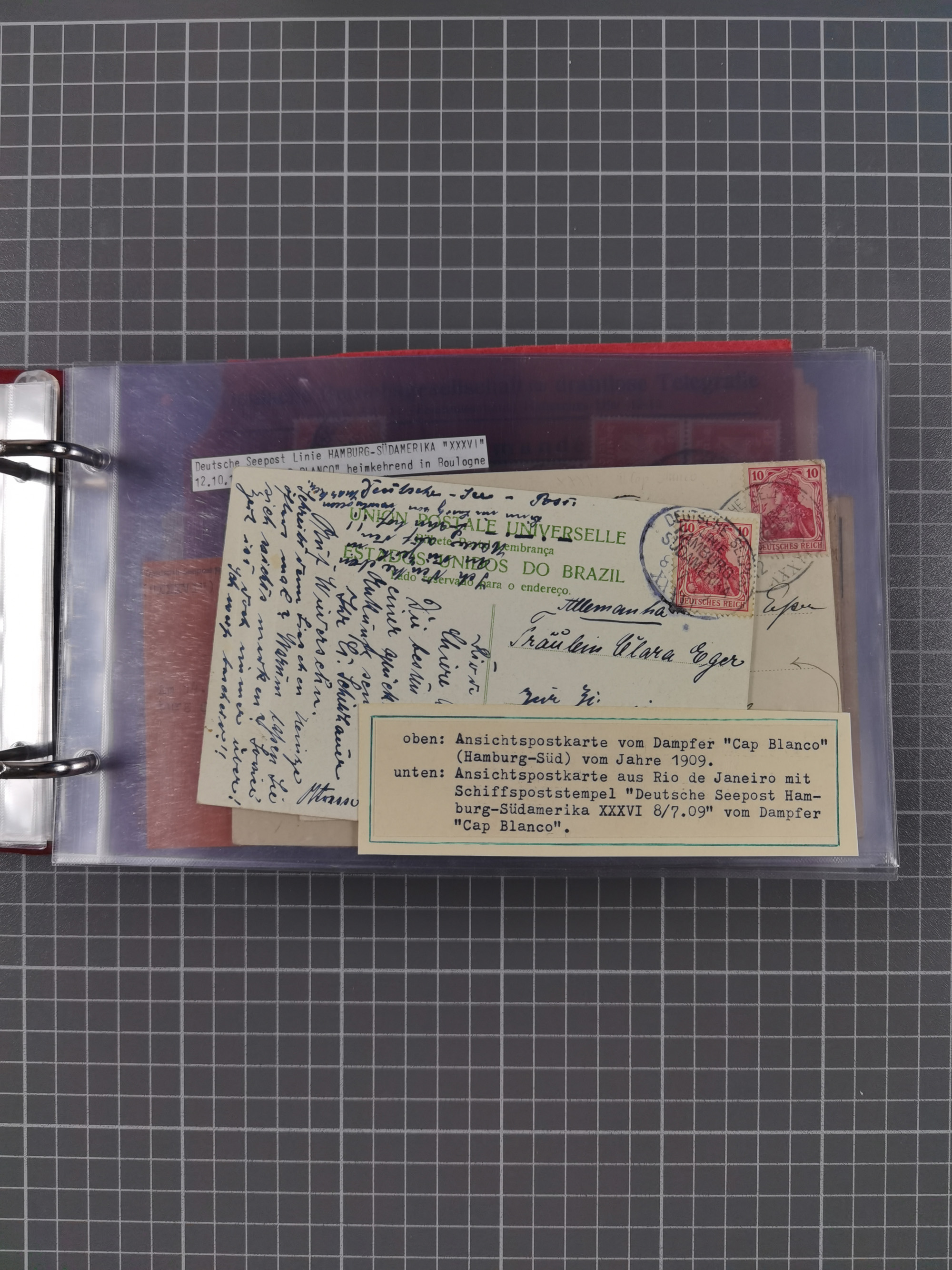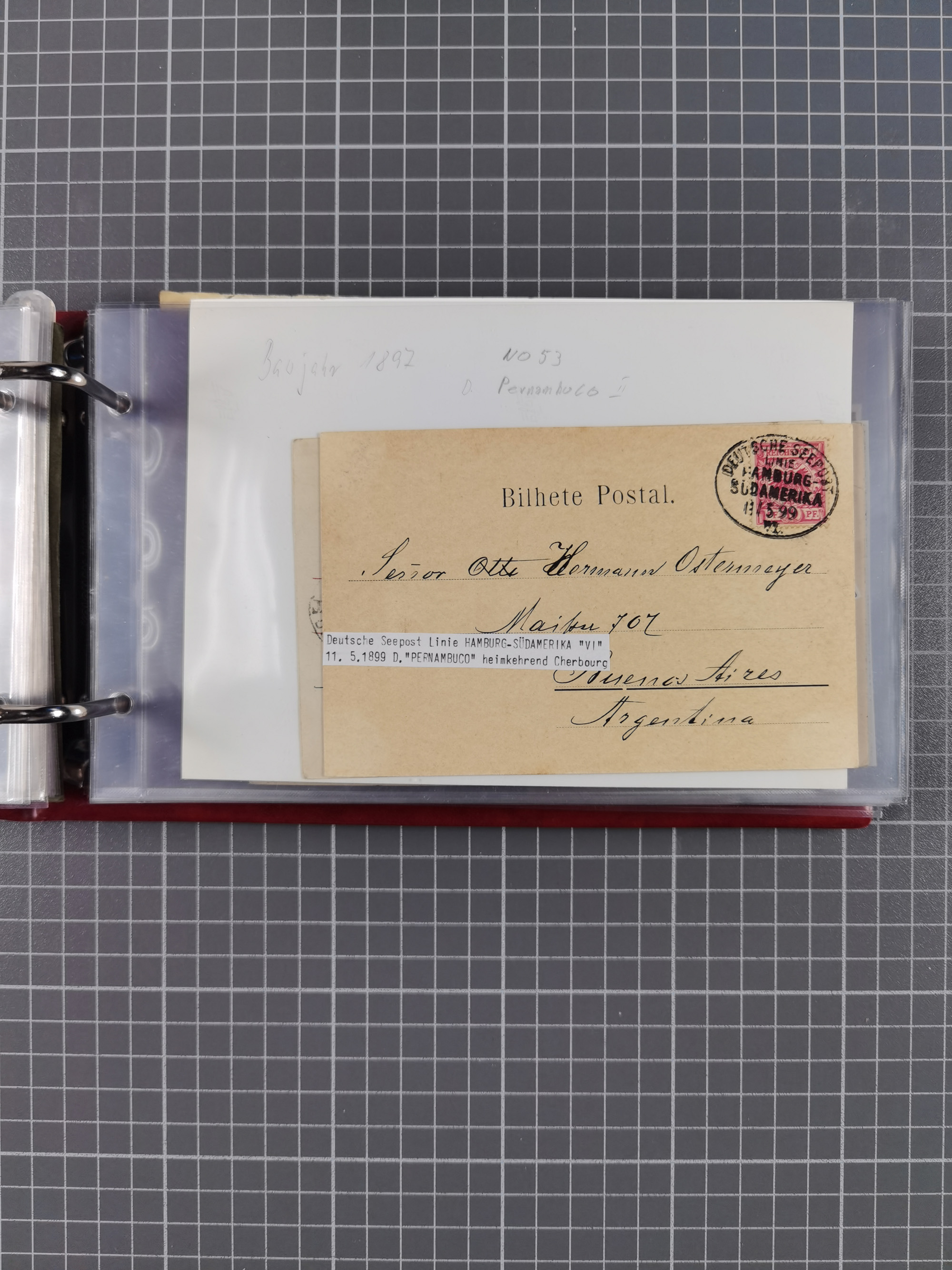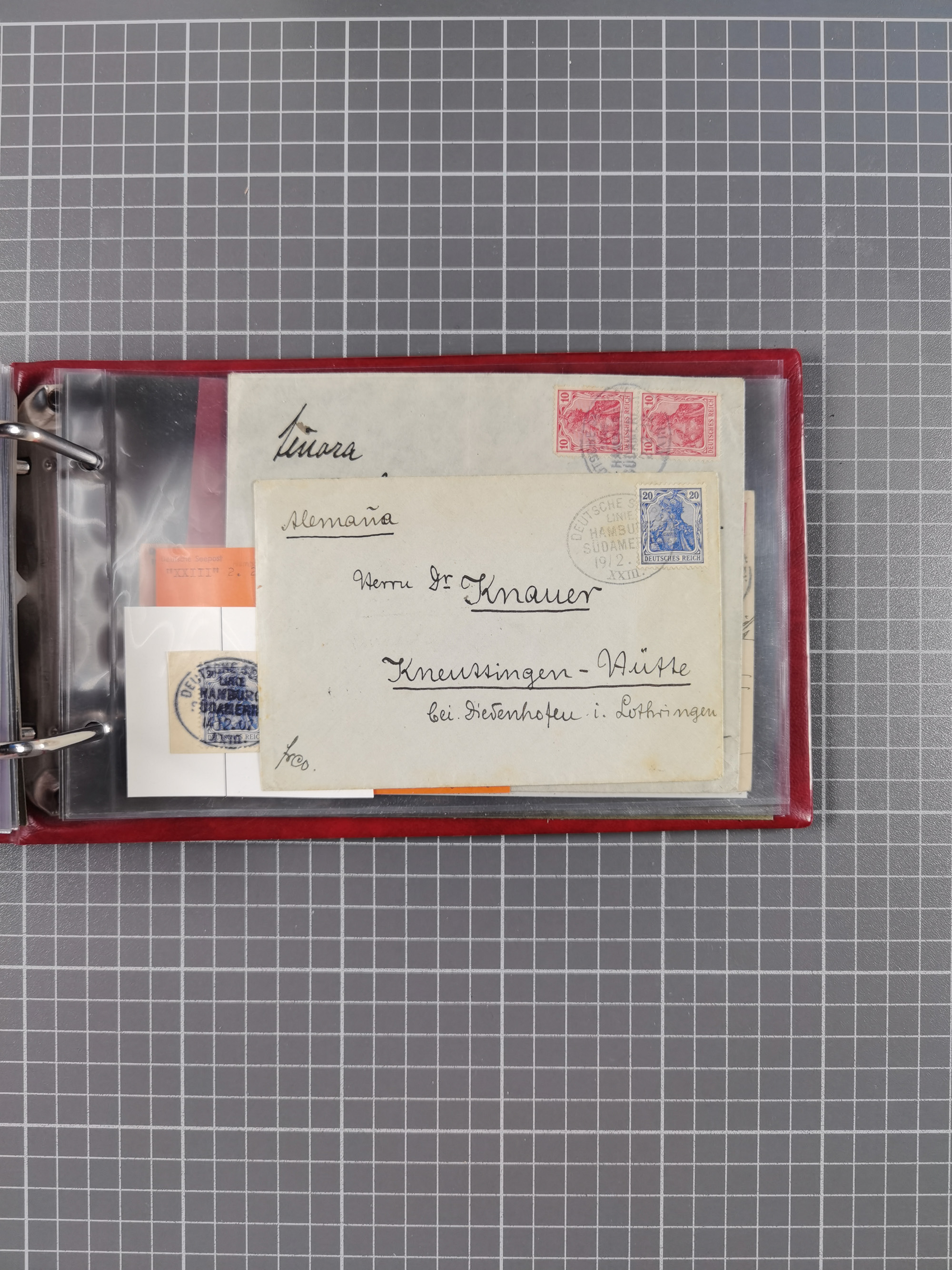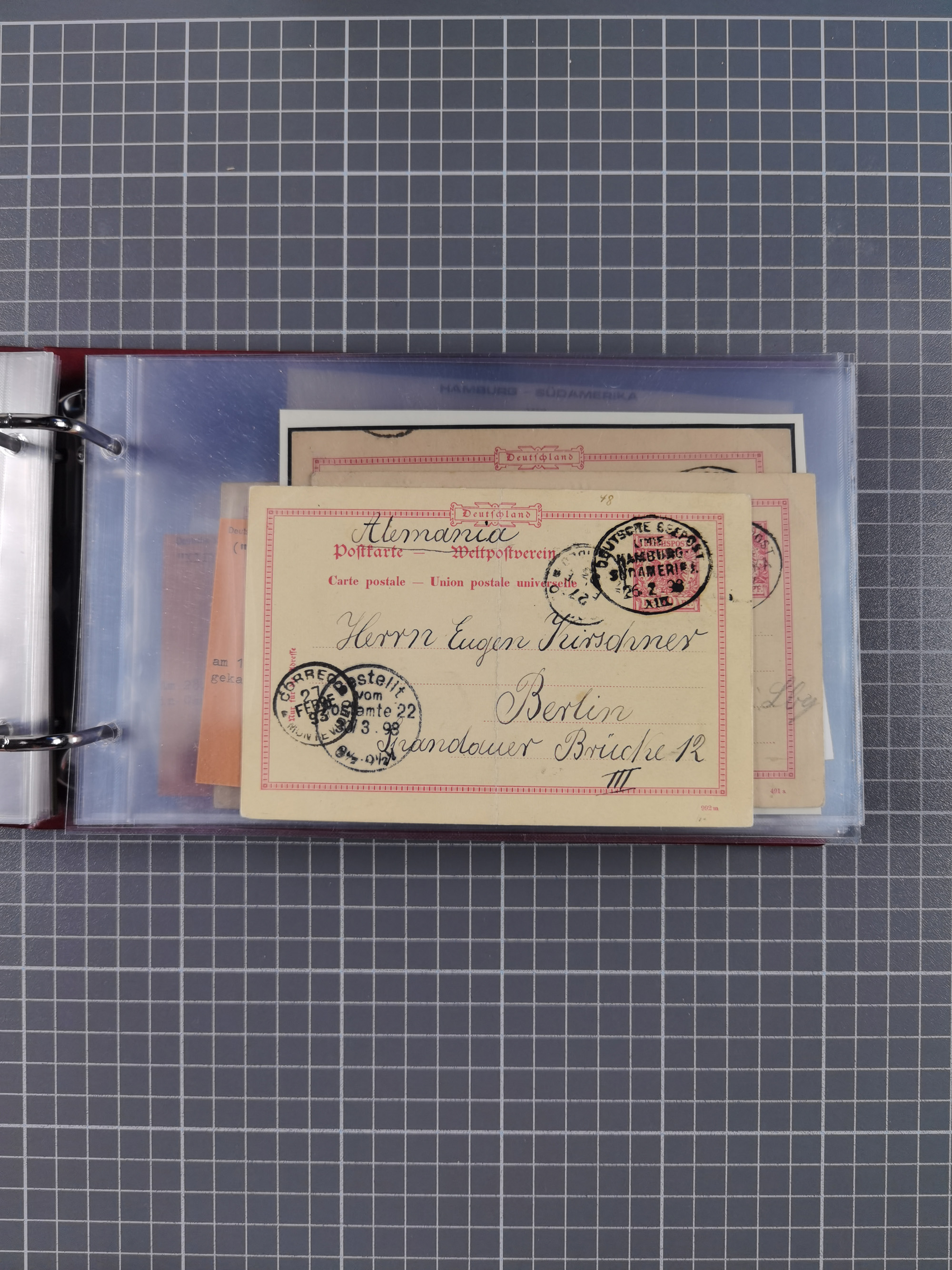 1891/1935 (ca.), umfangreiche Sammlung “DSP LINIE HAMBURG-SÜDAMERIKA I-LV” mit ca. 470 Briefen, Karten und GSK sowie wenigen Briefstücken mit Schwerpunkt vor 1914, dabei einige Belege mit “Paquebot”-Stempeln, Destinationen (u.a. 1895 nach Konstantinopel und GSK 1898 via Rottedam nach Jaluit), Bedarfspost aus der Infla-Zeit, Ozean-Brief 1913 und R-Ozean-Brief 1926. Die Erhaltung ist zum Teil etwas fehlerhaft, dafür fast nur klare Stempel, meist Bedarfspost, ex Steinmeyer