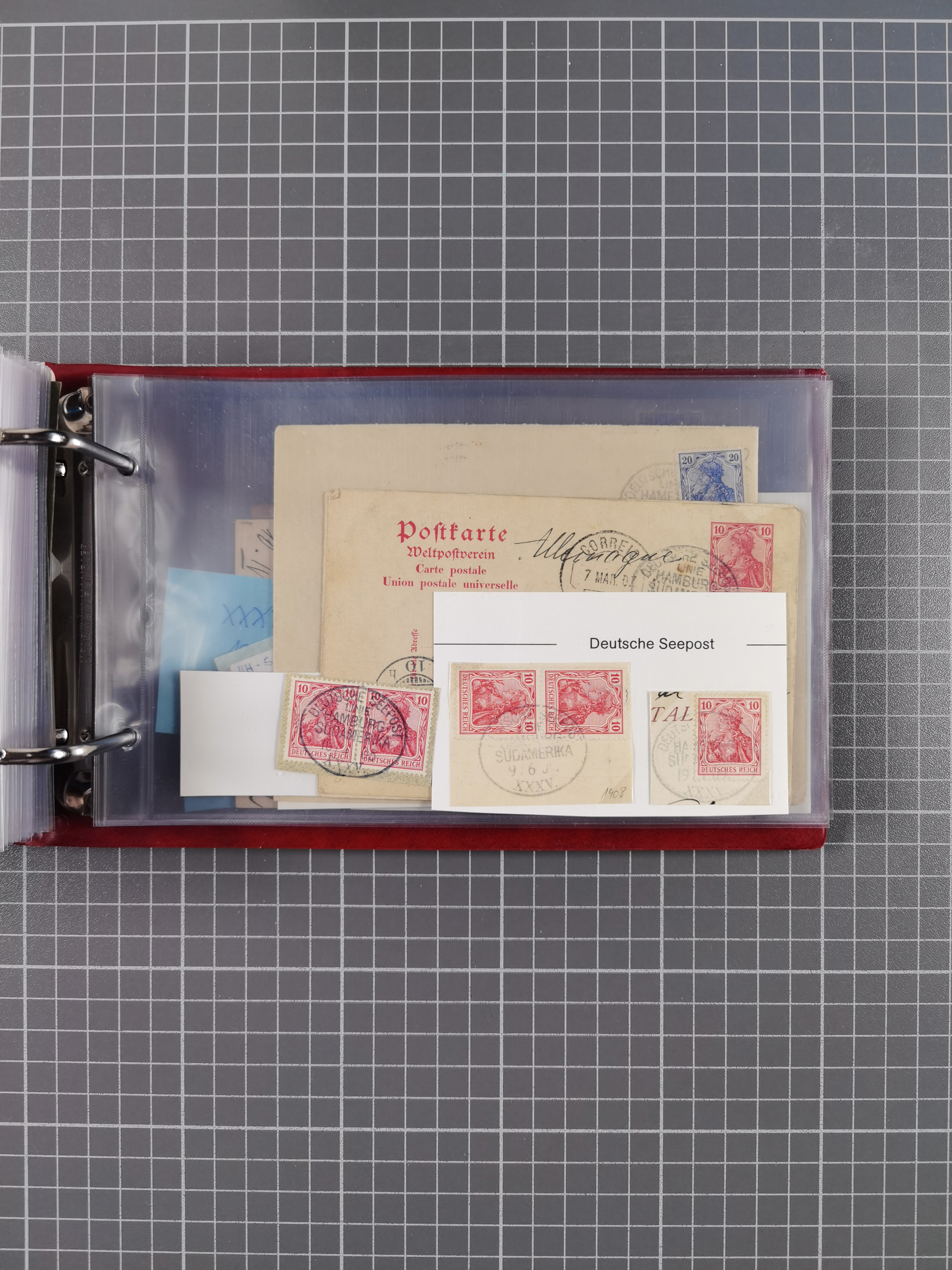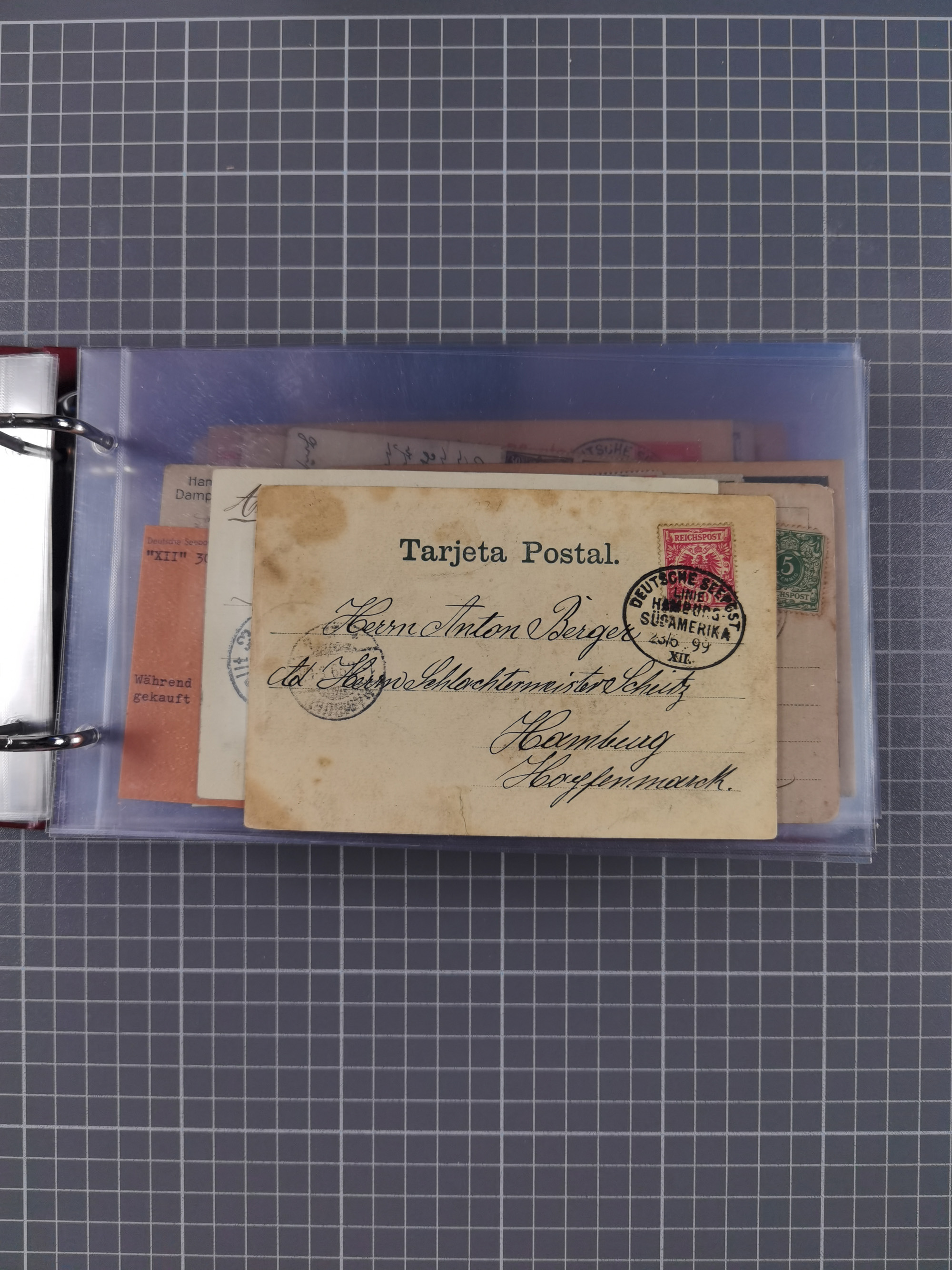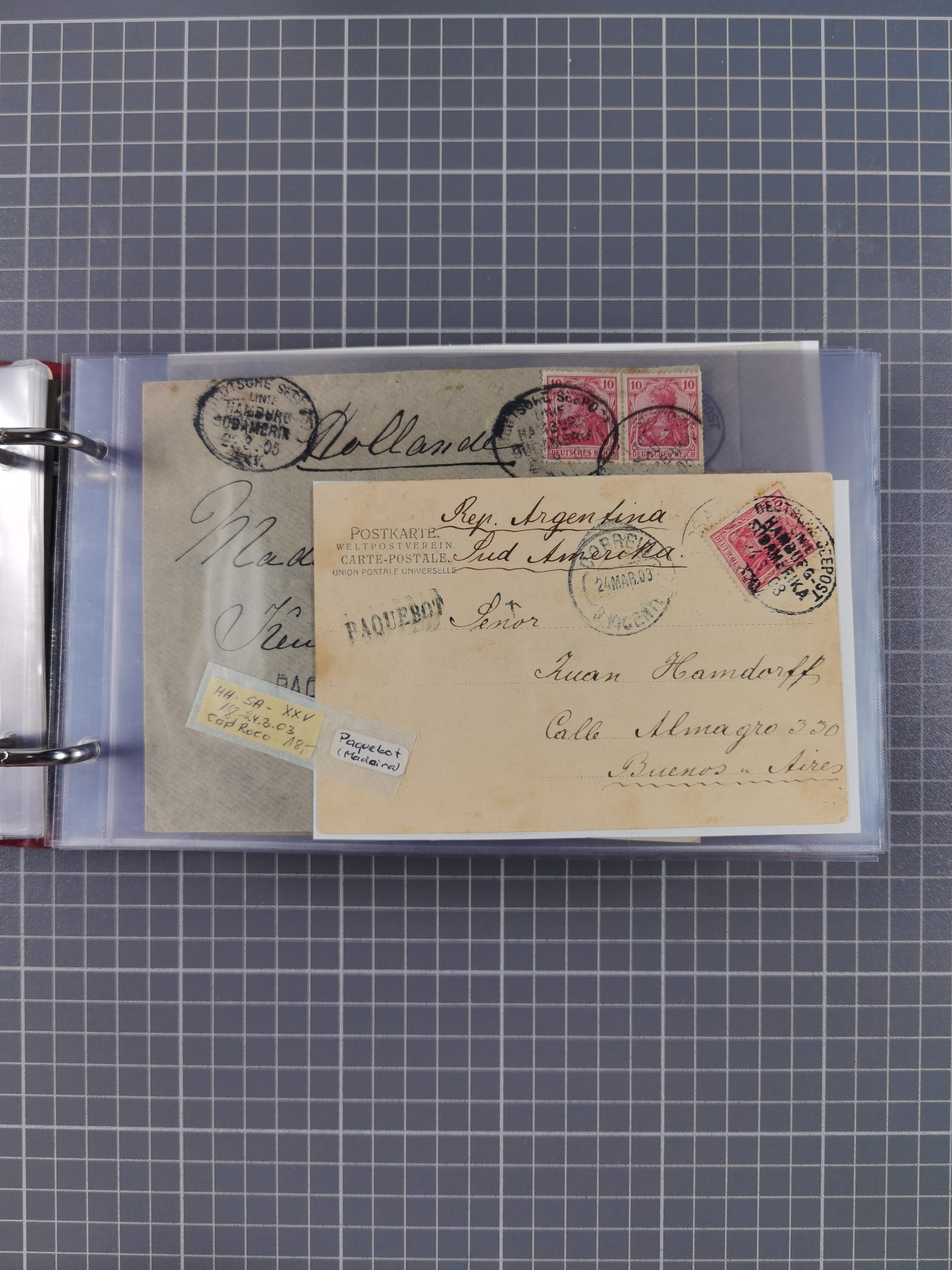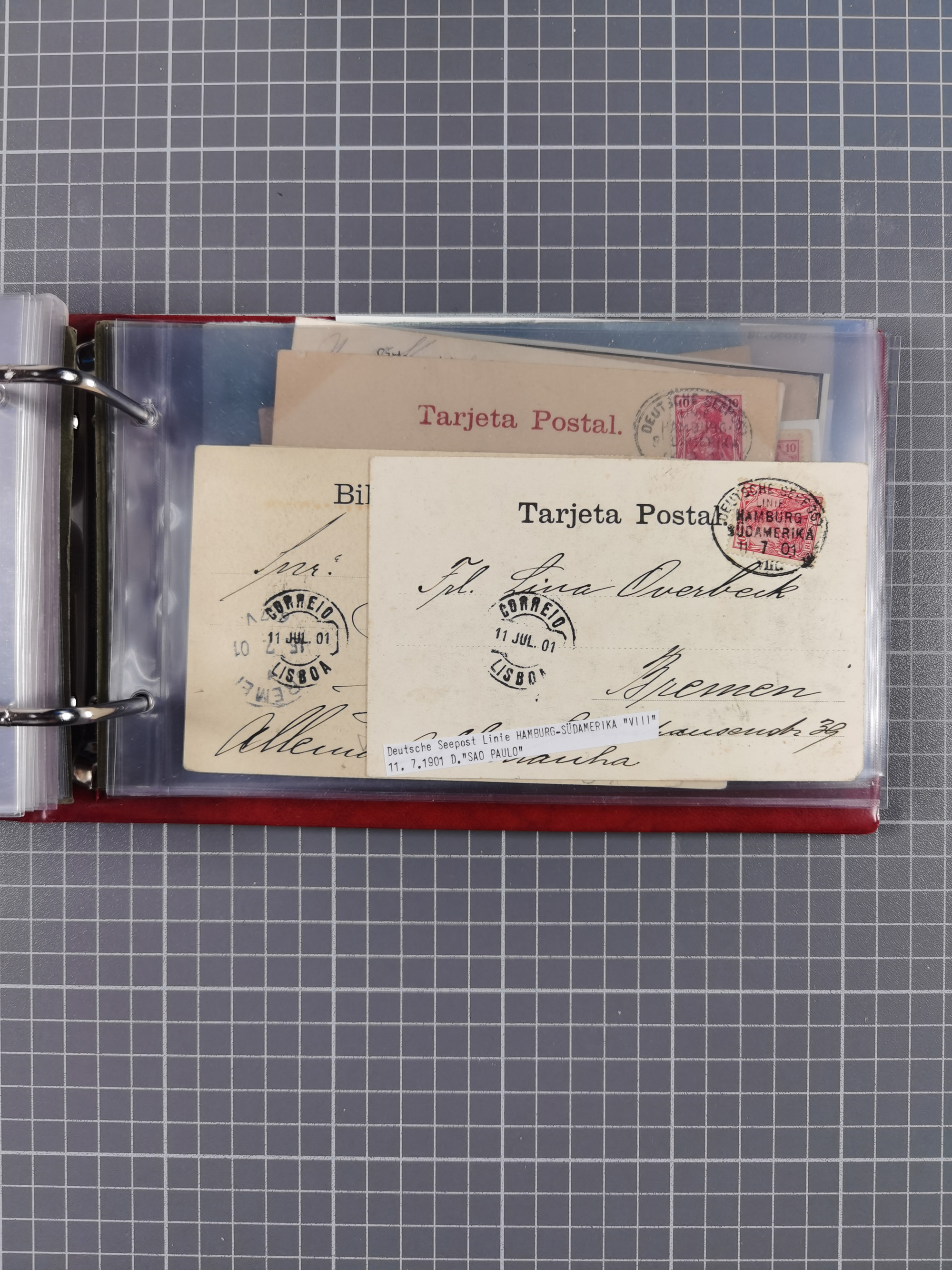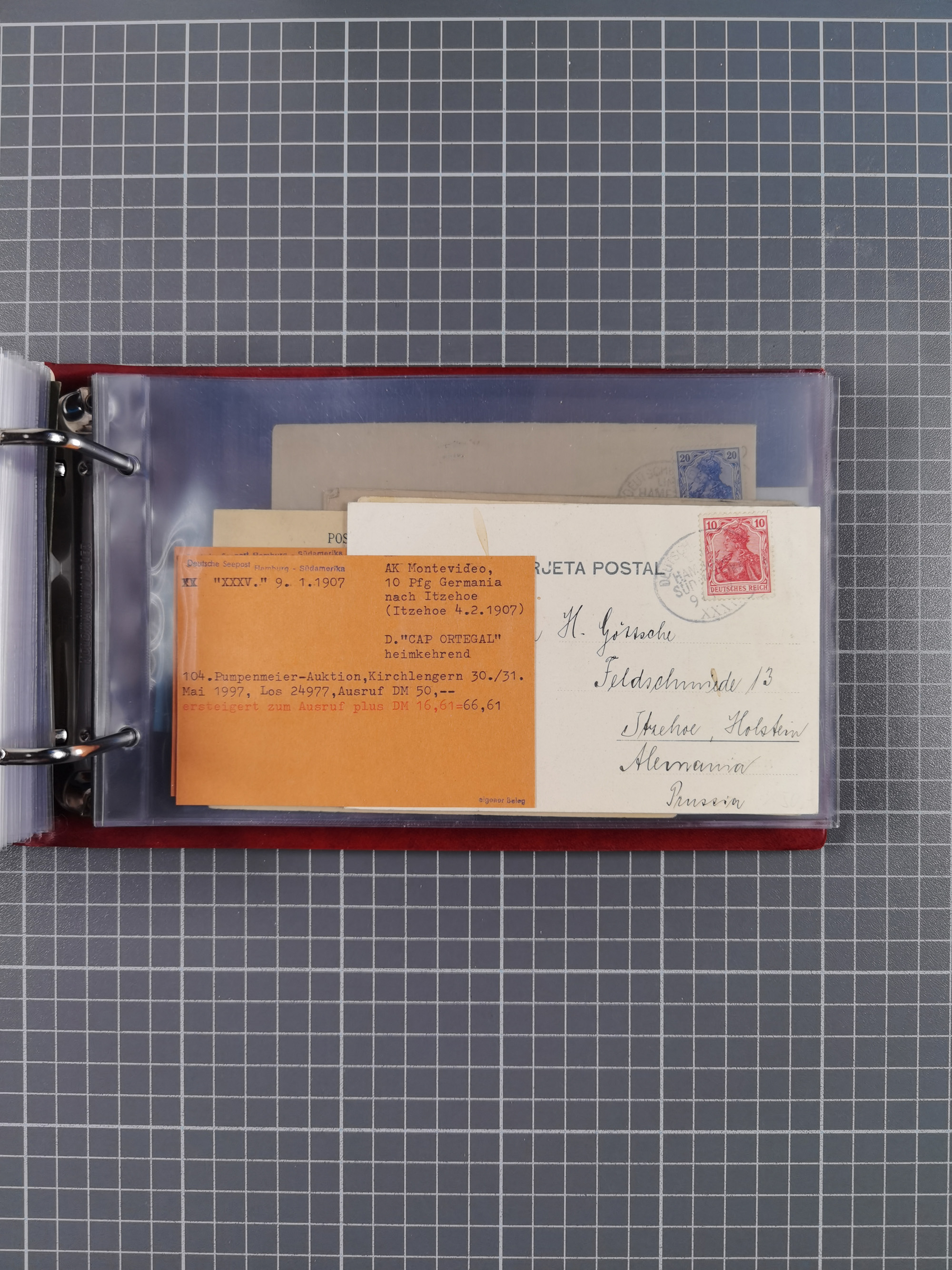 1891/1935 (ca.), umfangreiche Sammlung “DSP LINIE HAMBURG-SÜDAMERIKA I-LV” mit ca. 470 Briefen, Karten und GSK sowie wenigen Briefstücken mit Schwerpunkt vor 1914, dabei einige Belege mit “Paquebot”-Stempeln, Destinationen (u.a. 1895 nach Konstantinopel und GSK 1898 via Rottedam nach Jaluit), Bedarfspost aus der Infla-Zeit, Ozean-Brief 1913 und R-Ozean-Brief 1926. Die Erhaltung ist zum Teil etwas fehlerhaft, dafür fast nur klare Stempel, meist Bedarfspost, ex Steinmeyer
