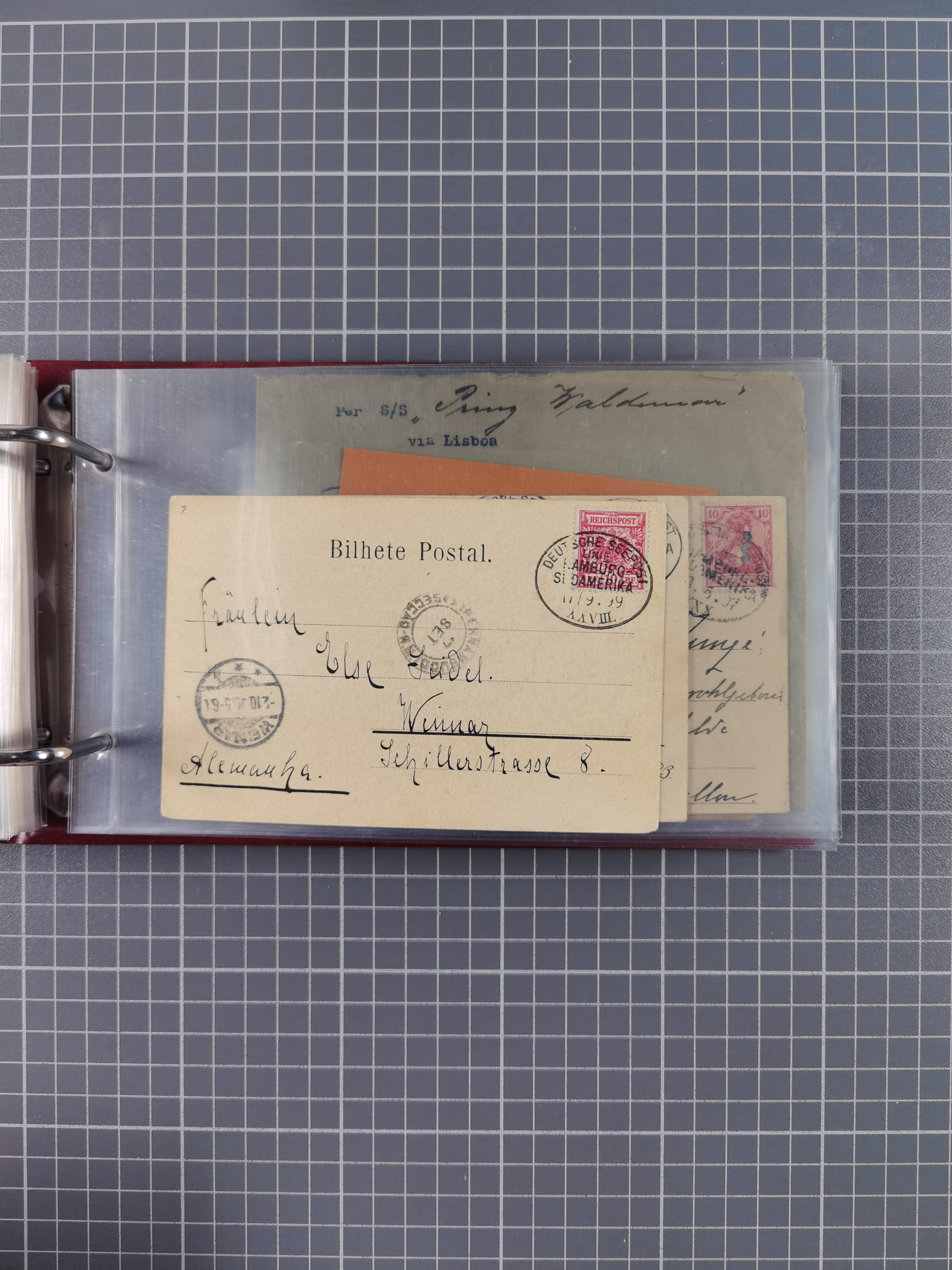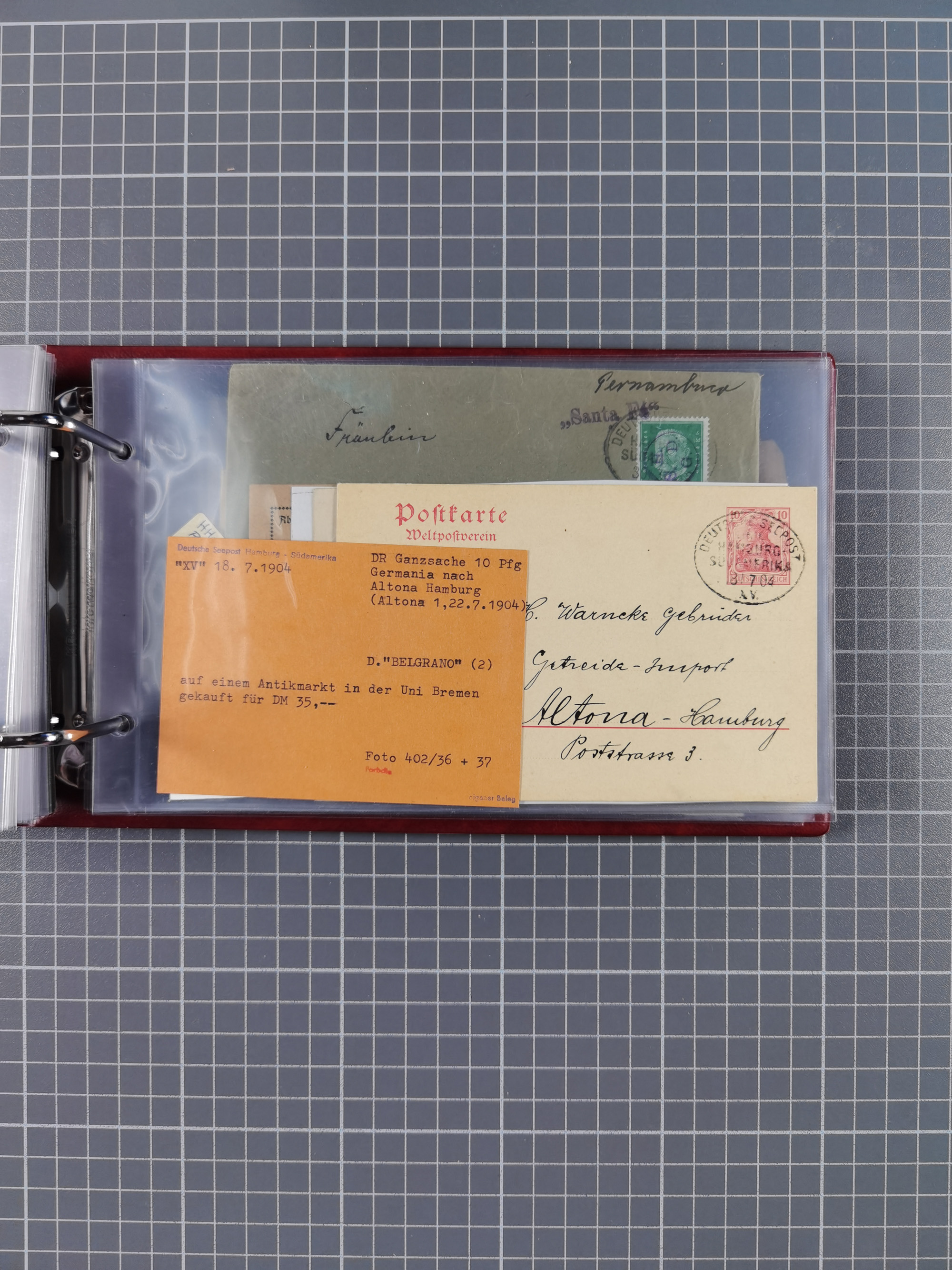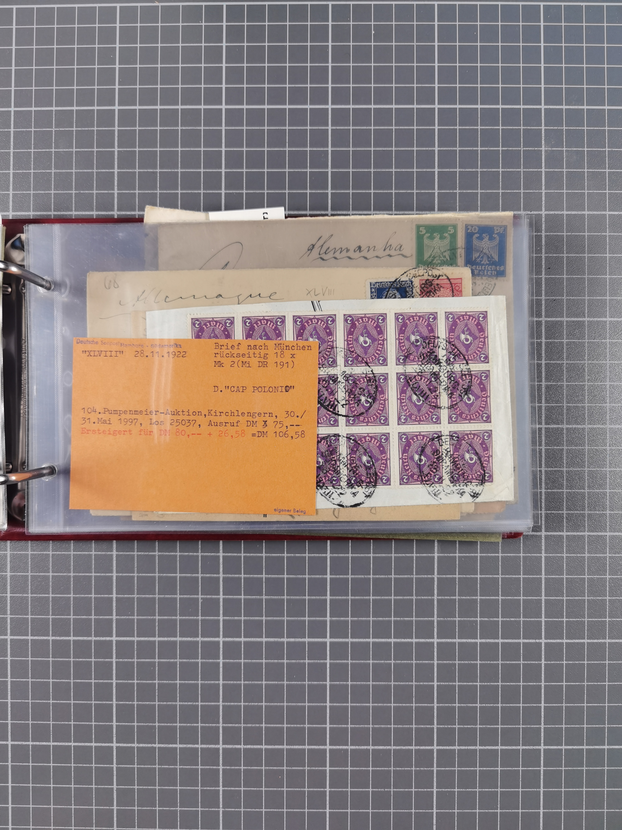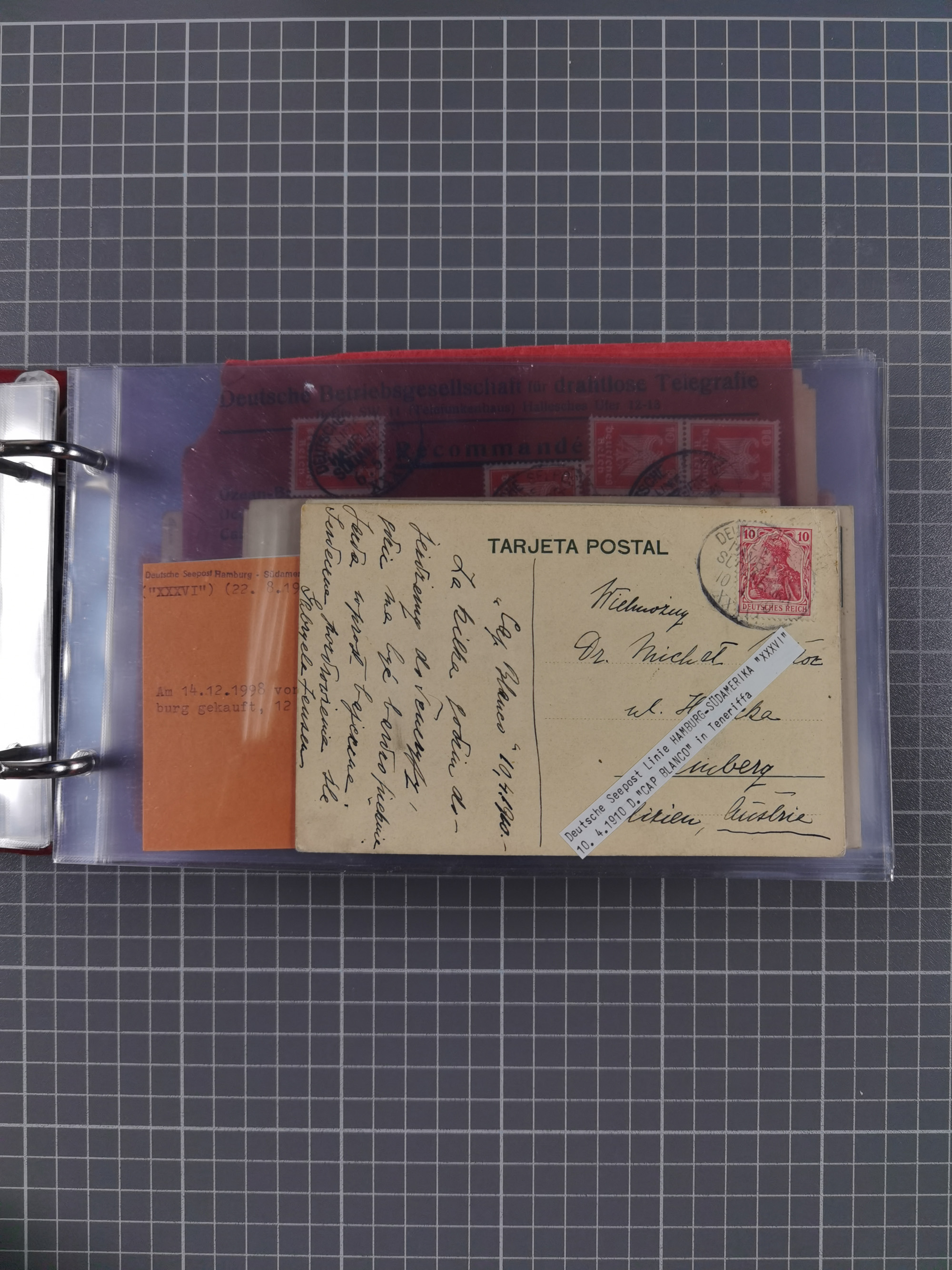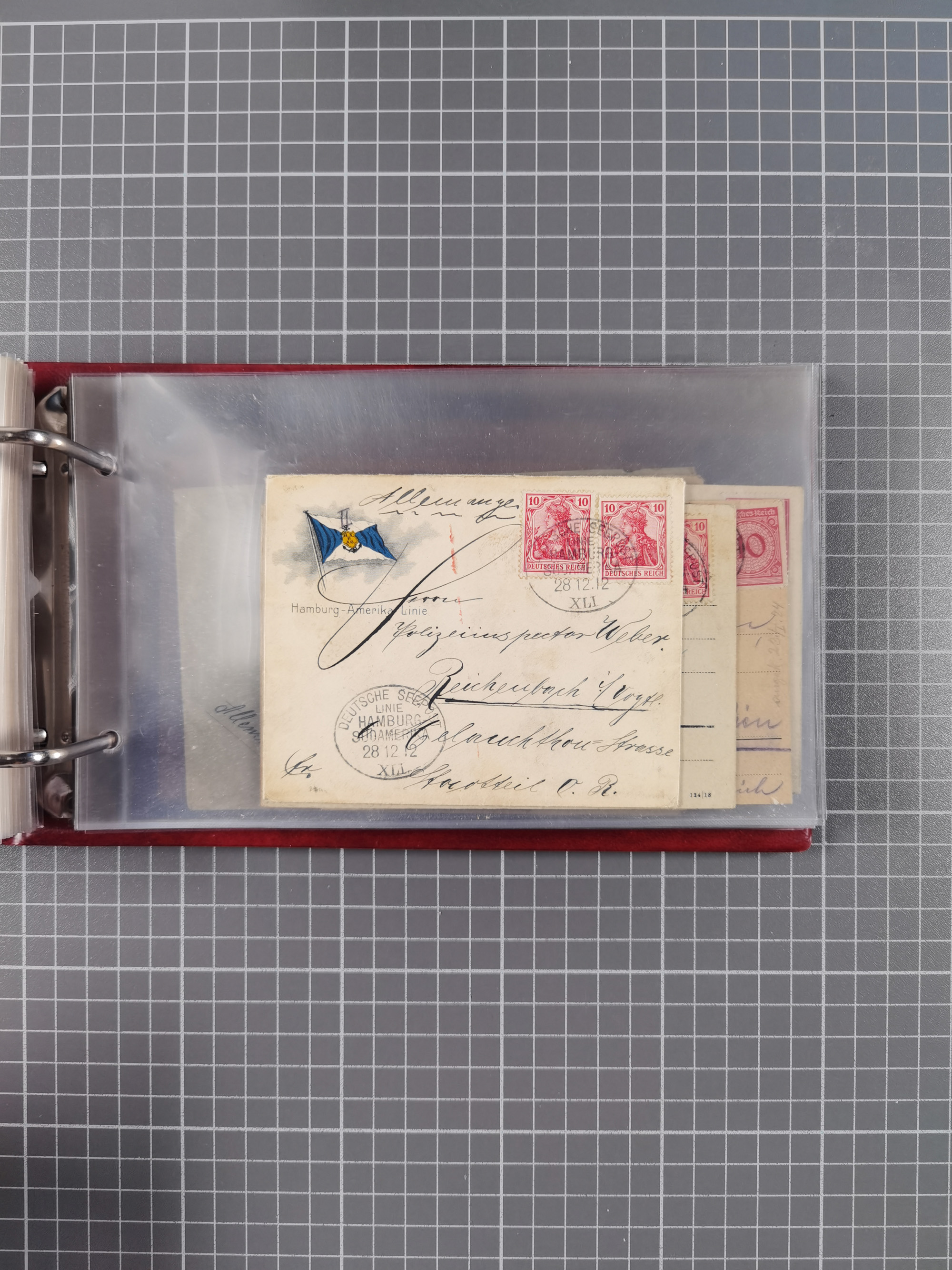 1891/1935 (ca.), umfangreiche Sammlung “DSP LINIE HAMBURG-SÜDAMERIKA I-LV” mit ca. 470 Briefen, Karten und GSK sowie wenigen Briefstücken mit Schwerpunkt vor 1914, dabei einige Belege mit “Paquebot”-Stempeln, Destinationen (u.a. 1895 nach Konstantinopel und GSK 1898 via Rottedam nach Jaluit), Bedarfspost aus der Infla-Zeit, Ozean-Brief 1913 und R-Ozean-Brief 1926. Die Erhaltung ist zum Teil etwas fehlerhaft, dafür fast nur klare Stempel, meist Bedarfspost, ex Steinmeyer