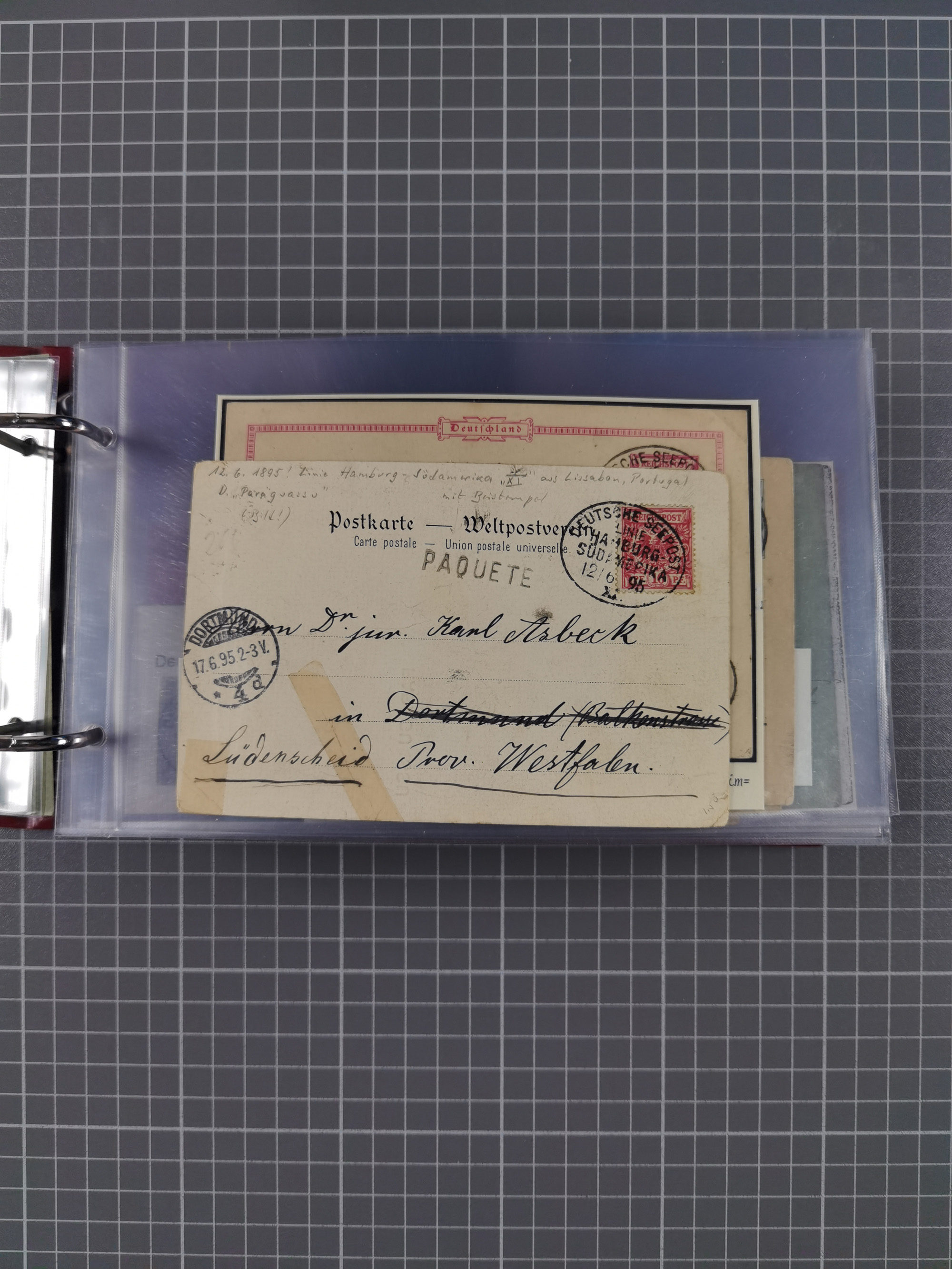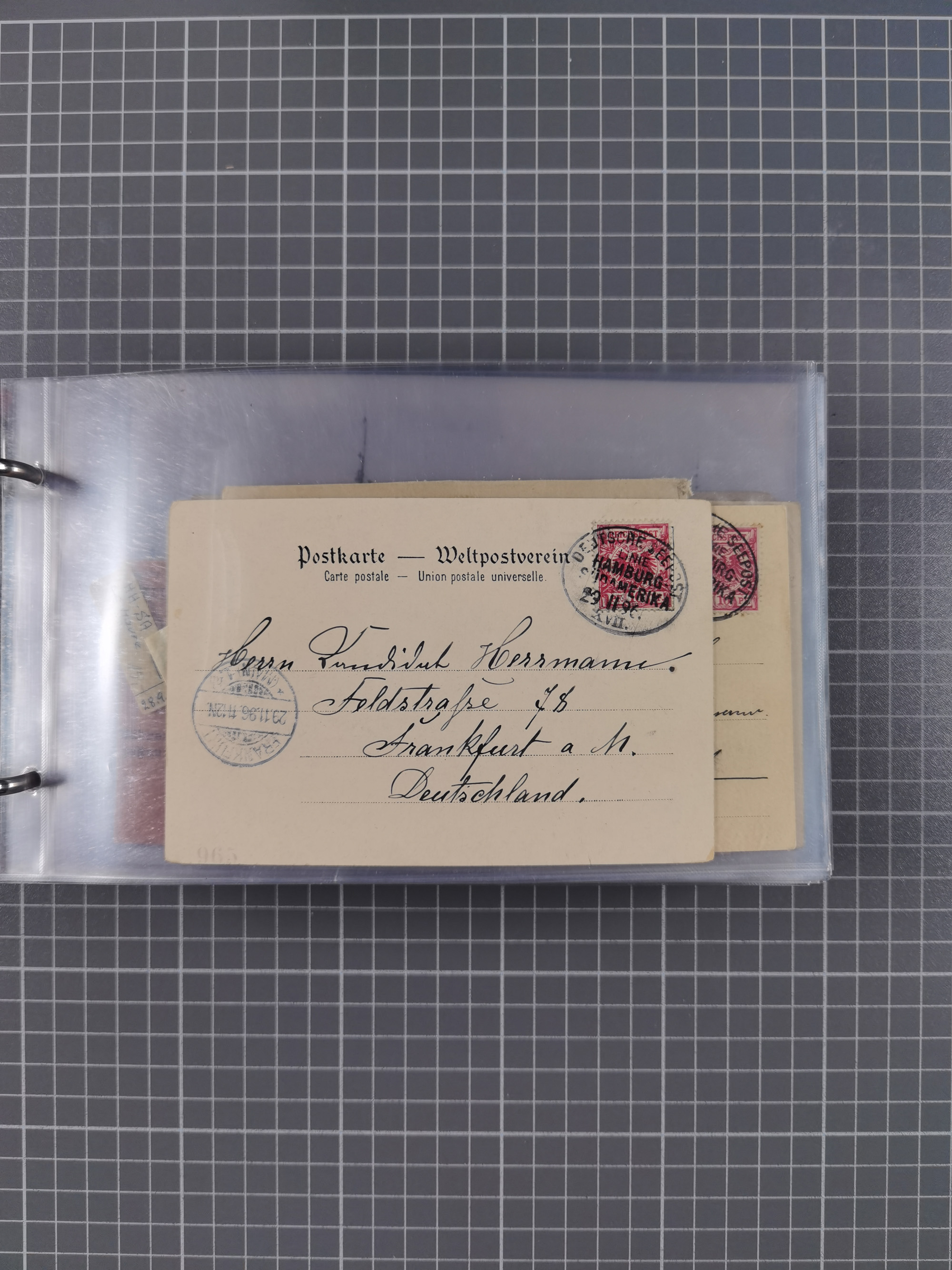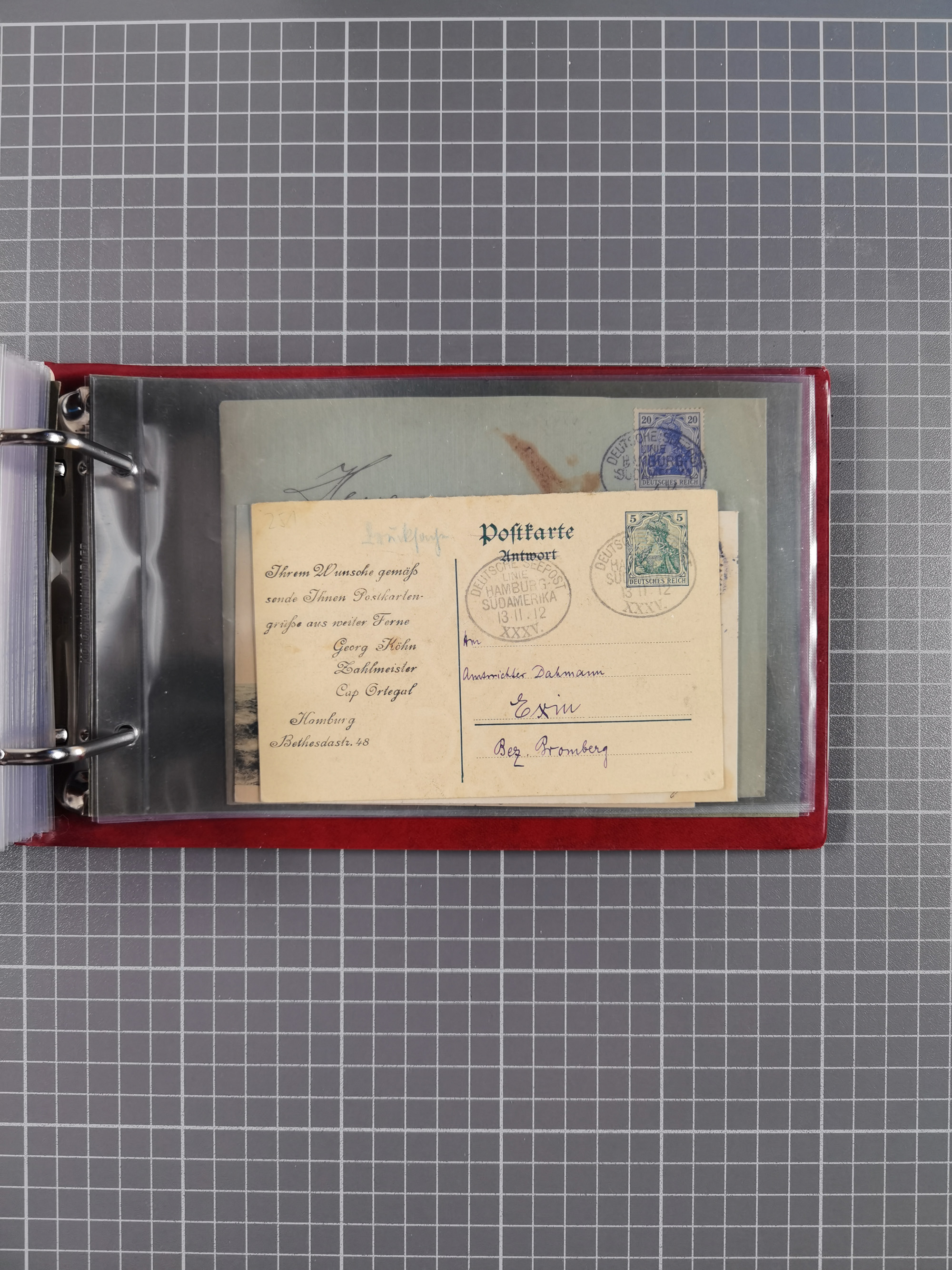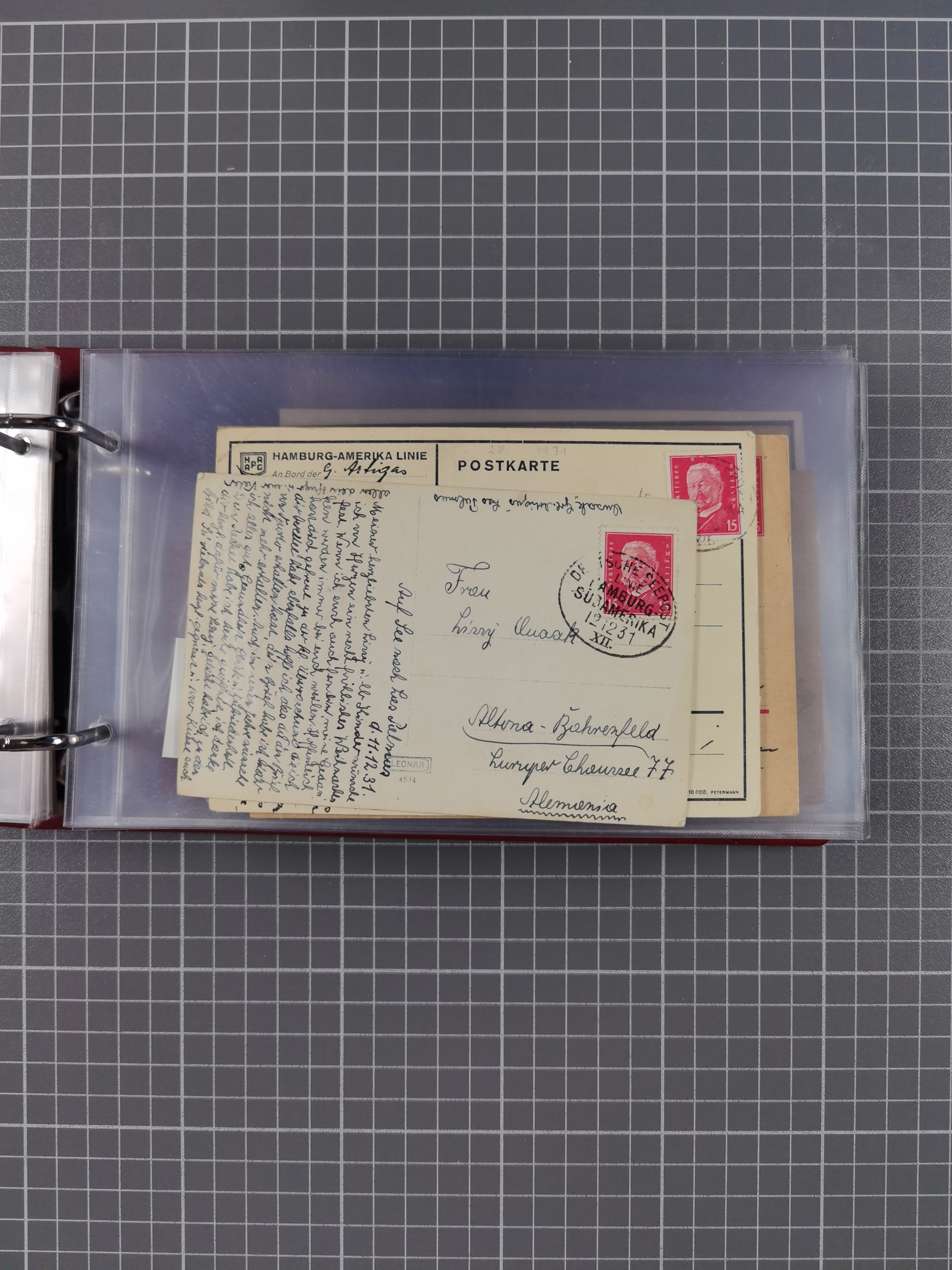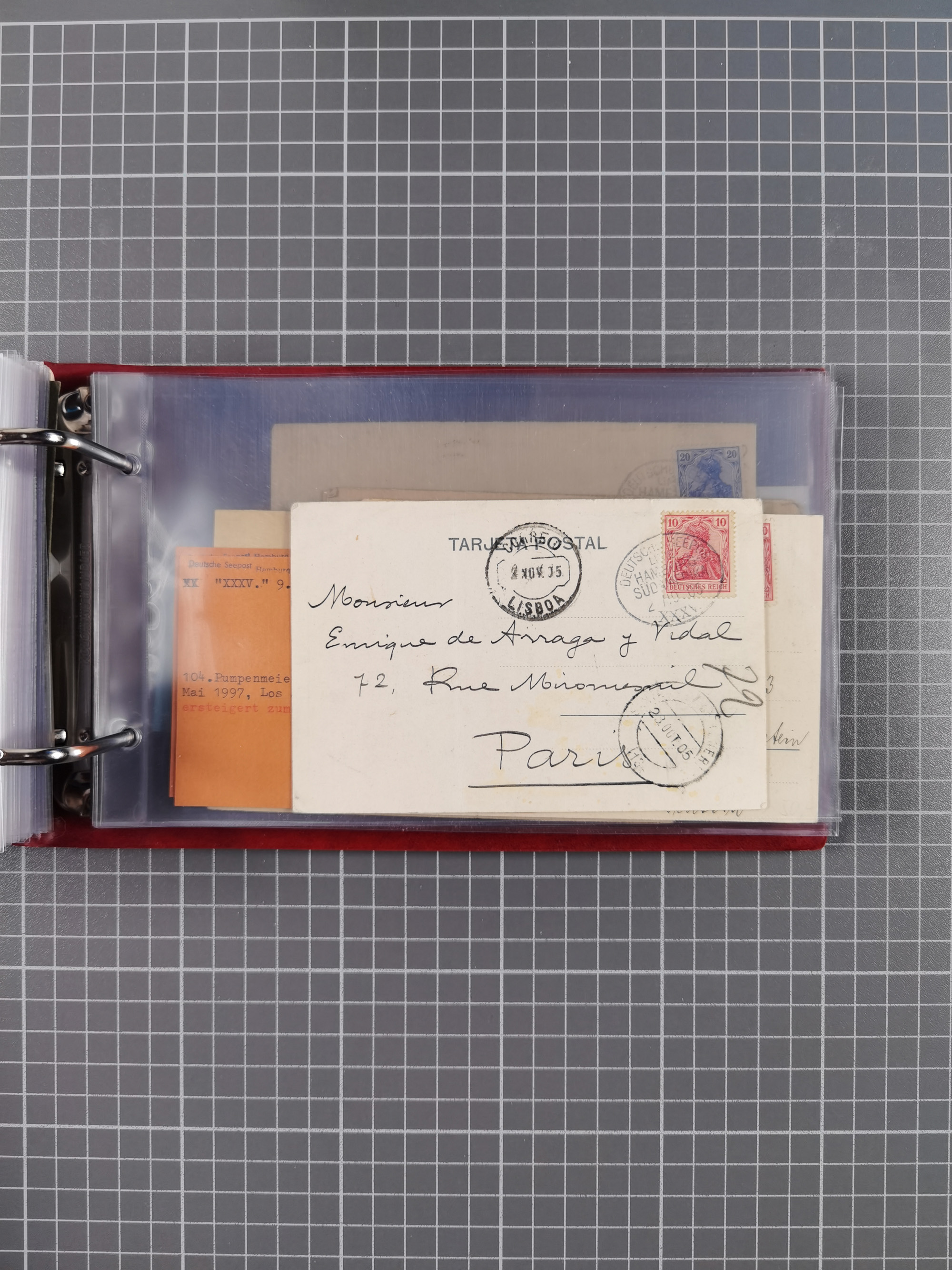 1891/1935 (ca.), umfangreiche Sammlung “DSP LINIE HAMBURG-SÜDAMERIKA I-LV” mit ca. 470 Briefen, Karten und GSK sowie wenigen Briefstücken mit Schwerpunkt vor 1914, dabei einige Belege mit “Paquebot”-Stempeln, Destinationen (u.a. 1895 nach Konstantinopel und GSK 1898 via Rottedam nach Jaluit), Bedarfspost aus der Infla-Zeit, Ozean-Brief 1913 und R-Ozean-Brief 1926. Die Erhaltung ist zum Teil etwas fehlerhaft, dafür fast nur klare Stempel, meist Bedarfspost, ex Steinmeyer
