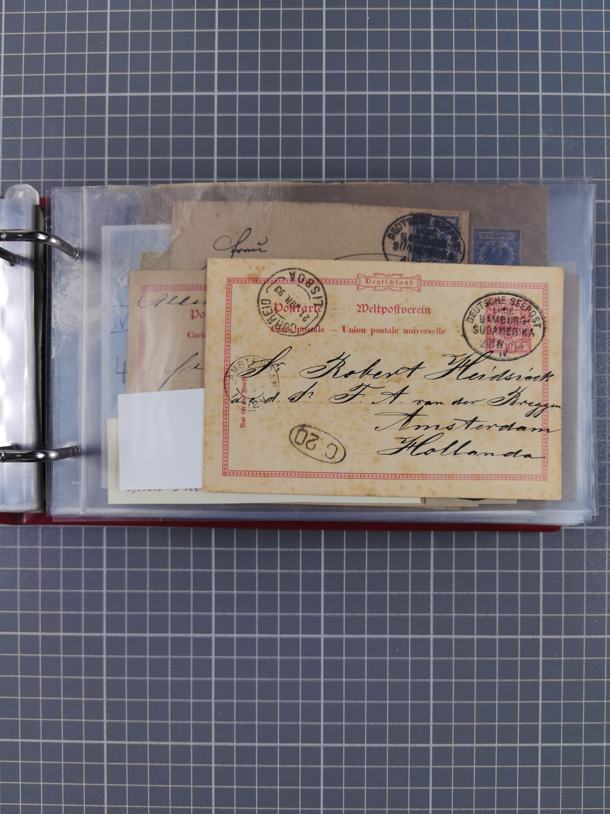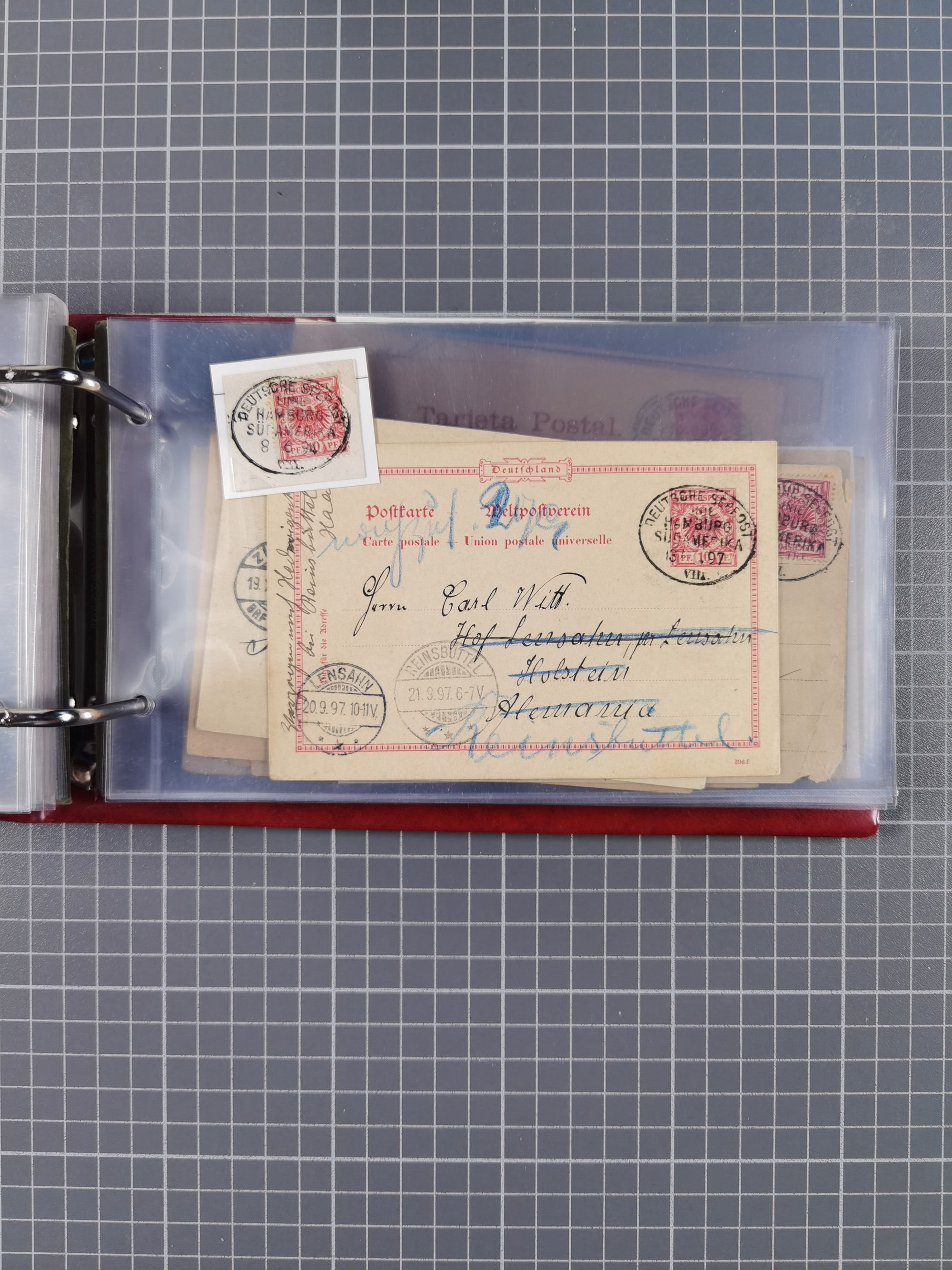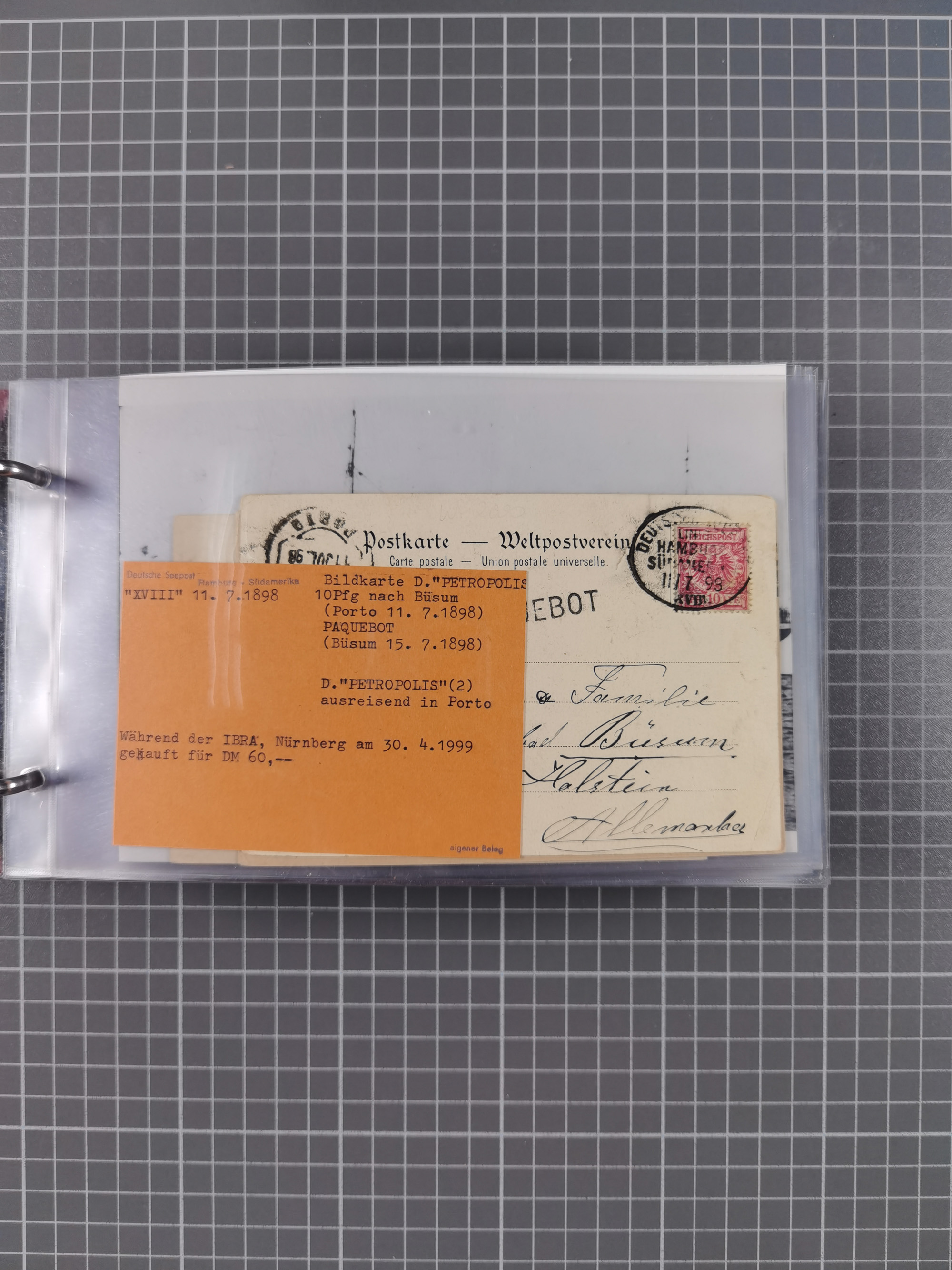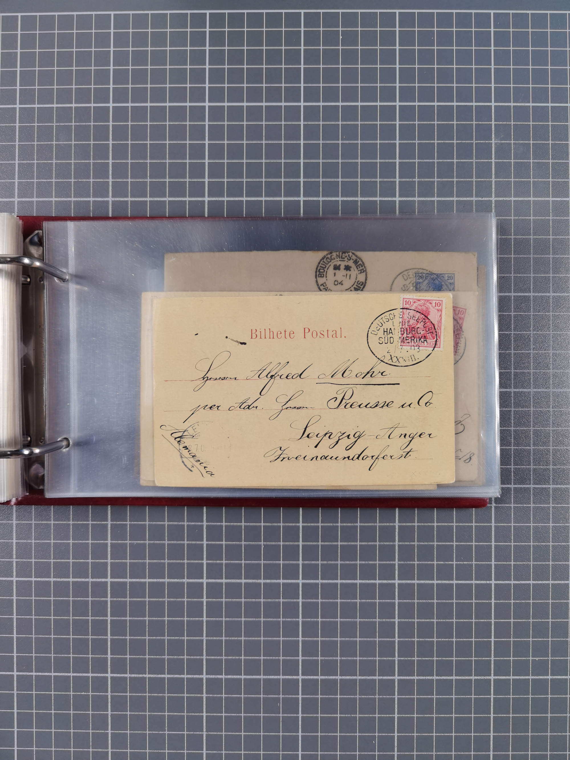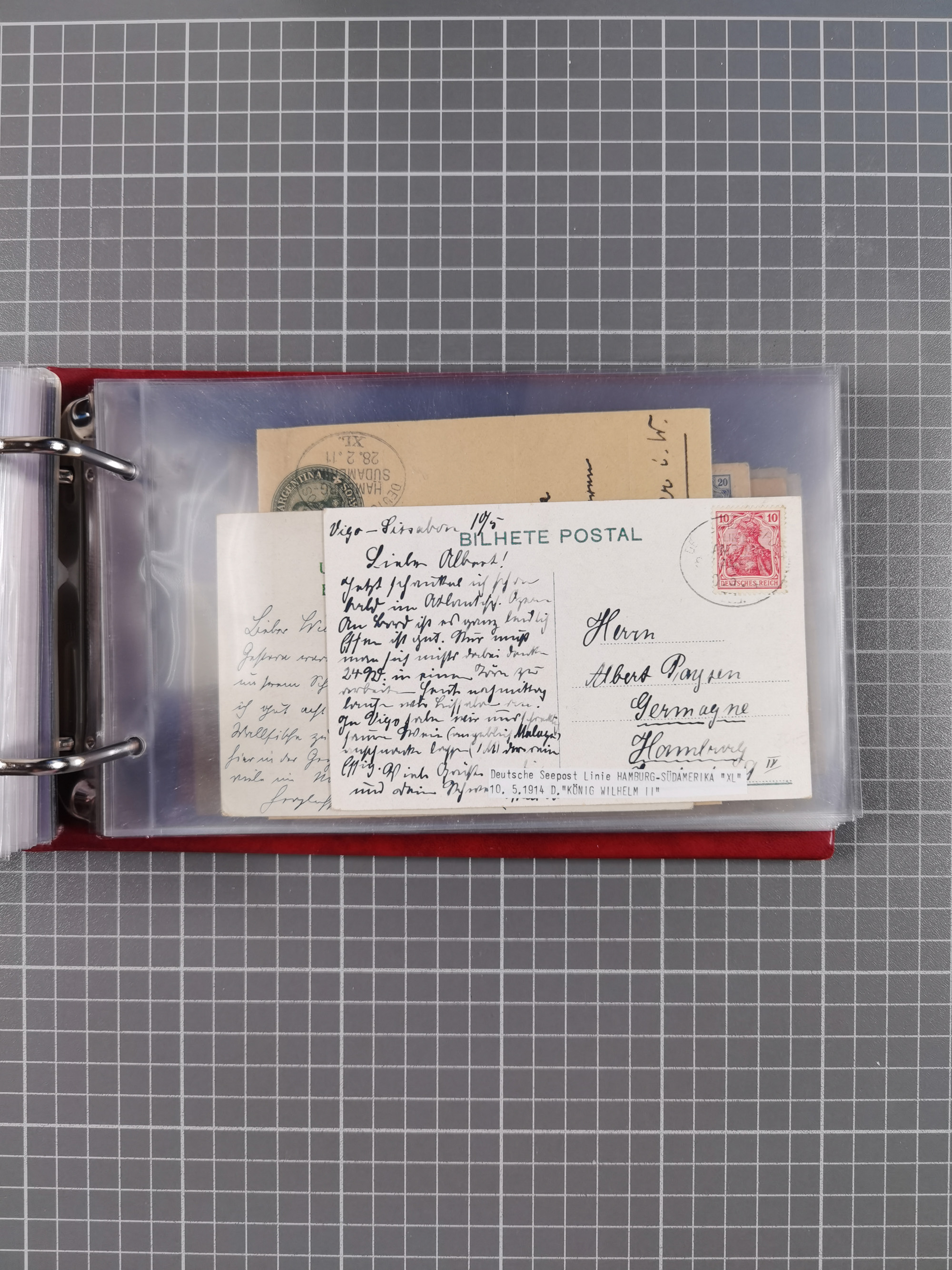 1891/1935 (ca.), umfangreiche Sammlung “DSP LINIE HAMBURG-SÜDAMERIKA I-LV” mit ca. 470 Briefen, Karten und GSK sowie wenigen Briefstücken mit Schwerpunkt vor 1914, dabei einige Belege mit “Paquebot”-Stempeln, Destinationen (u.a. 1895 nach Konstantinopel und GSK 1898 via Rottedam nach Jaluit), Bedarfspost aus der Infla-Zeit, Ozean-Brief 1913 und R-Ozean-Brief 1926. Die Erhaltung ist zum Teil etwas fehlerhaft, dafür fast nur klare Stempel, meist Bedarfspost, ex Steinmeyer