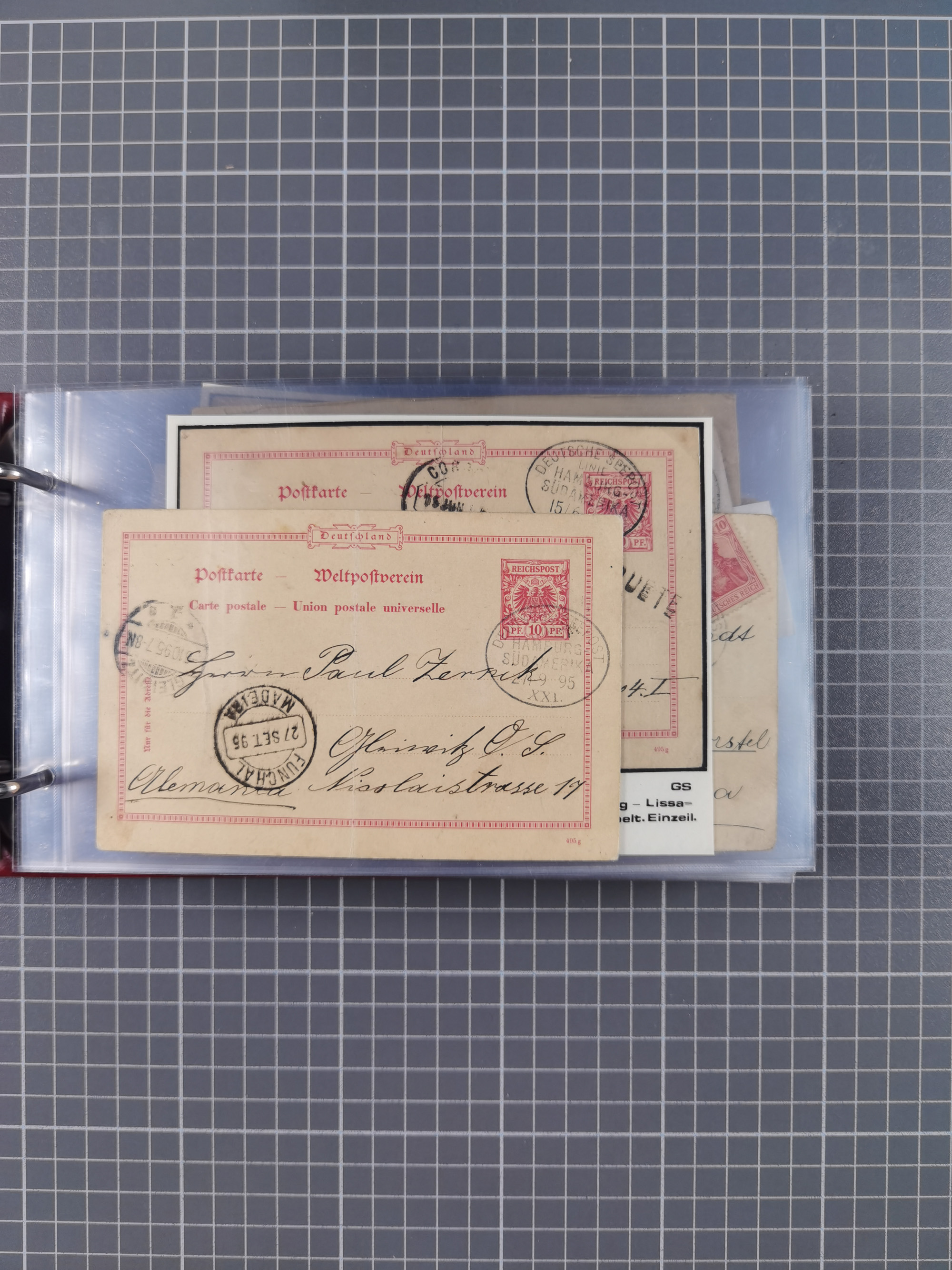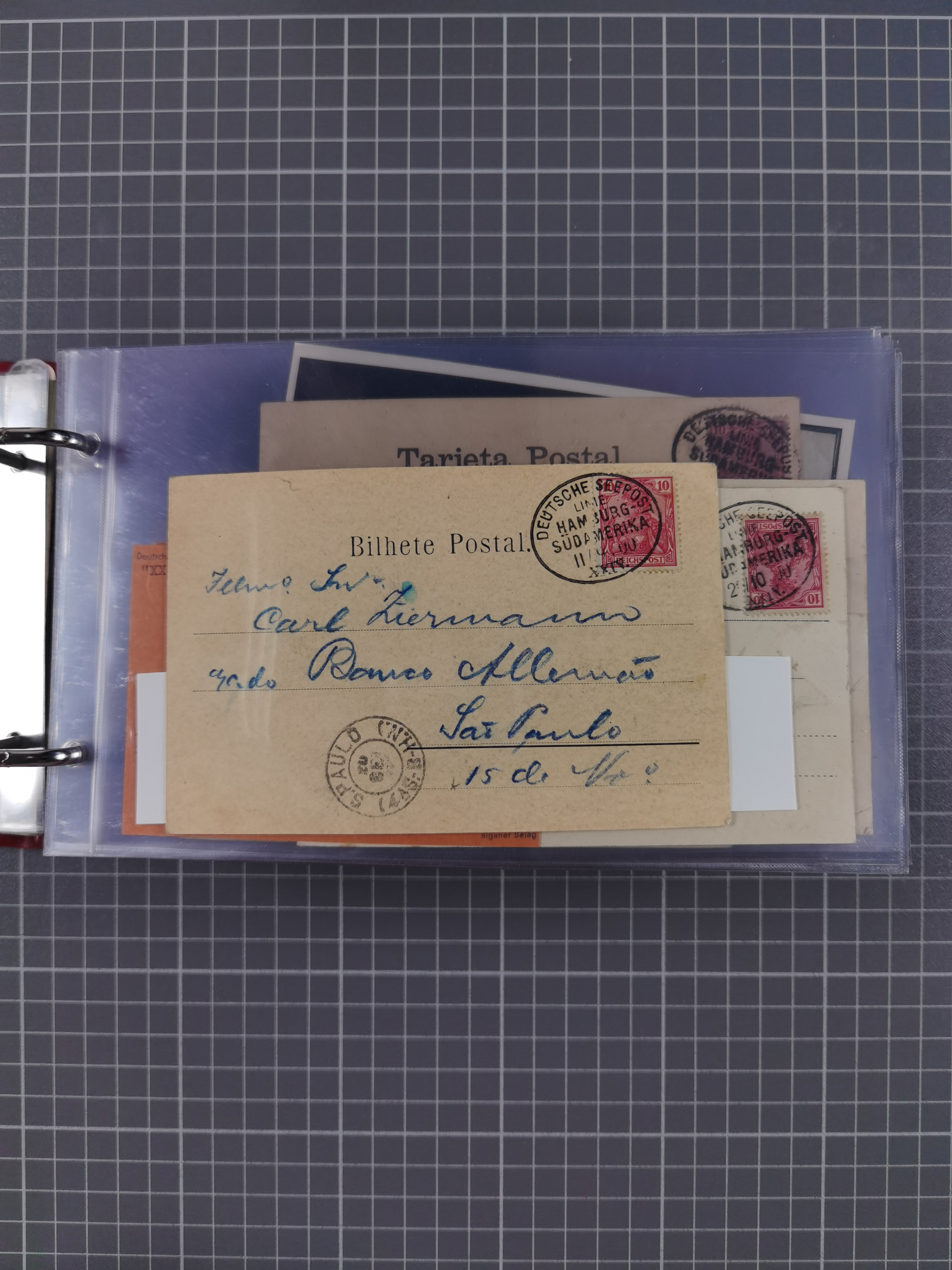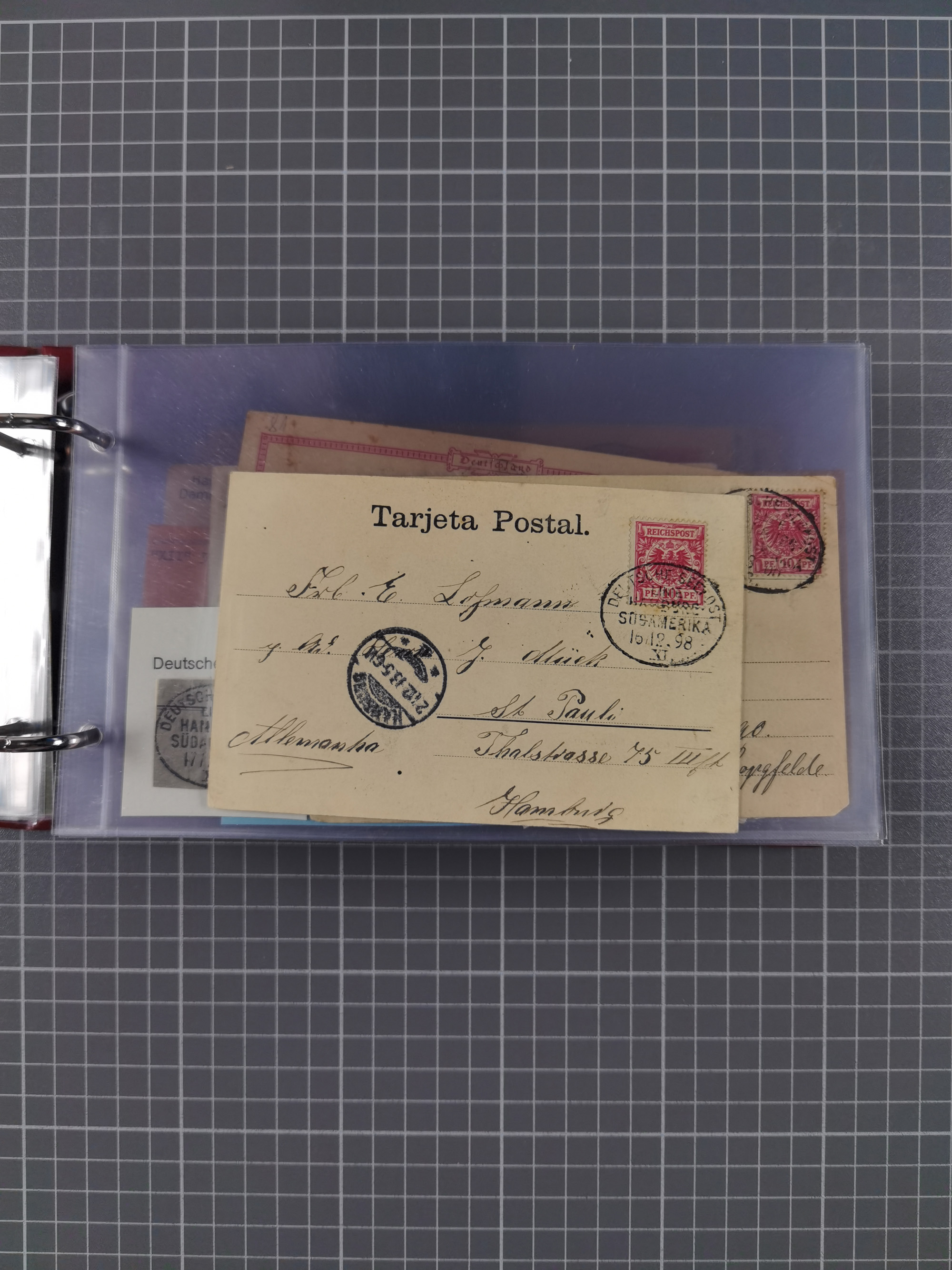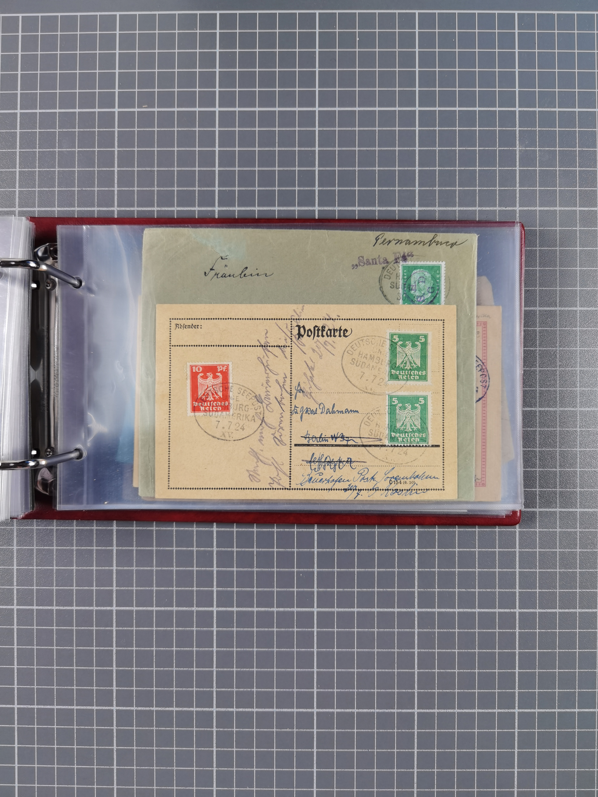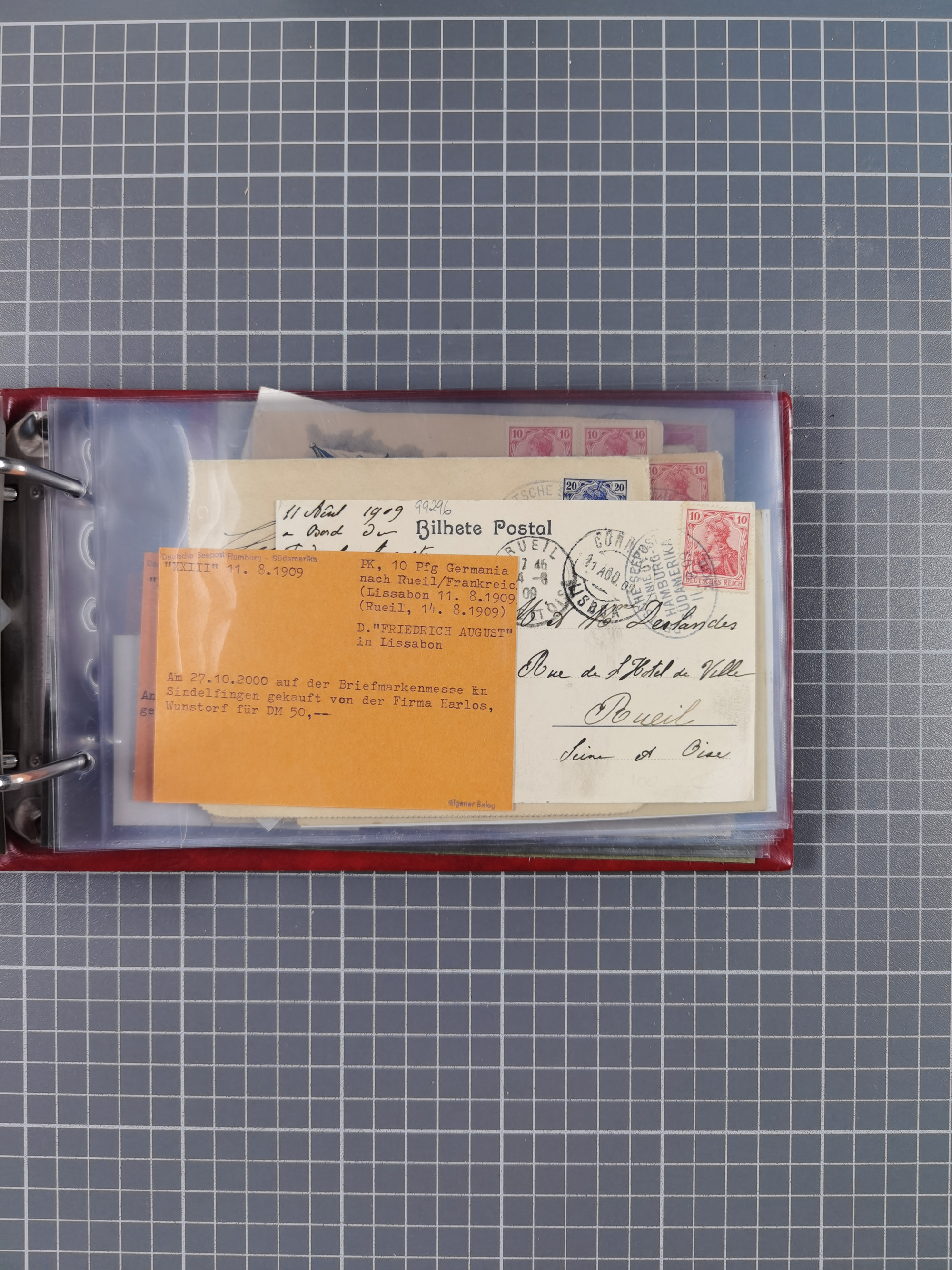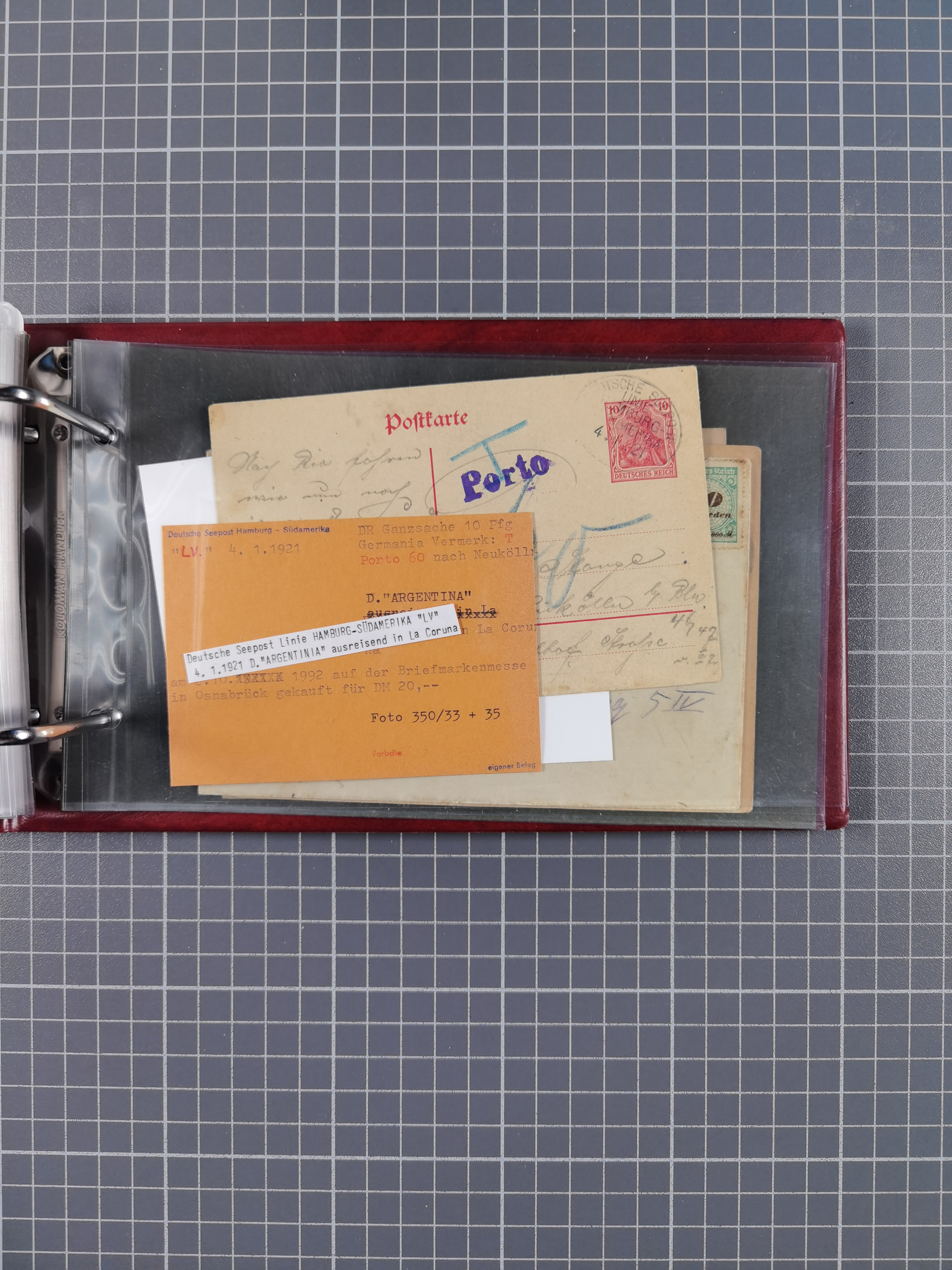 1891/1935 (ca.), umfangreiche Sammlung “DSP LINIE HAMBURG-SÜDAMERIKA I-LV” mit ca. 470 Briefen, Karten und GSK sowie wenigen Briefstücken mit Schwerpunkt vor 1914, dabei einige Belege mit “Paquebot”-Stempeln, Destinationen (u.a. 1895 nach Konstantinopel und GSK 1898 via Rottedam nach Jaluit), Bedarfspost aus der Infla-Zeit, Ozean-Brief 1913 und R-Ozean-Brief 1926. Die Erhaltung ist zum Teil etwas fehlerhaft, dafür fast nur klare Stempel, meist Bedarfspost, ex Steinmeyer