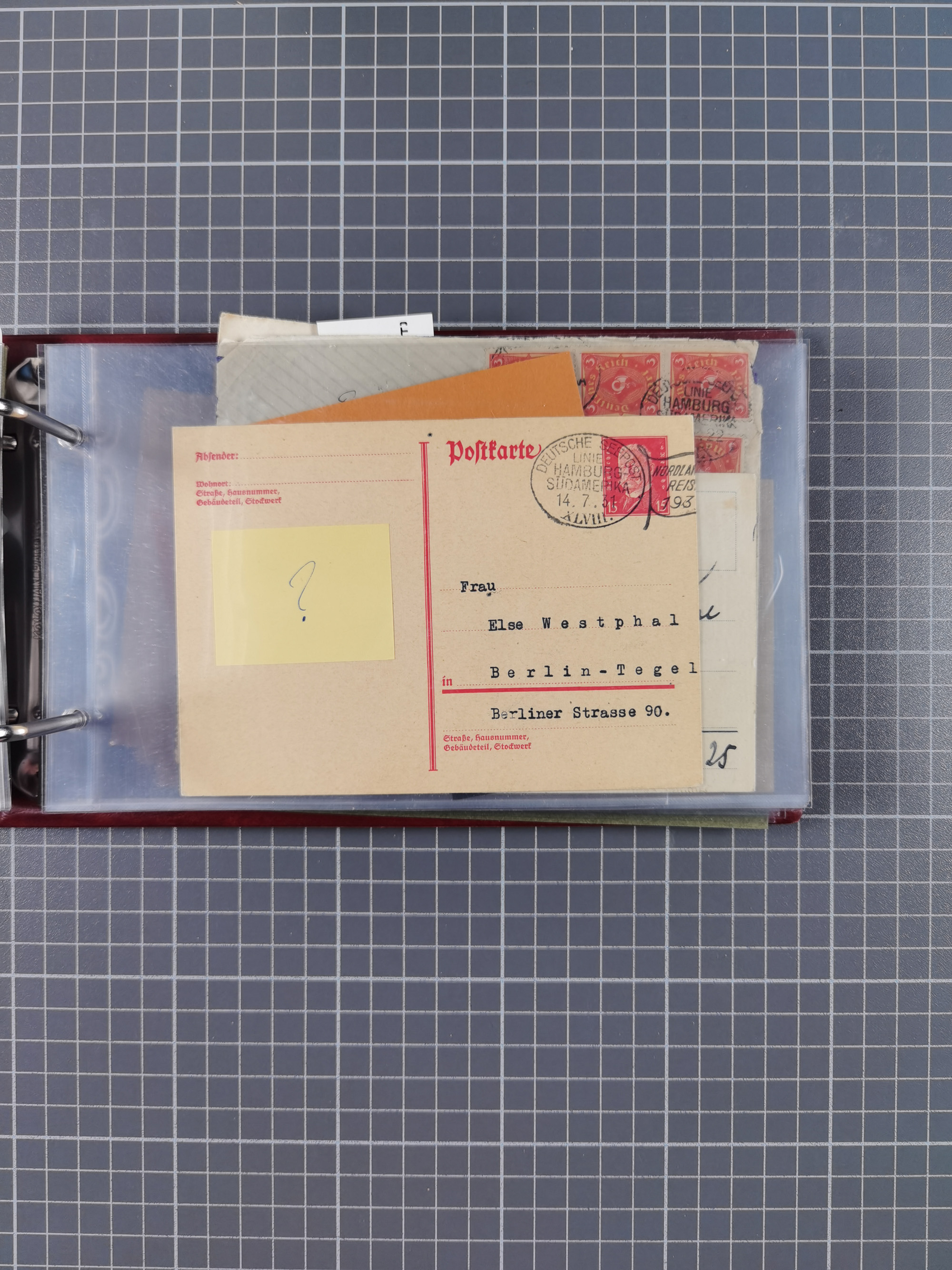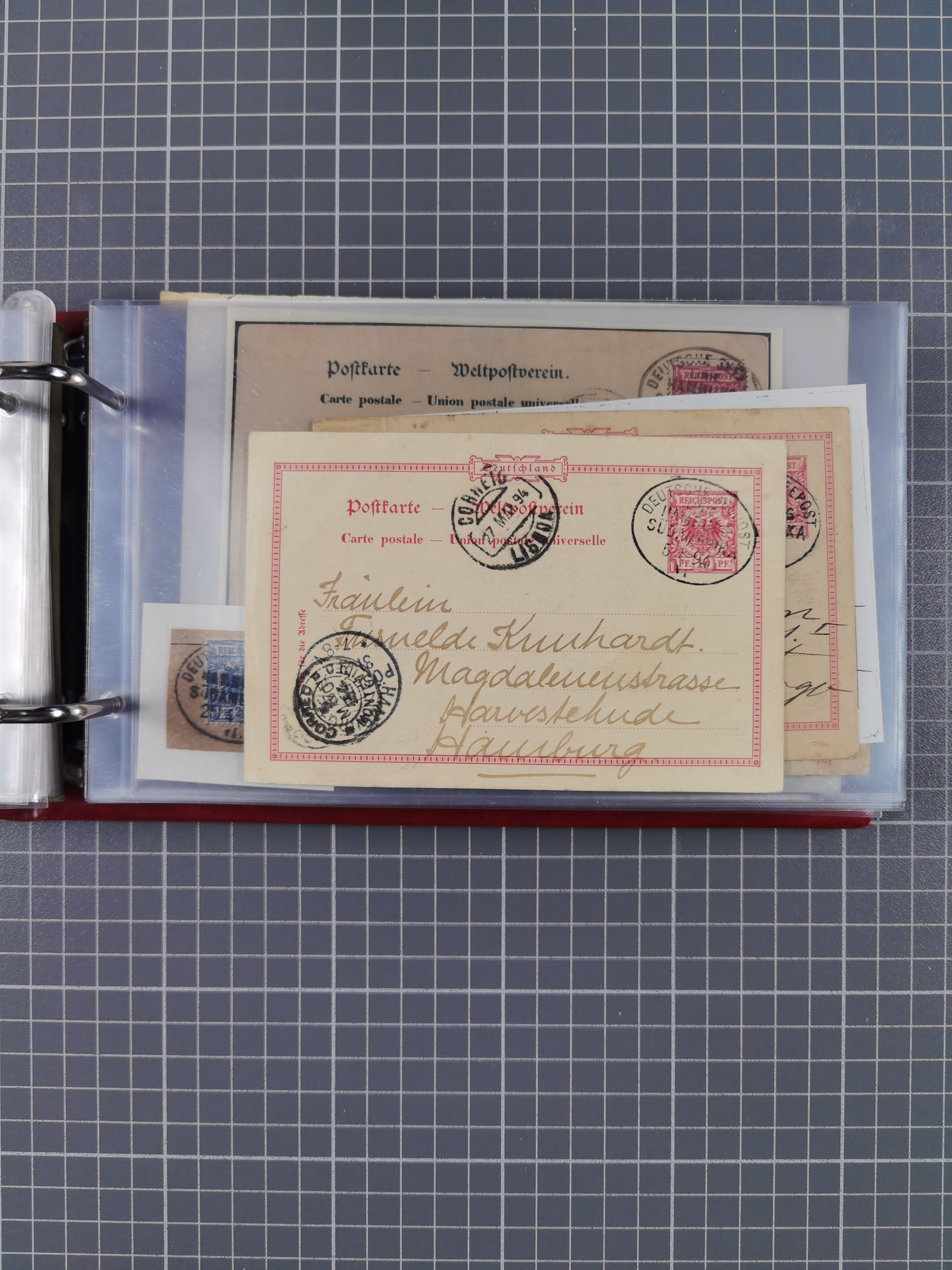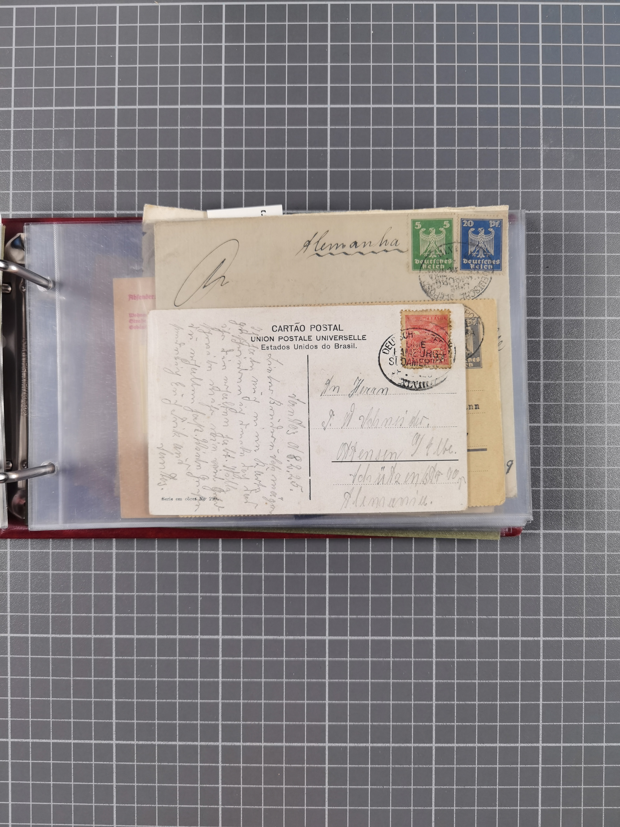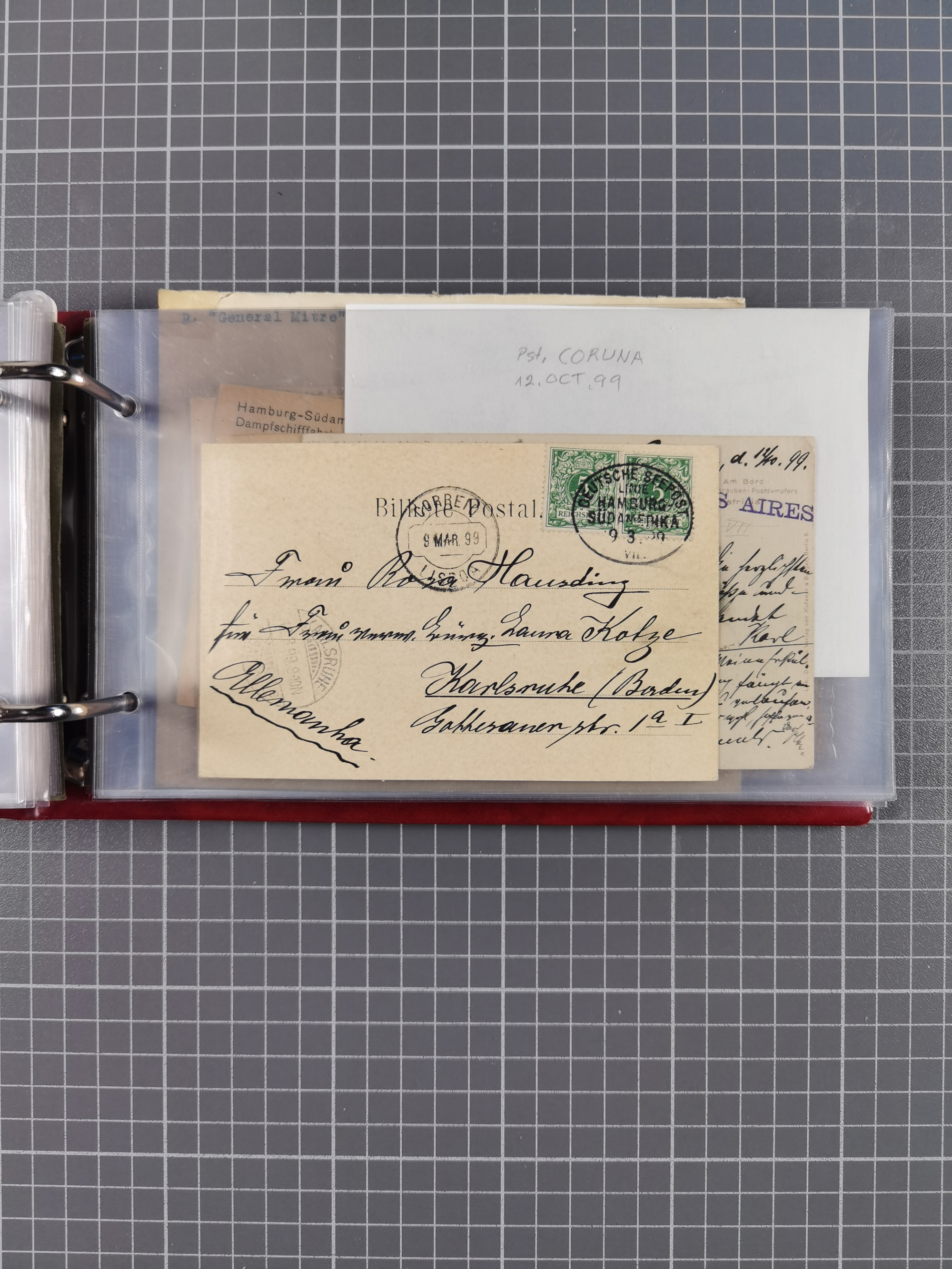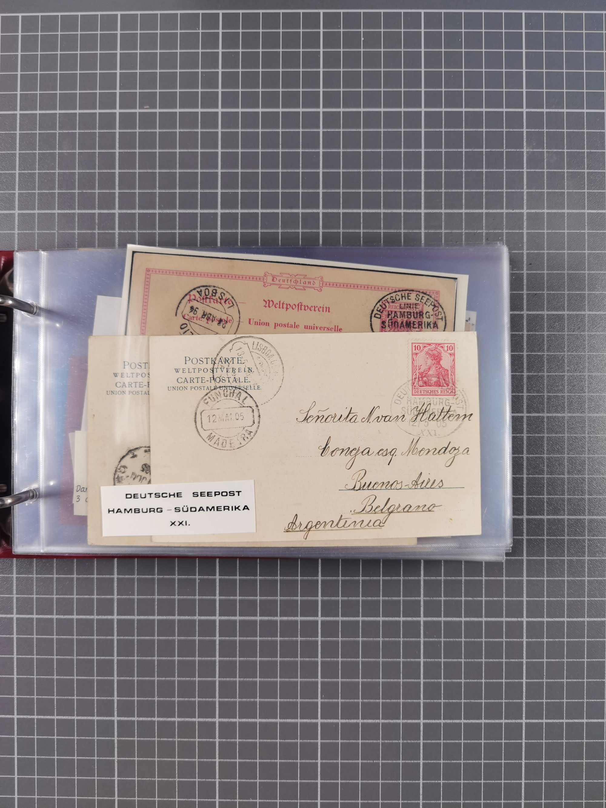 1891/1935 (ca.), umfangreiche Sammlung “DSP LINIE HAMBURG-SÜDAMERIKA I-LV” mit ca. 470 Briefen, Karten und GSK sowie wenigen Briefstücken mit Schwerpunkt vor 1914, dabei einige Belege mit “Paquebot”-Stempeln, Destinationen (u.a. 1895 nach Konstantinopel und GSK 1898 via Rottedam nach Jaluit), Bedarfspost aus der Infla-Zeit, Ozean-Brief 1913 und R-Ozean-Brief 1926. Die Erhaltung ist zum Teil etwas fehlerhaft, dafür fast nur klare Stempel, meist Bedarfspost, ex Steinmeyer